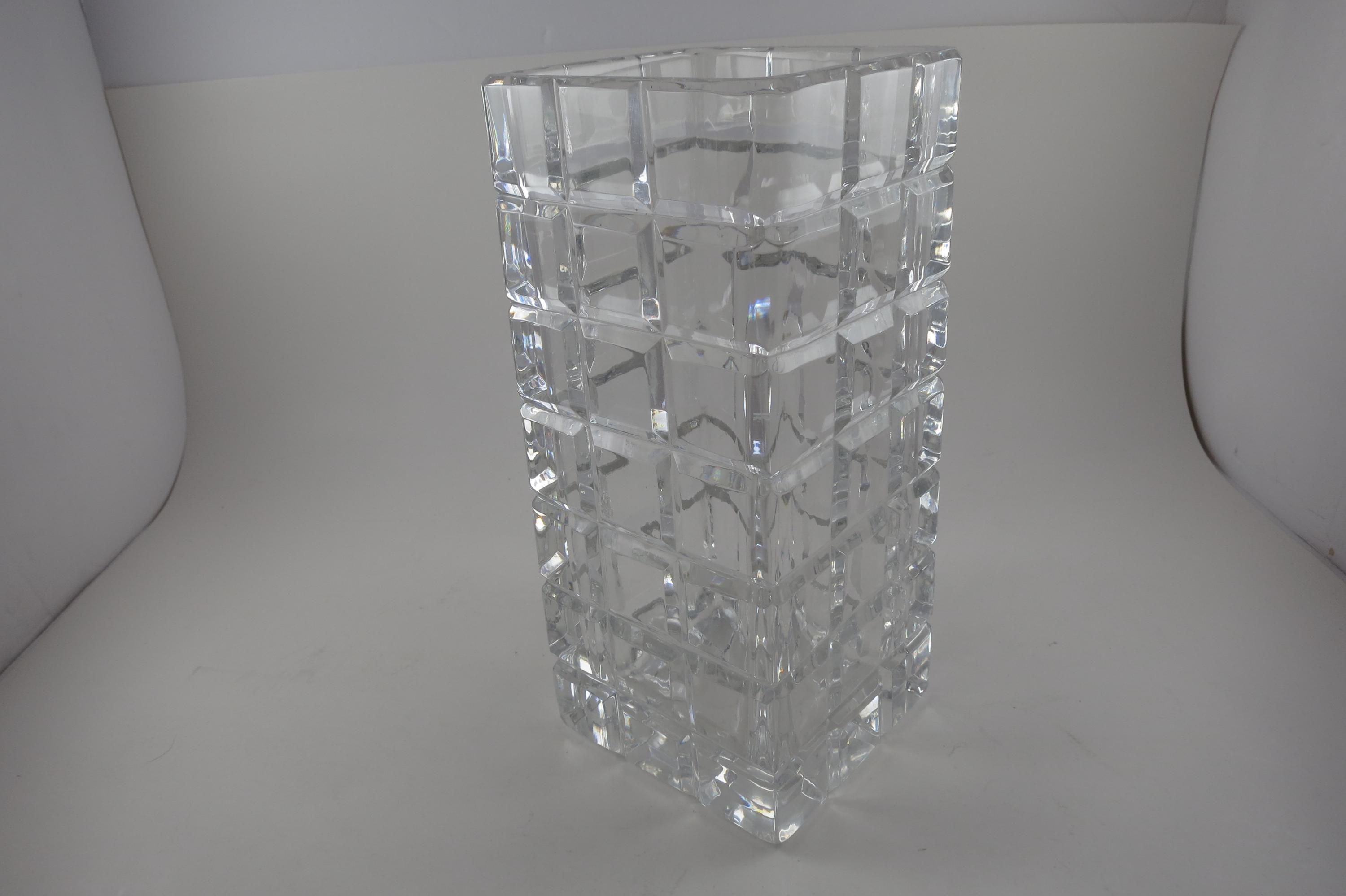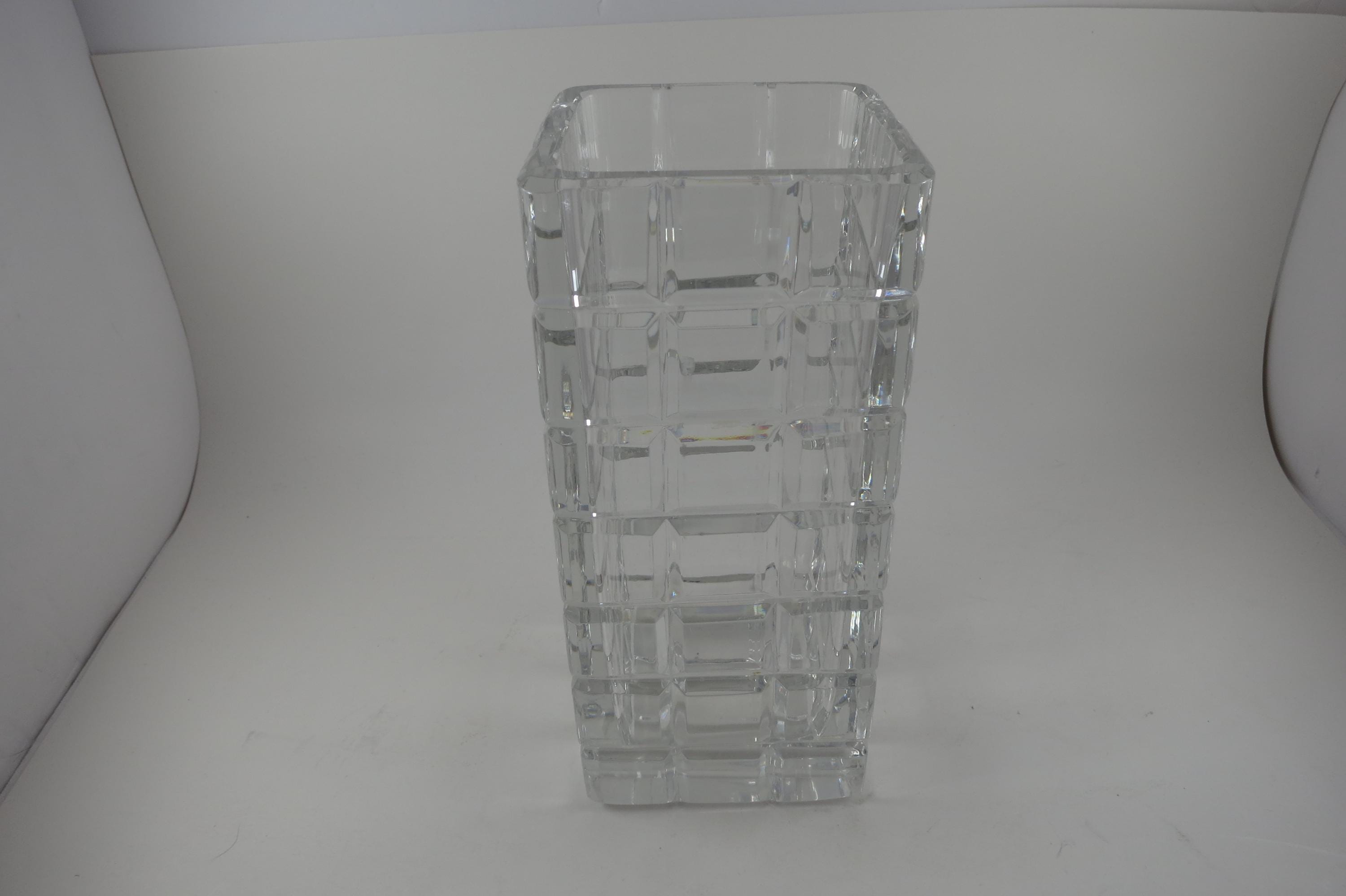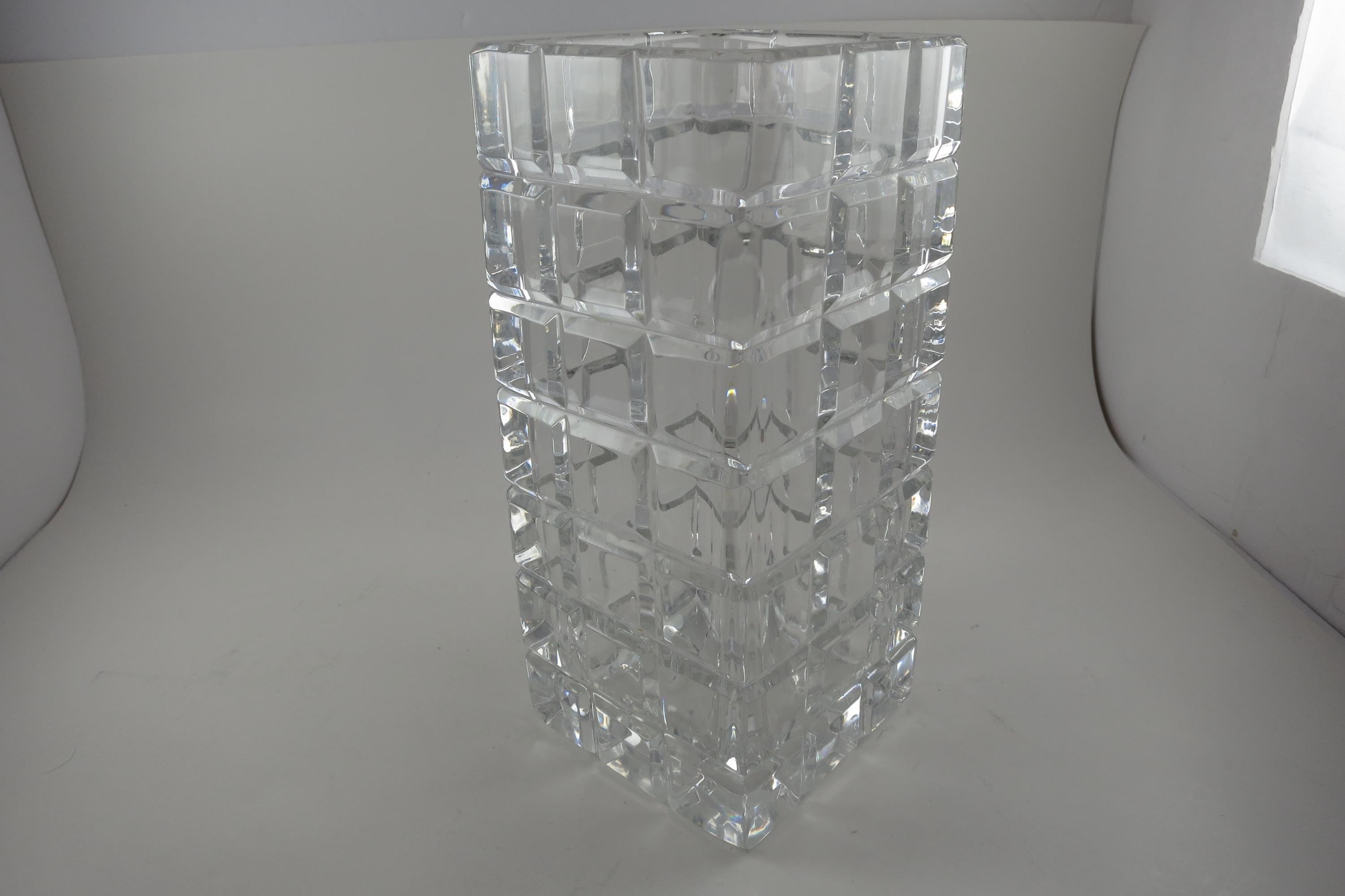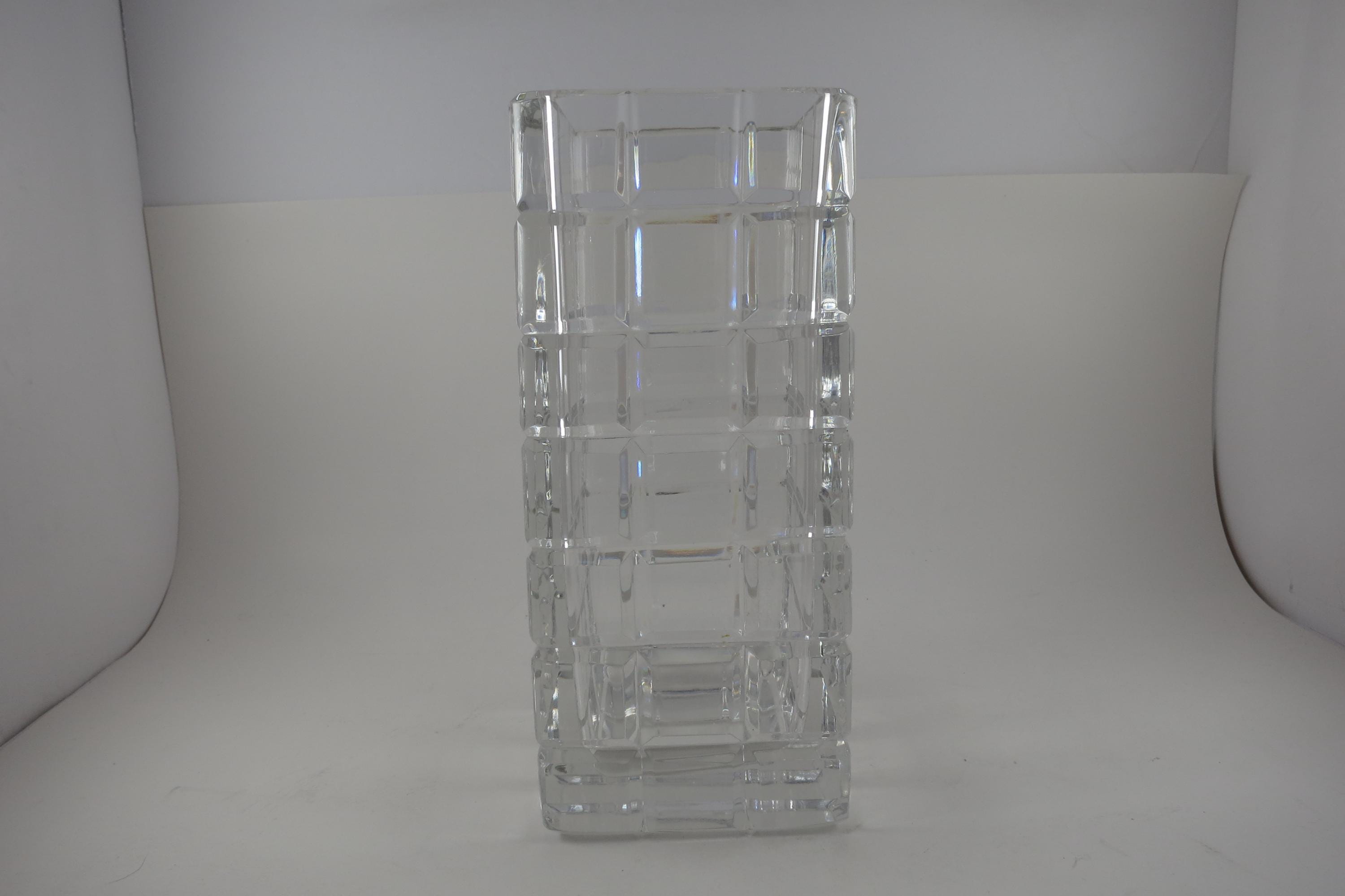 Vintage Lead Crystal Blocks Cased Vase 9 Inches Tall.