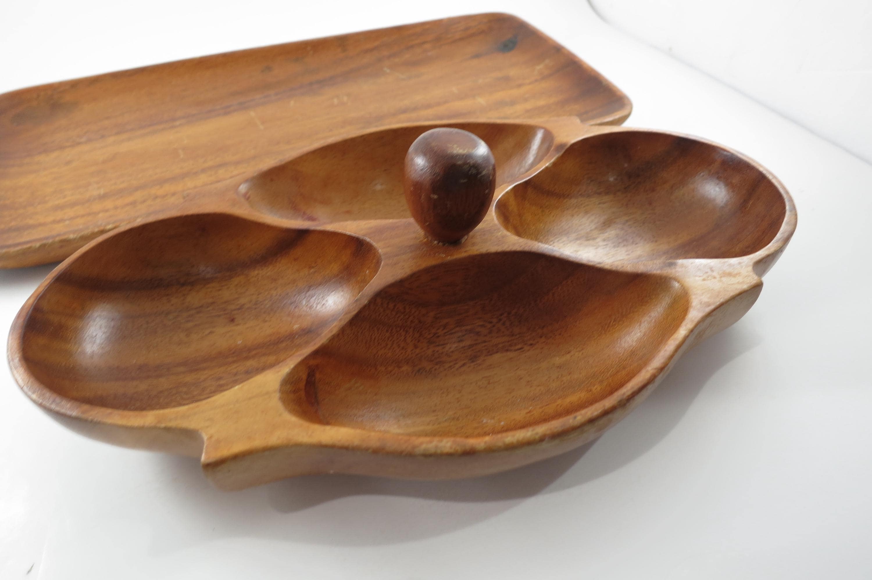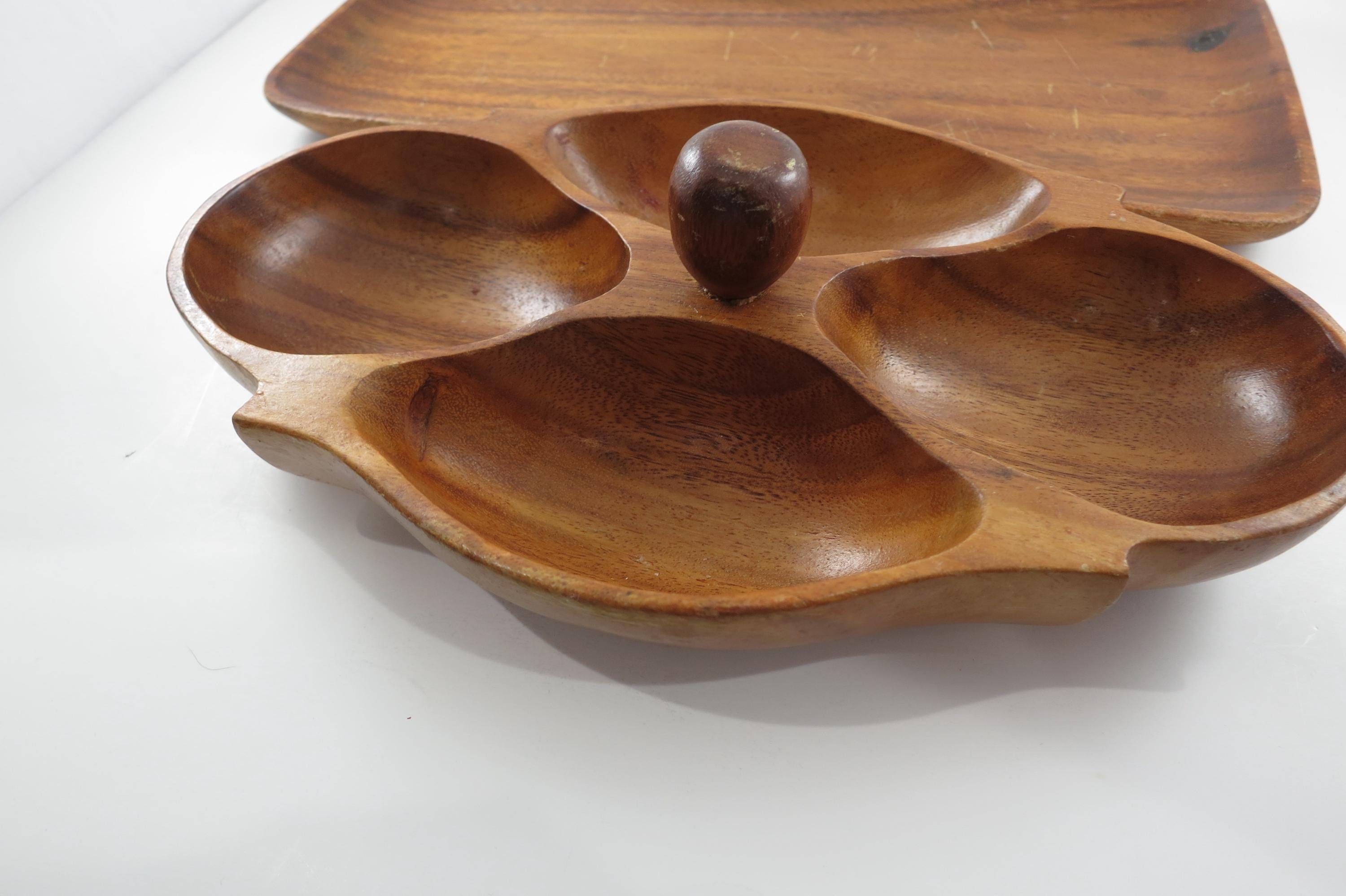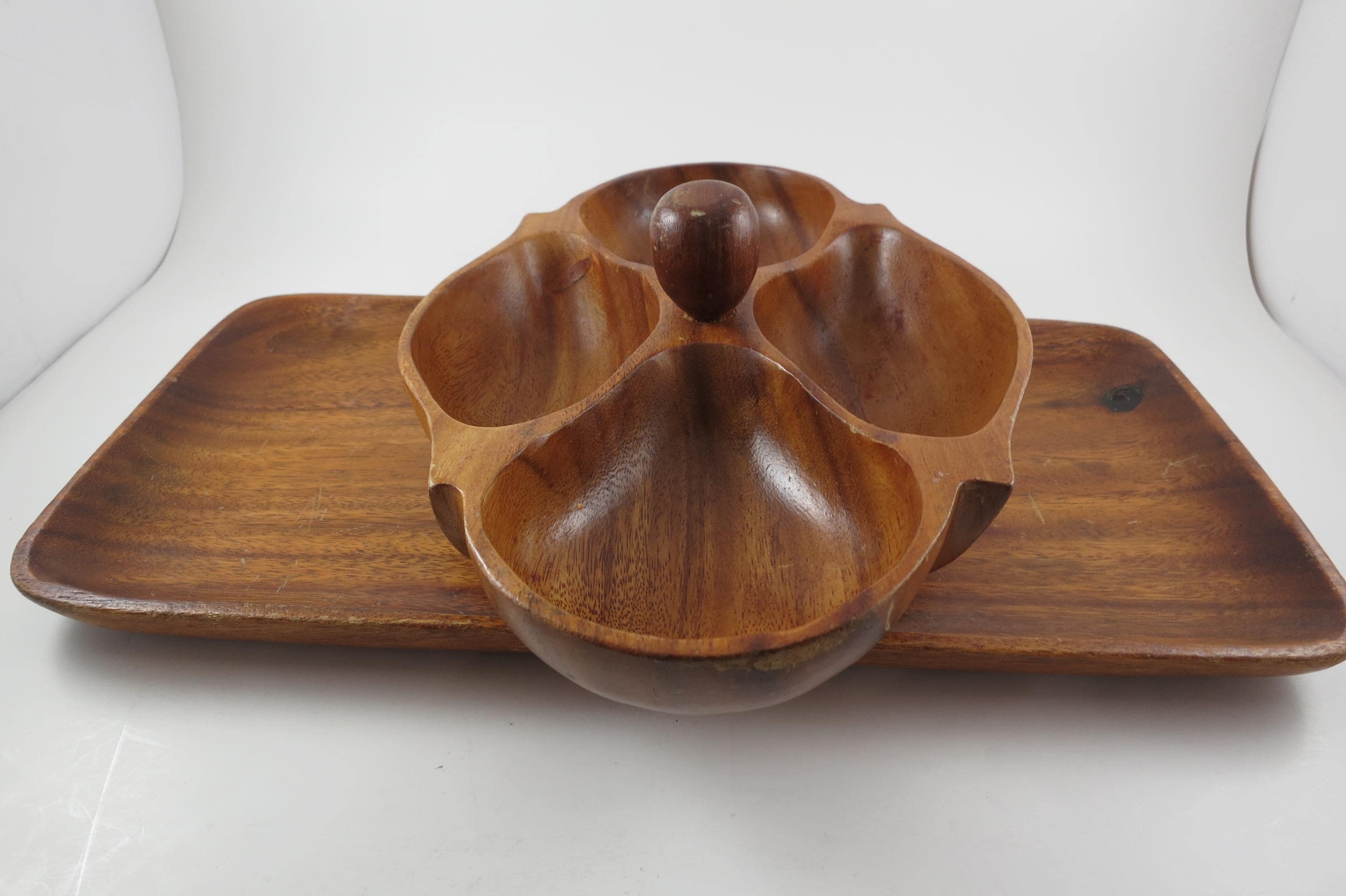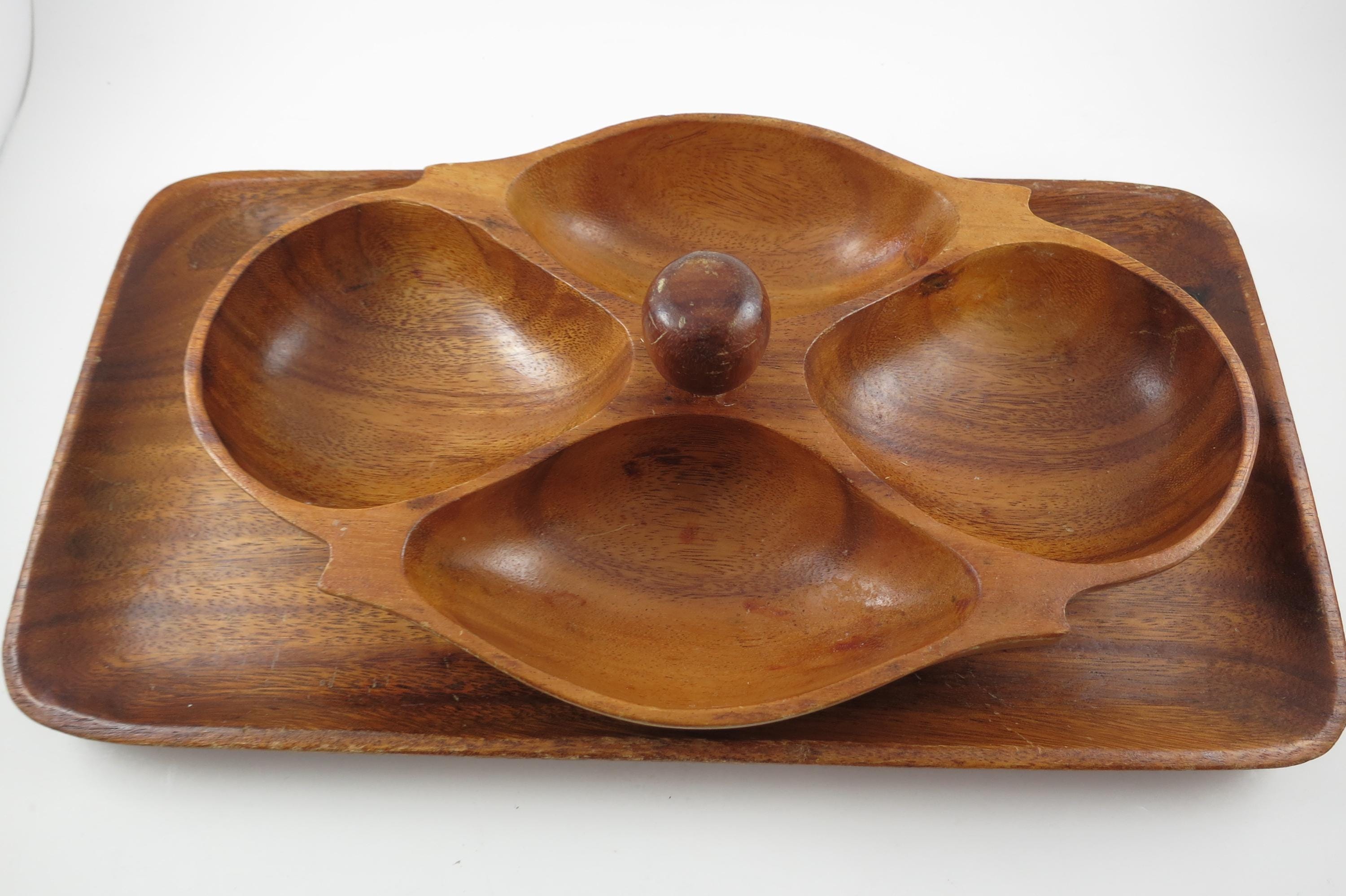 Vintage Monkey Pod Wood 4 Section Divided Bowl and Tray.