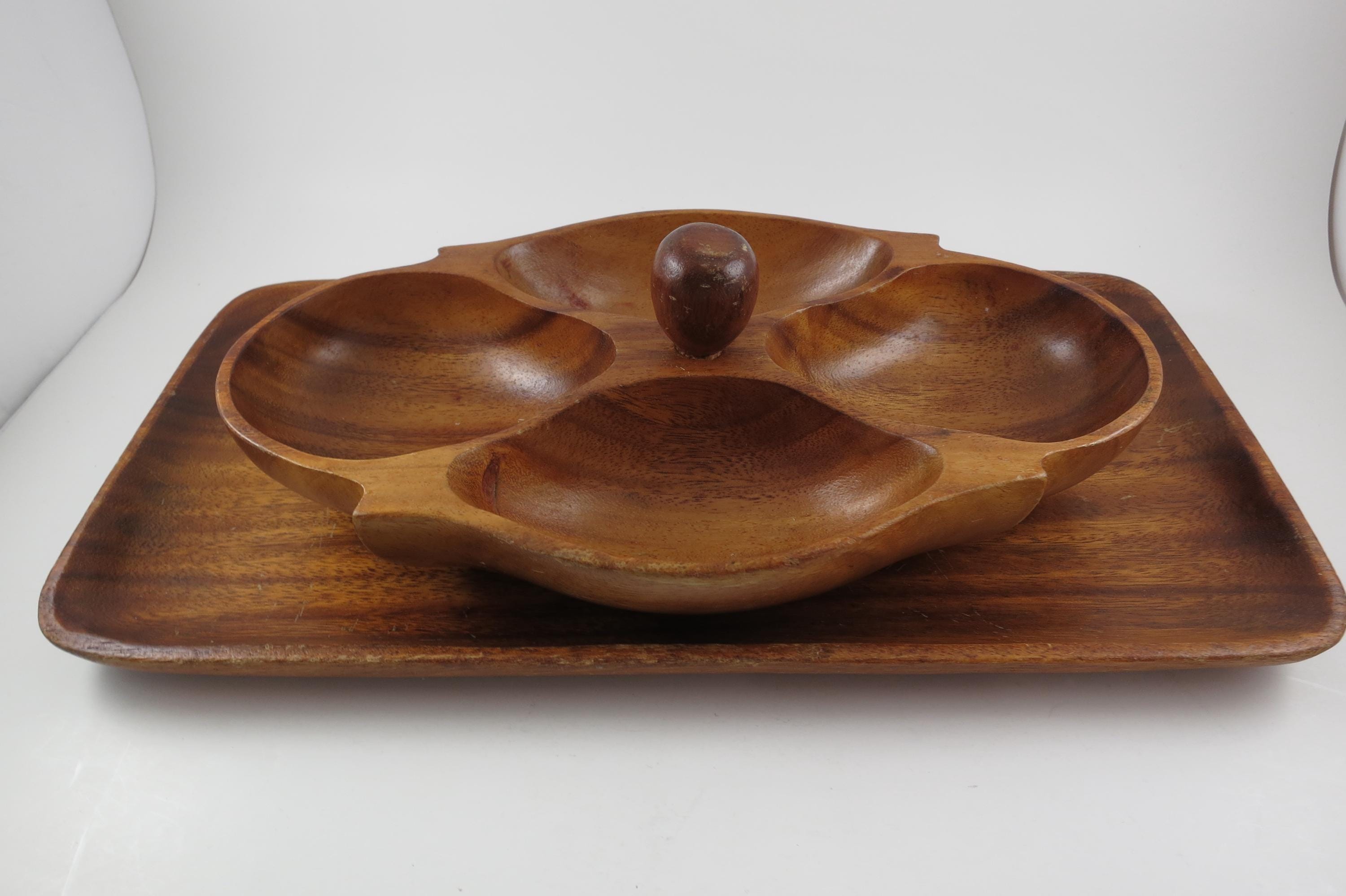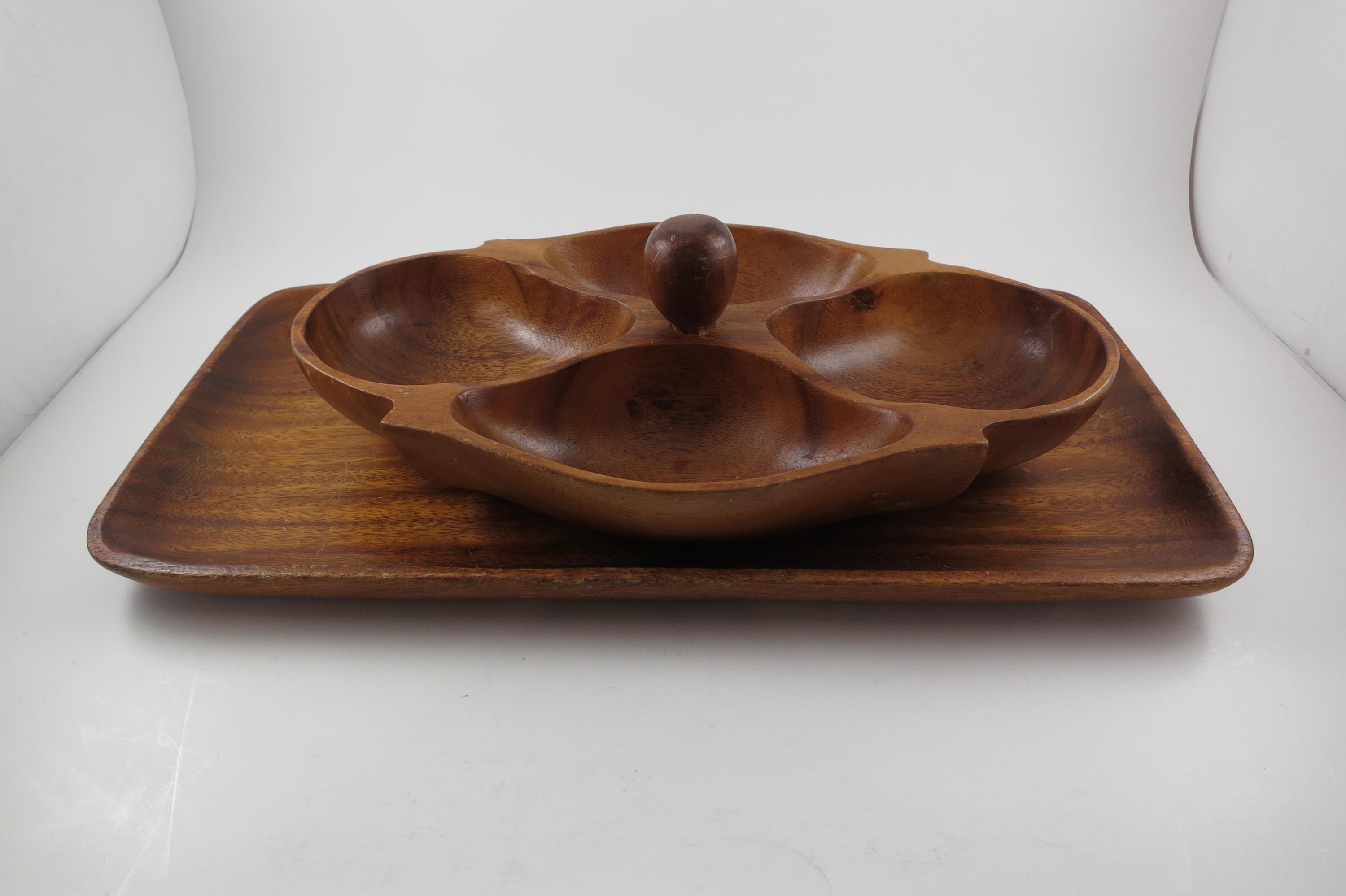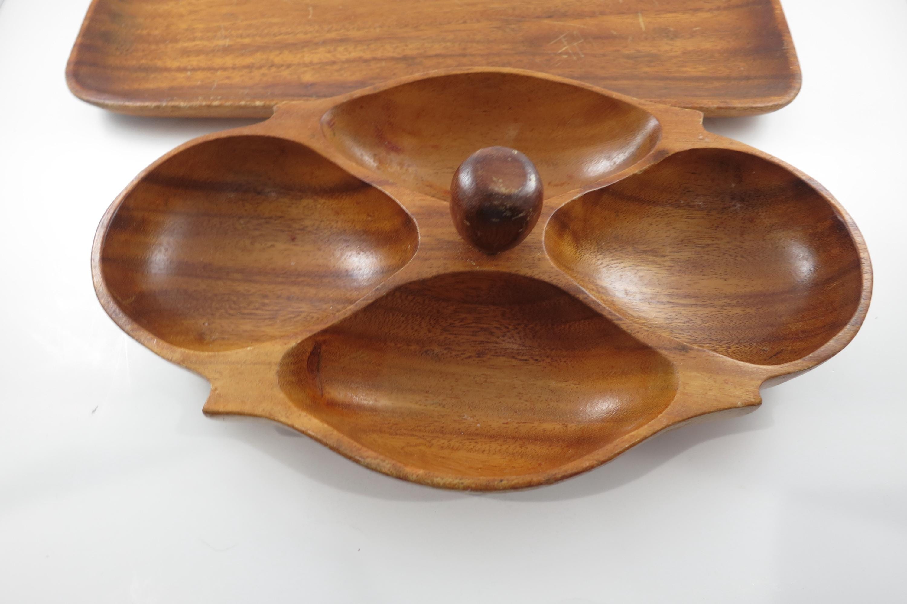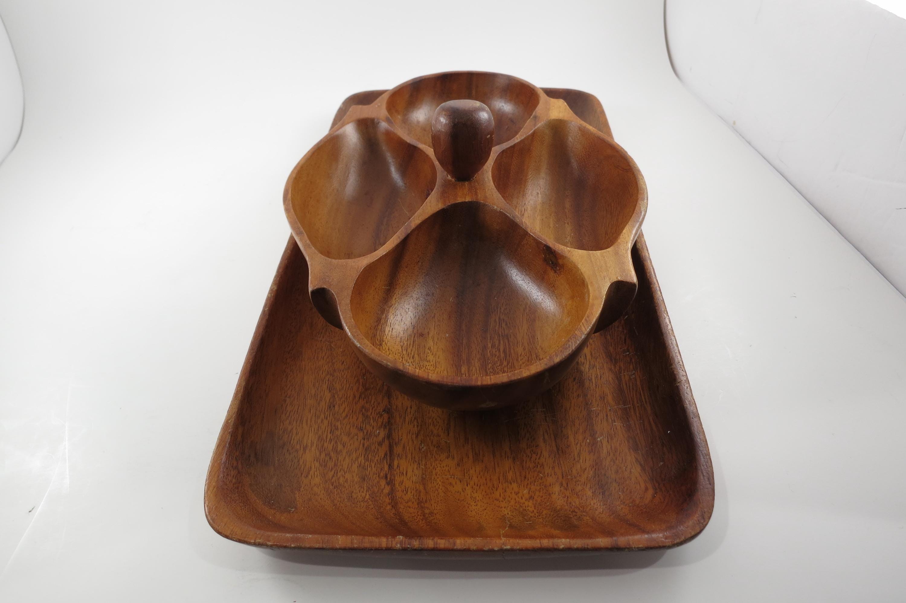 Vintage Monkey Pod Wood 4 Section Divided Bowl and Tray.