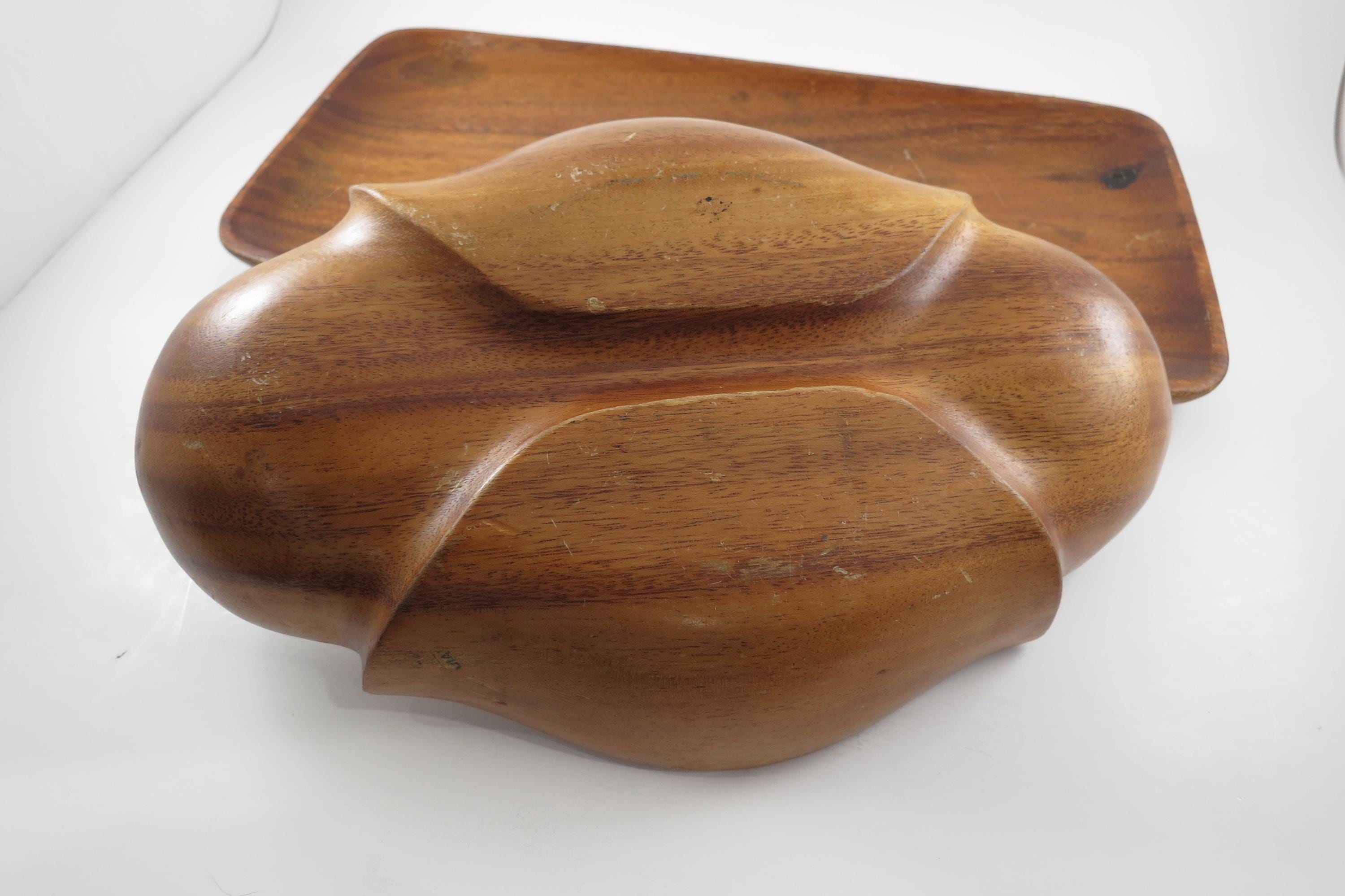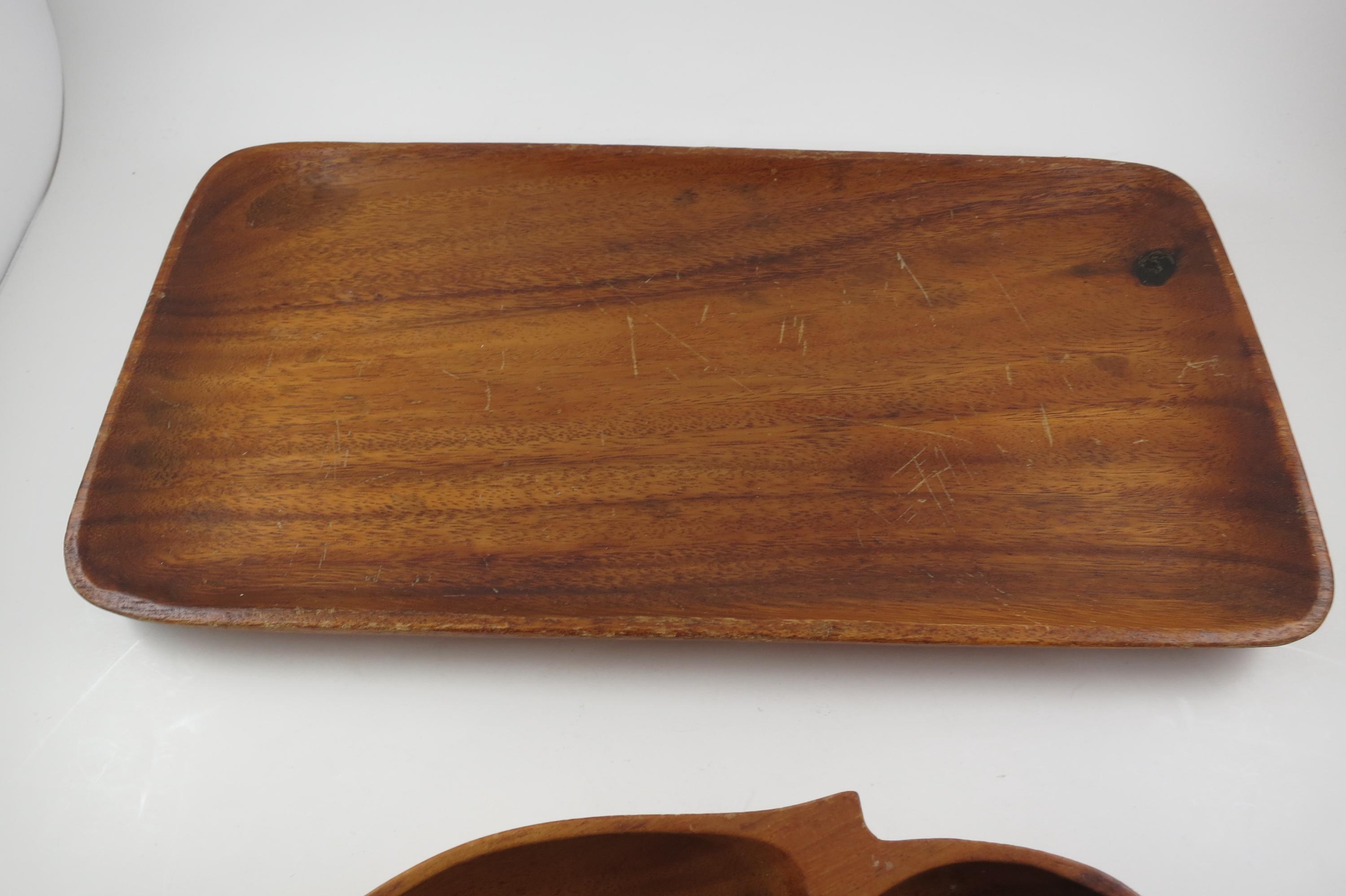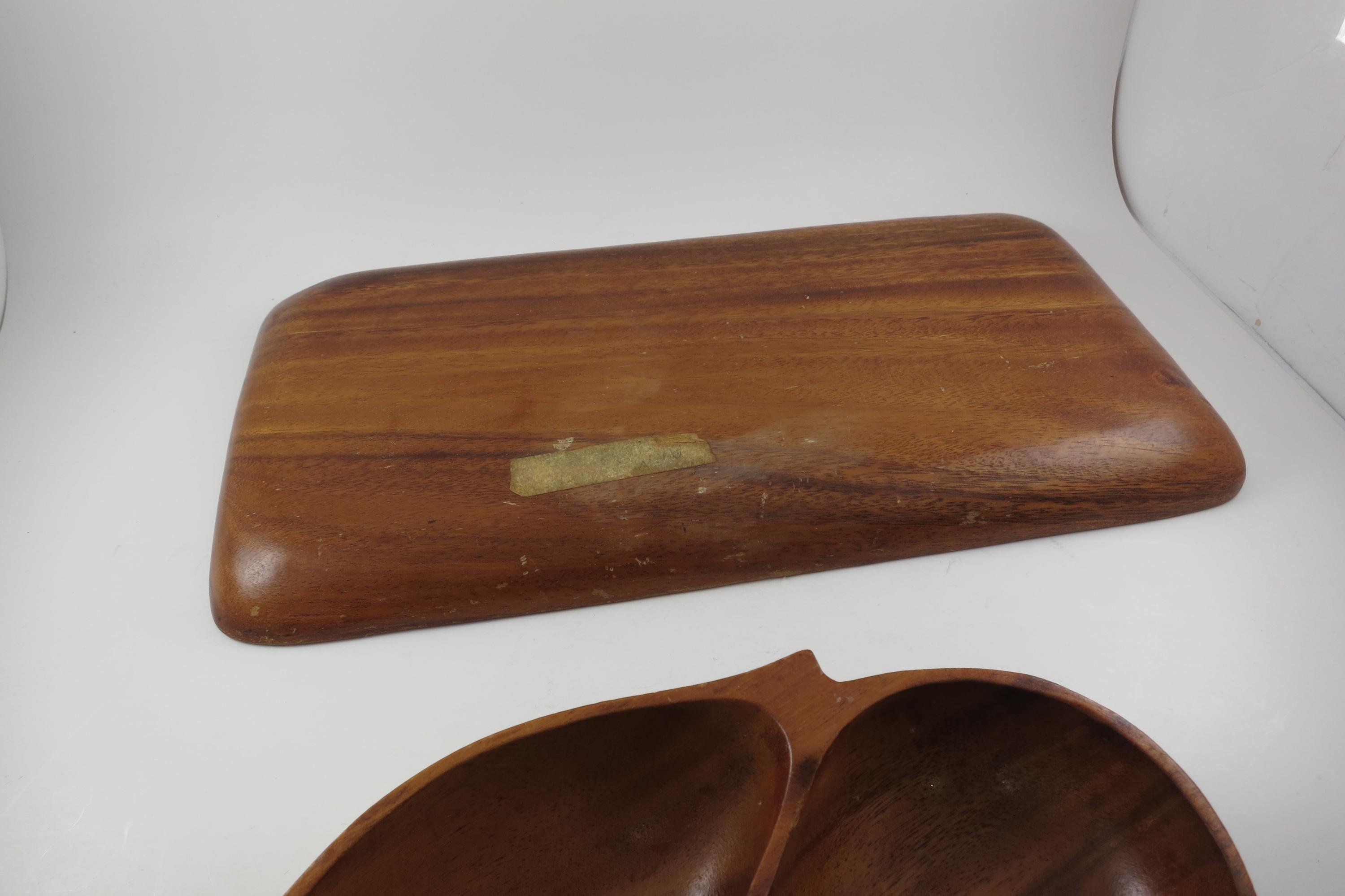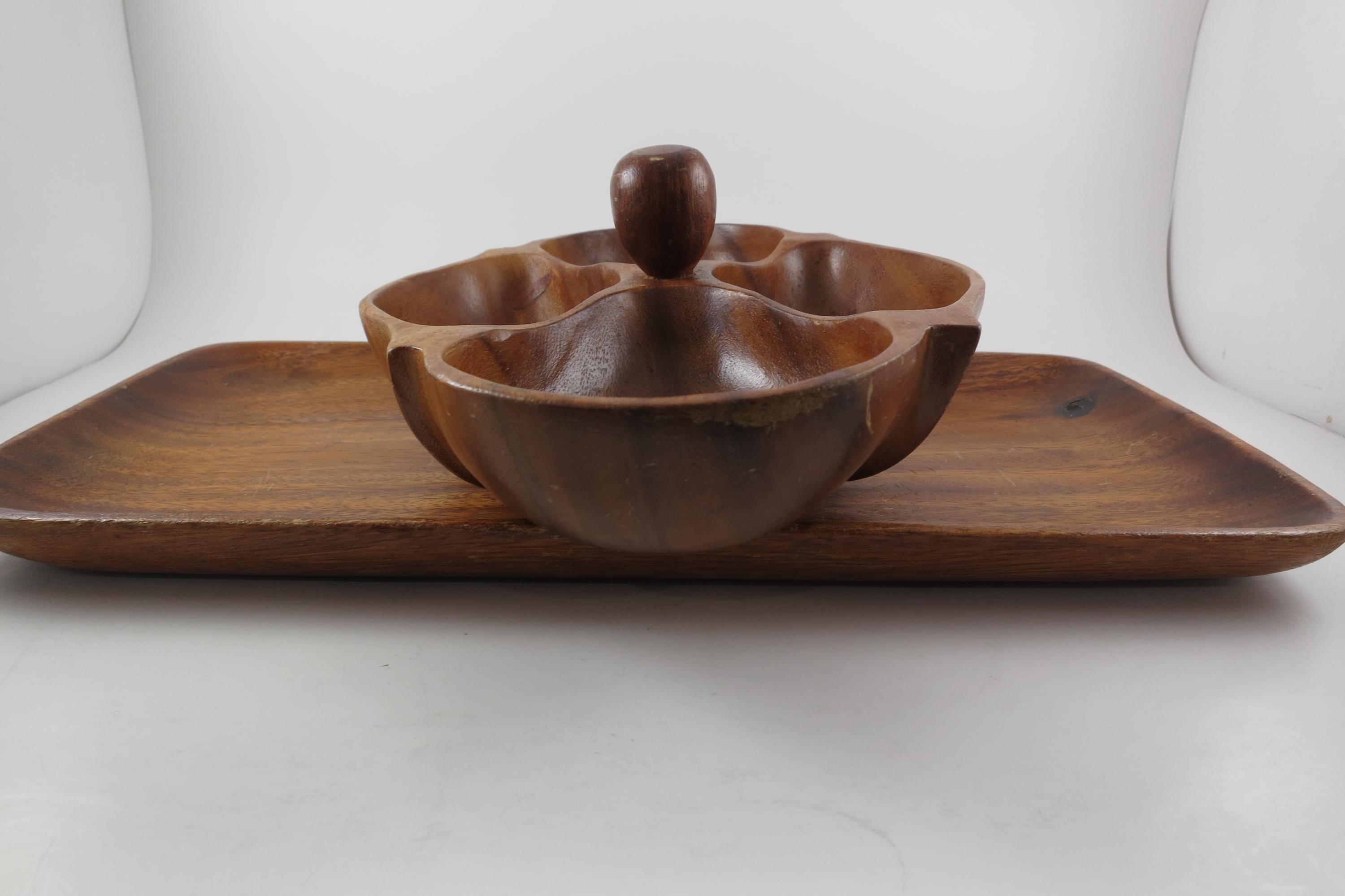 Vintage Monkey Pod Wood 4 Section Divided Bowl and Tray.