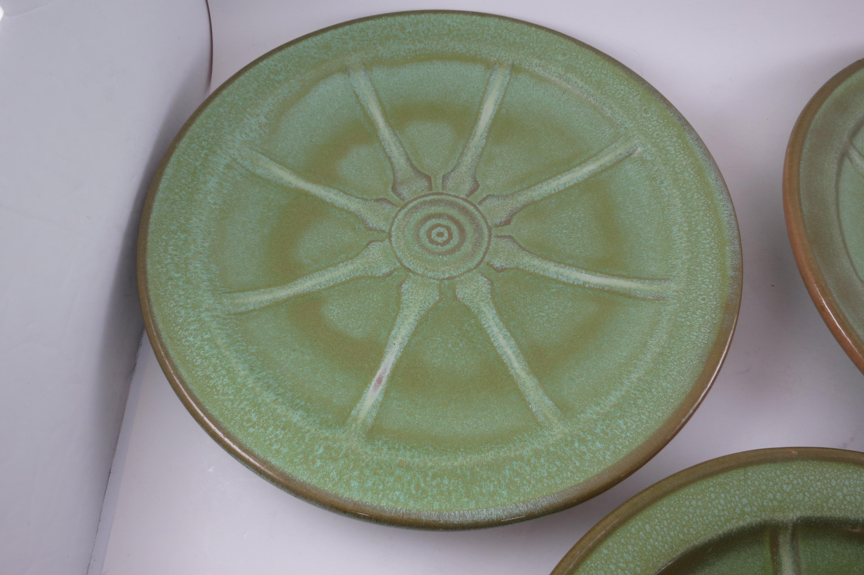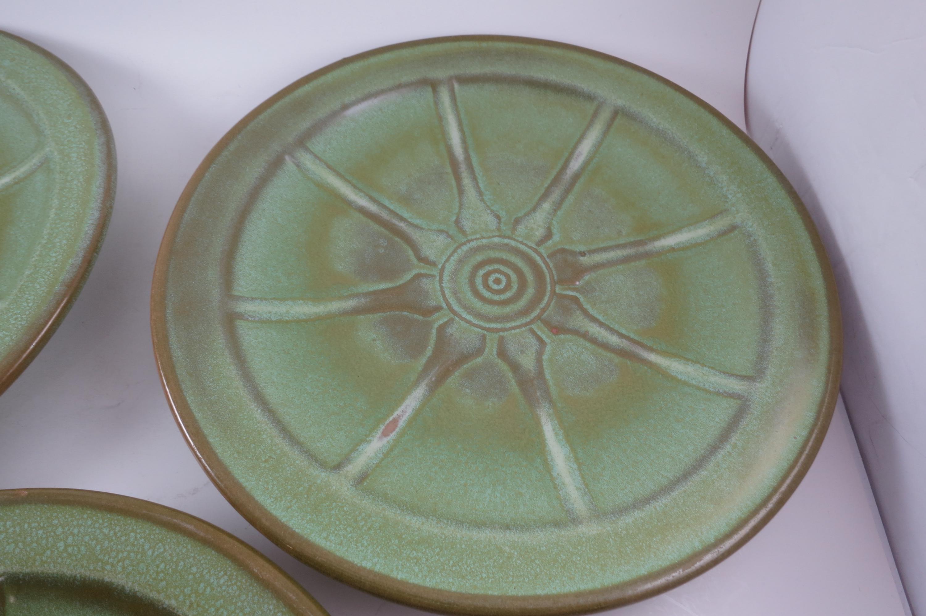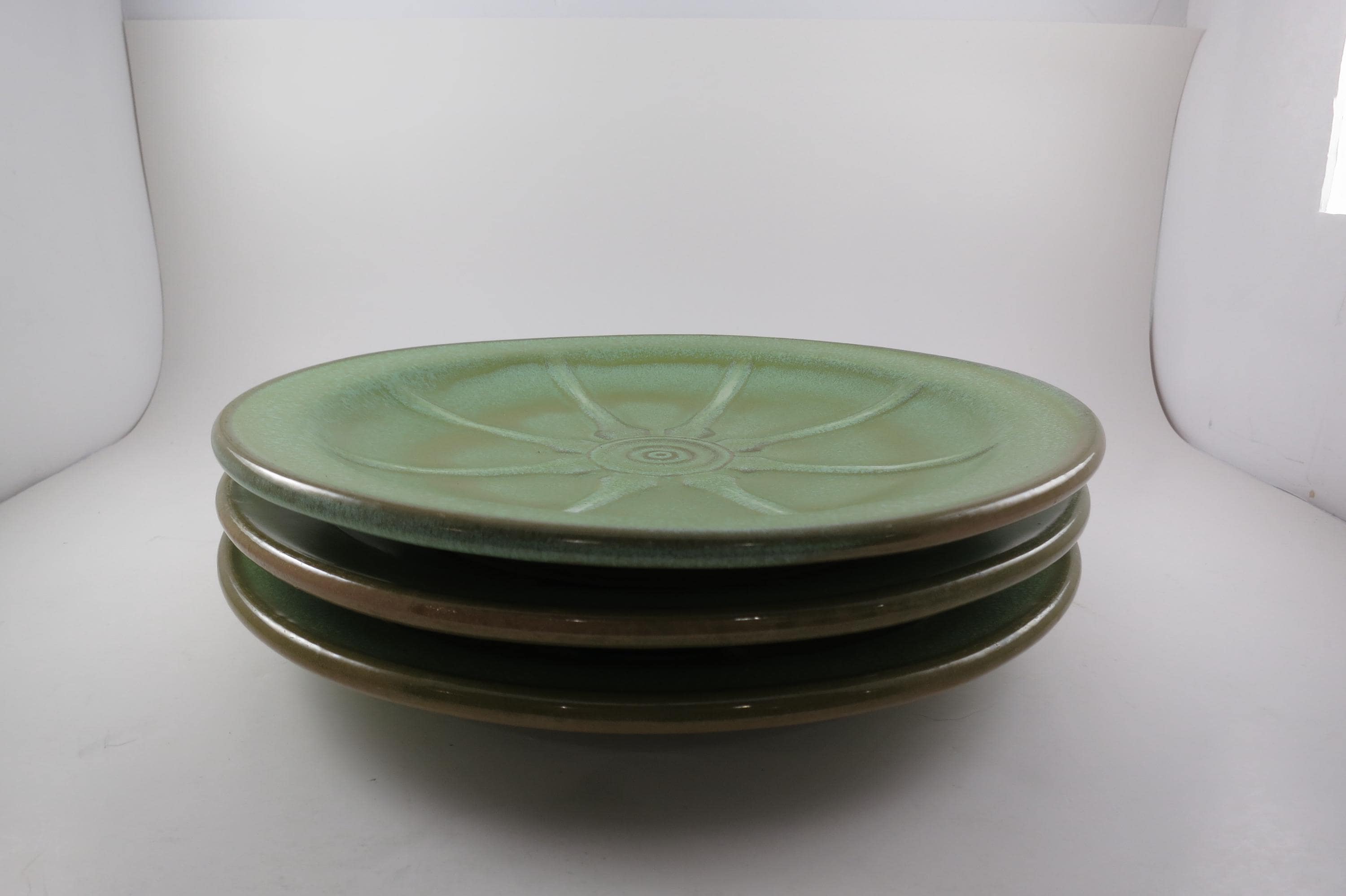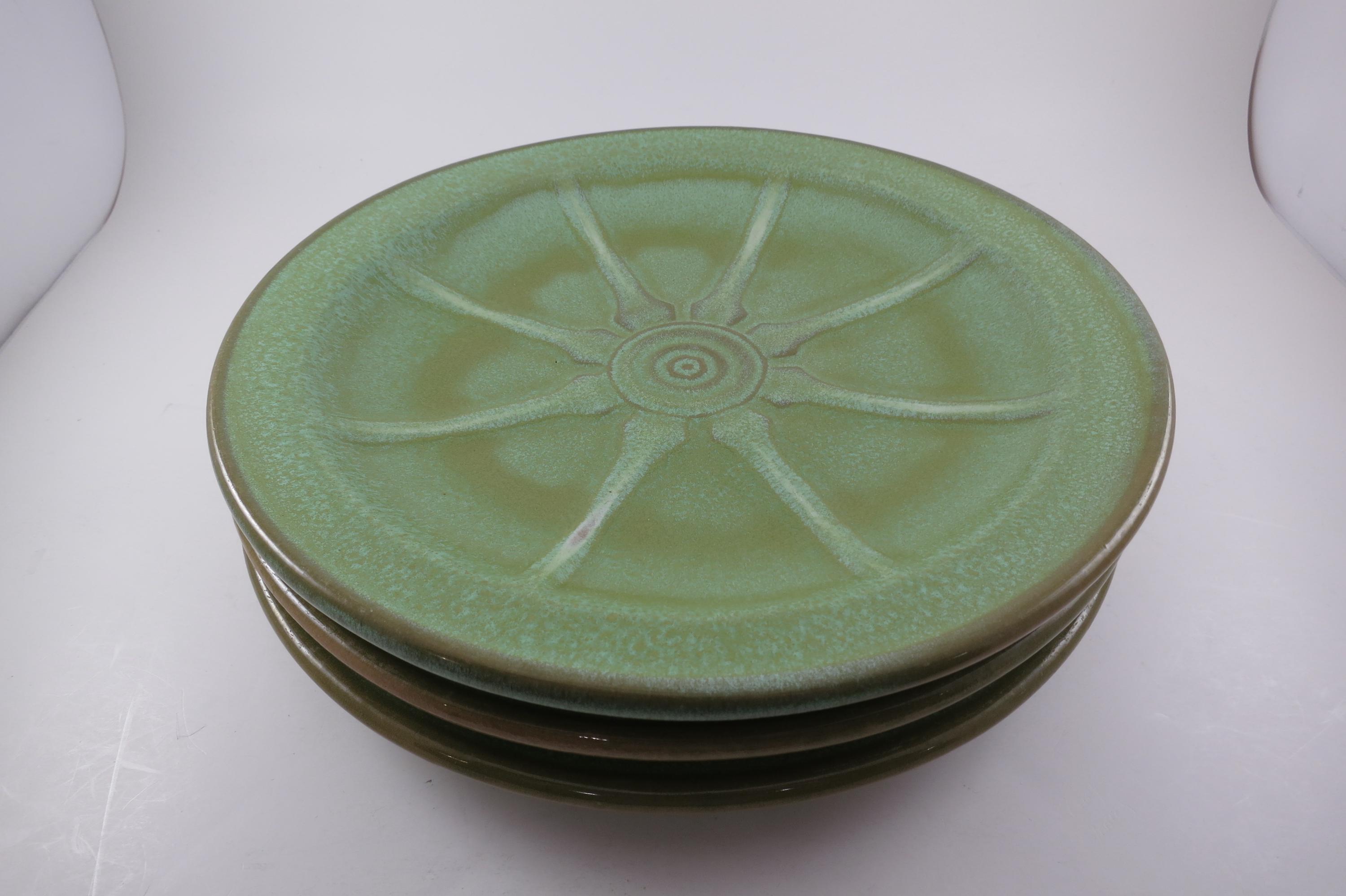 Vintage Frankoma Wagon Wheel Dinner Plates, Prairie Green, Set of 3