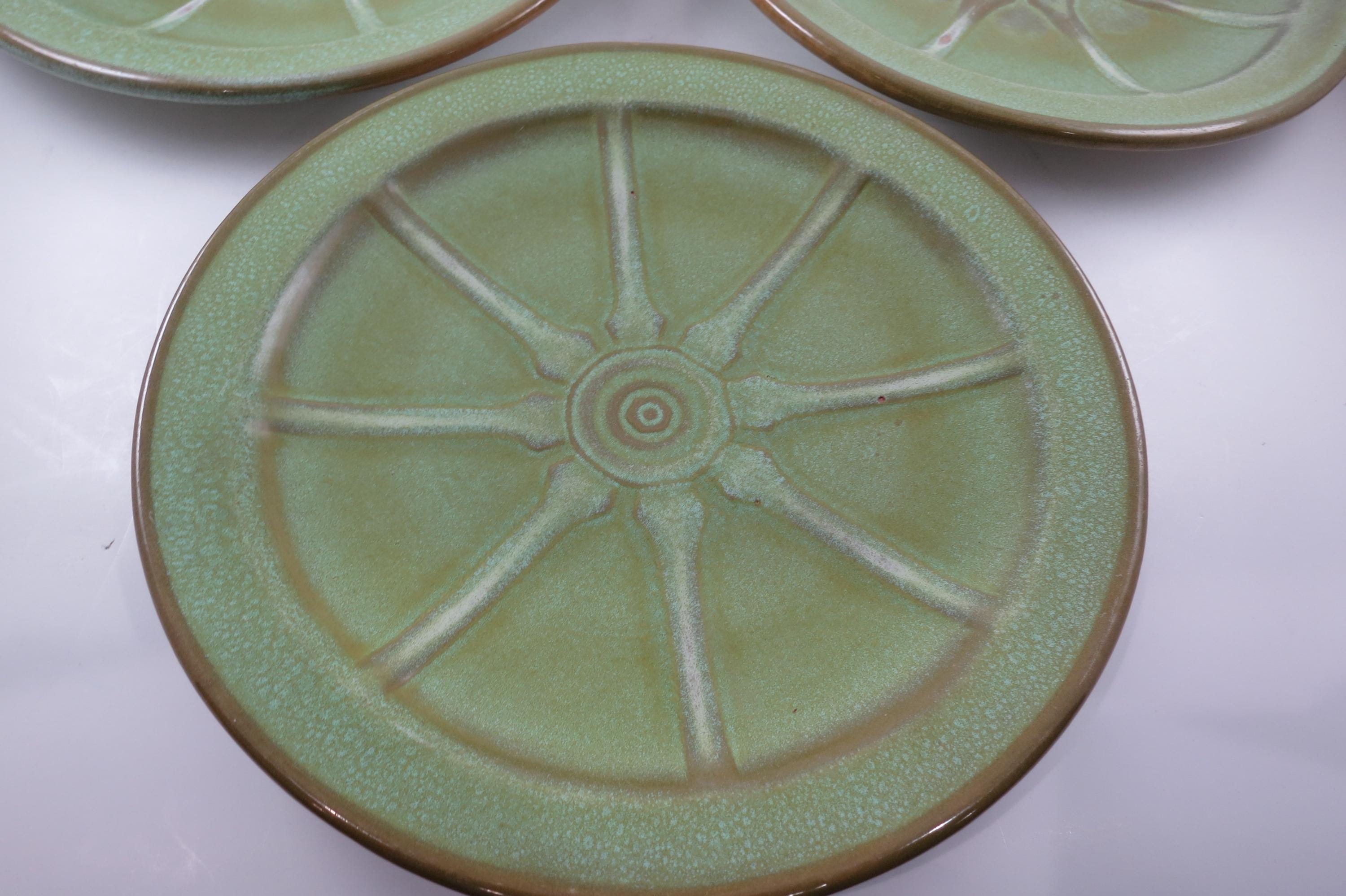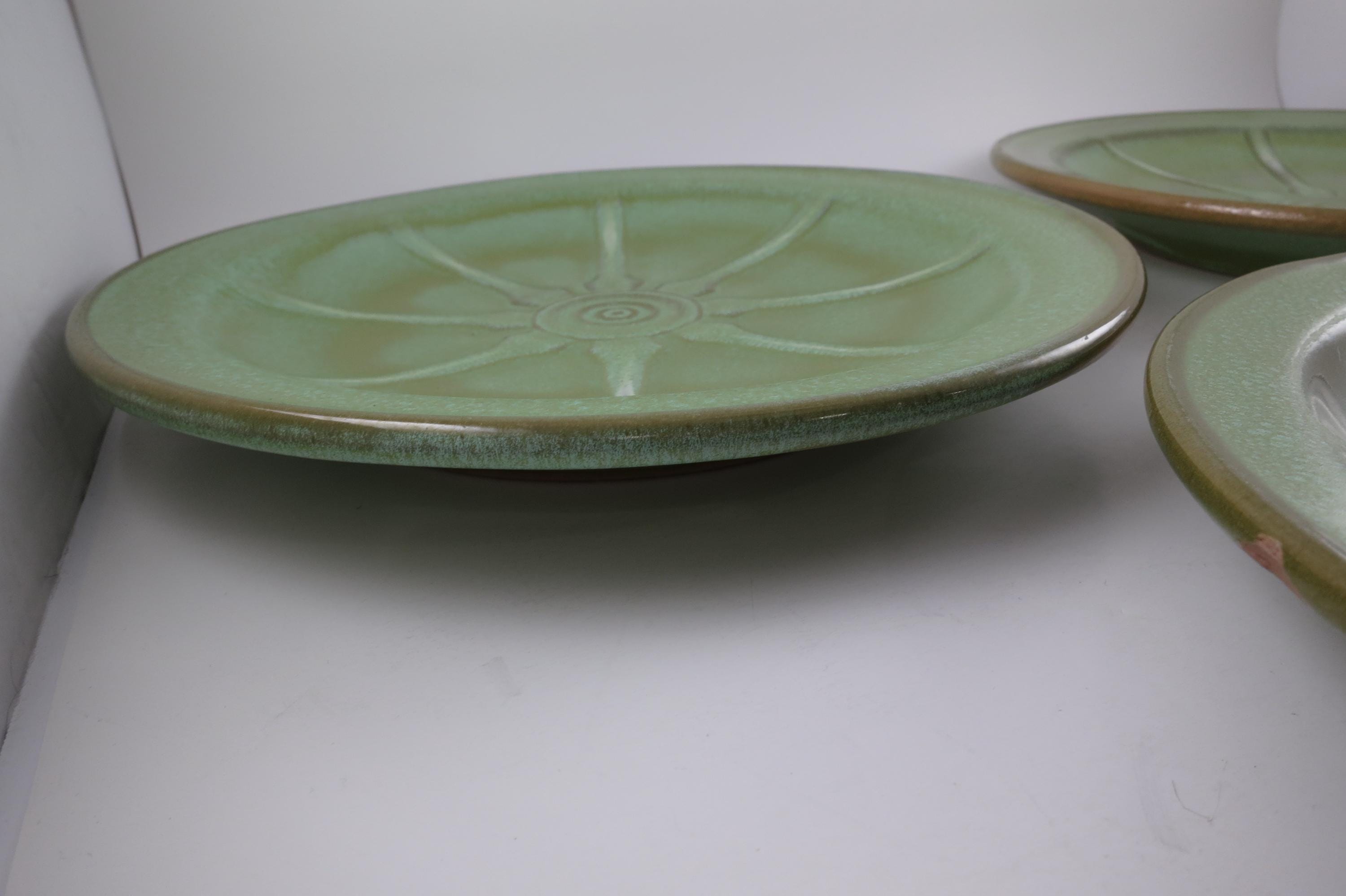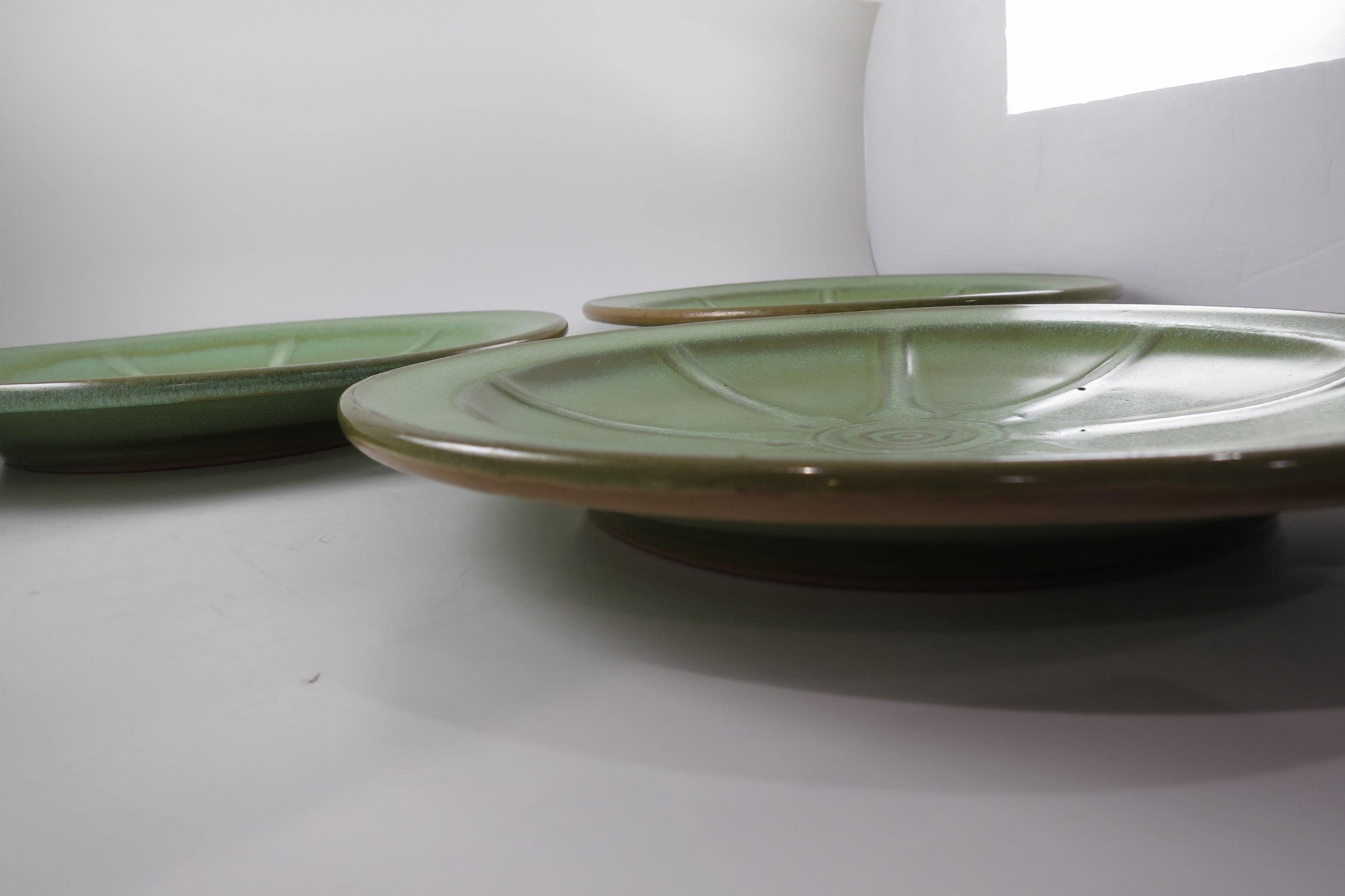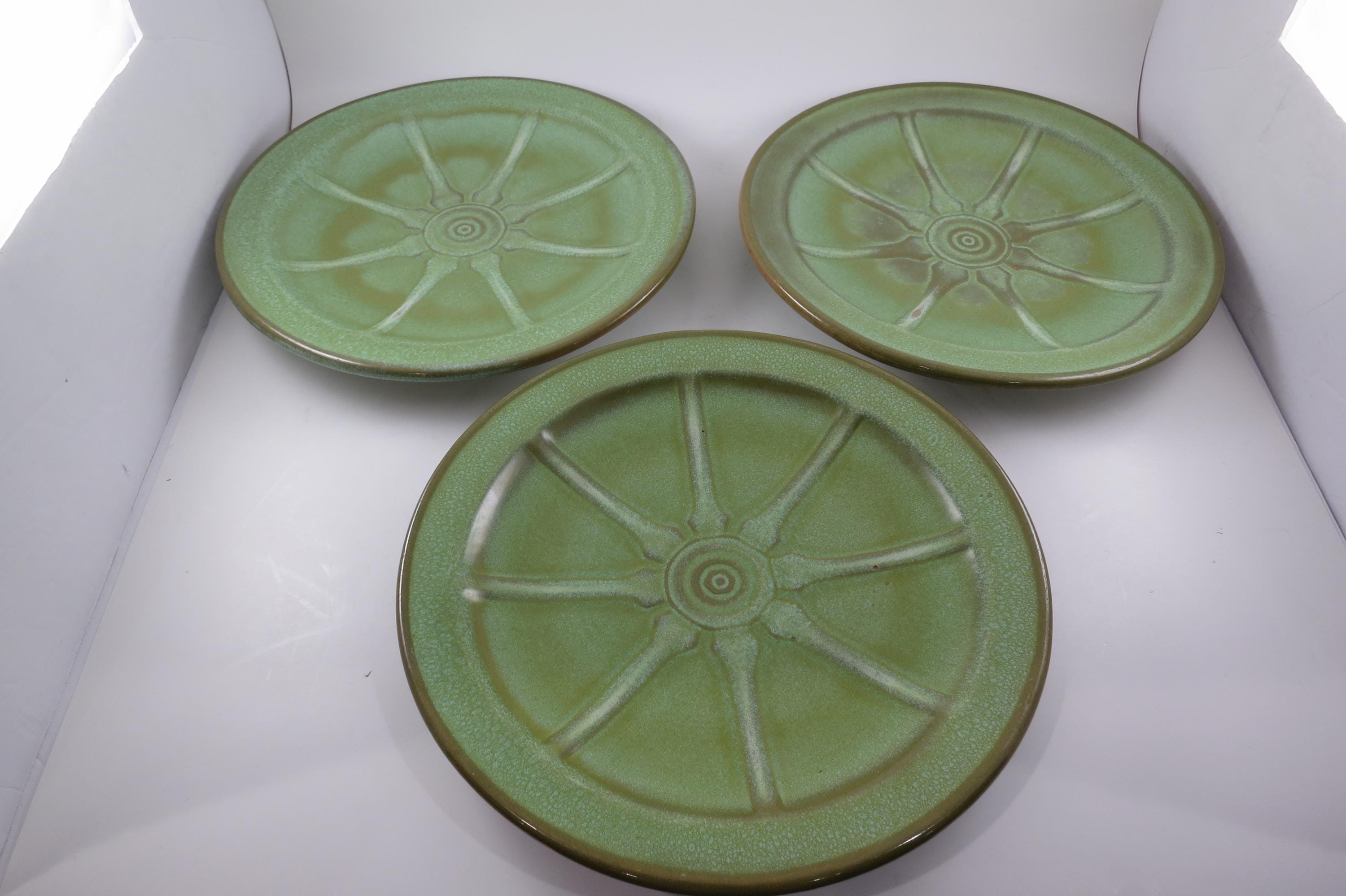 Vintage Frankoma Wagon Wheel Dinner Plates, Prairie Green, Set of 3