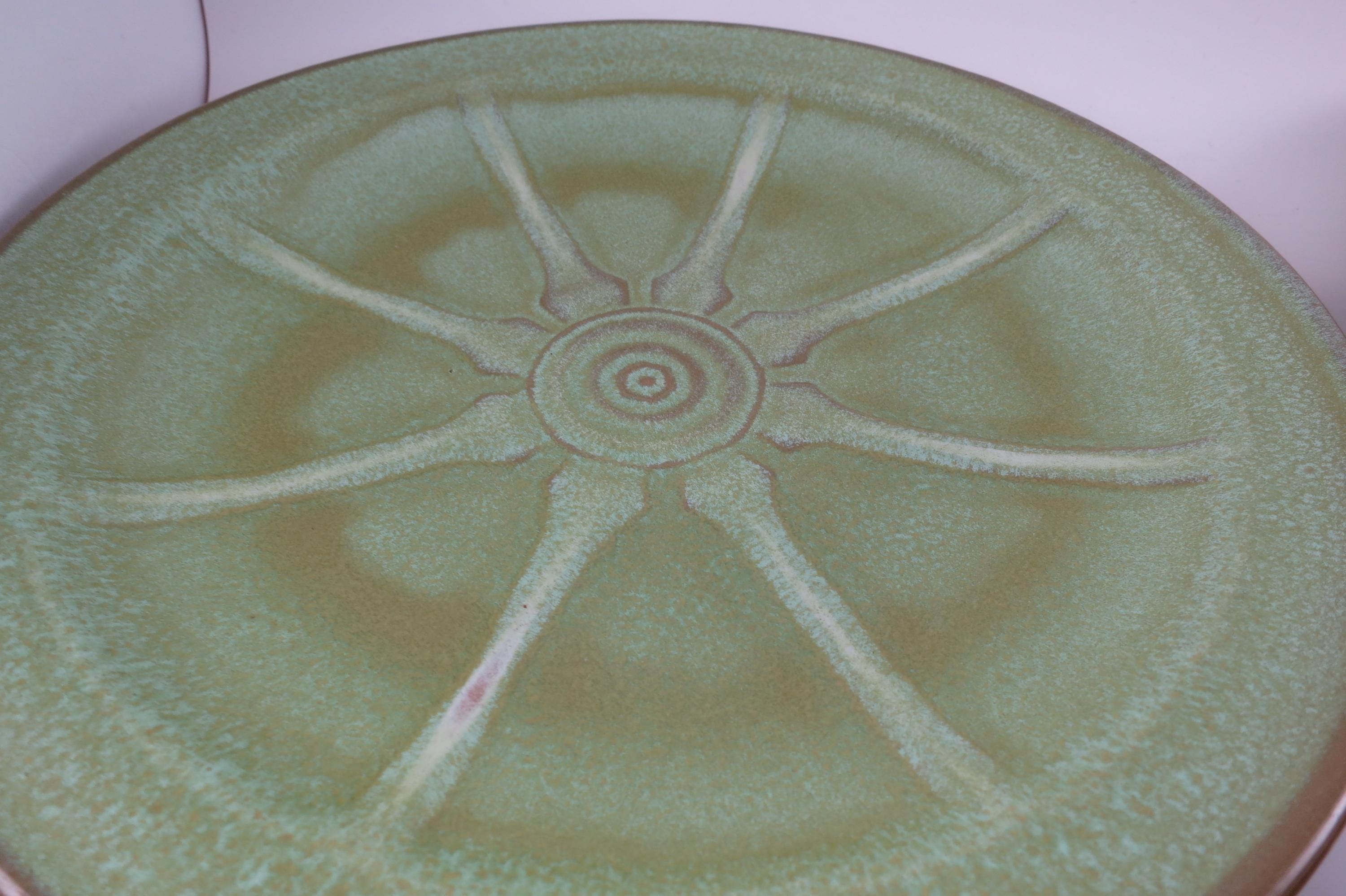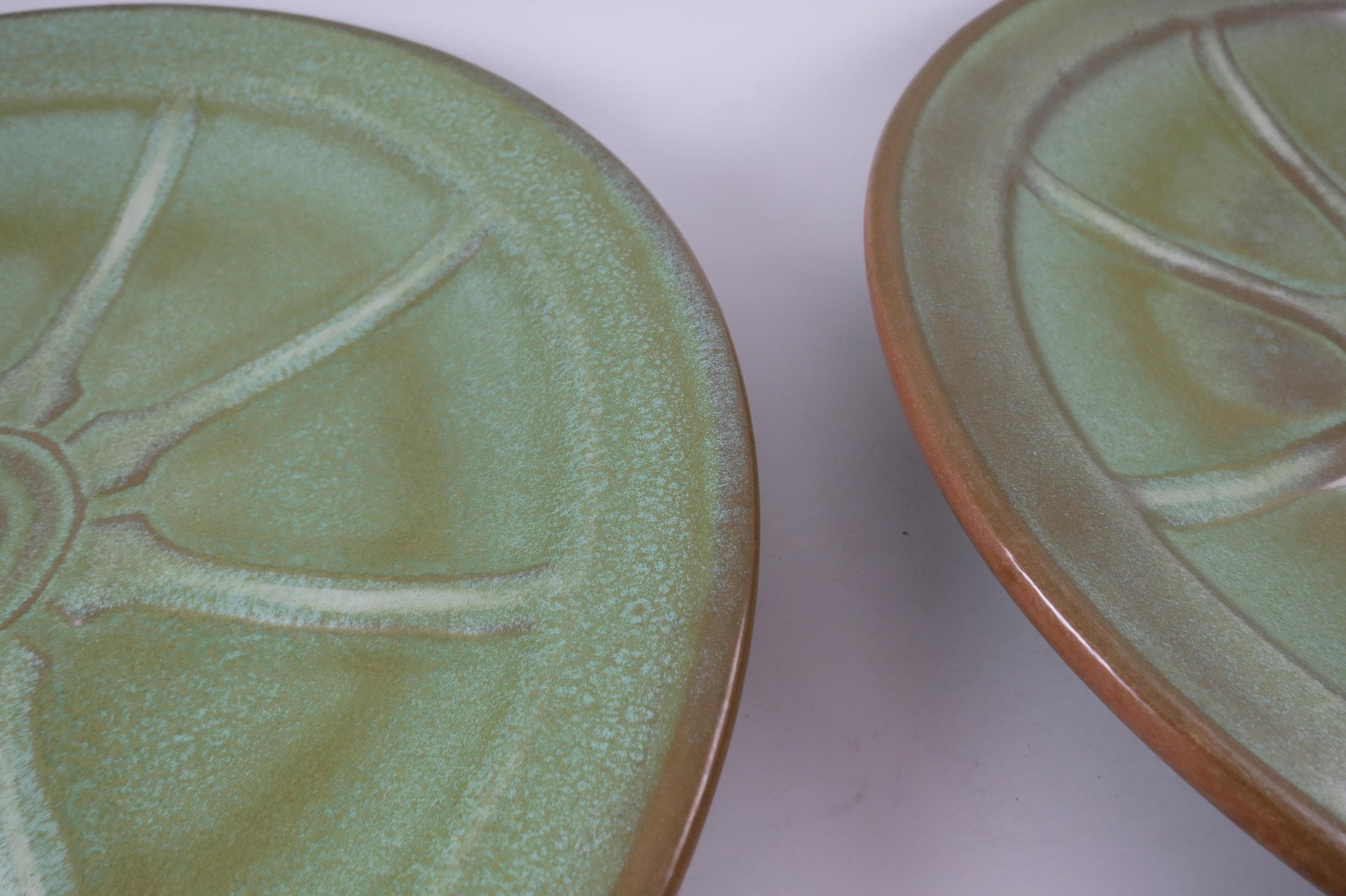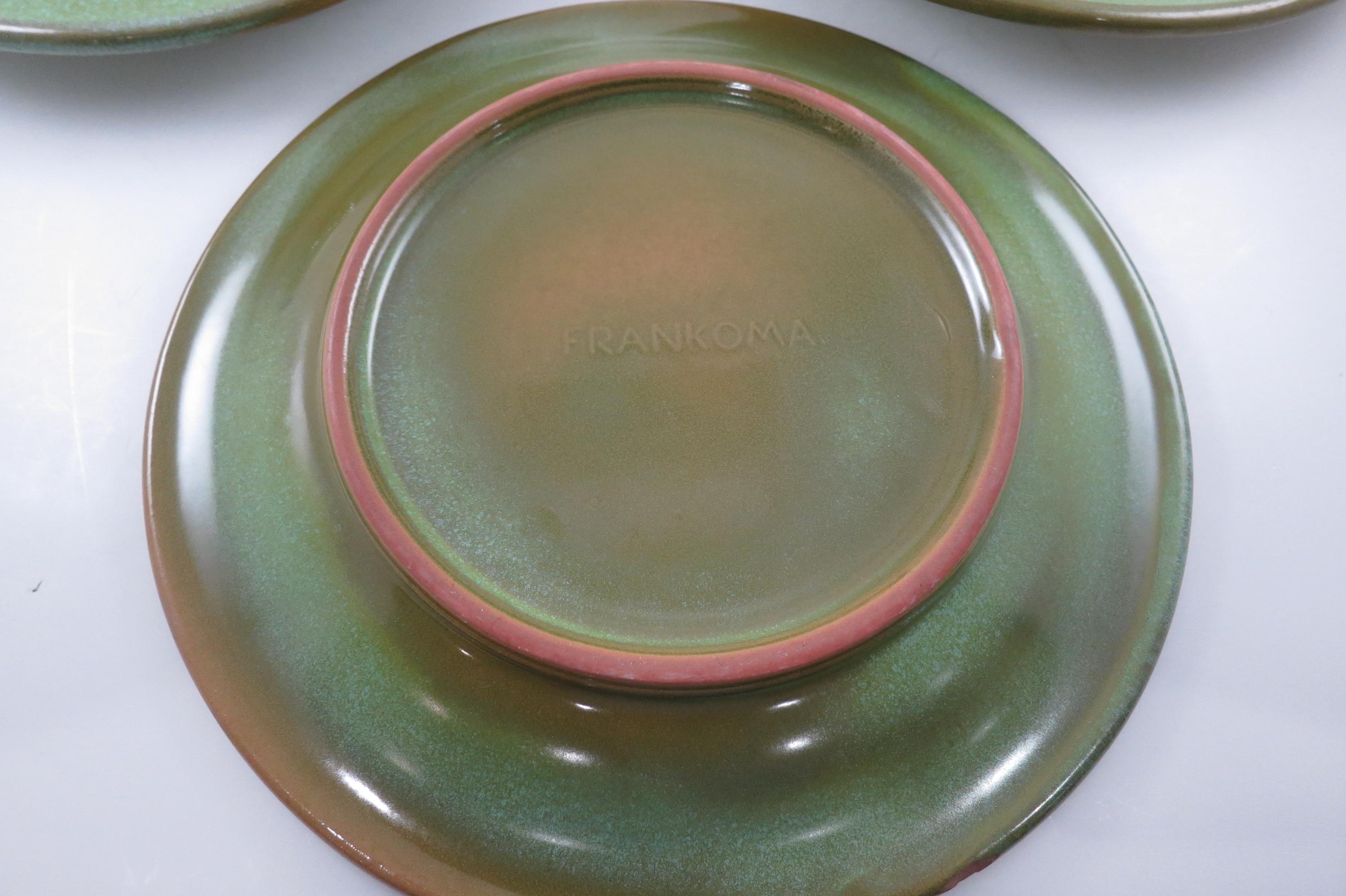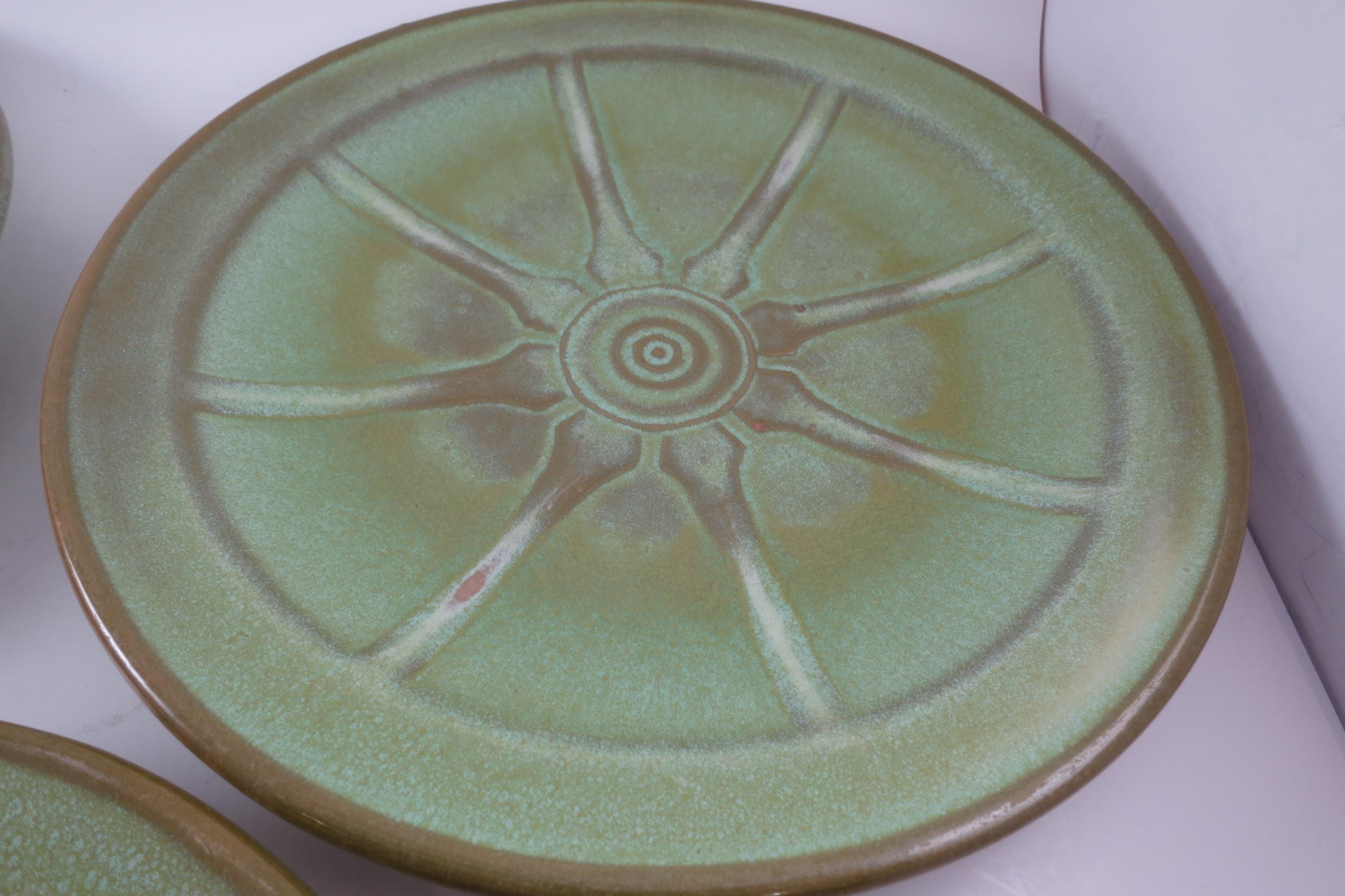 Vintage Frankoma Wagon Wheel Dinner Plates, Prairie Green, Set of 3