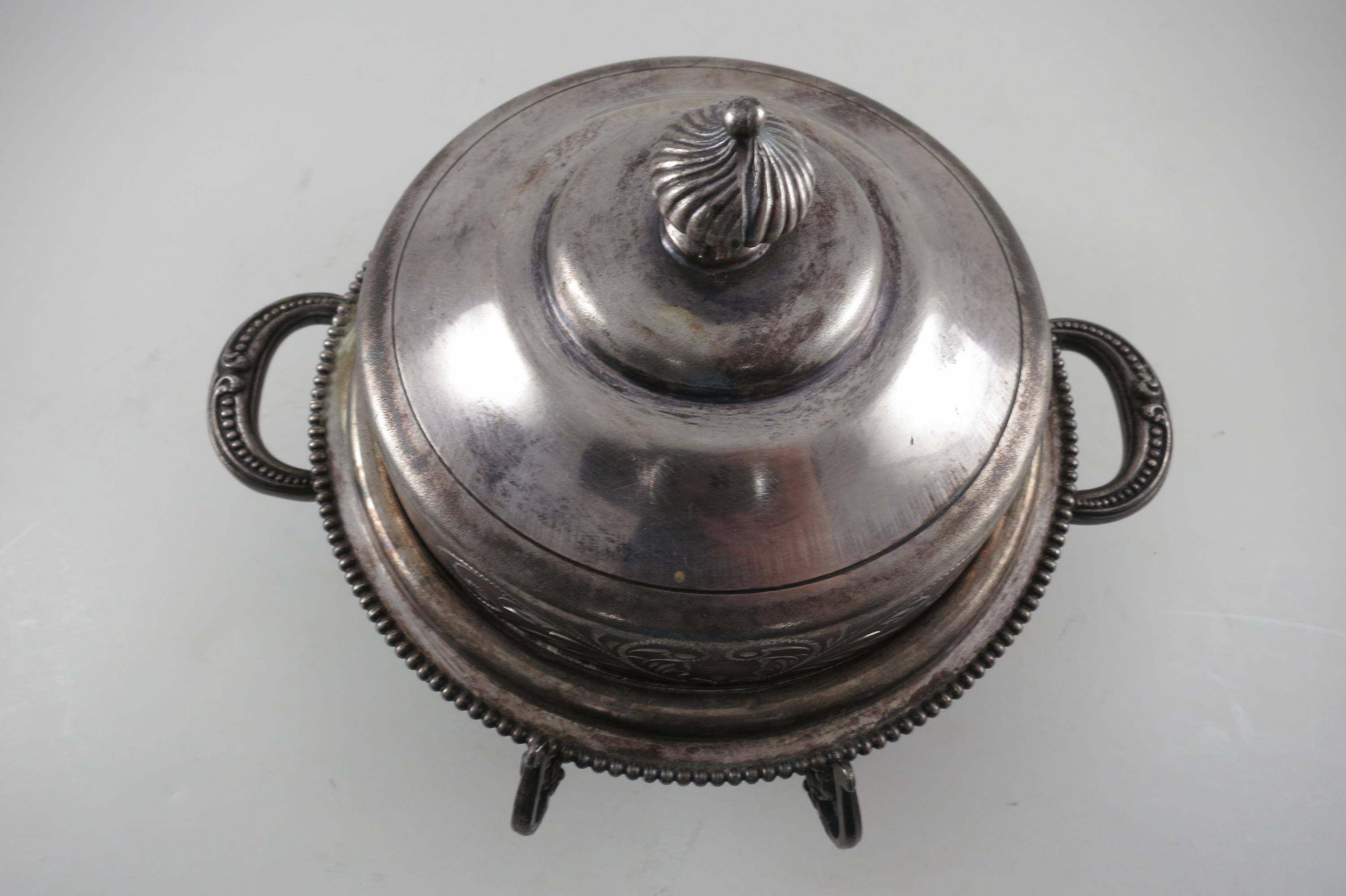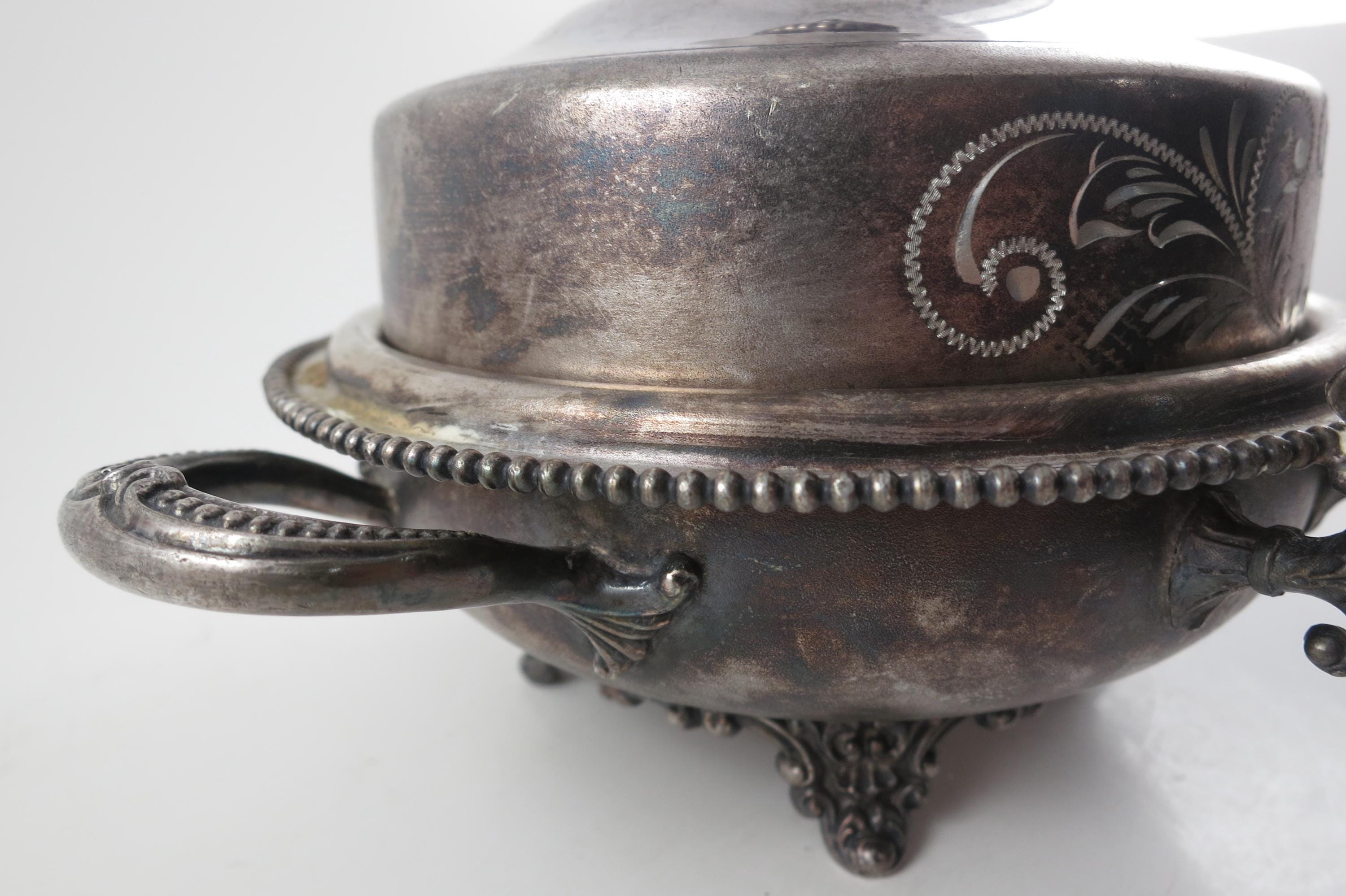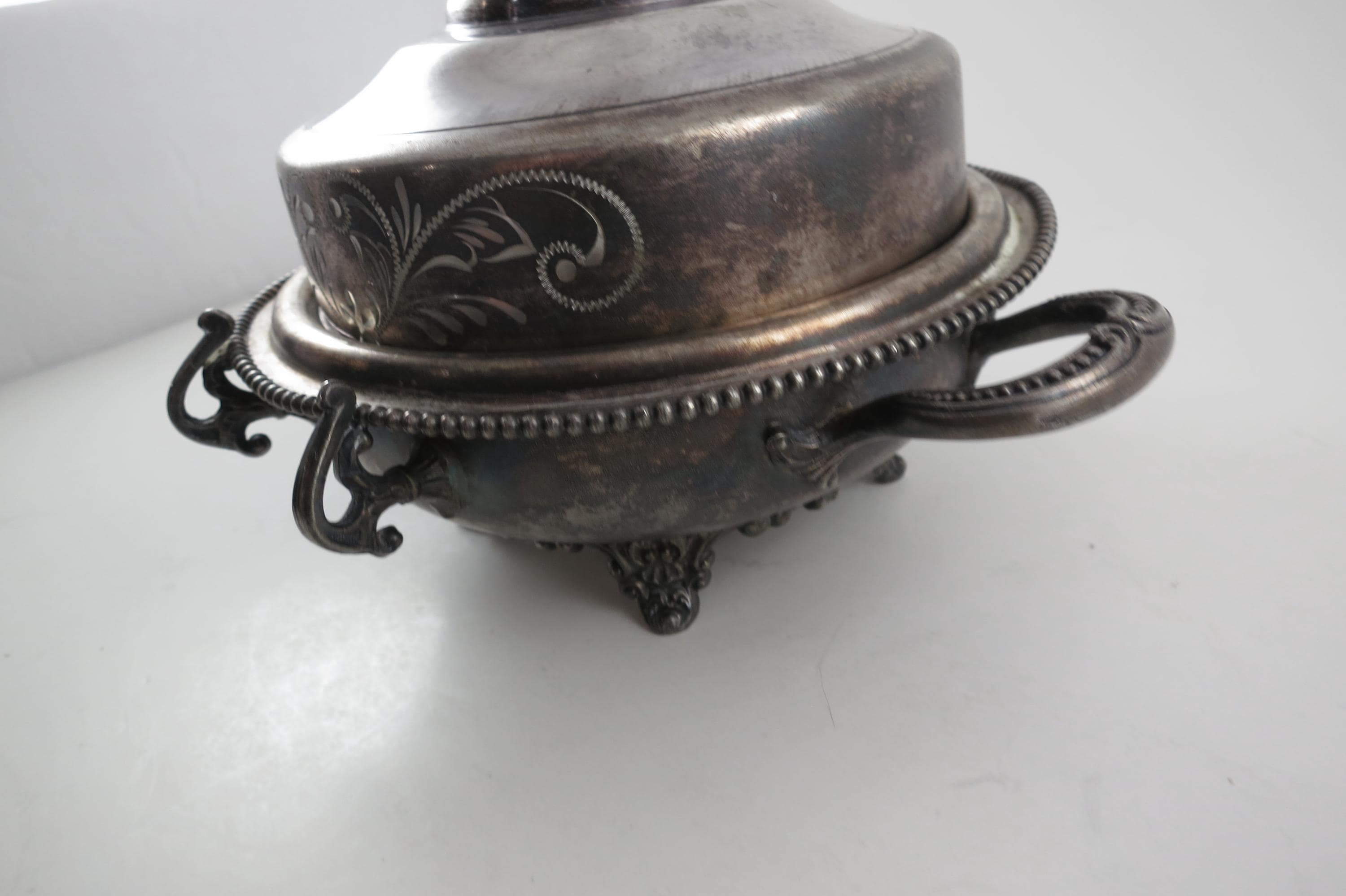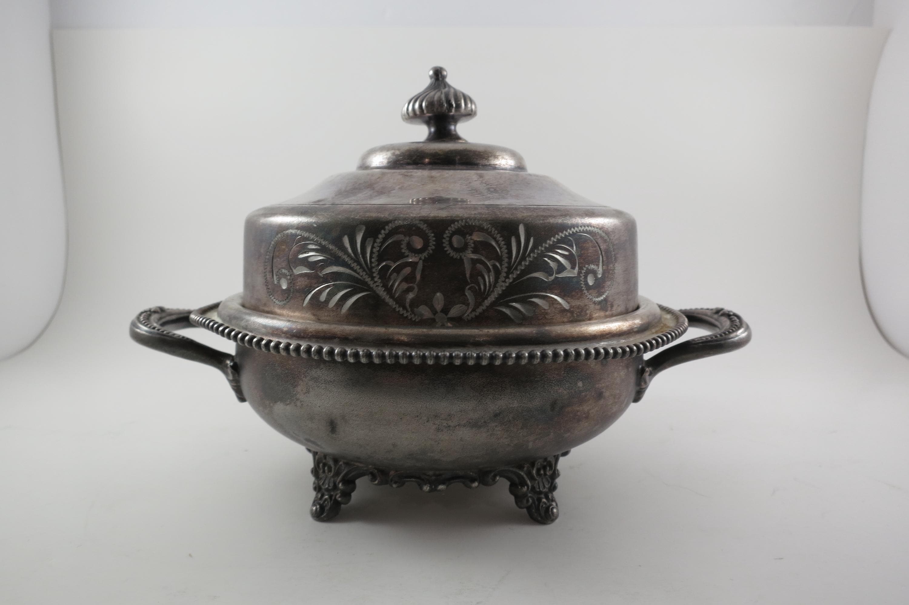 Antique Benedict Quadruple Plate Butter Cooler Bowl w/ Spoon Holders. It is in very good condition but will need a good cleaning/polishing. Measures 7 1/2 inches wide and 6 inches tall.