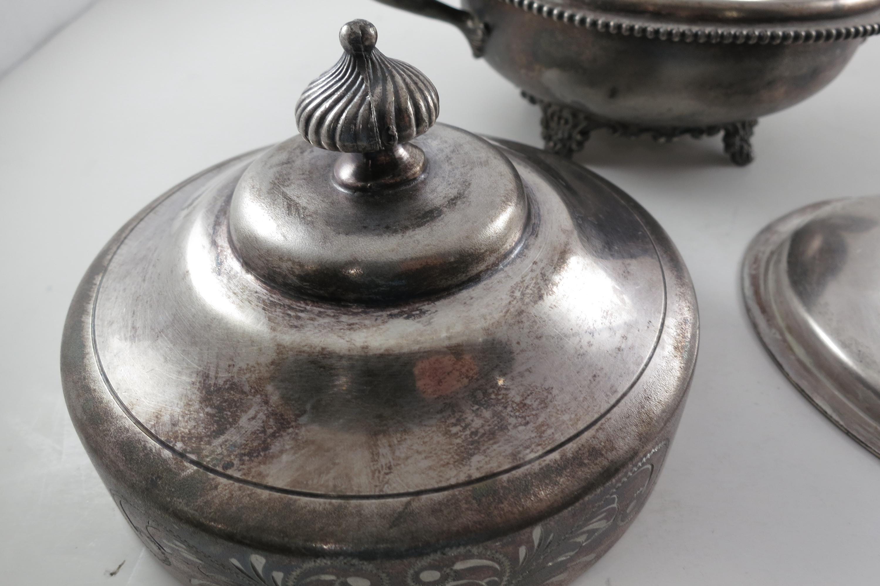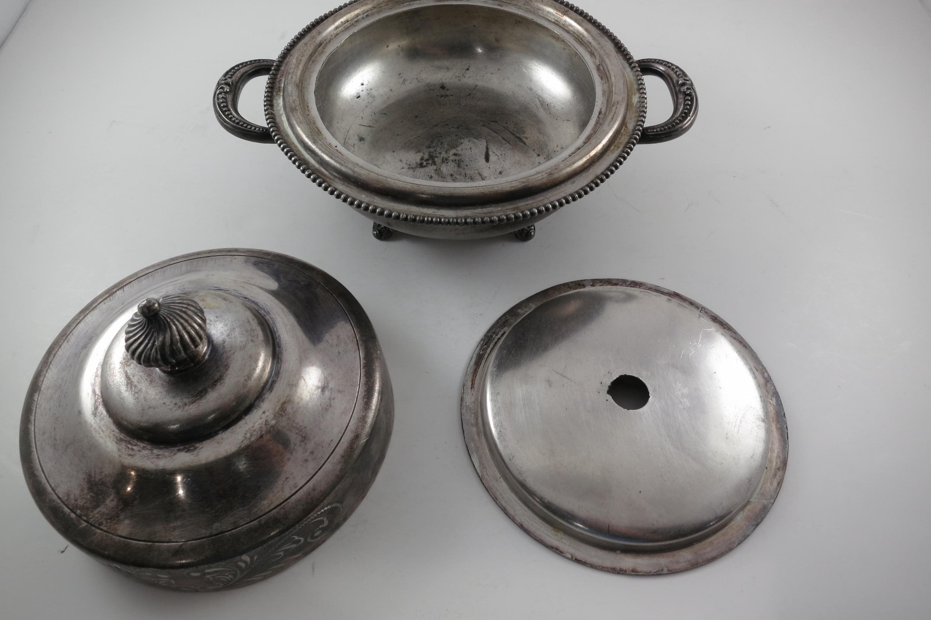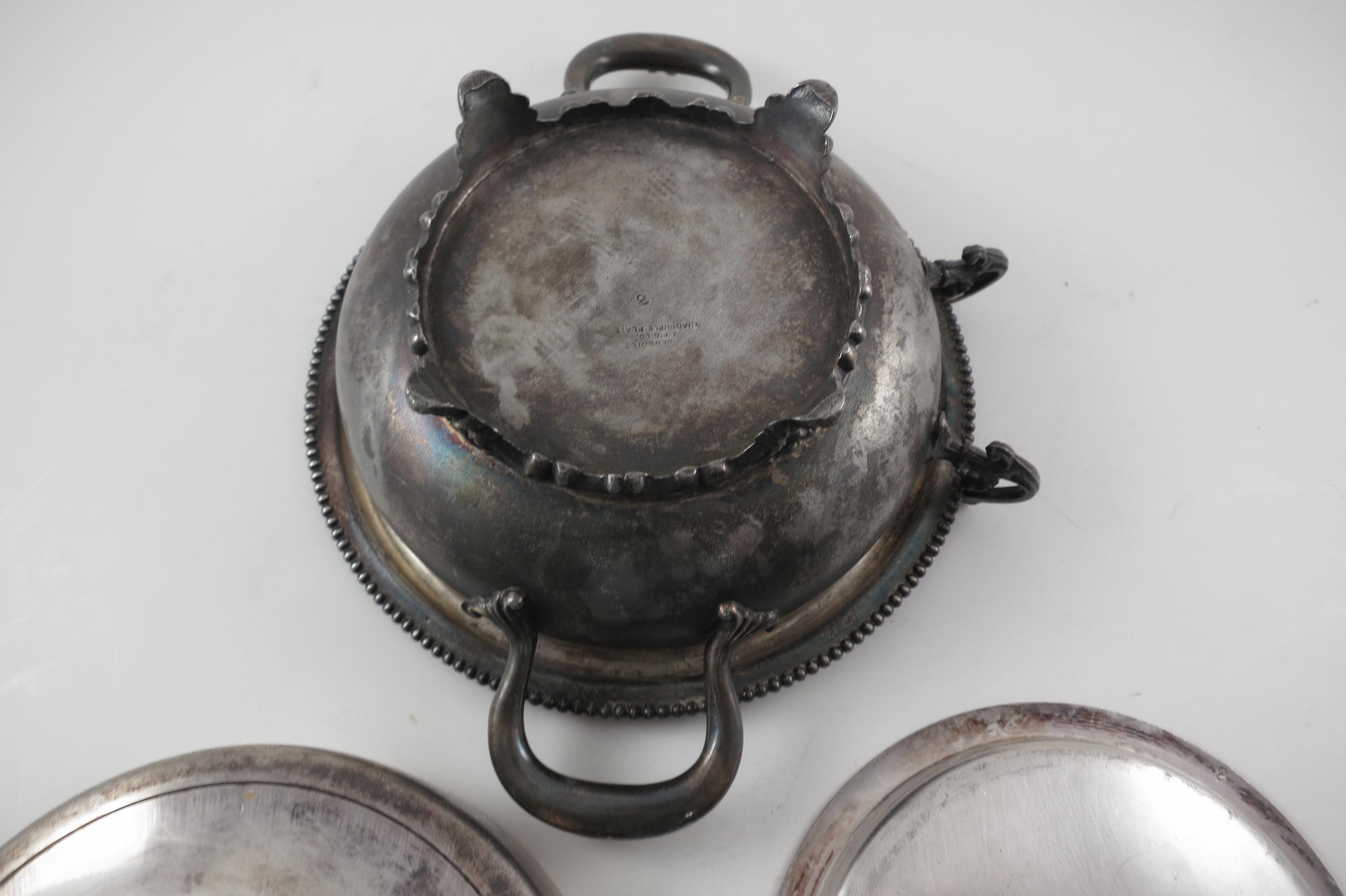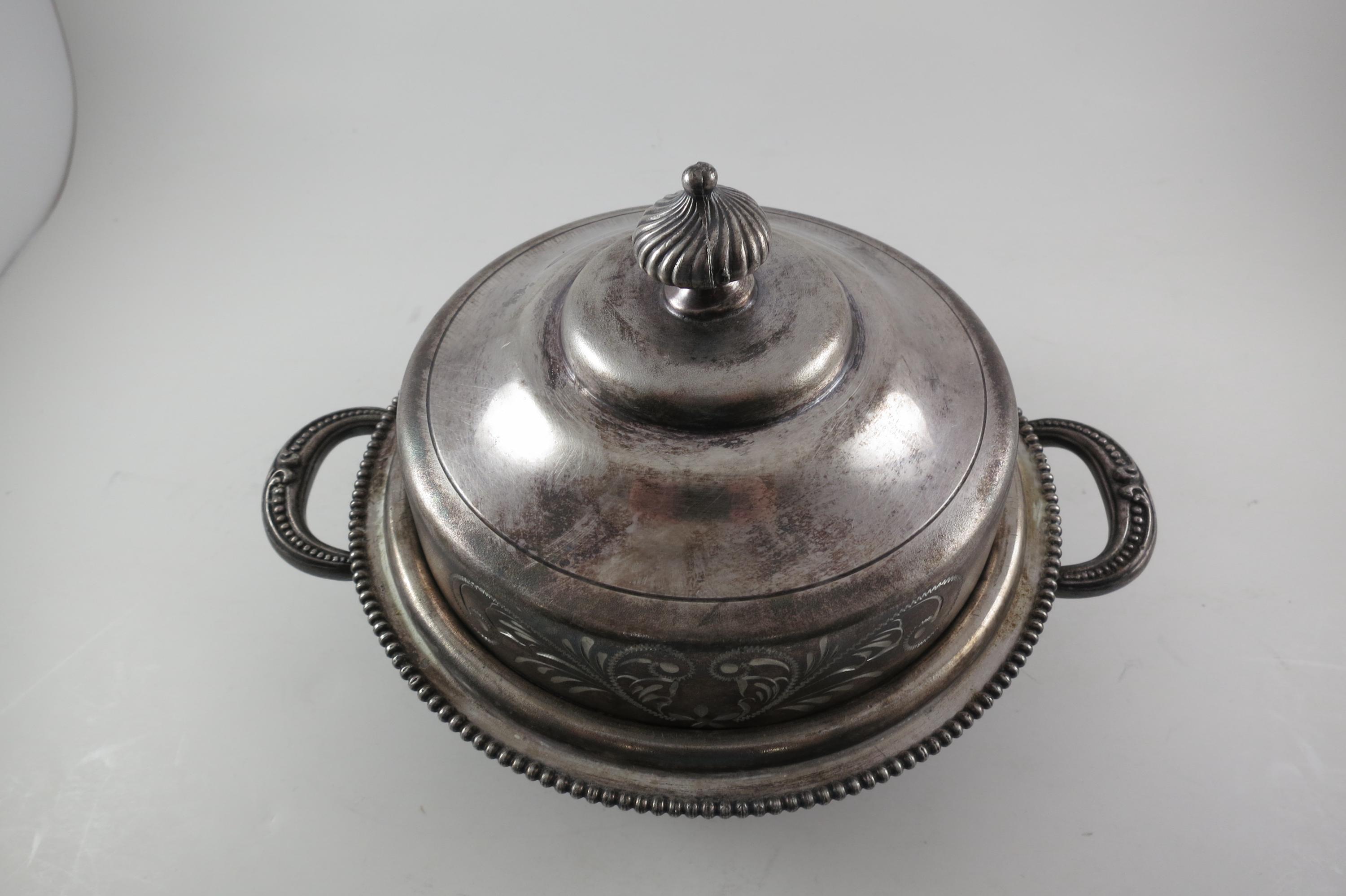 Antique Benedict Quadruple Plate Butter Cooler Bowl w/ Spoon Holders. It is in very good condition but will need a good cleaning/polishing. Measures 7 1/2 inches wide and 6 inches tall.