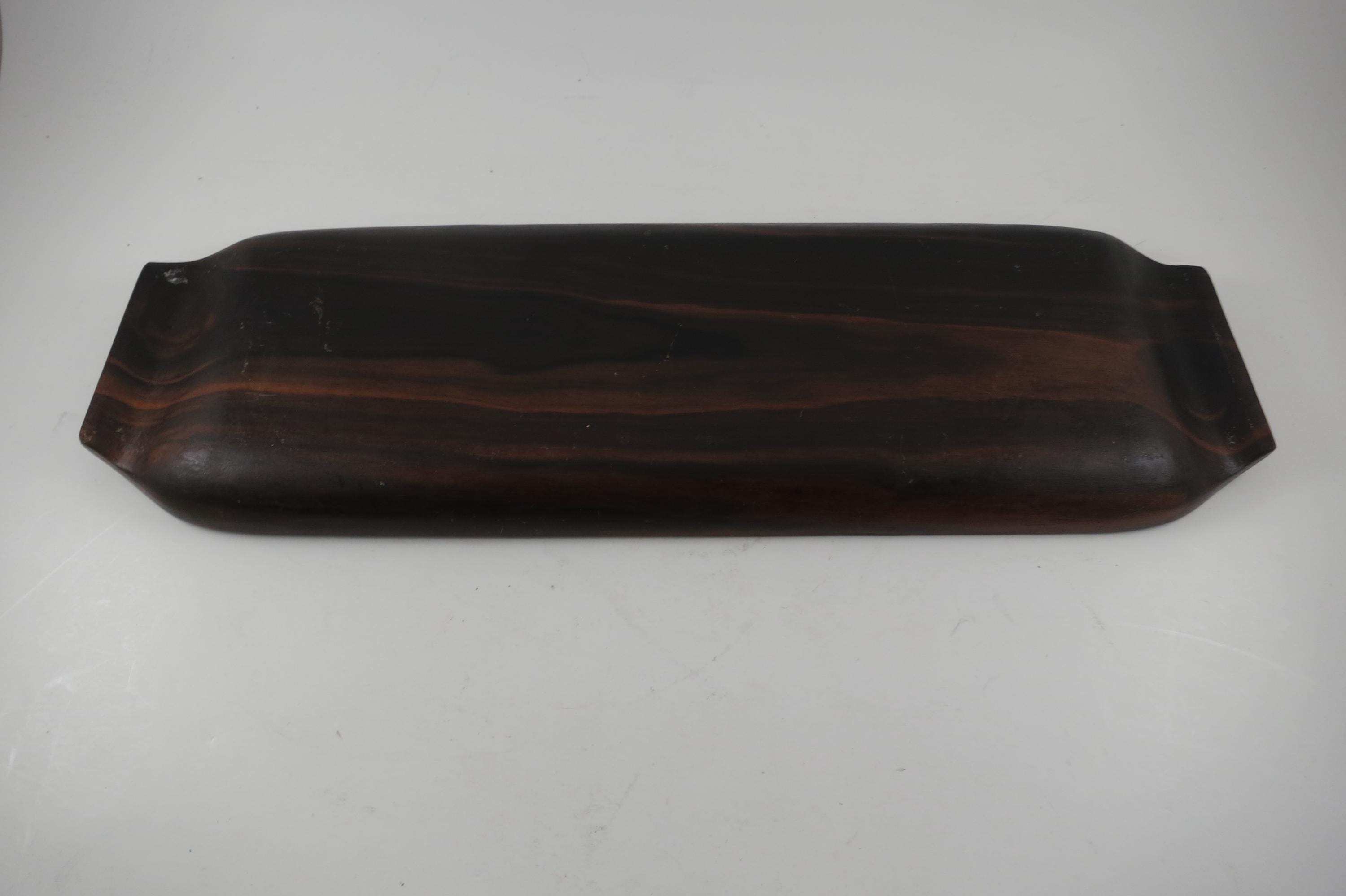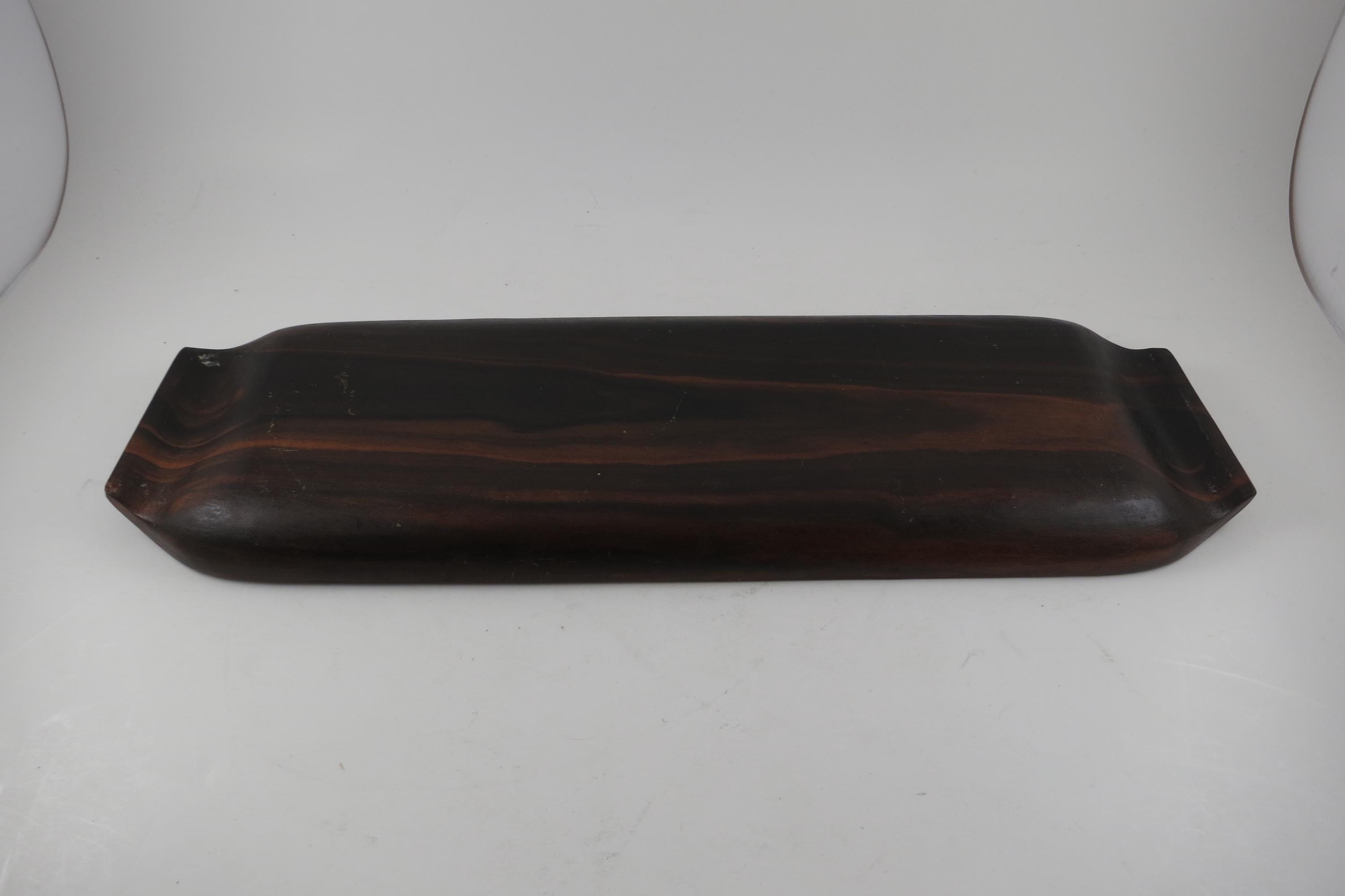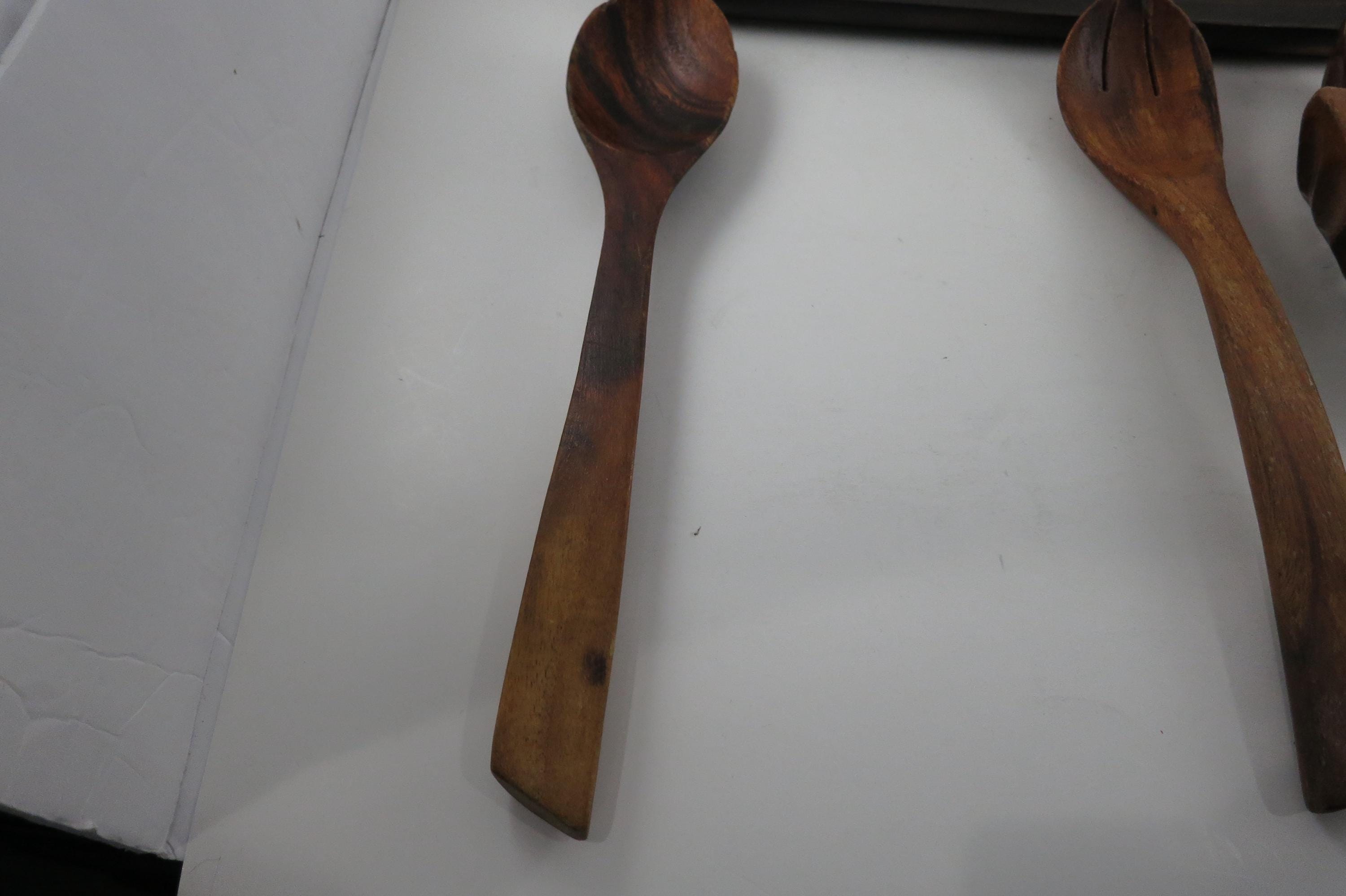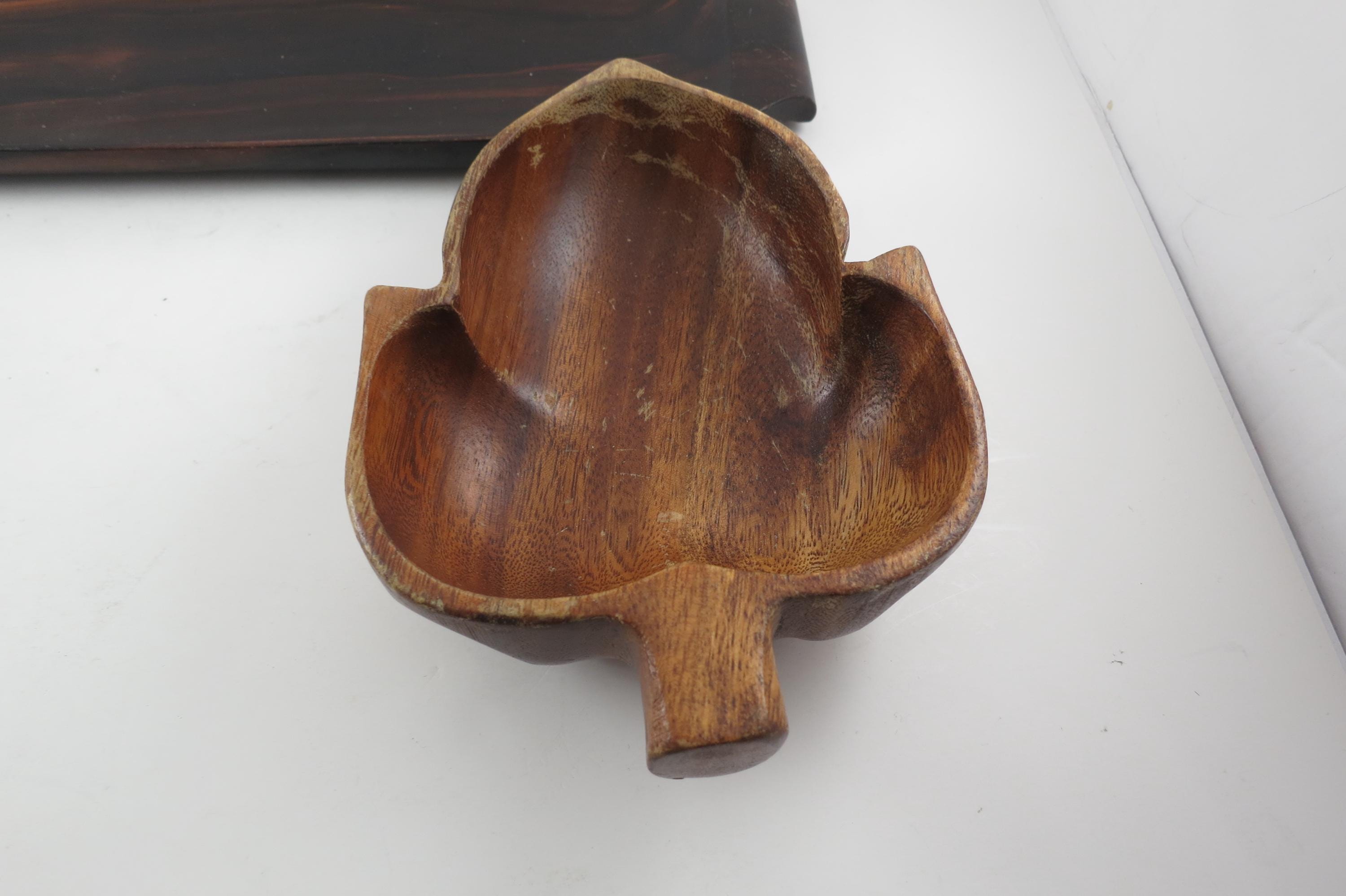 Vintage Monkey Pod Wood Set of 5 Pieces Spoons Nut Shaped Dish Long Tray.