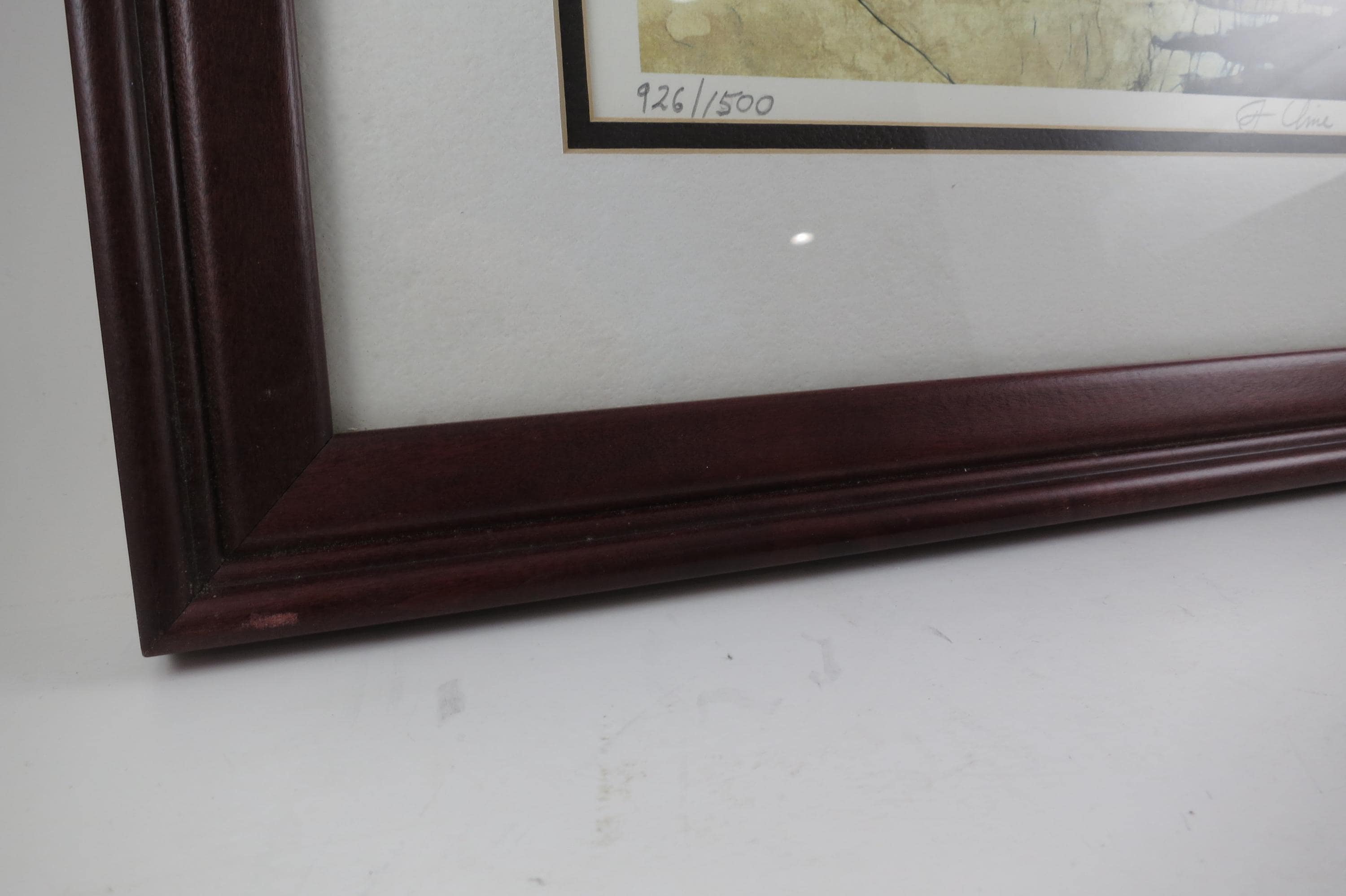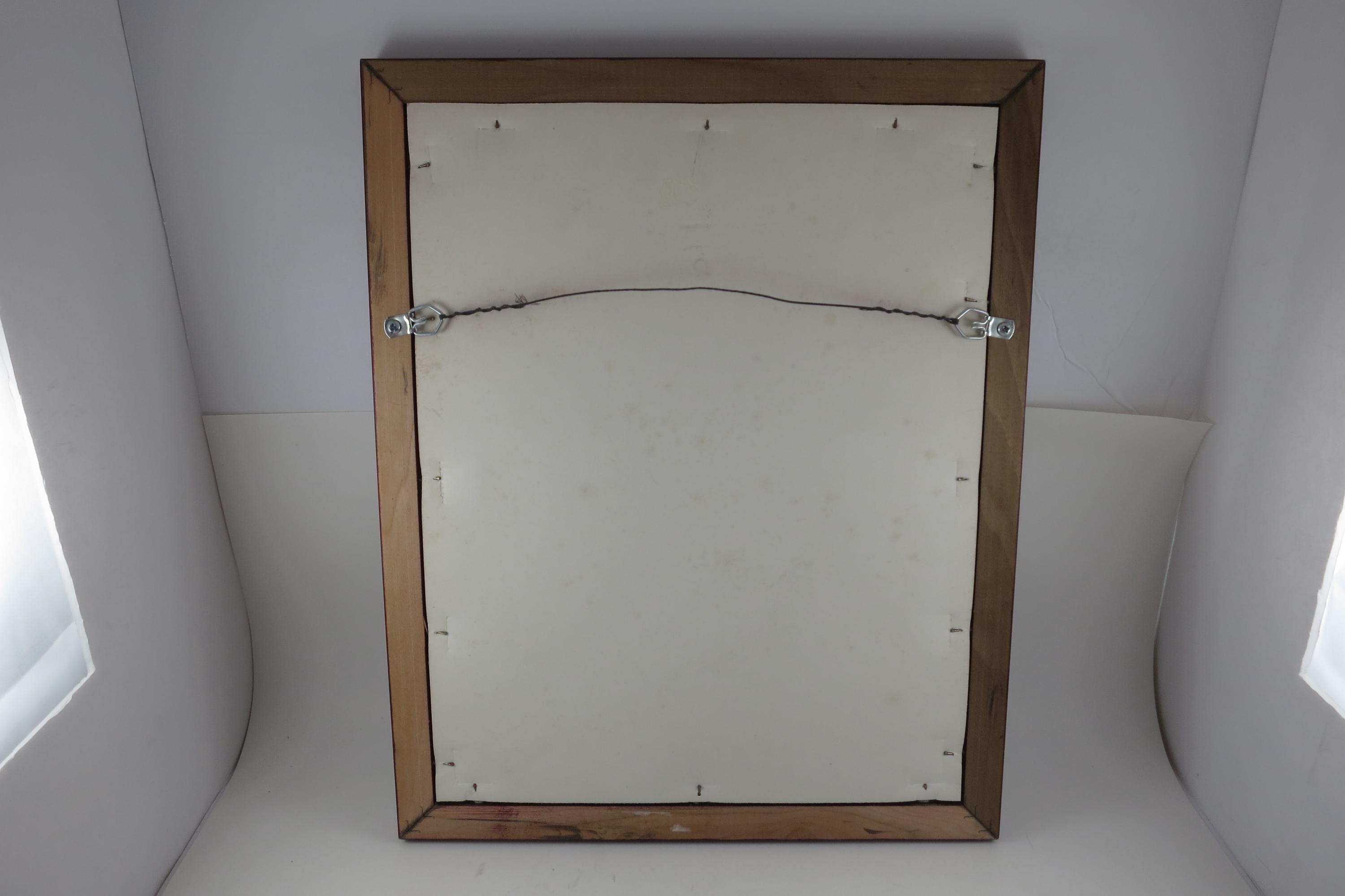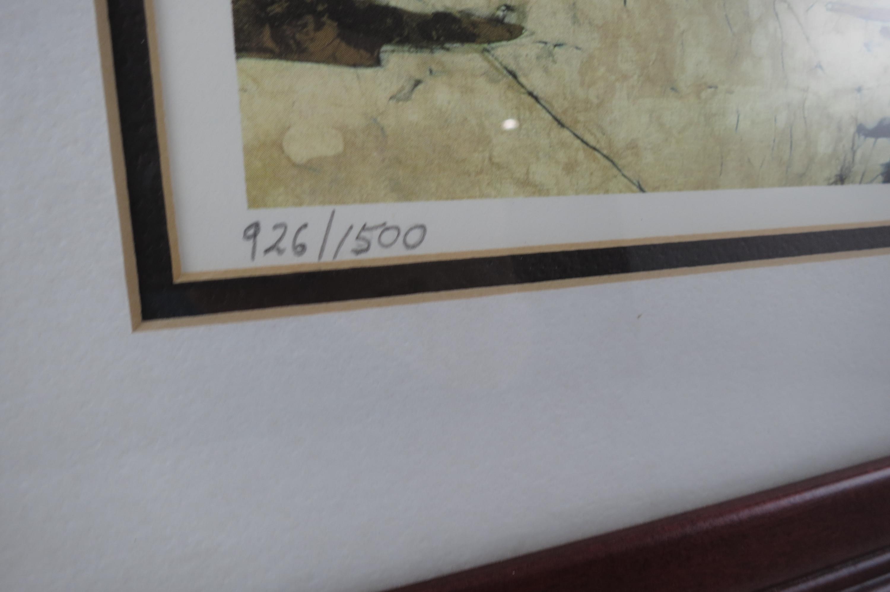 Professionally framed in a red wood frame. Artist signed, measures 12 3/4 inches wide and 16 inches tall. Beautiful piece of Art!!