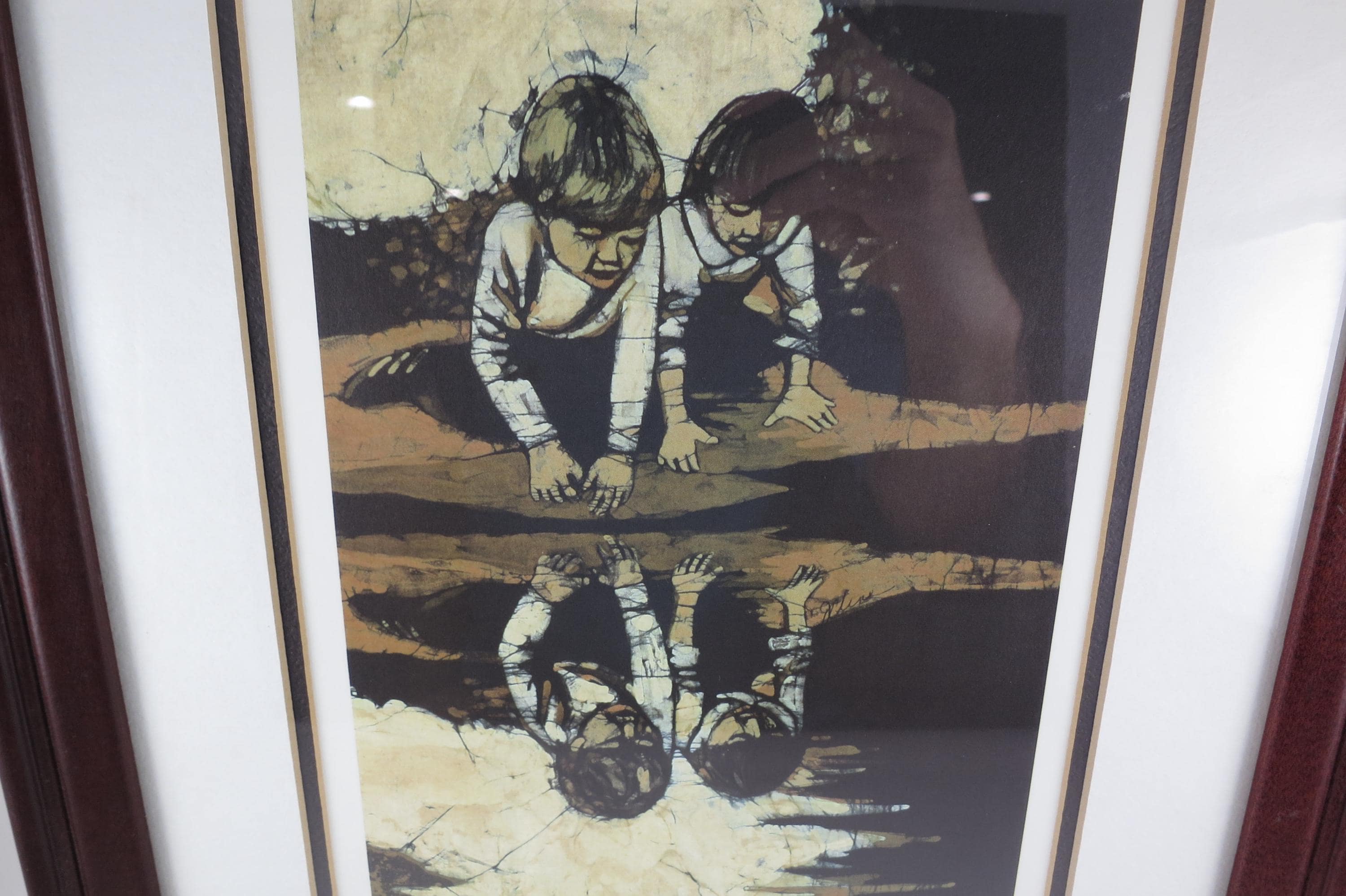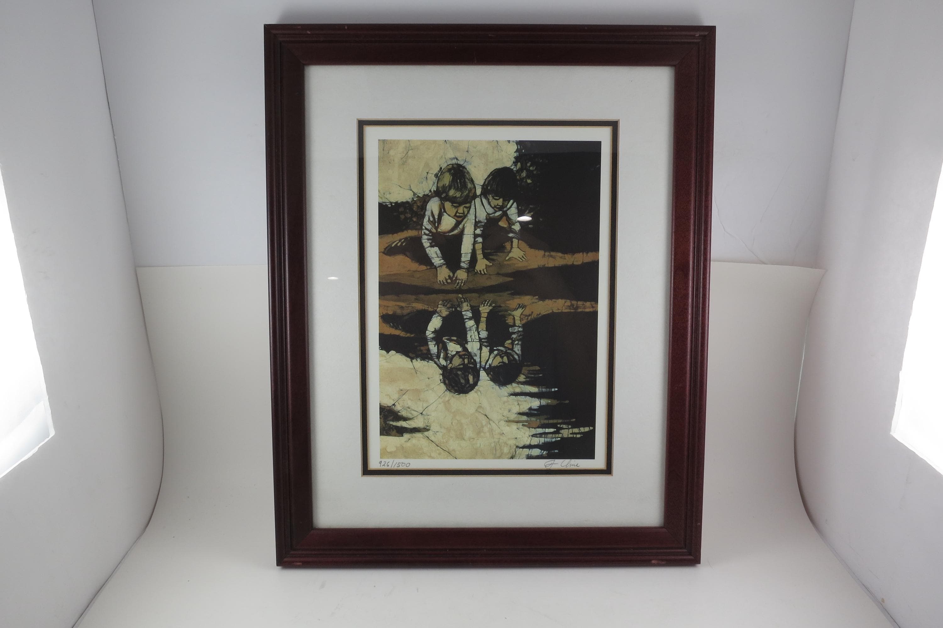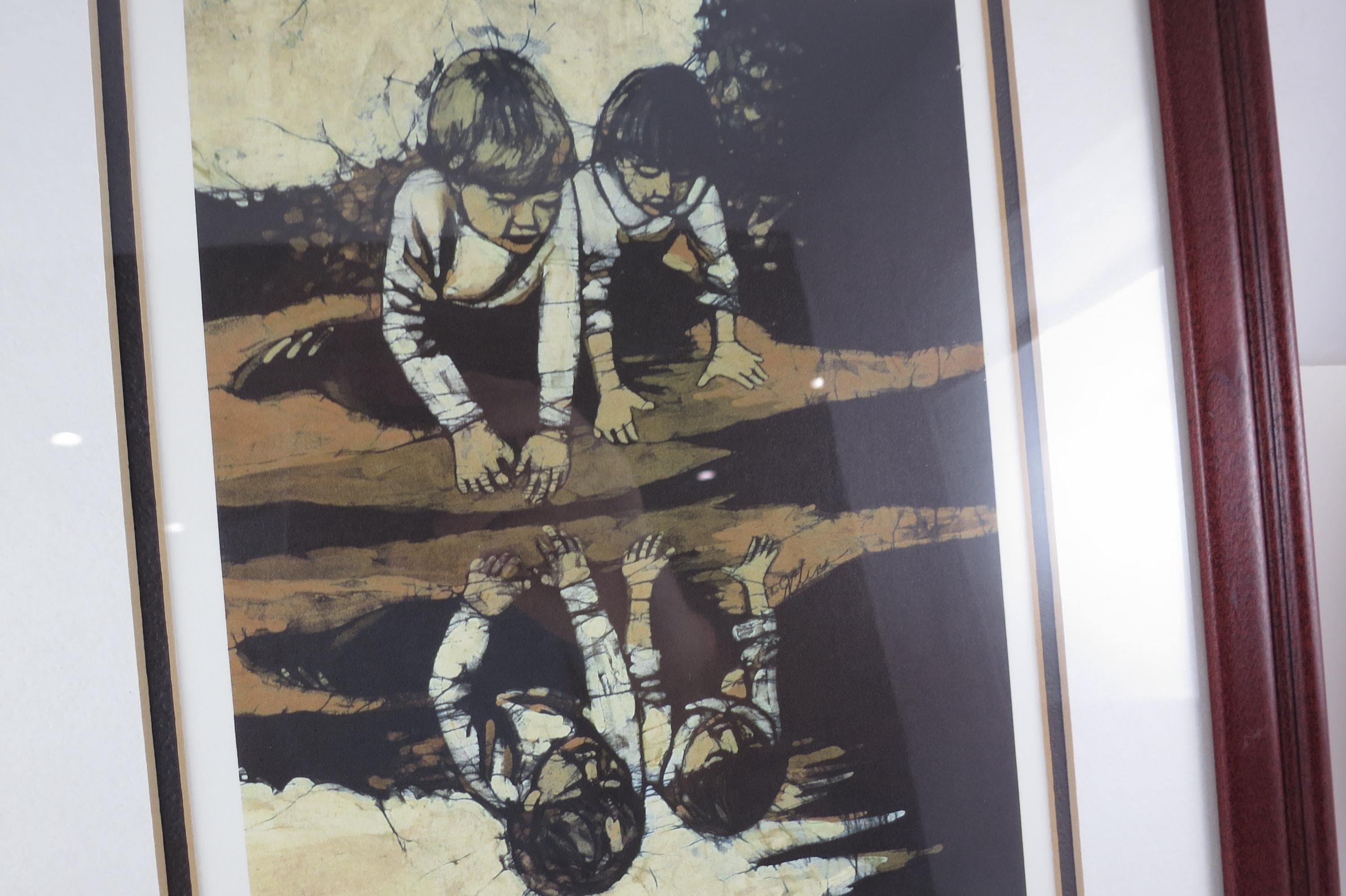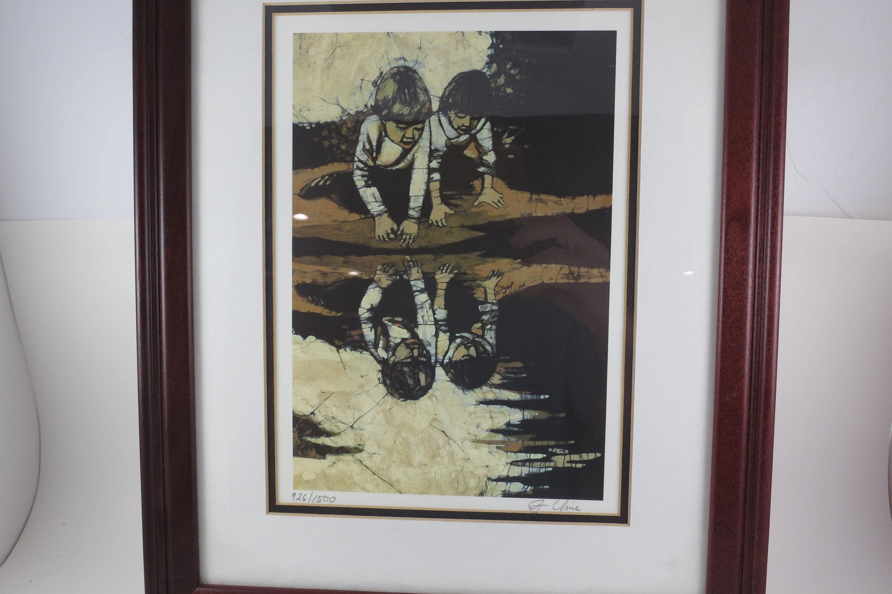 J Cline Batik Signed and Numbered Print Two Children Reflections 926/1500 16x12.