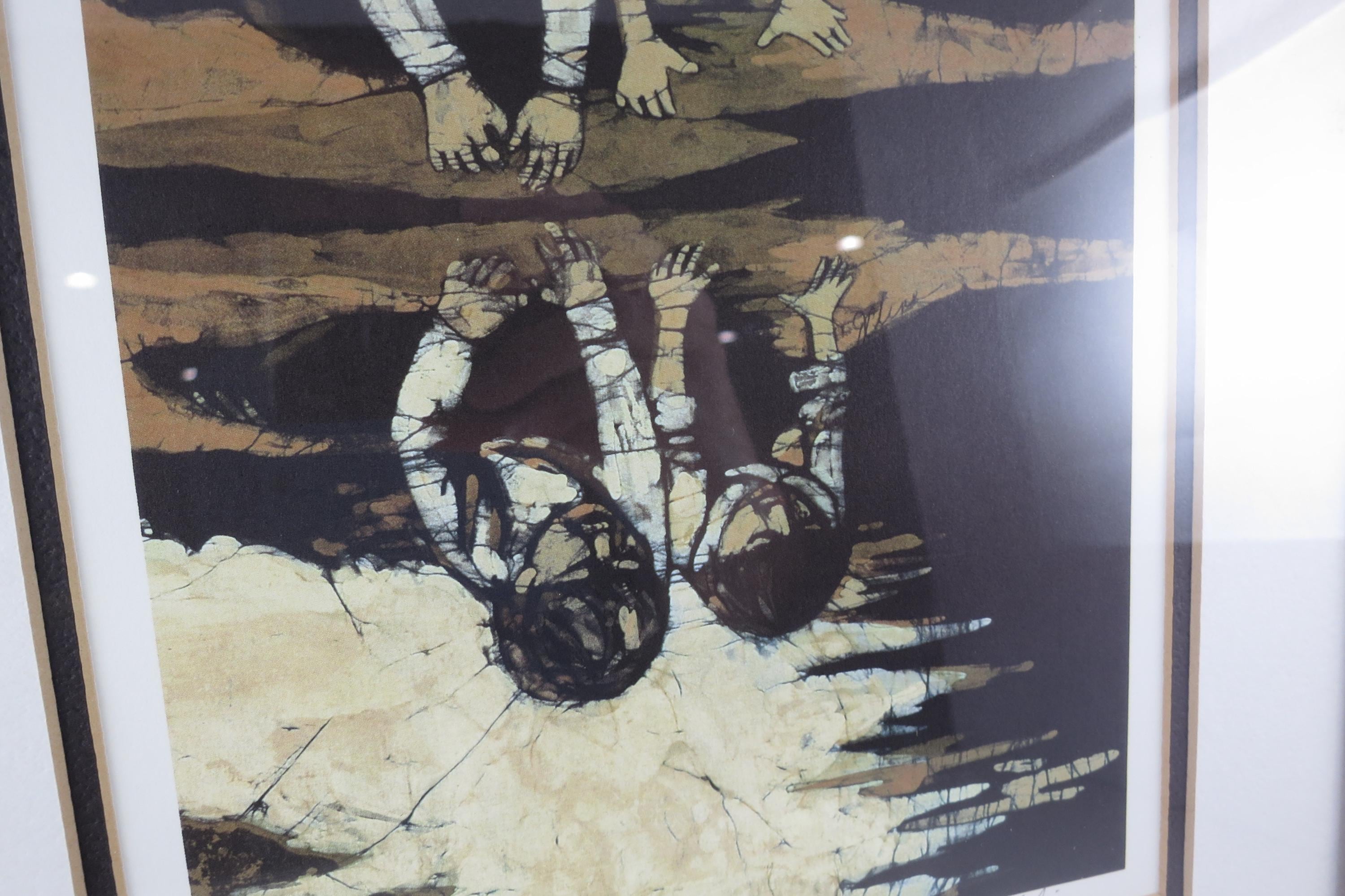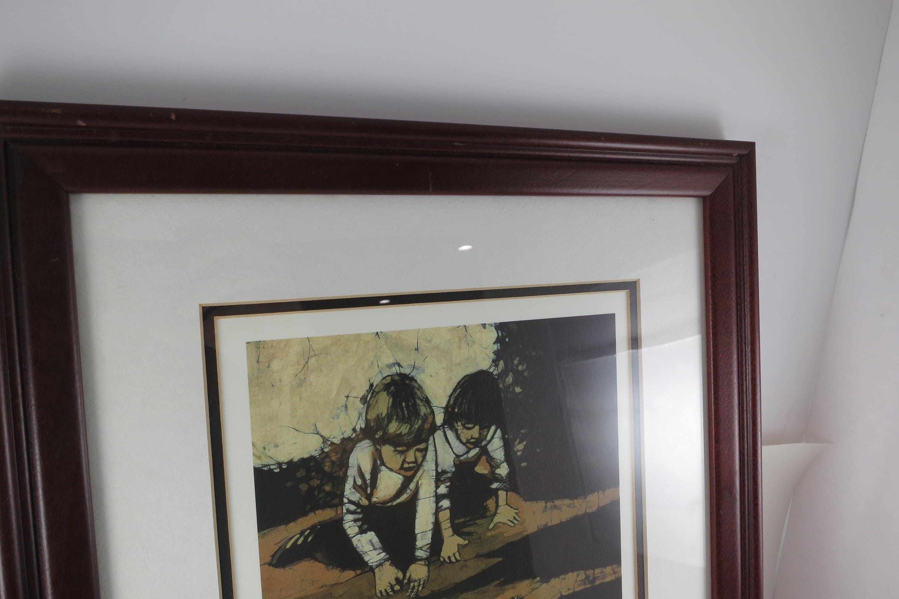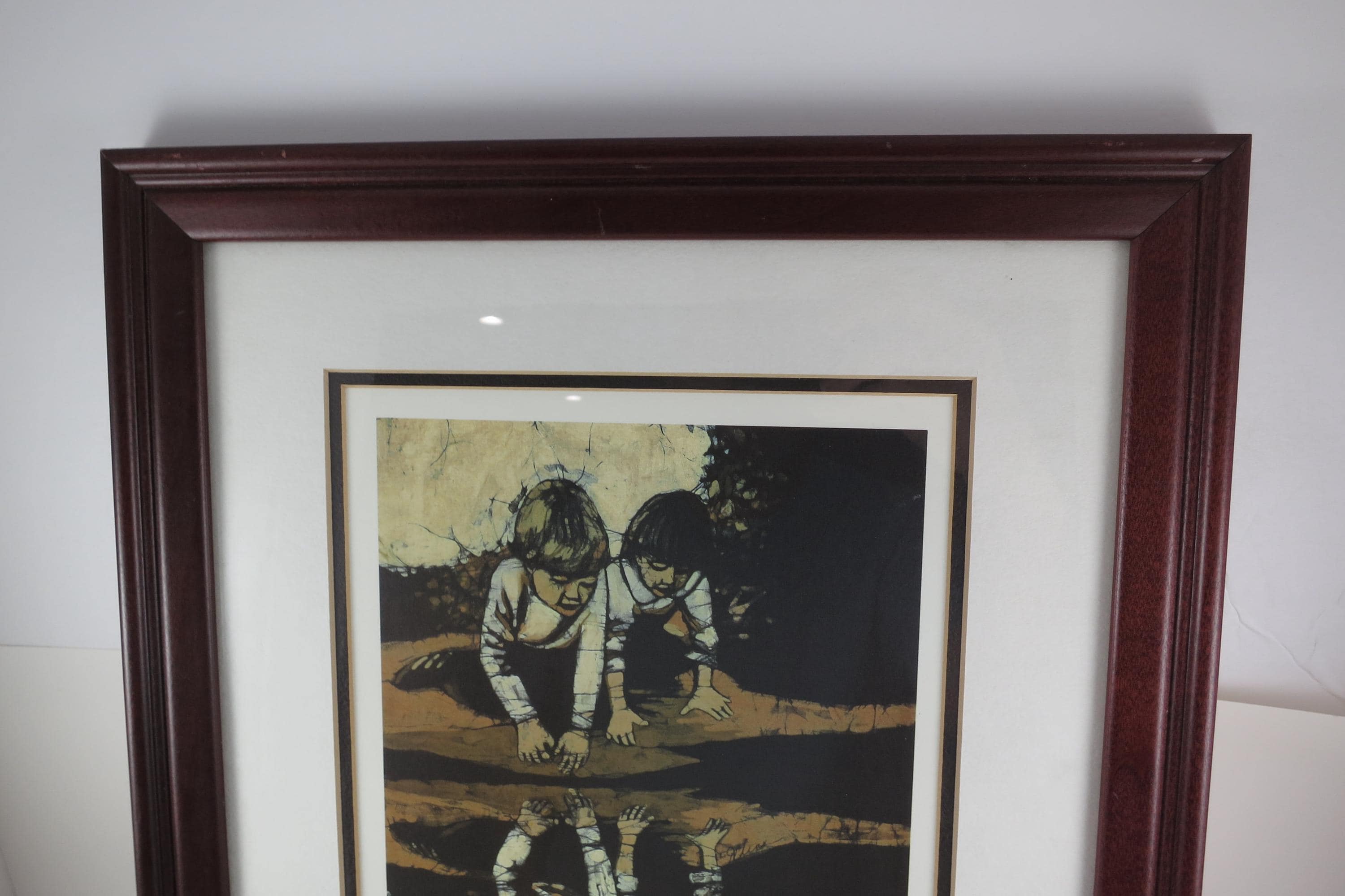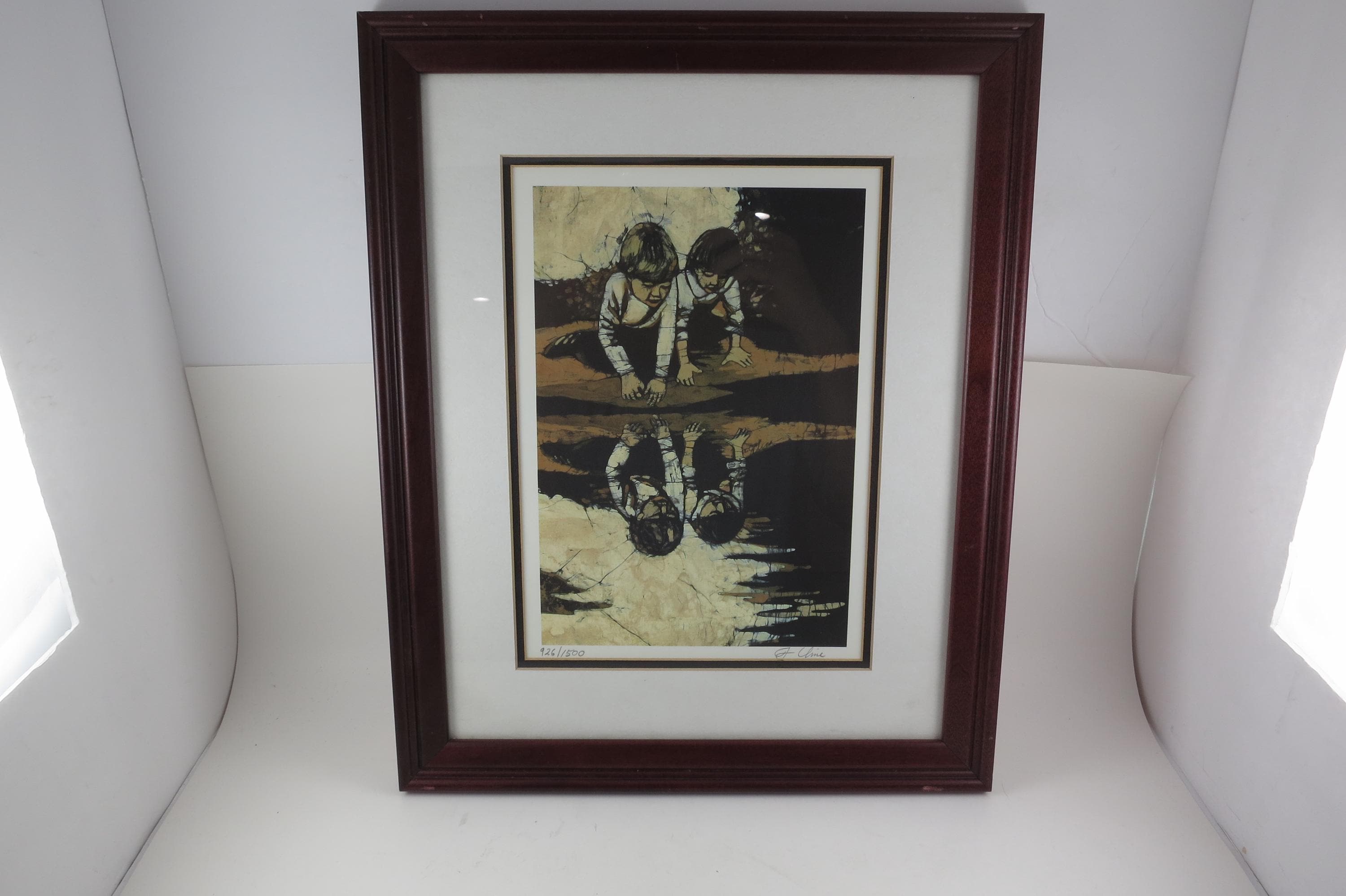 J Cline Batik Signed and Numbered Print Two Children Reflections 926/1500 16x12.