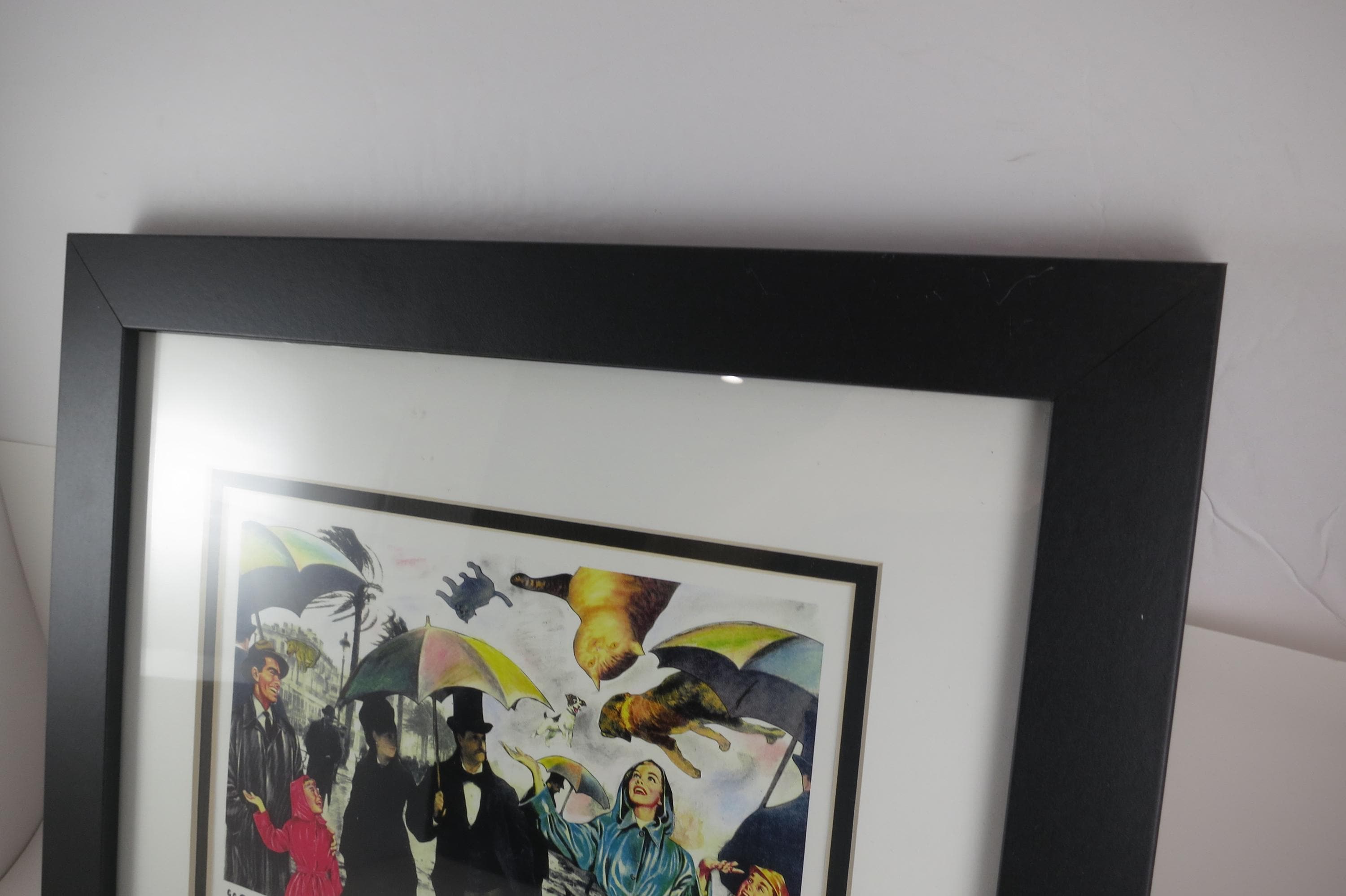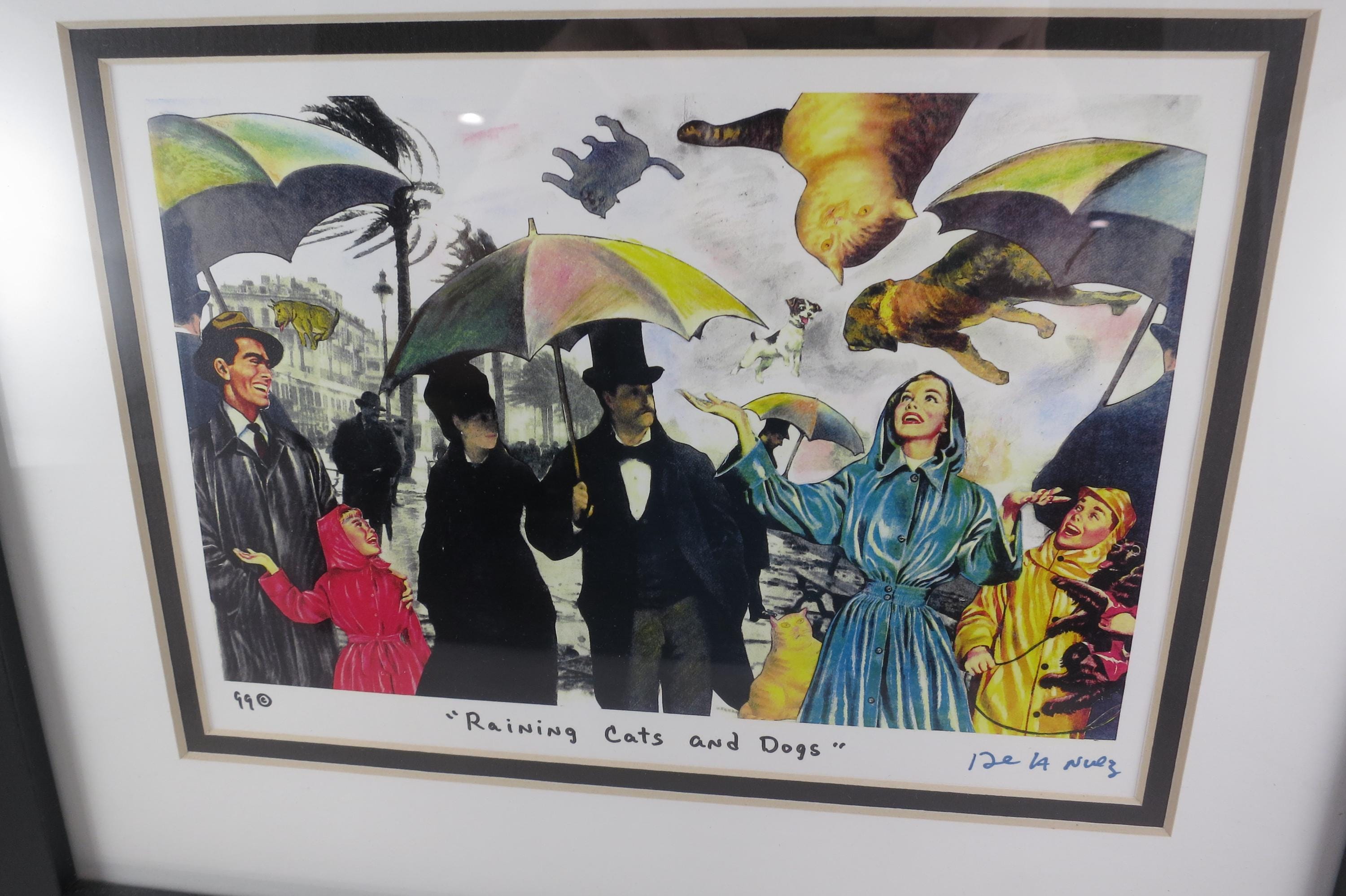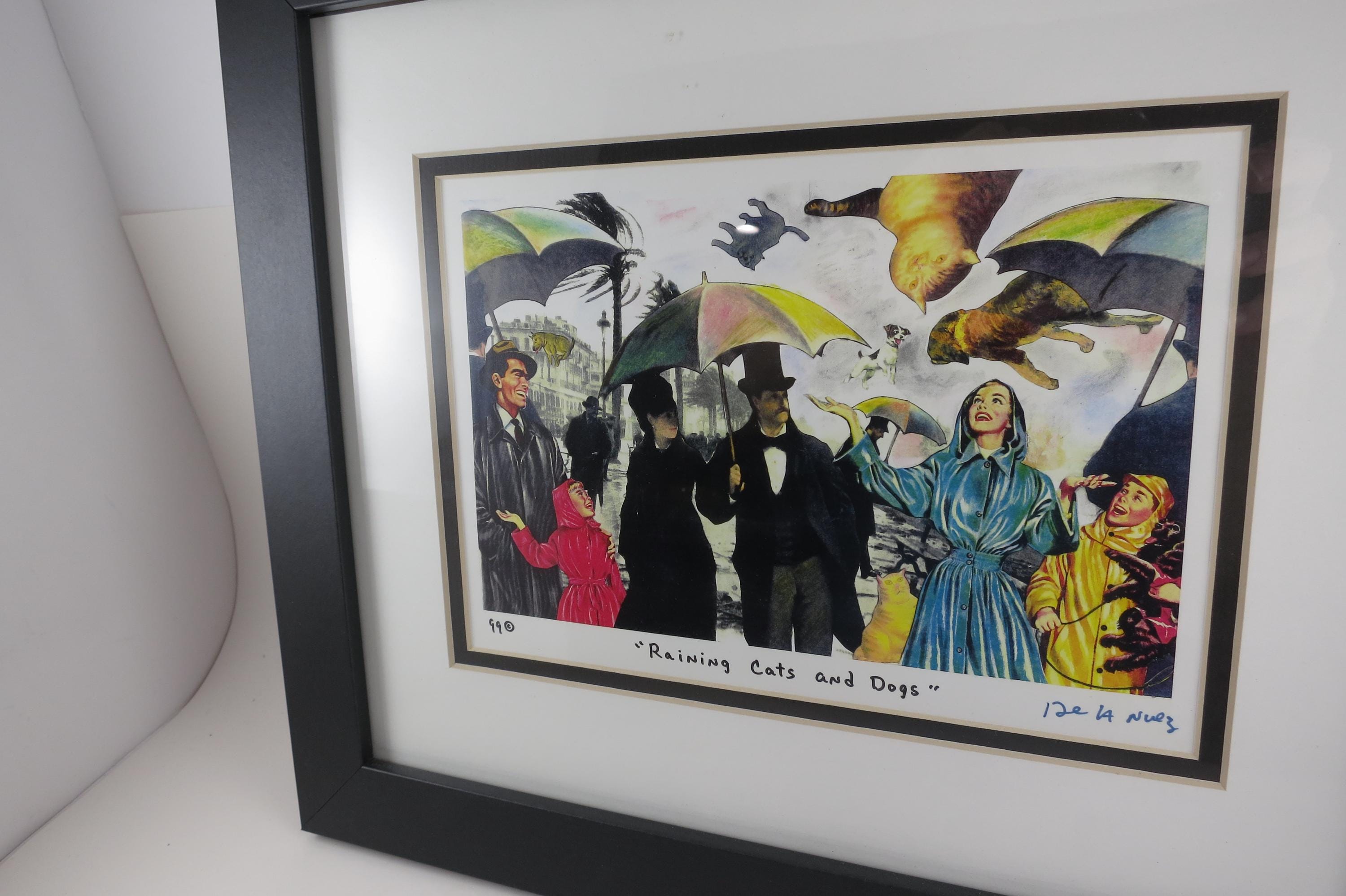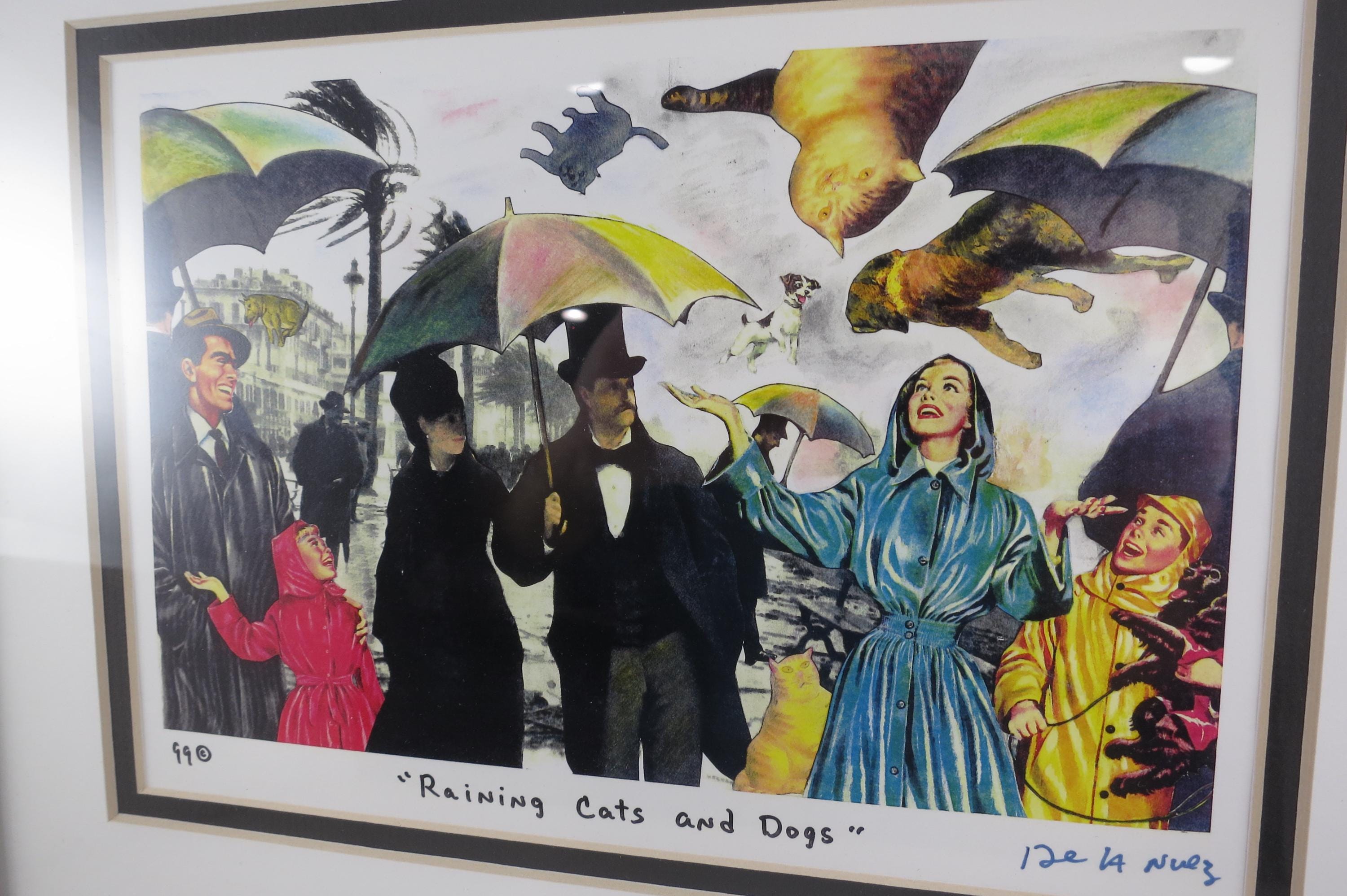 1999 Raining Cats and Dogs Nelson De La Nuez Artist Signed and Framed Litho 14x12.