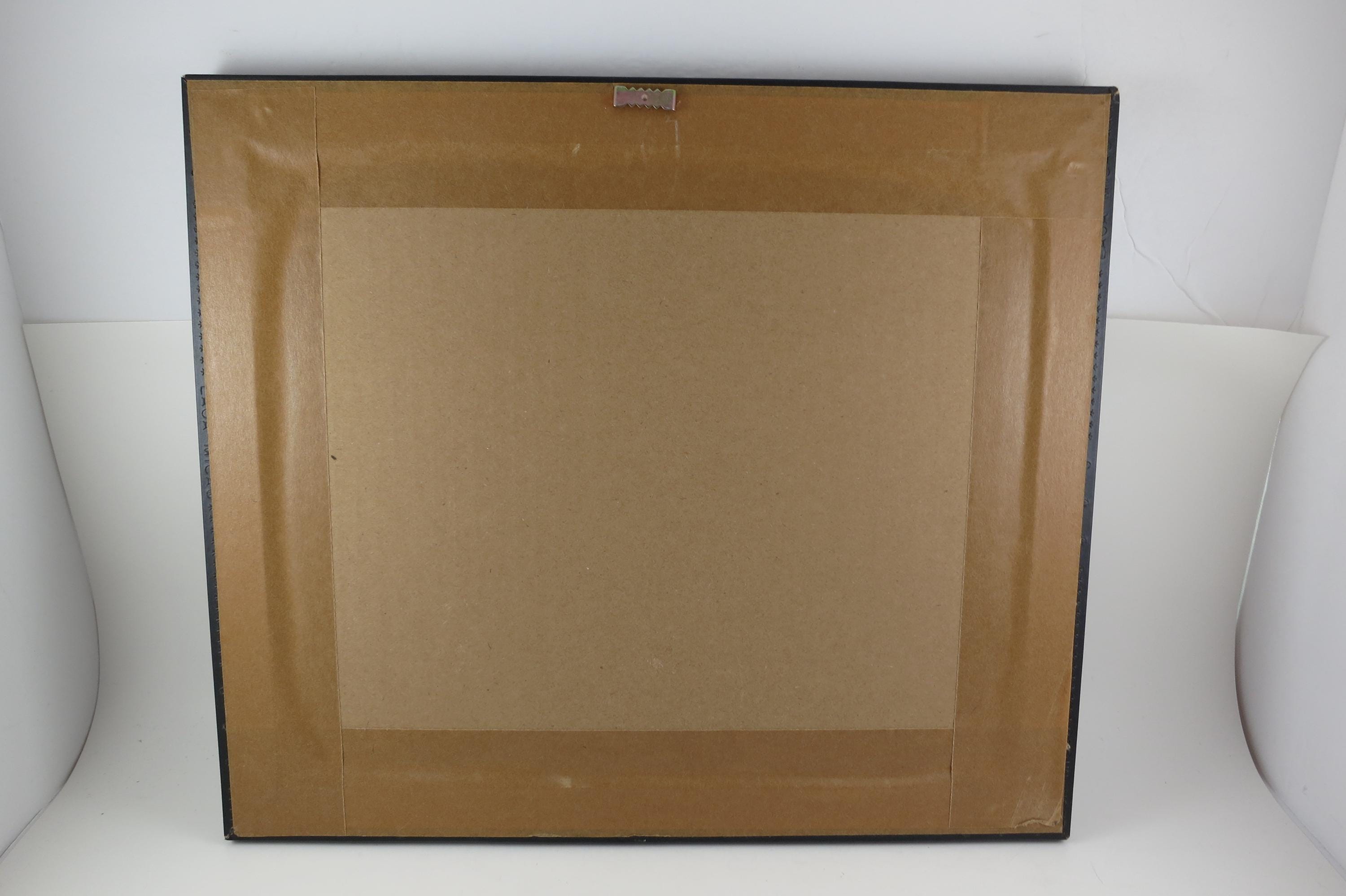 Professionally framed in a black wood frame with a white, black and gold triple mat. Artist signed, measures 14 1/4 inches wide and 12 1/4 inches tall. Beautiful piece of Art!!