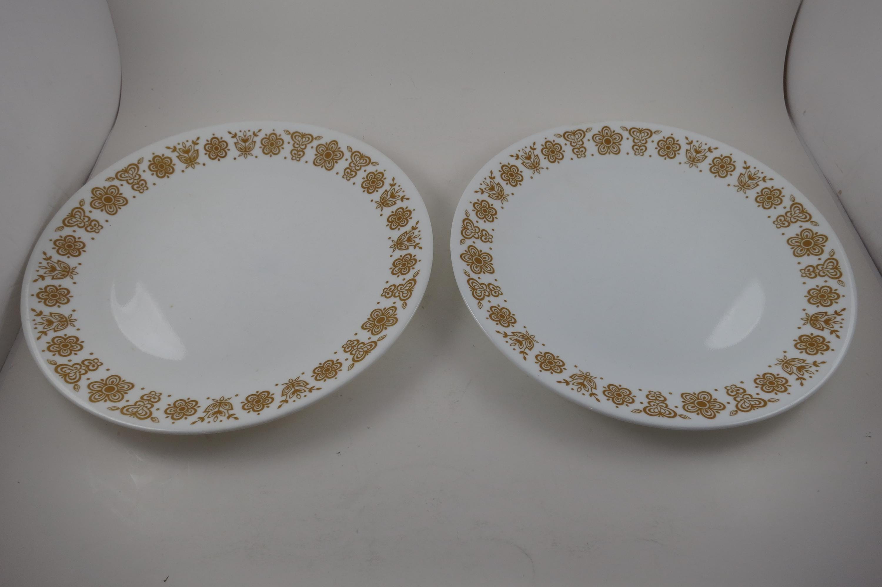 Pair of Vintage Corelle Butterfly Gold 10 Inch Dinner Plates Very Good Used Condition