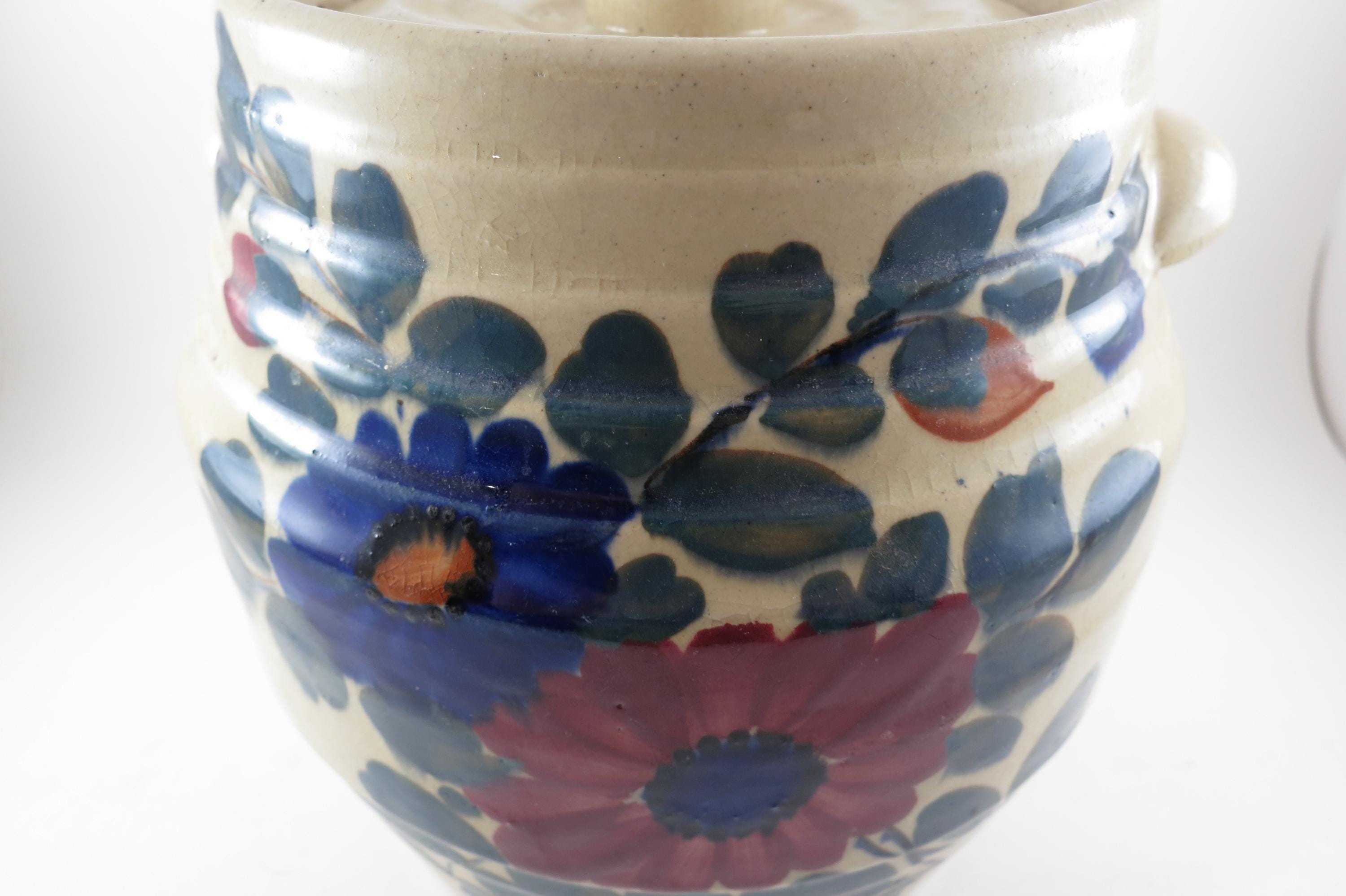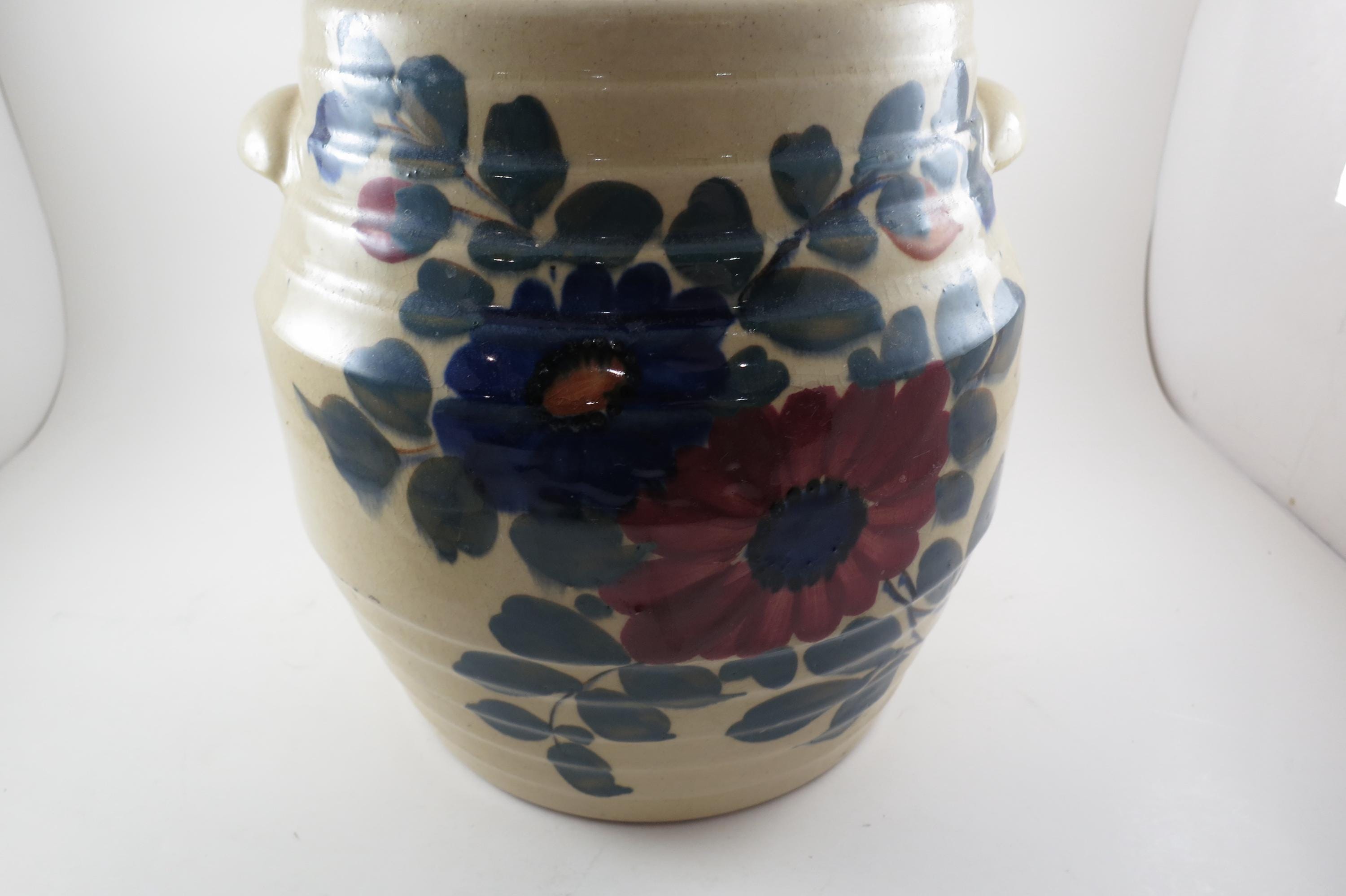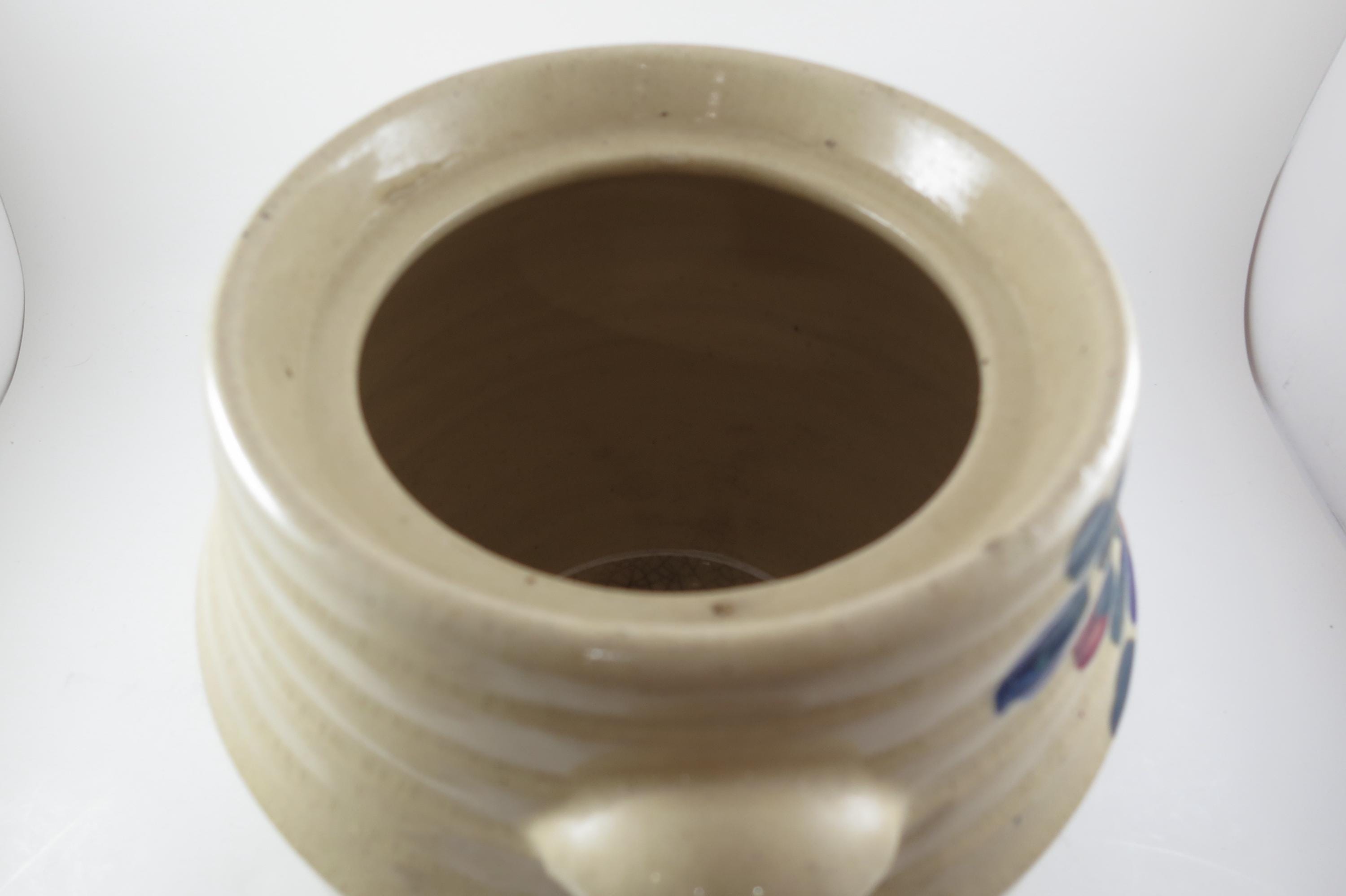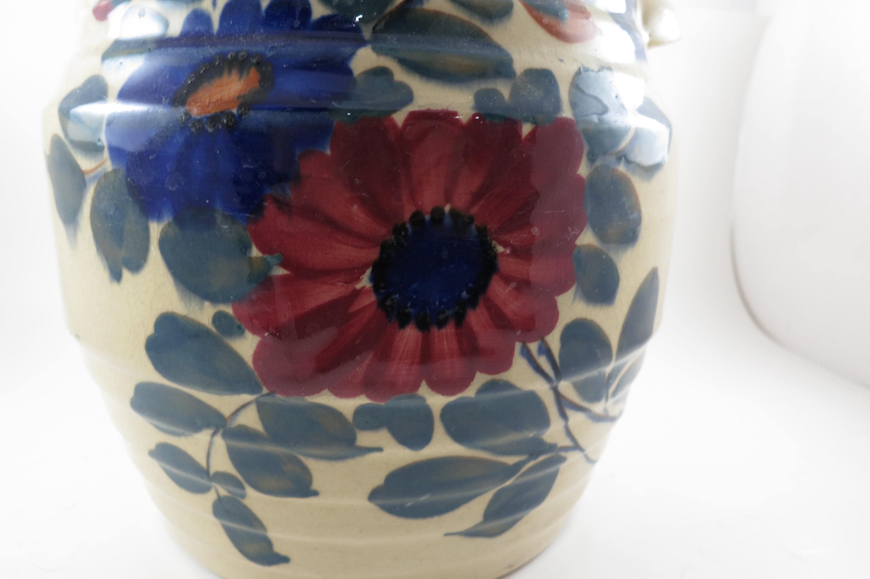 Vintage Large Pottery Crock/Jar with Lid Cookies Hand Painted Double Mini Handles