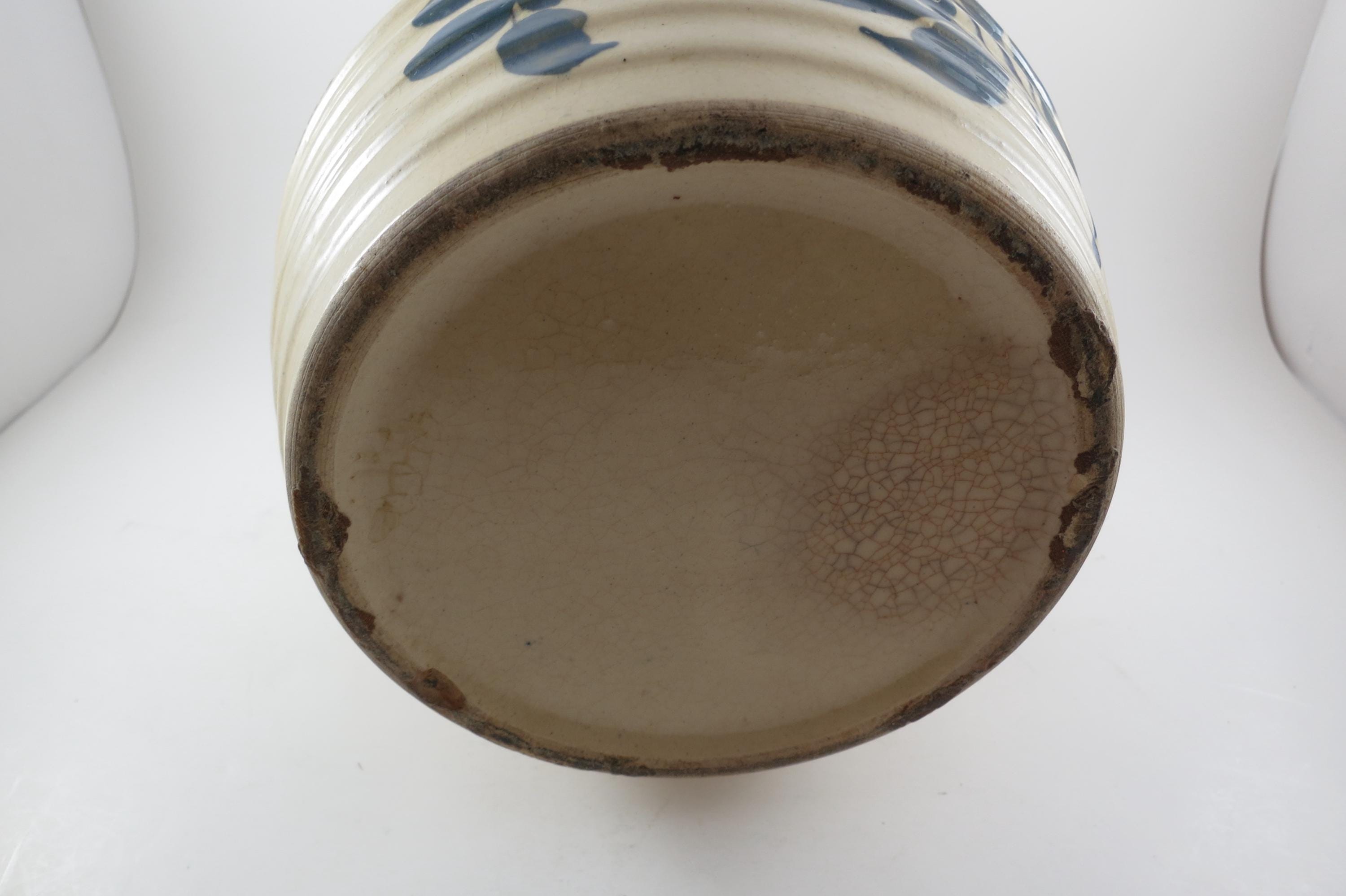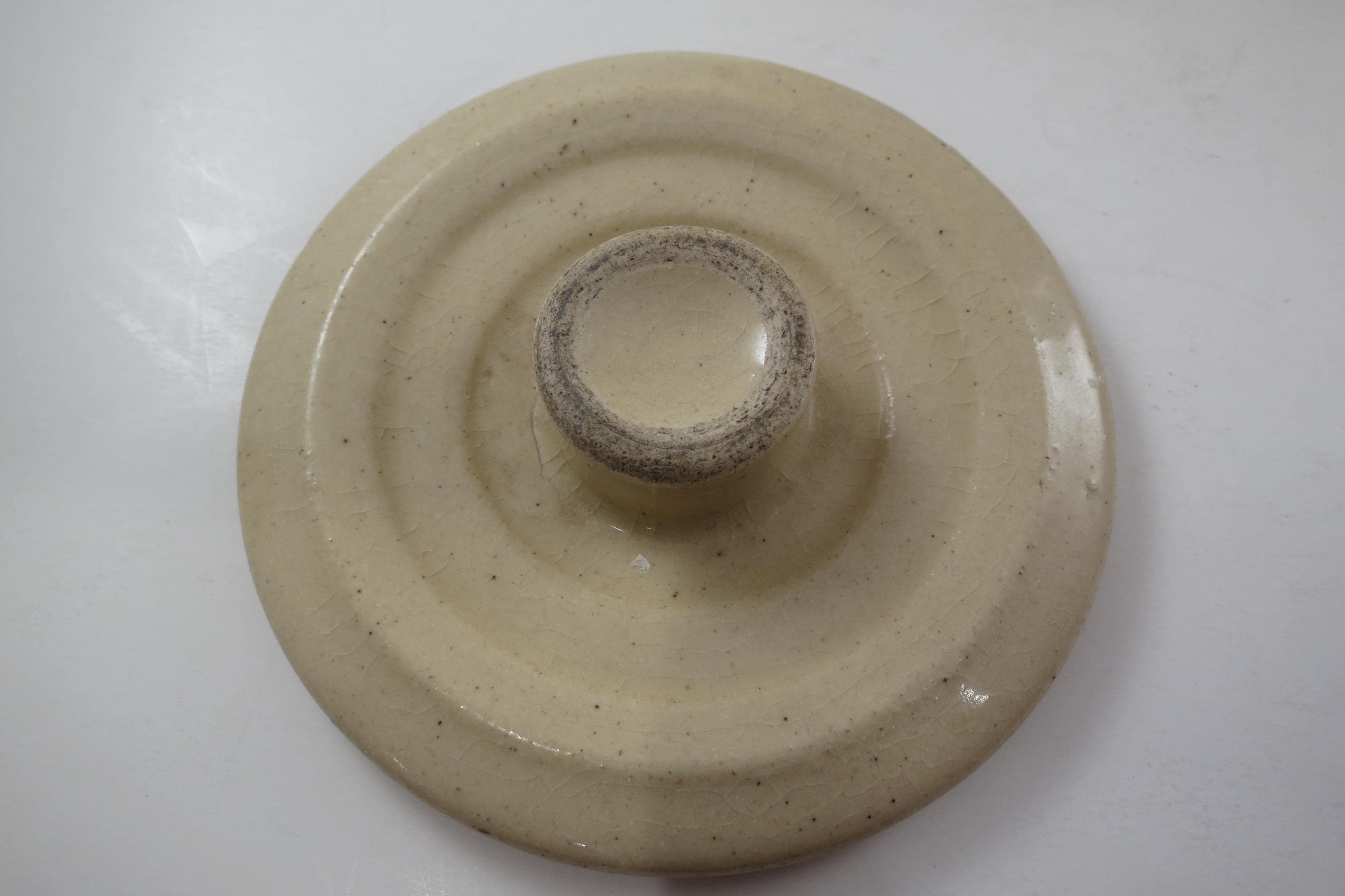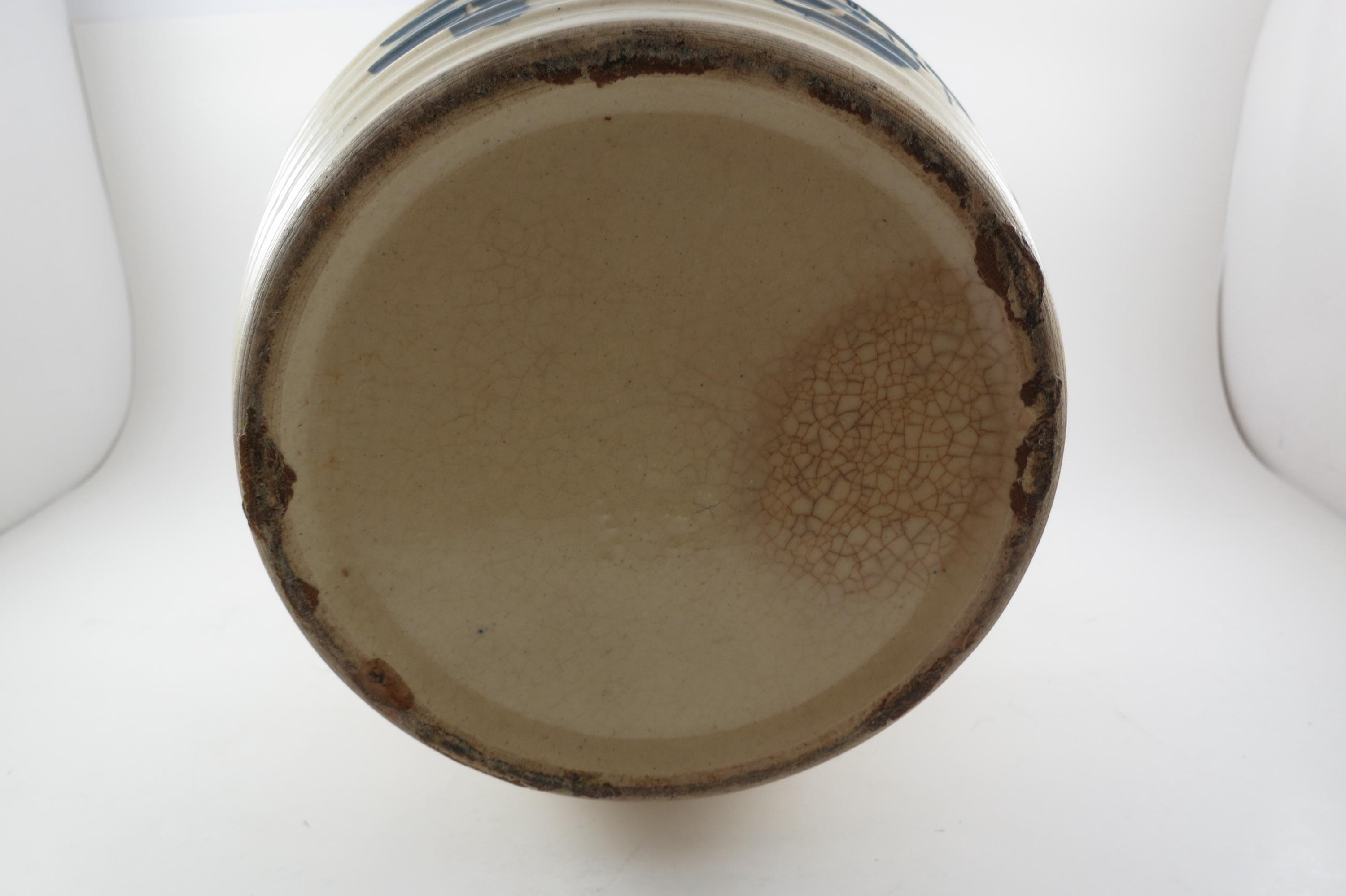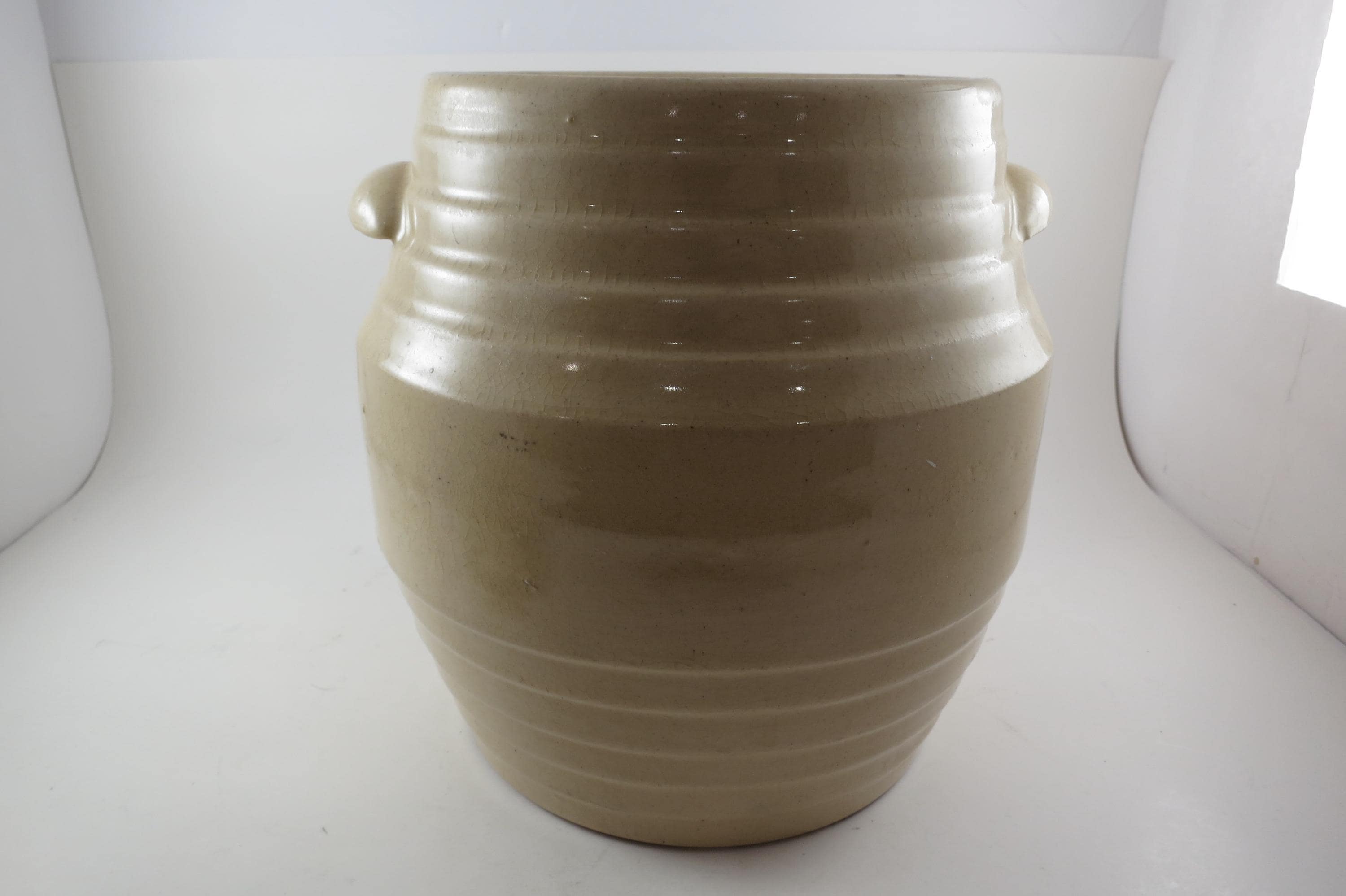 Vintage Large Pottery Crock/Jar with Lid Cookies Hand Painted Double Mini Handles.