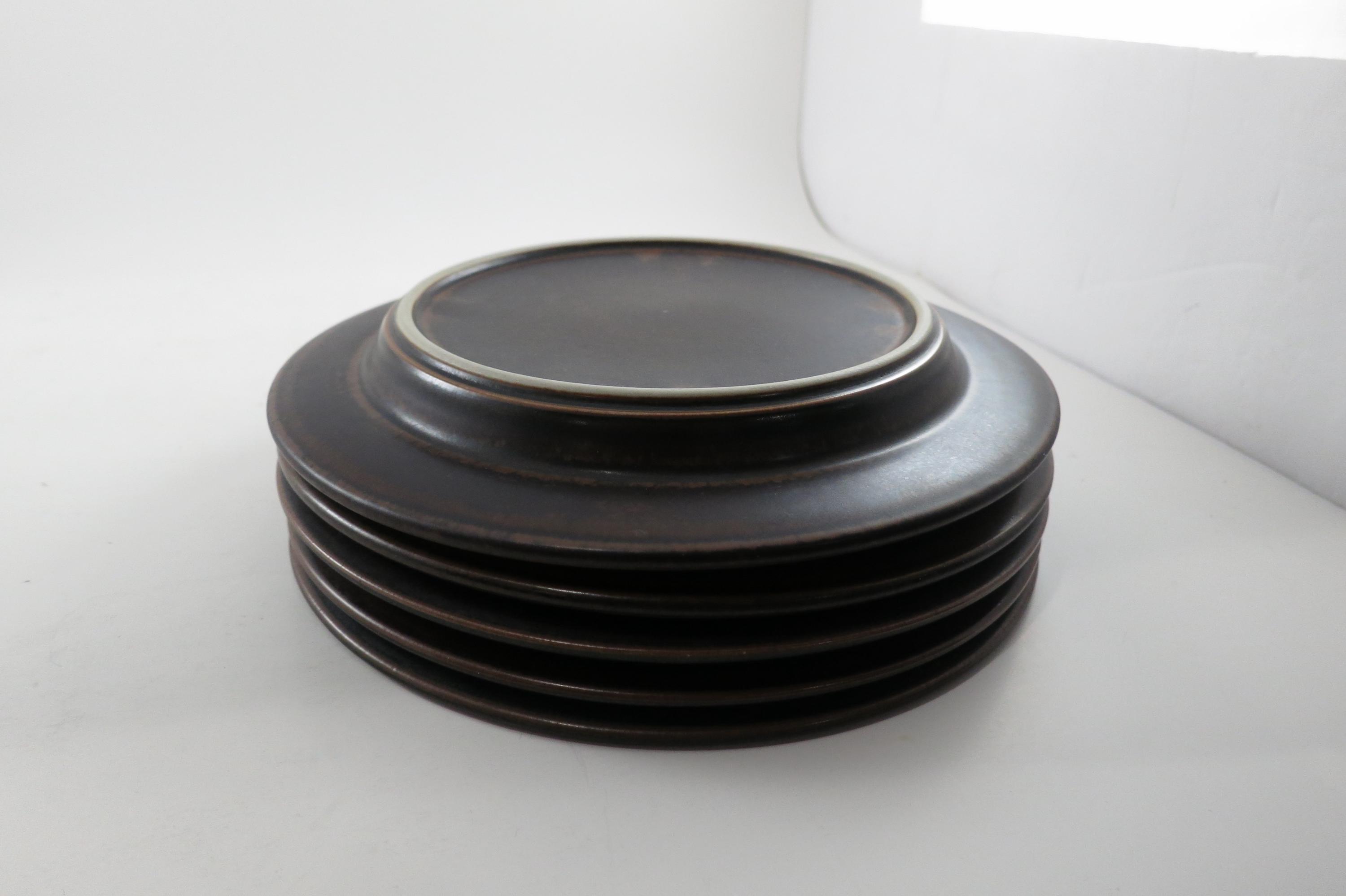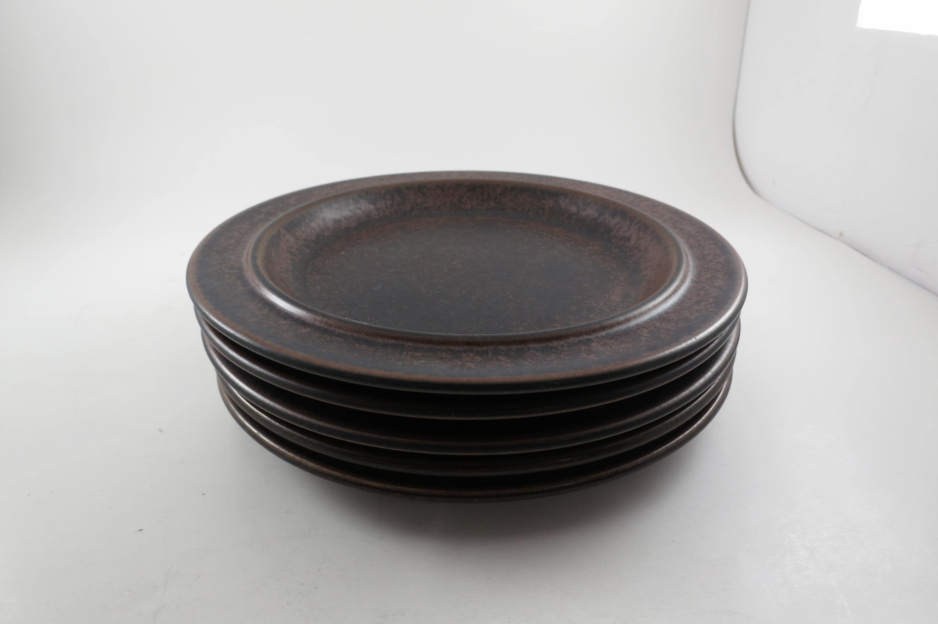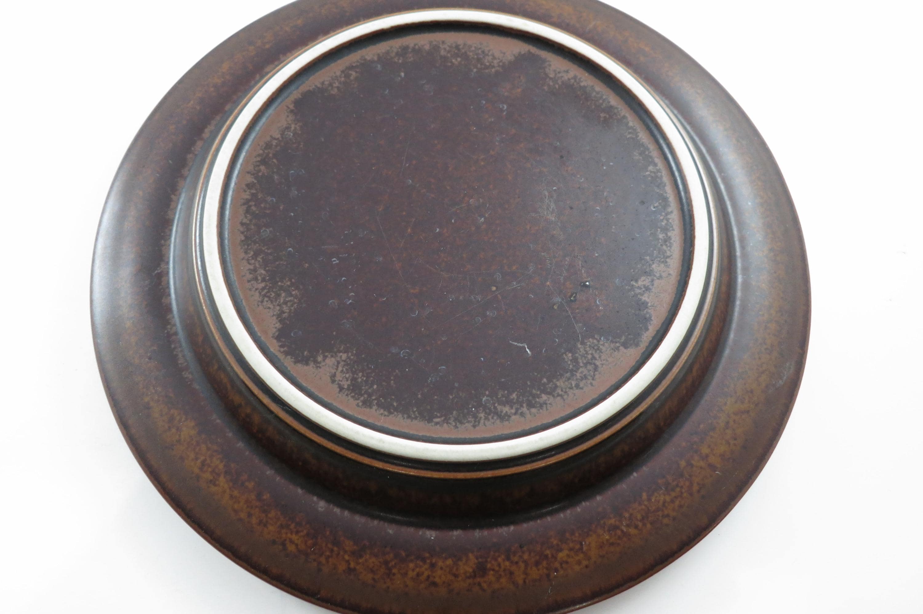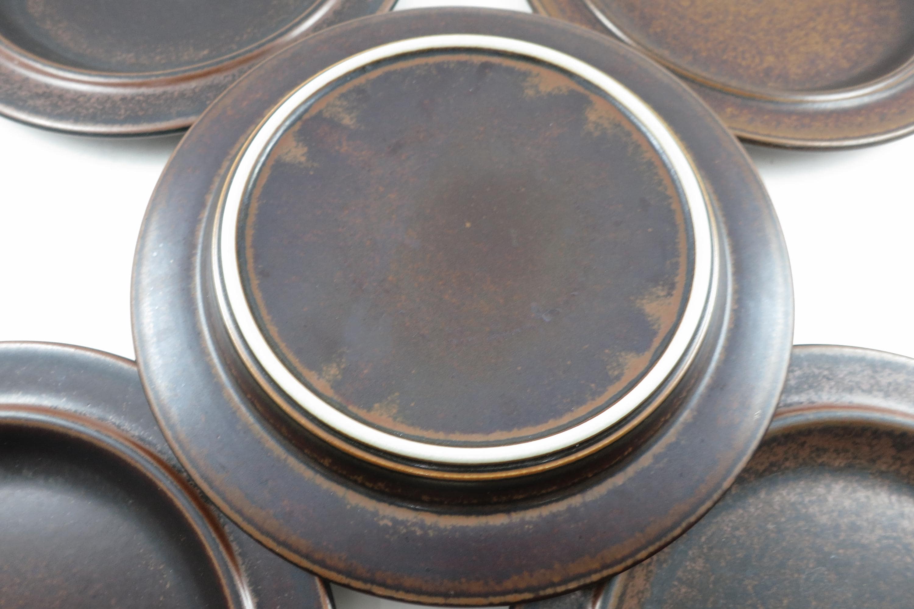 1960's Arabia of Finland Stoneware Ruska Pattern Light and Dark Brown Set of 4 8 Inch Salad Plates.