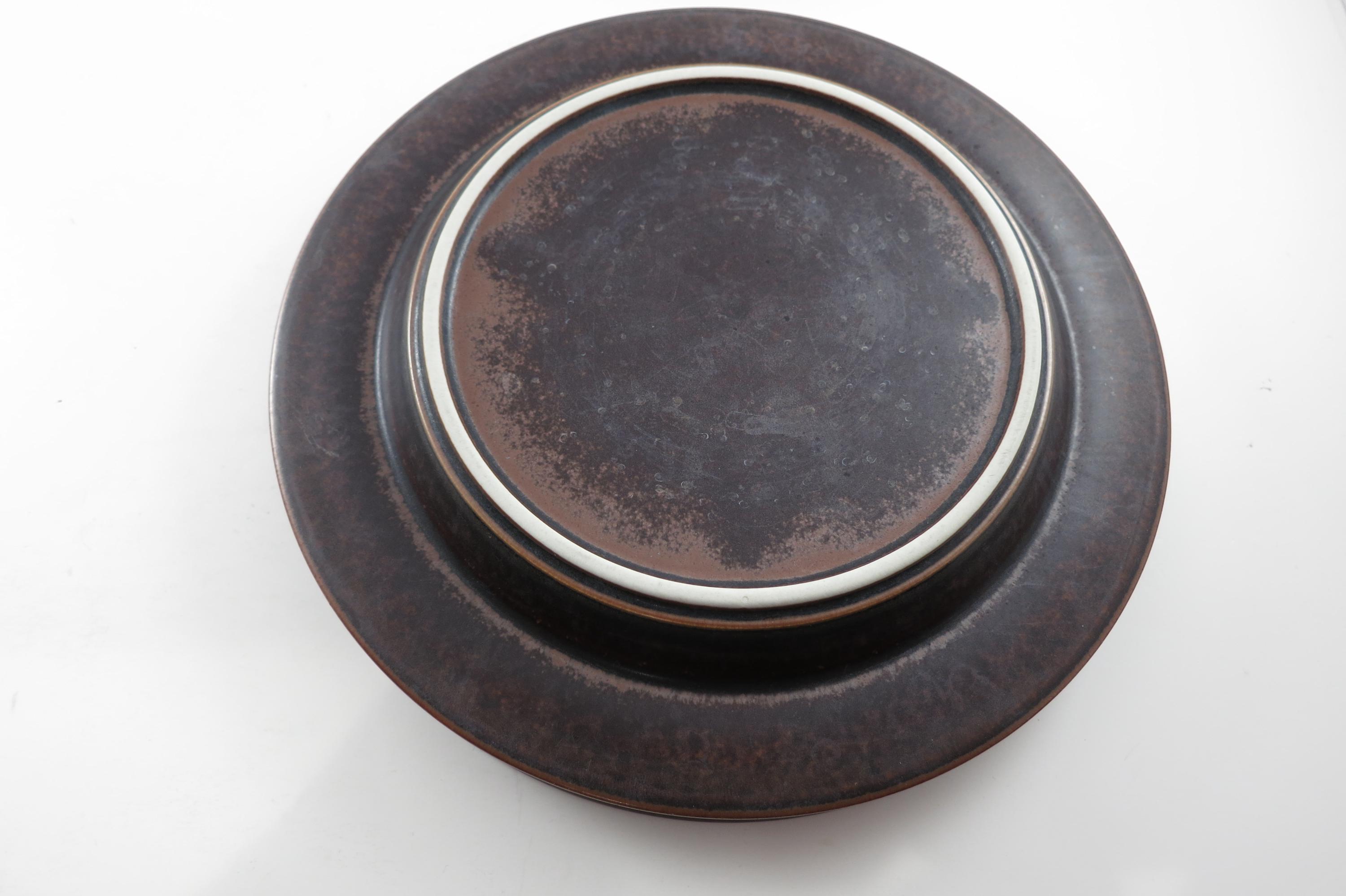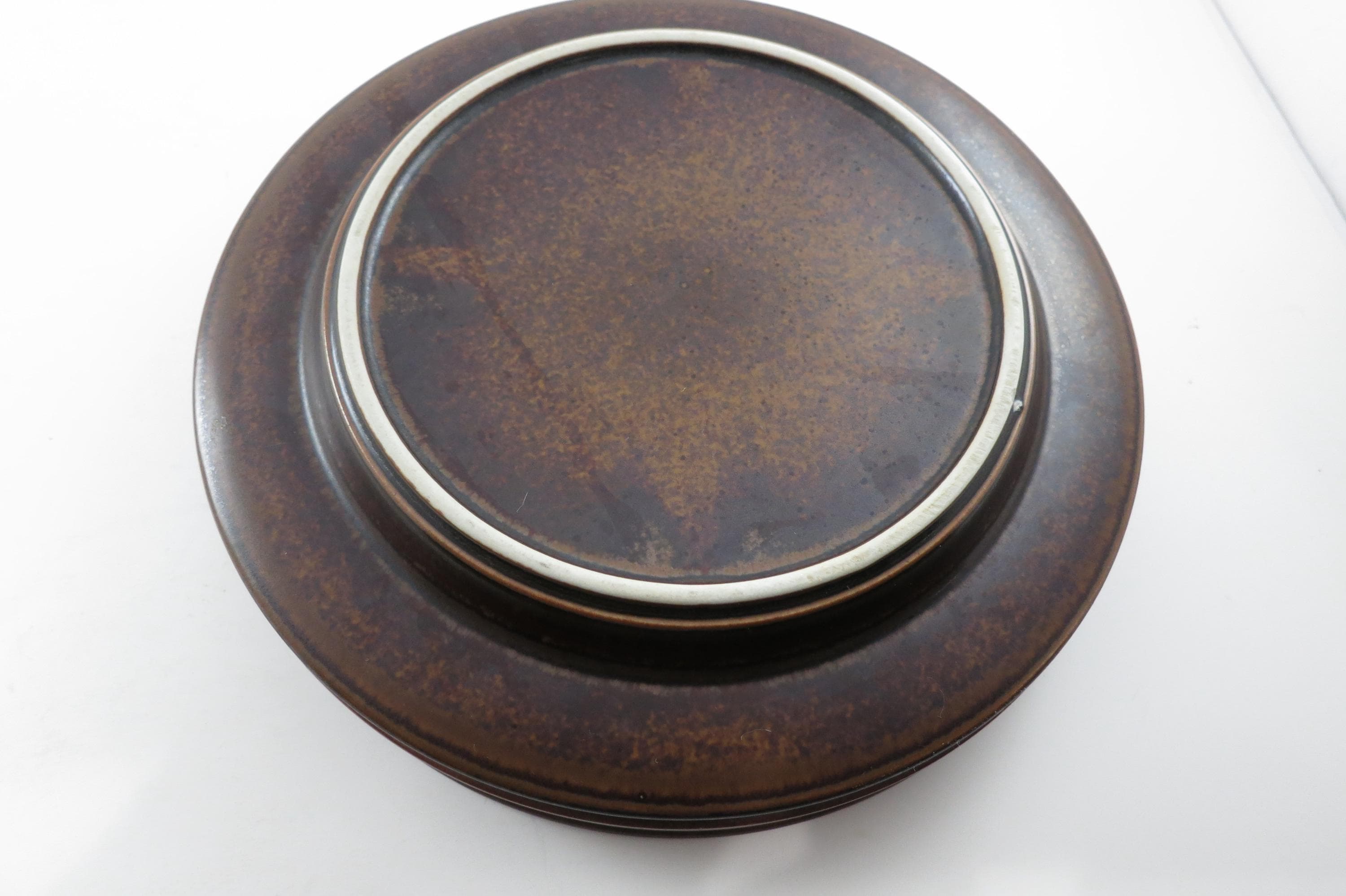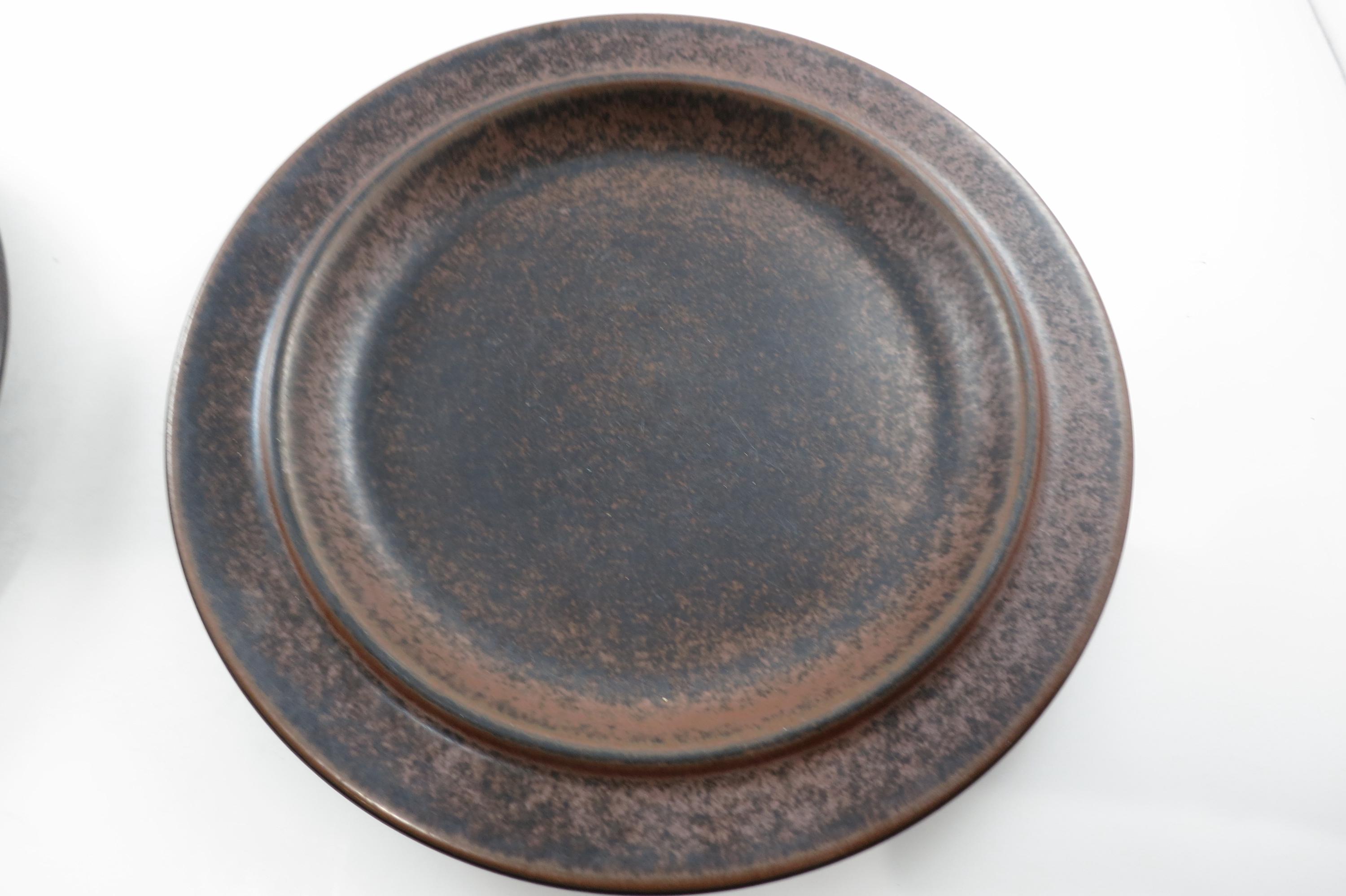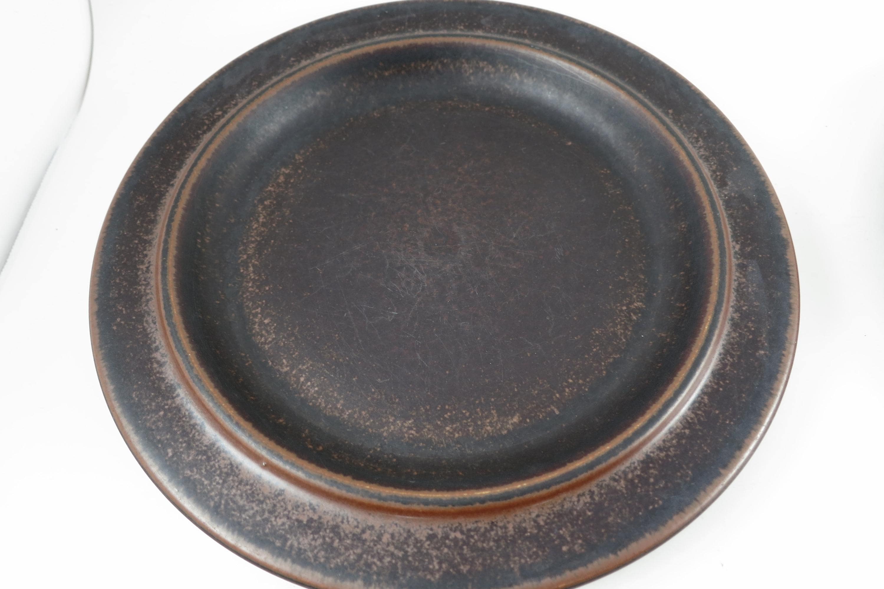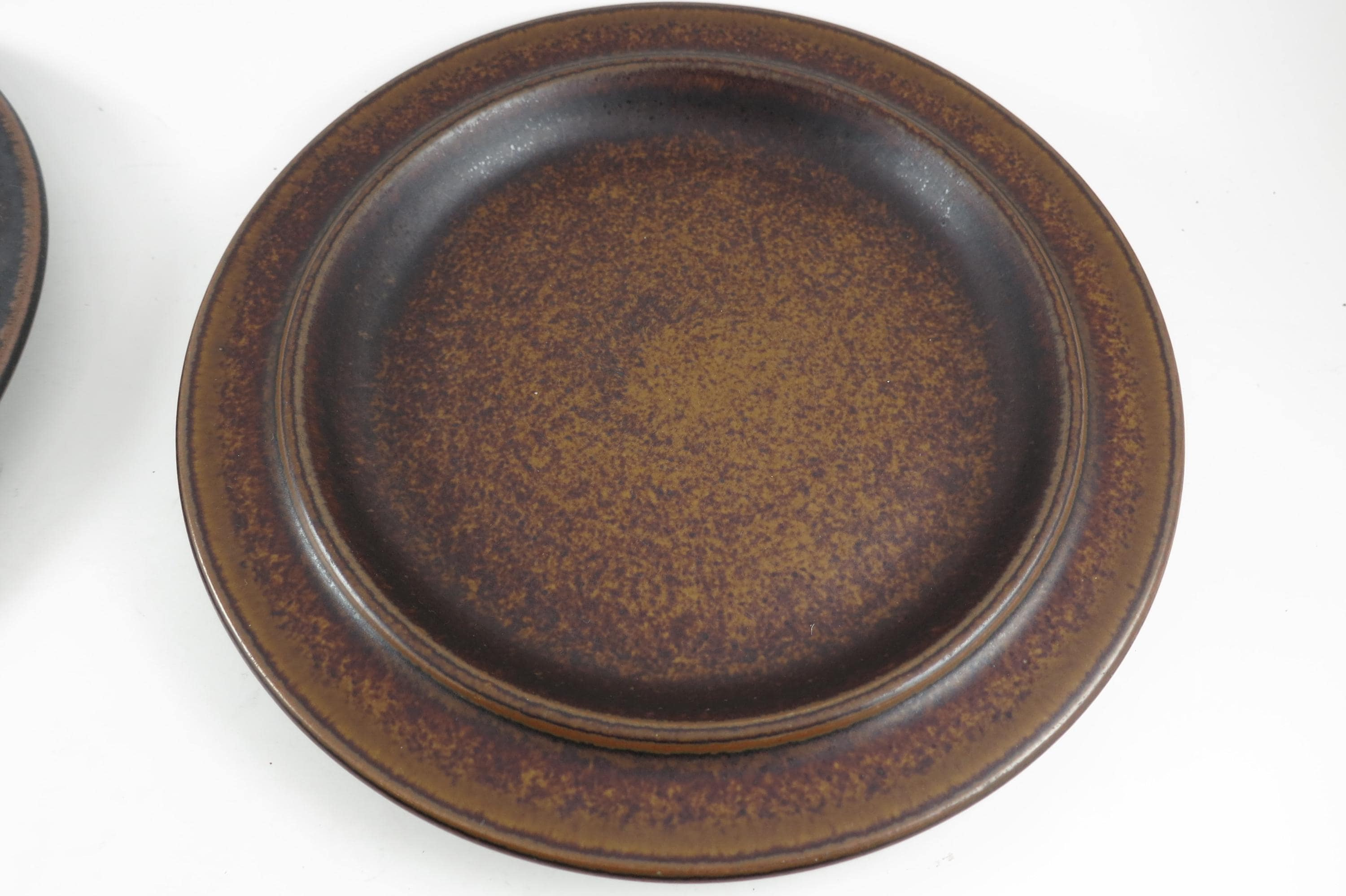 1960's Arabia of Finland Stoneware Ruska Pattern Light and Dark Brown Set of 4 8 Inch Salad Plates.