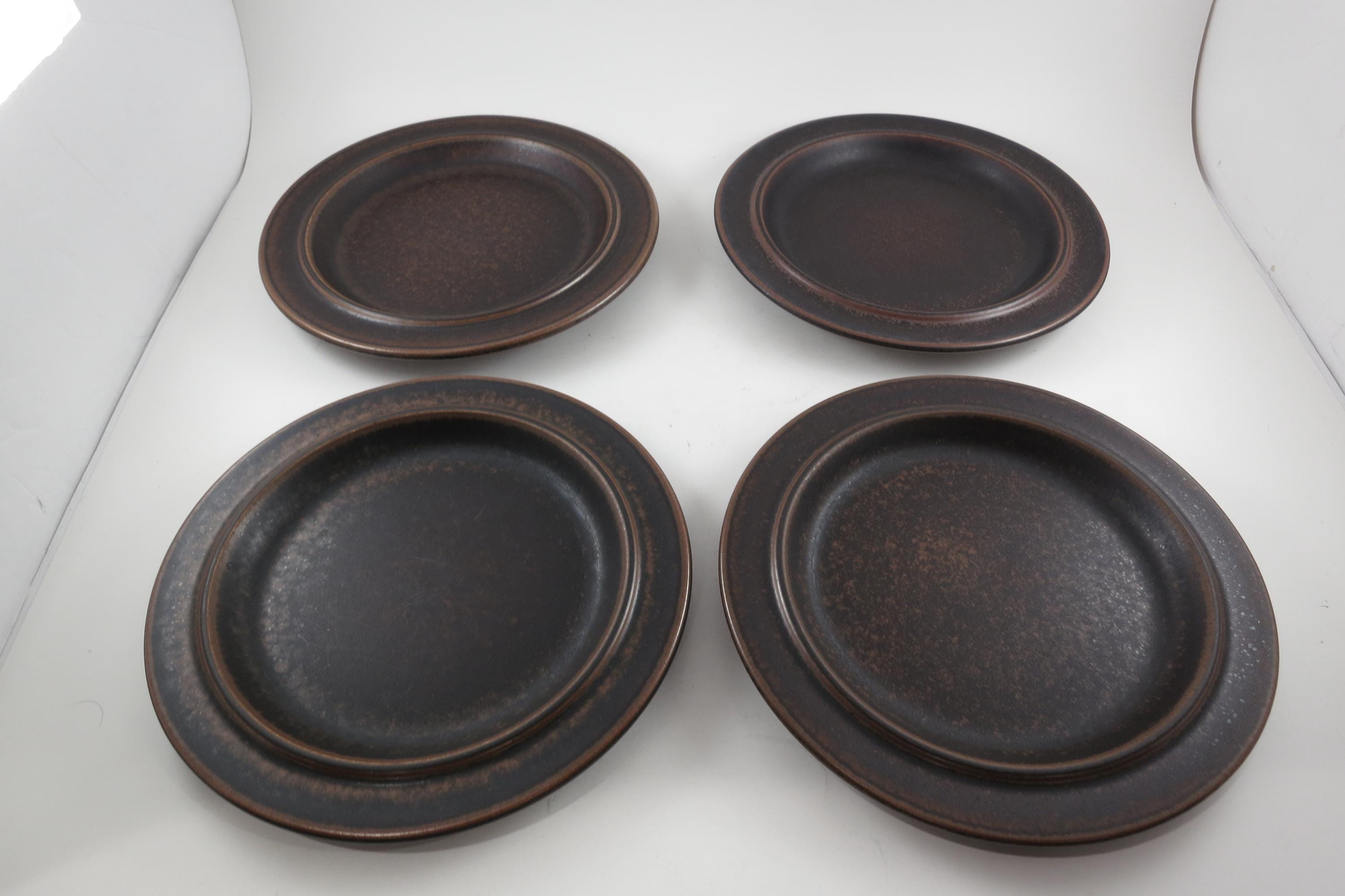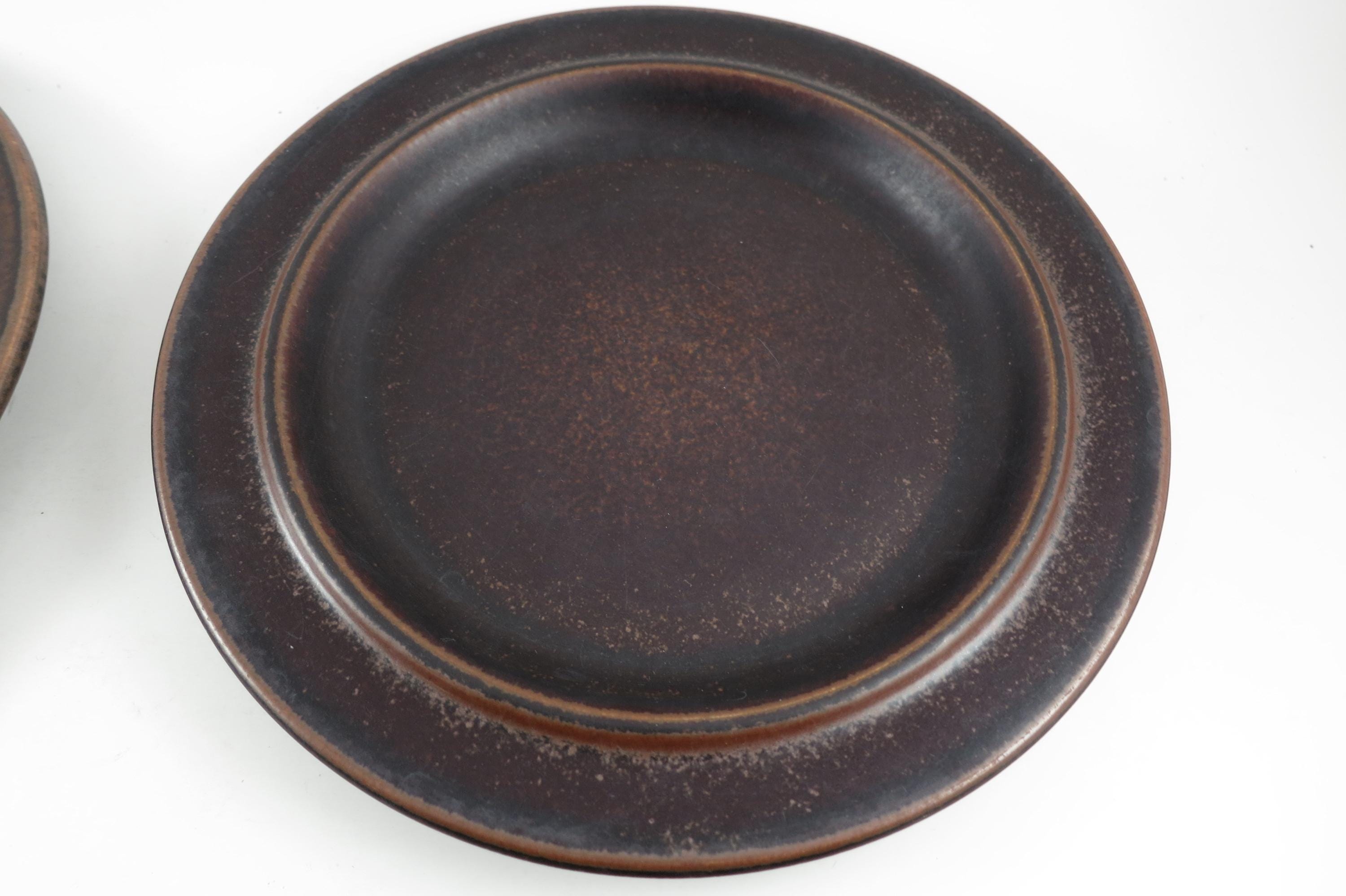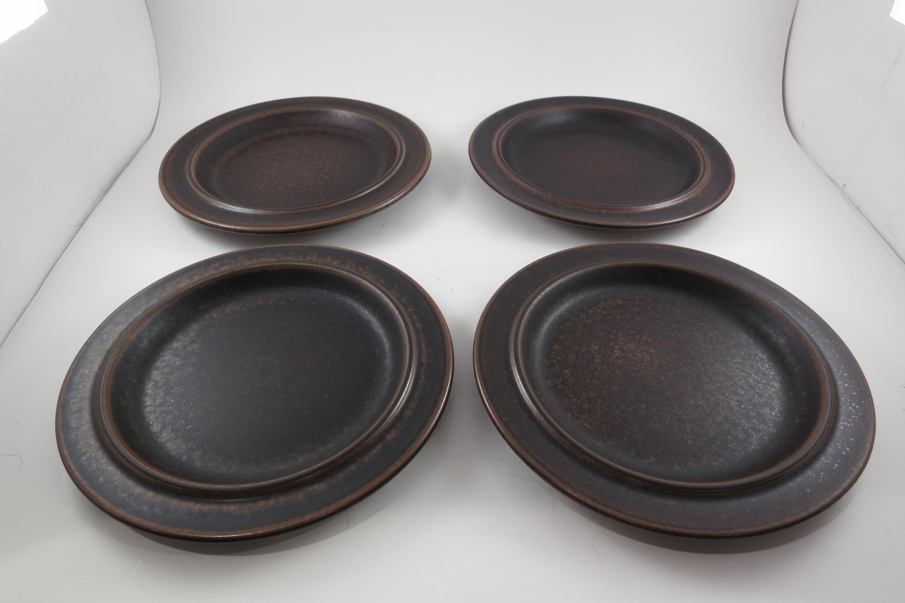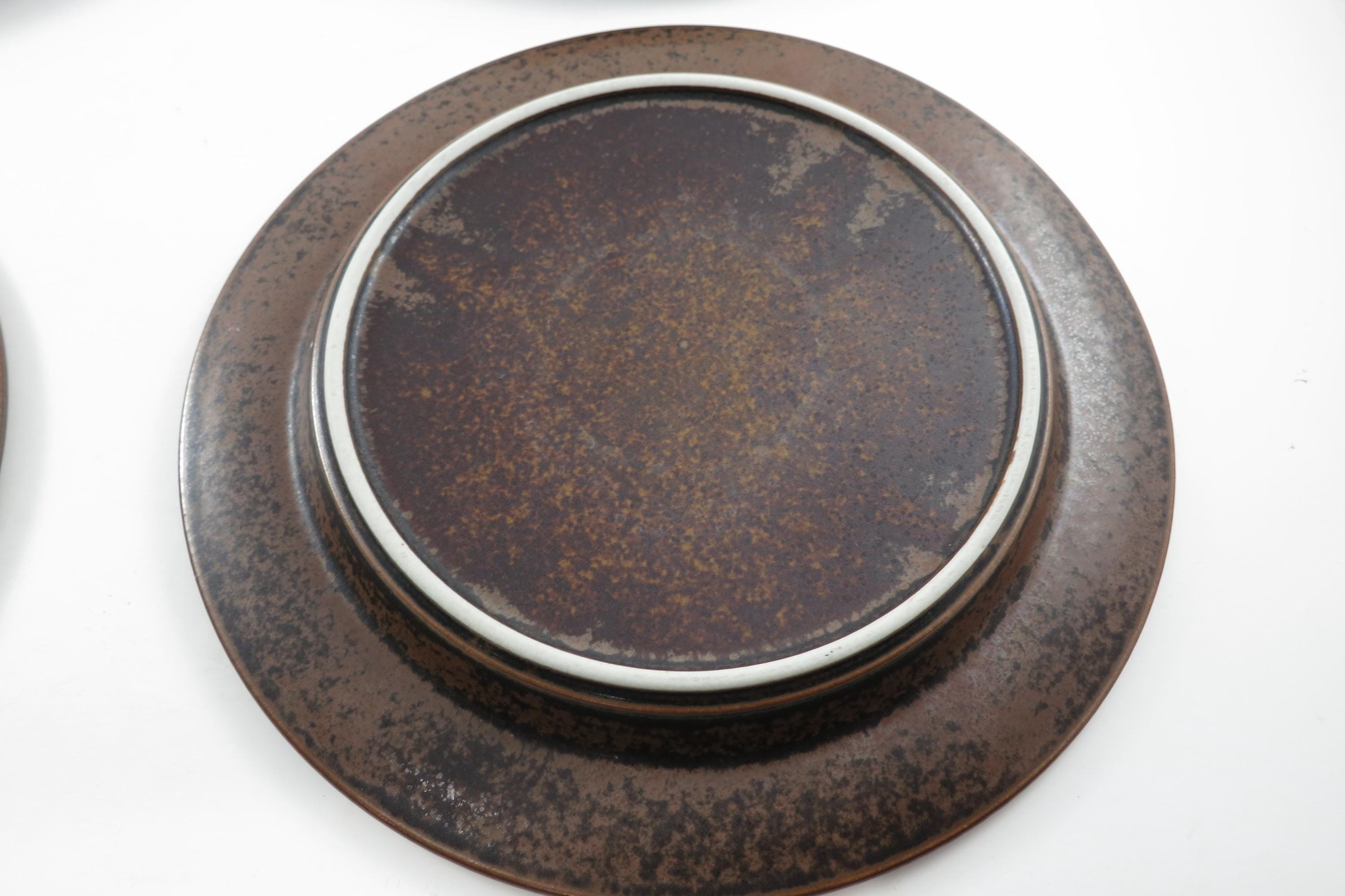 1960's Arabia of Finland Stoneware Ruska Pattern Light and Dark Brown Set of 4 8 Inch Salad Plates.