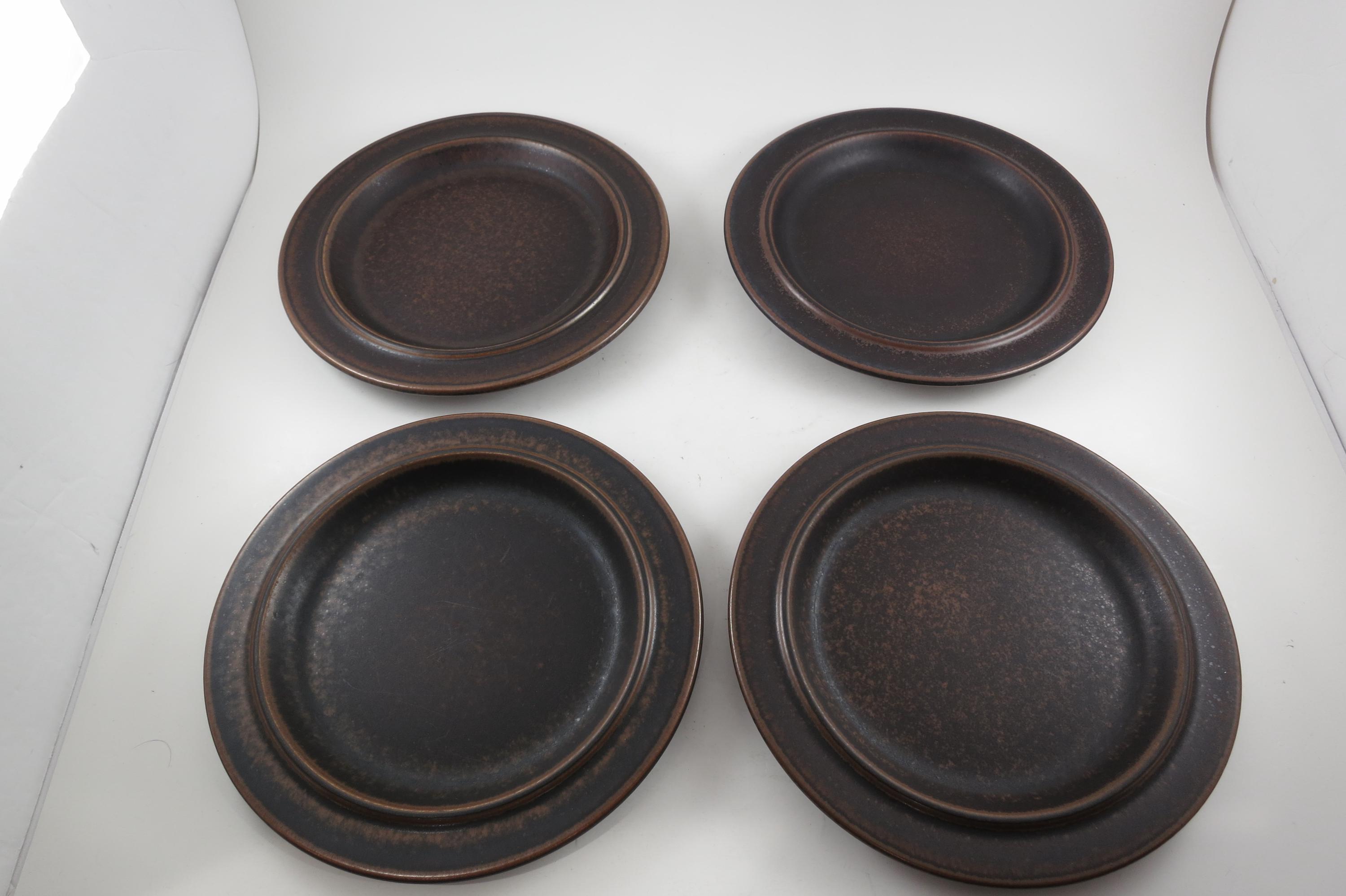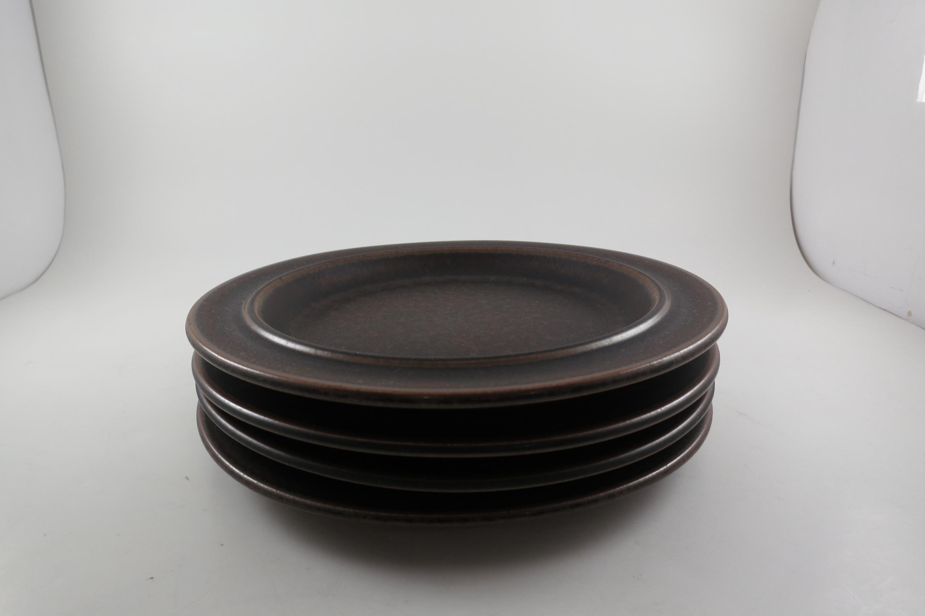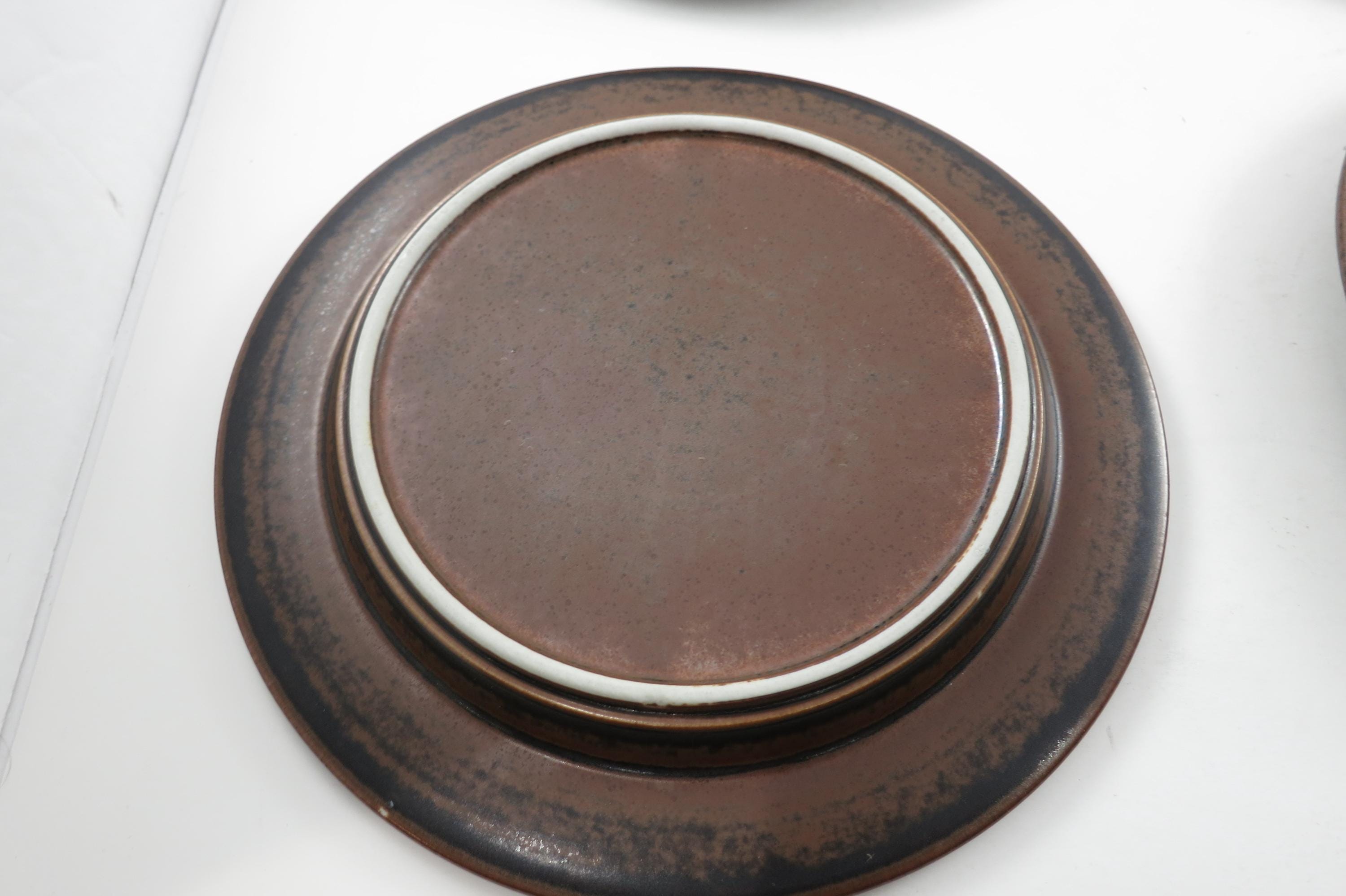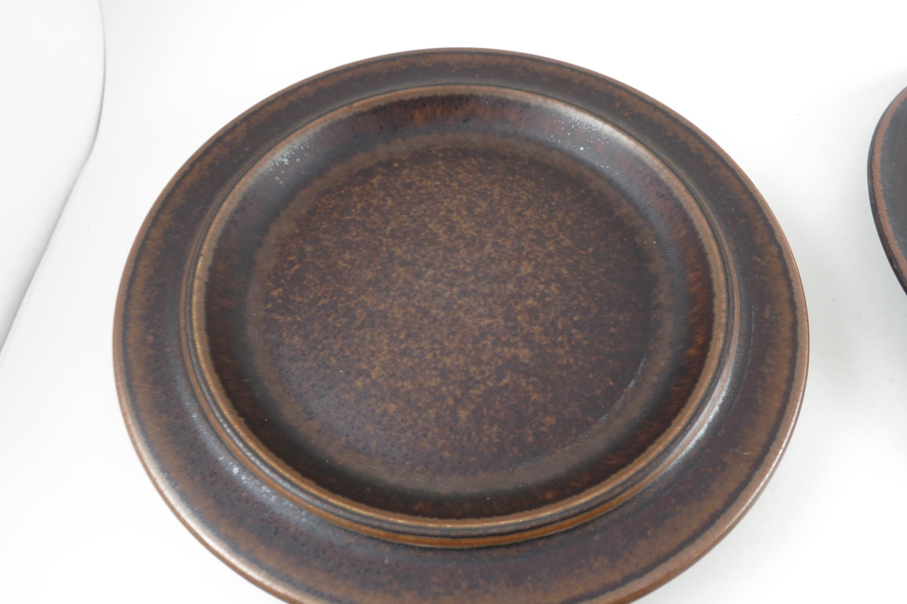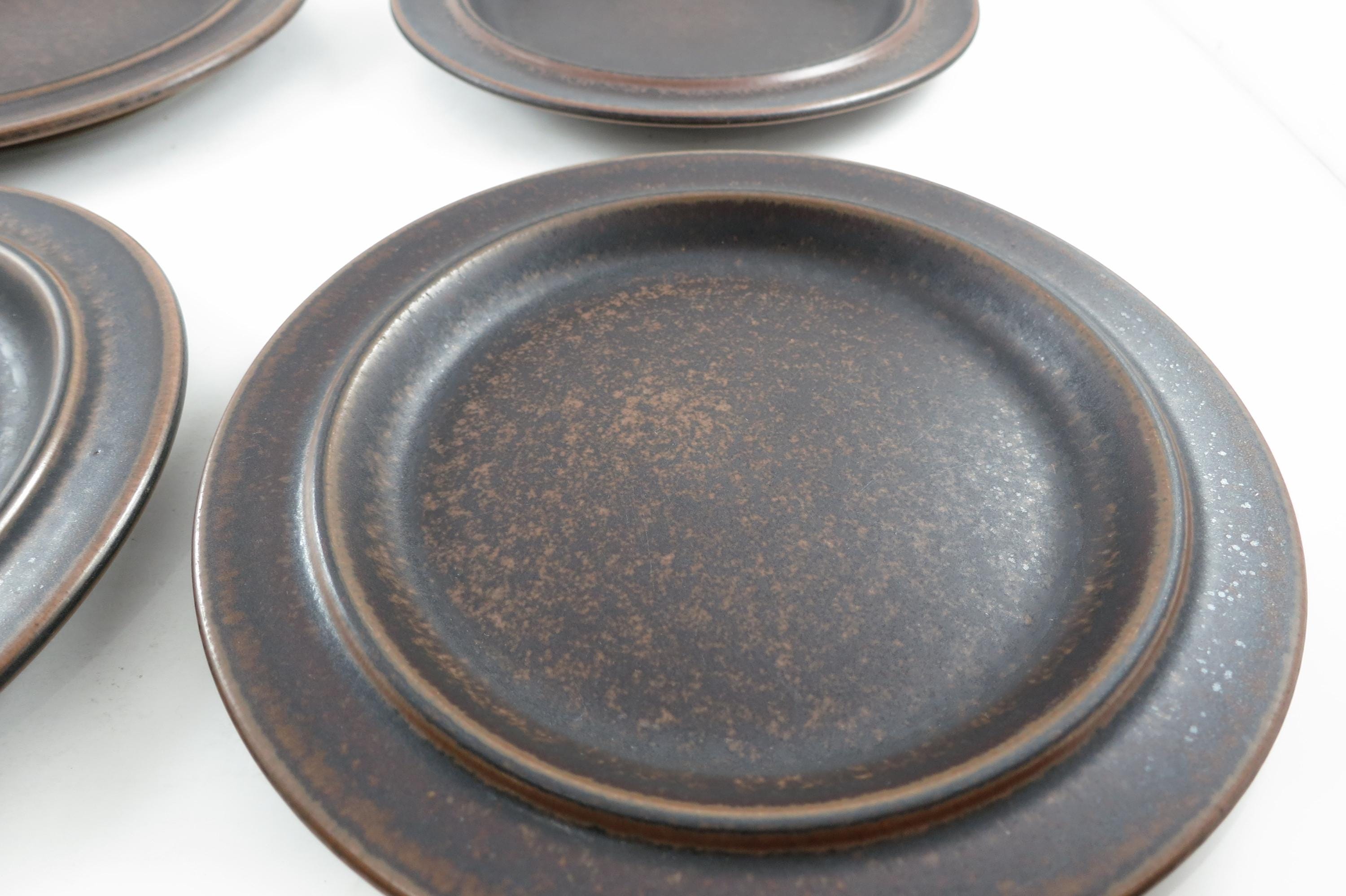 1960's Arabia of Finland Stoneware Ruska Pattern Light and Dark Brown Set of 4 8 Inch Salad Plates.