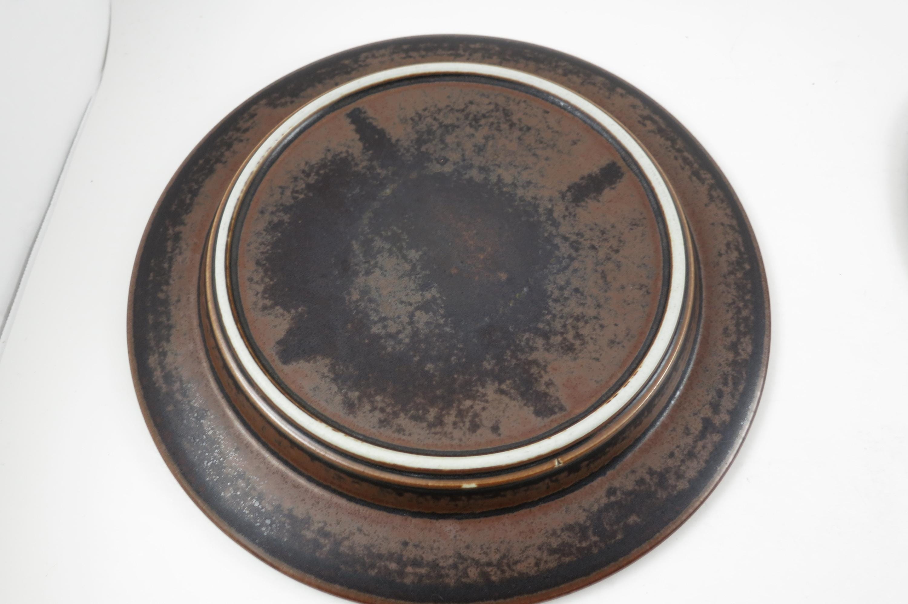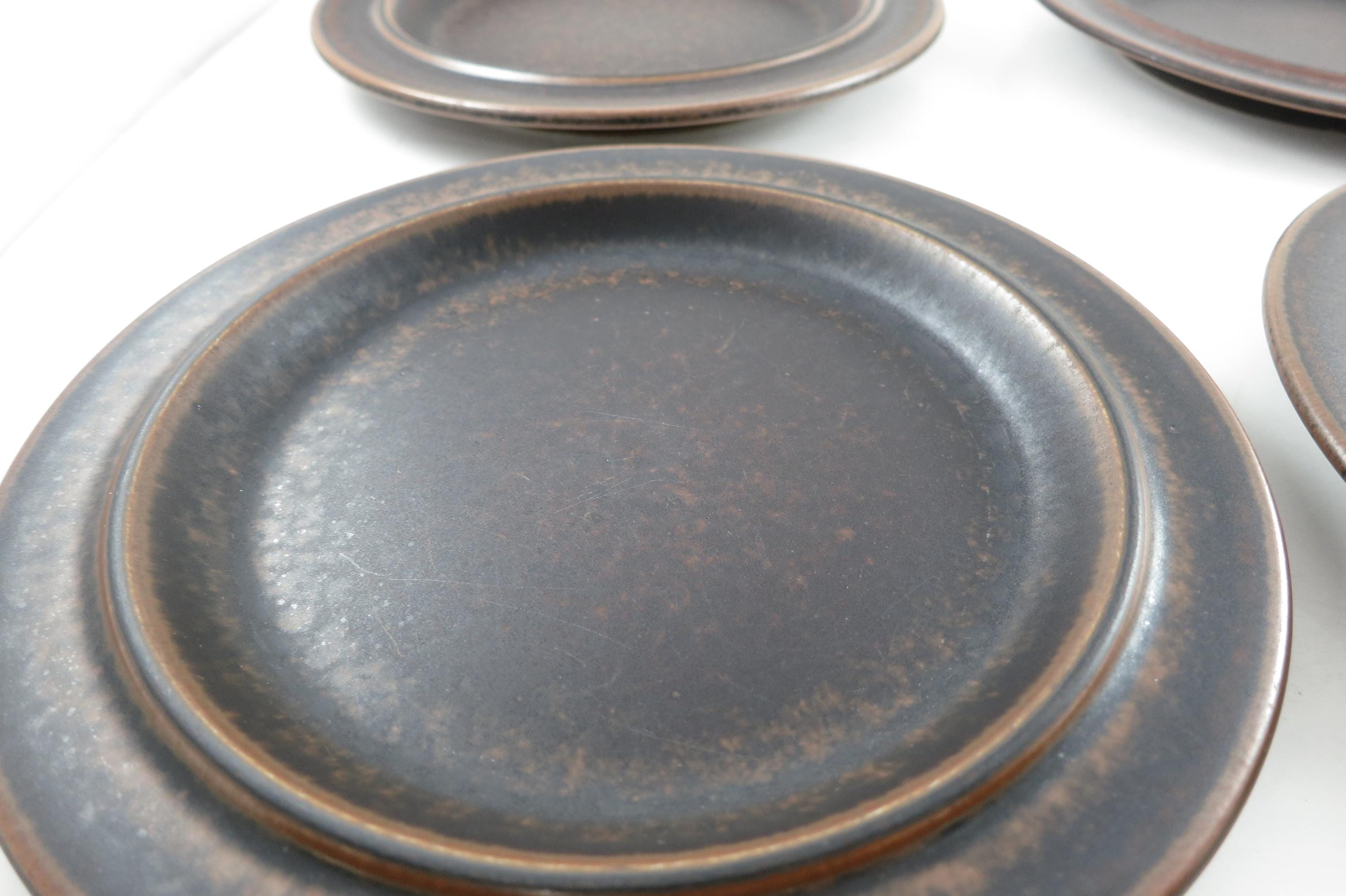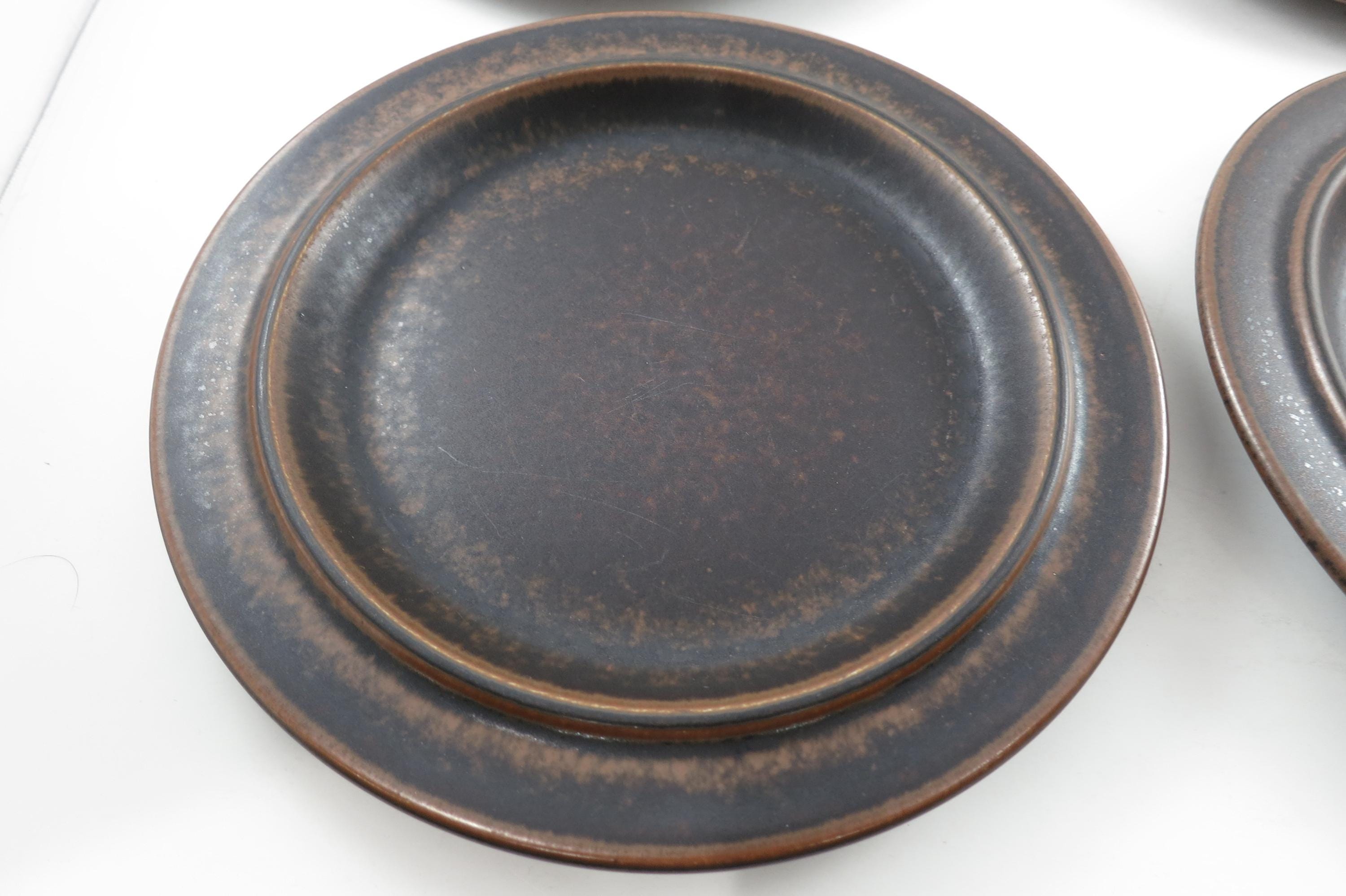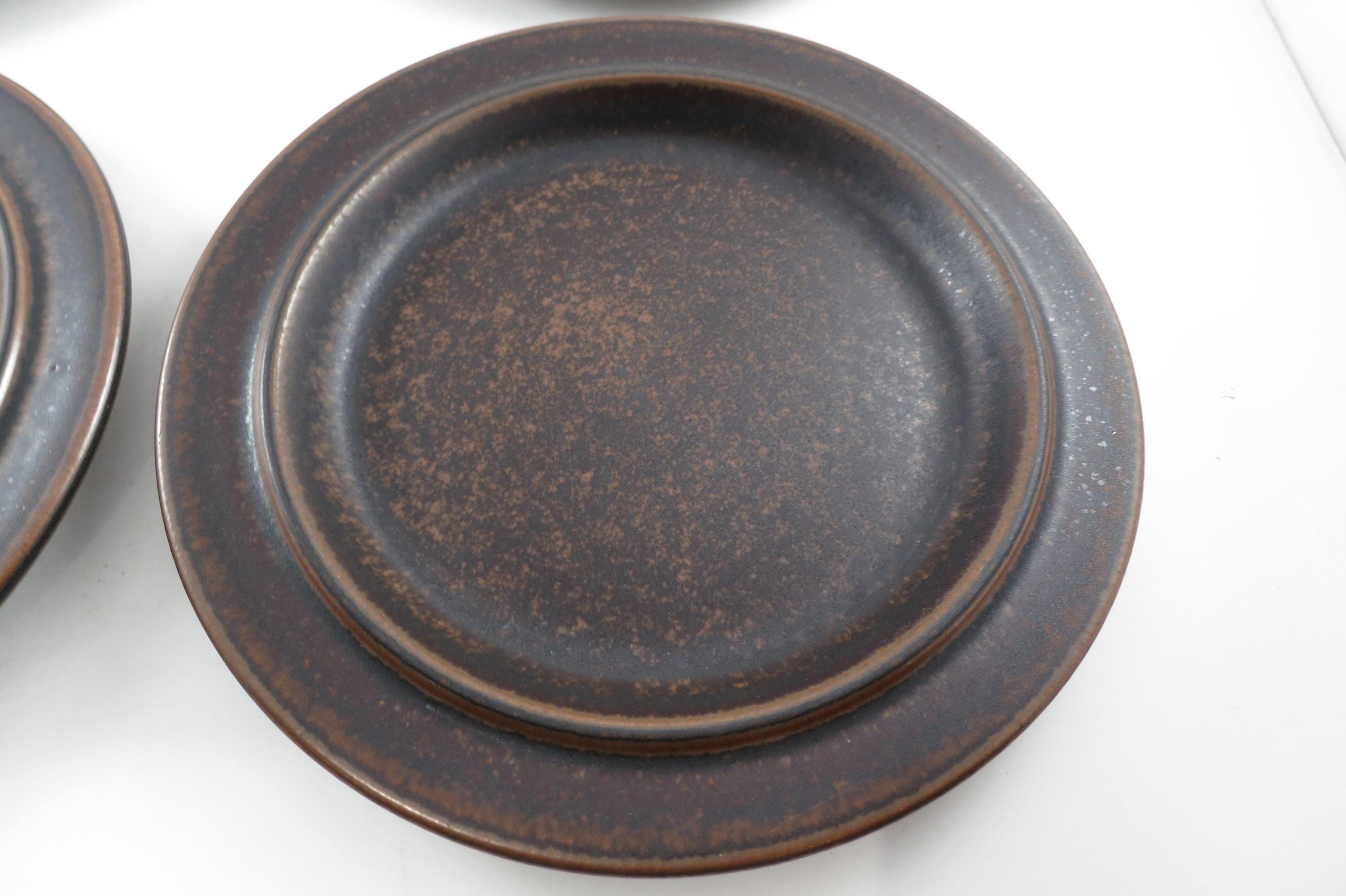 1960's Arabia of Finland Stoneware Ruska Pattern Light and Dark Brown Set of 4 8 Inch Salad Plates.
