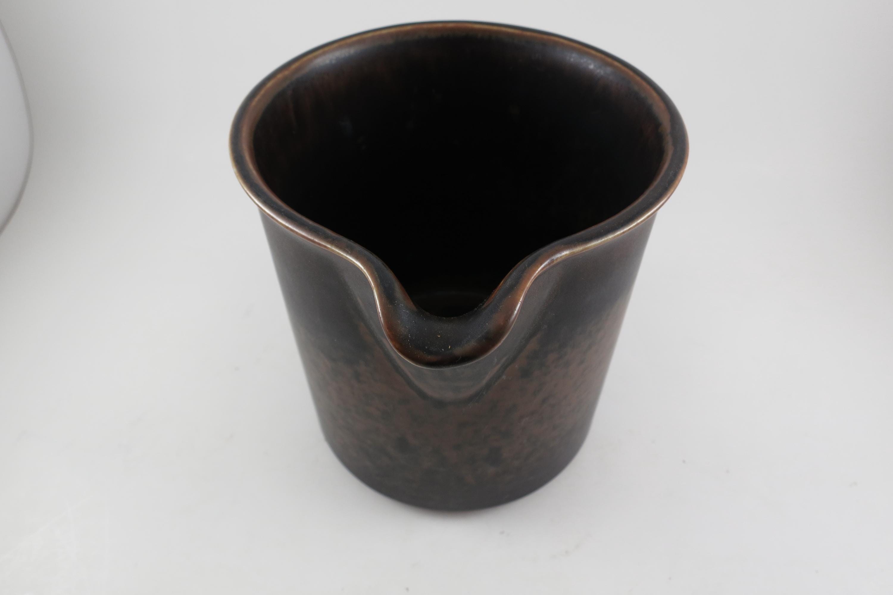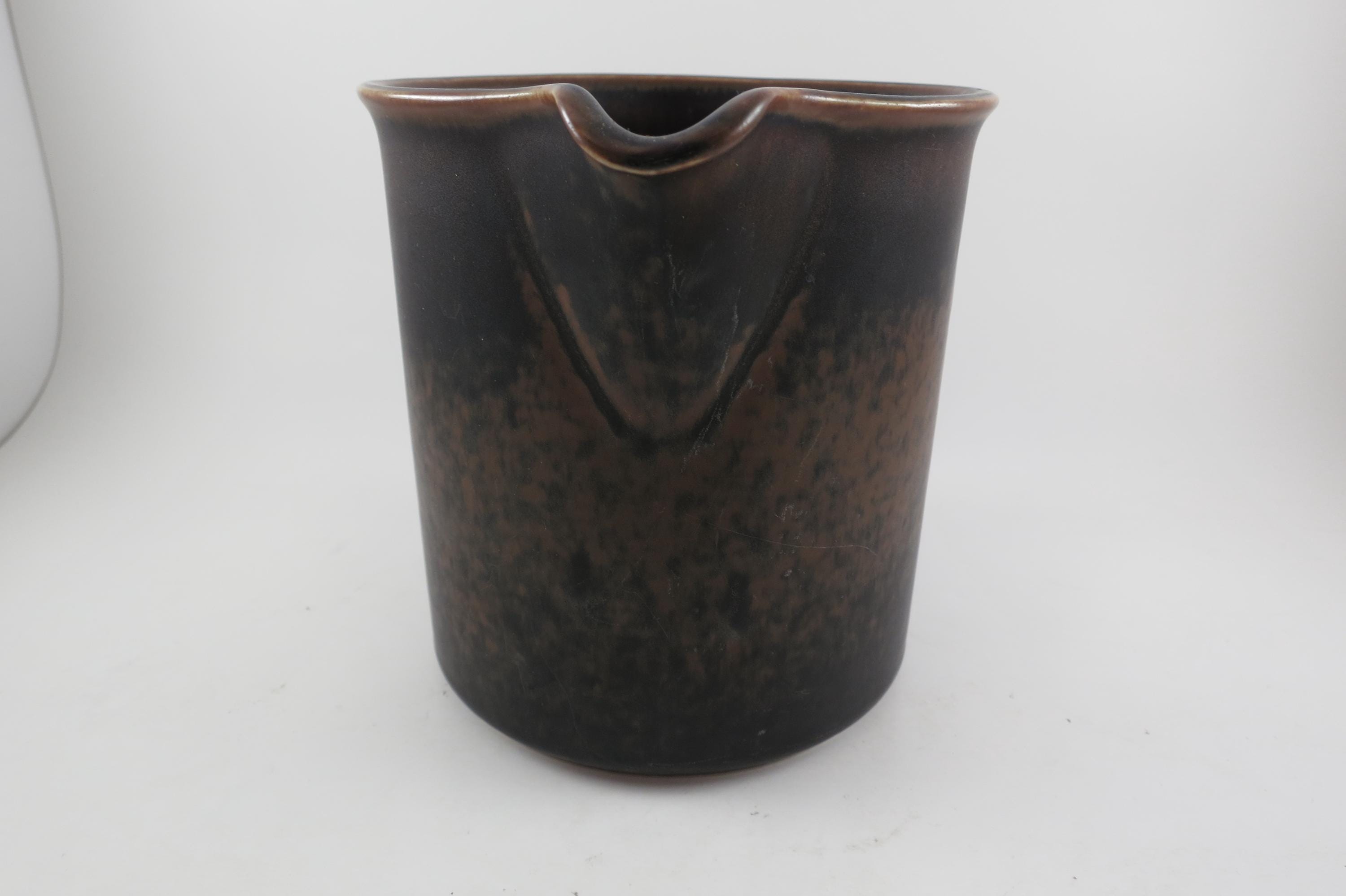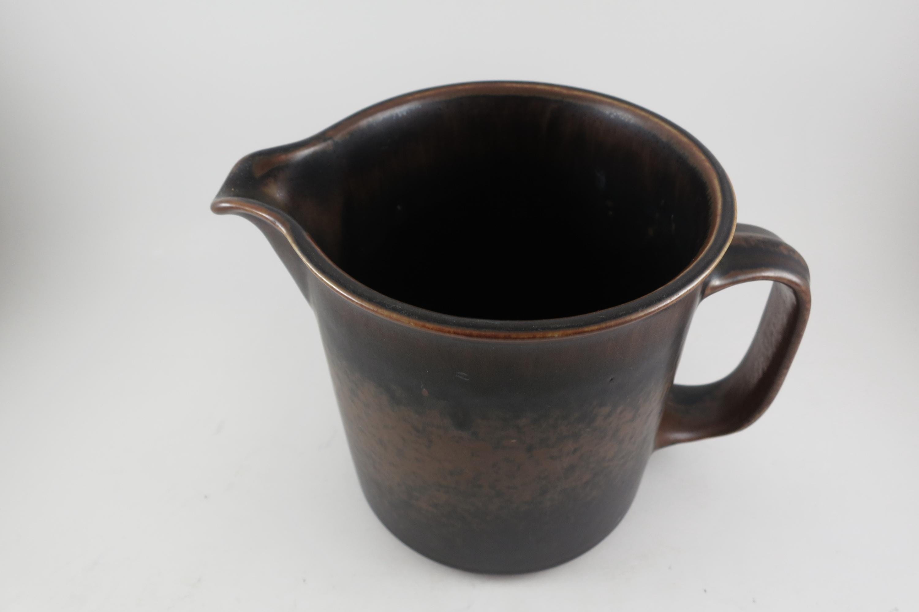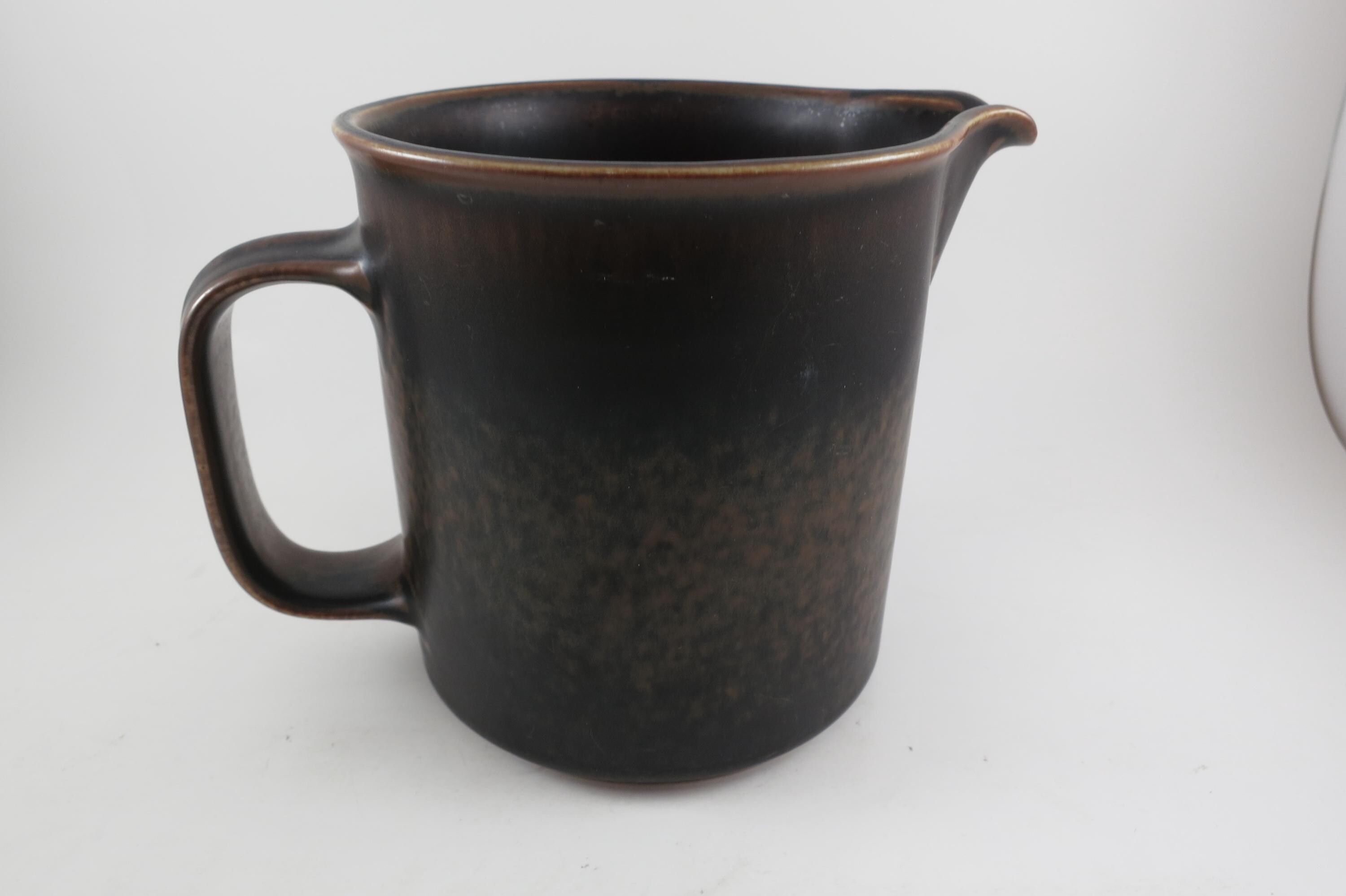 1960's Arabia of Finland Stoneware Ruska Pattern Light and Dark Brown 32 Ounce Pitcher.