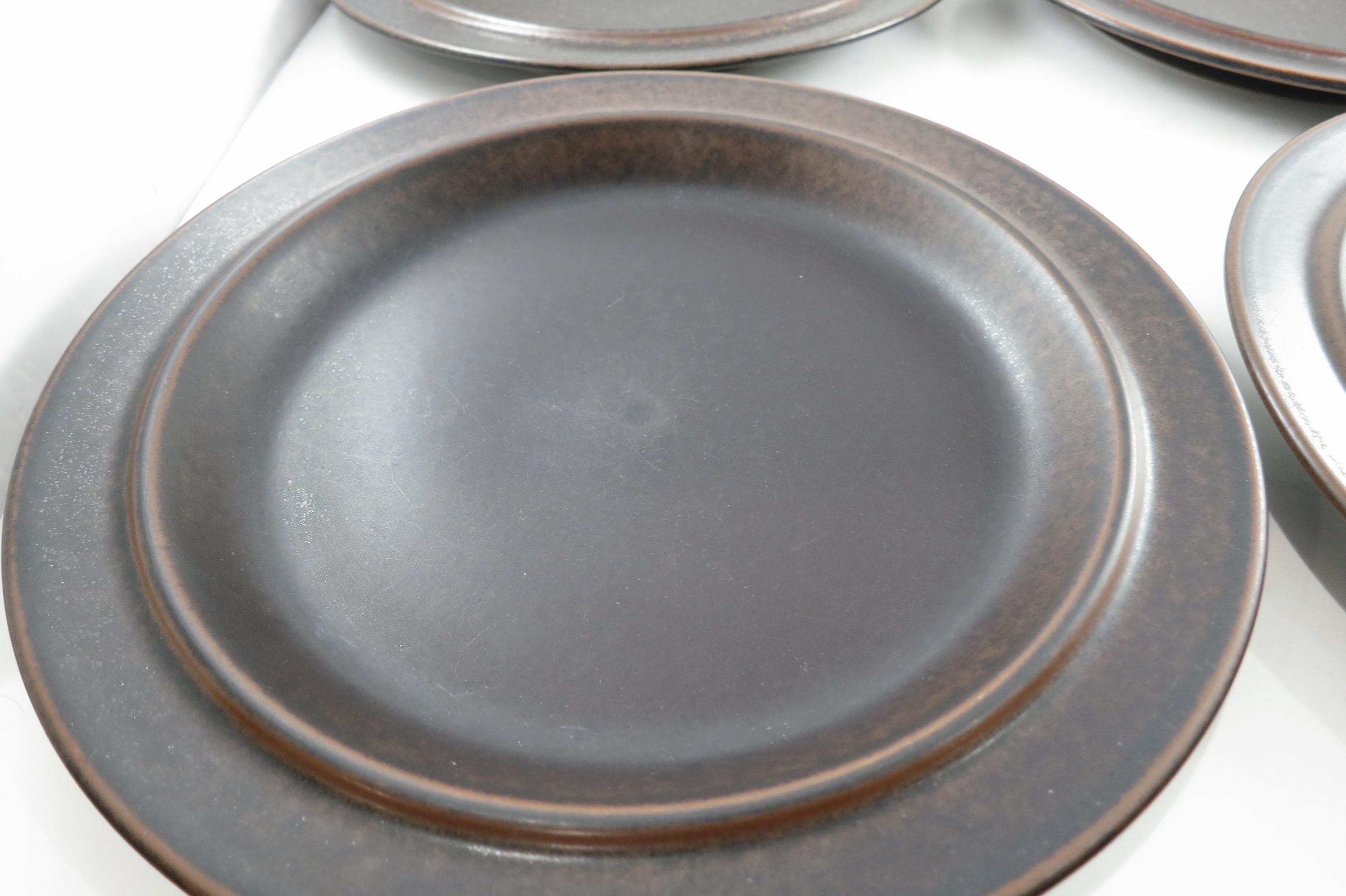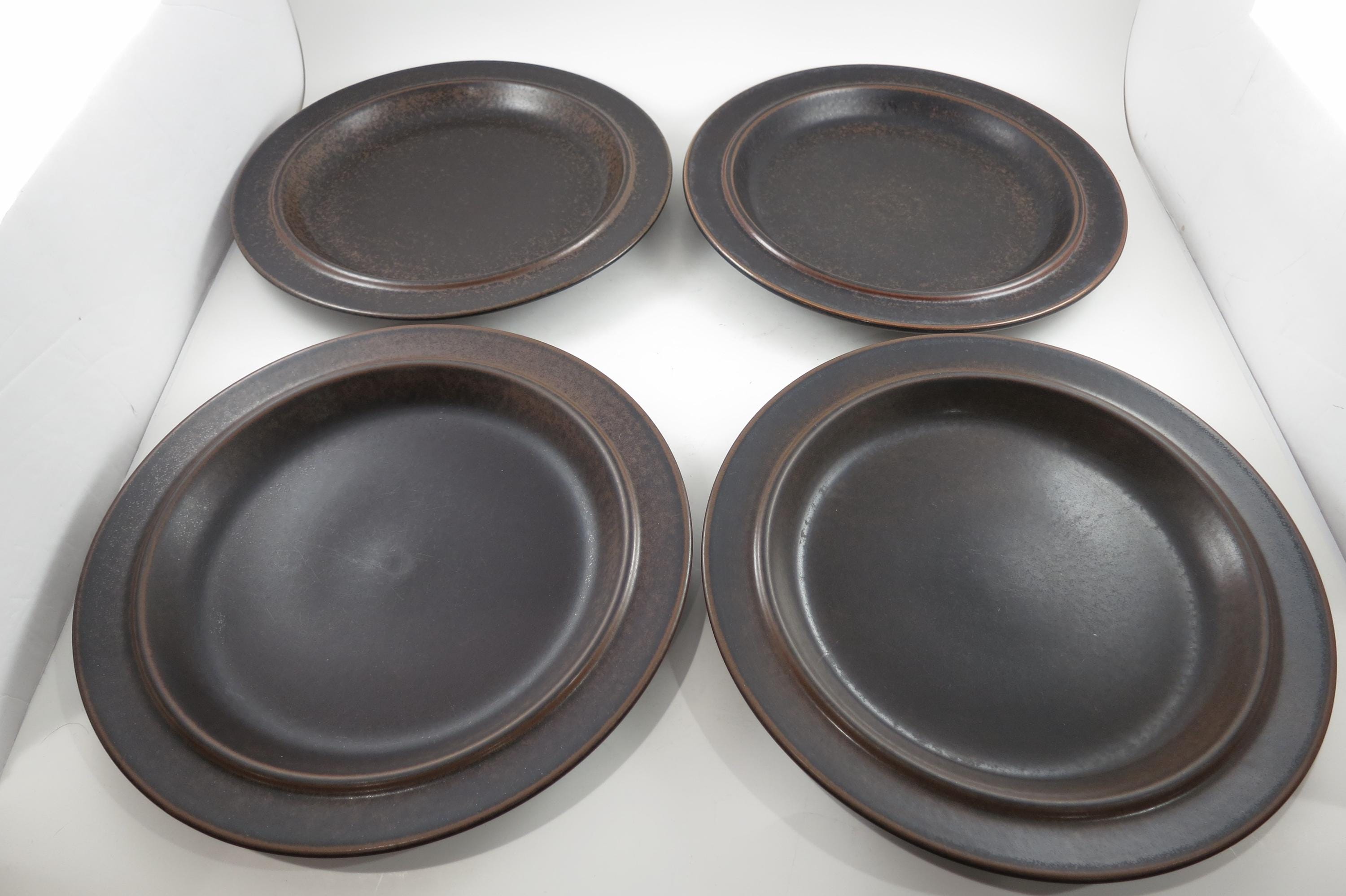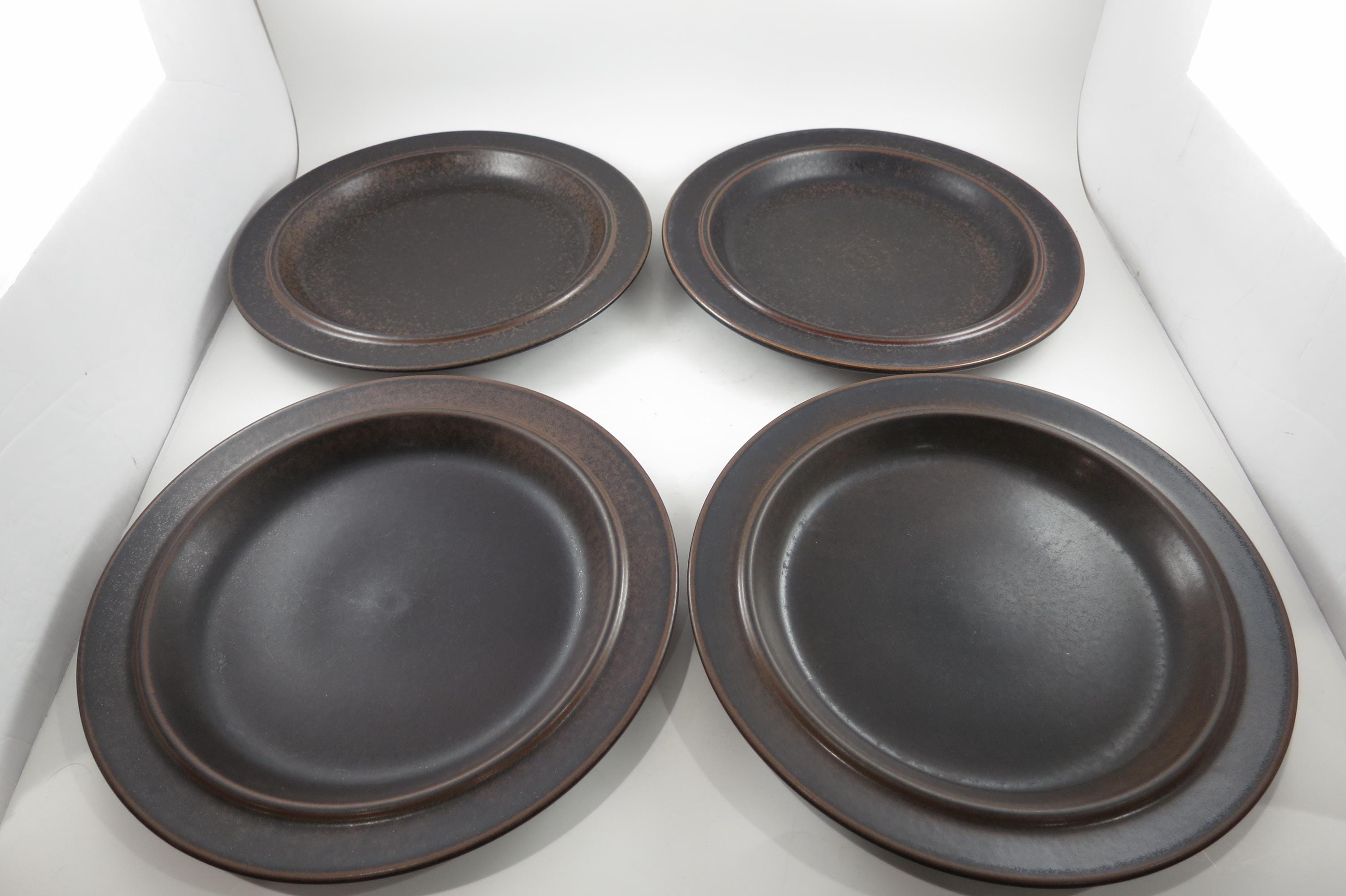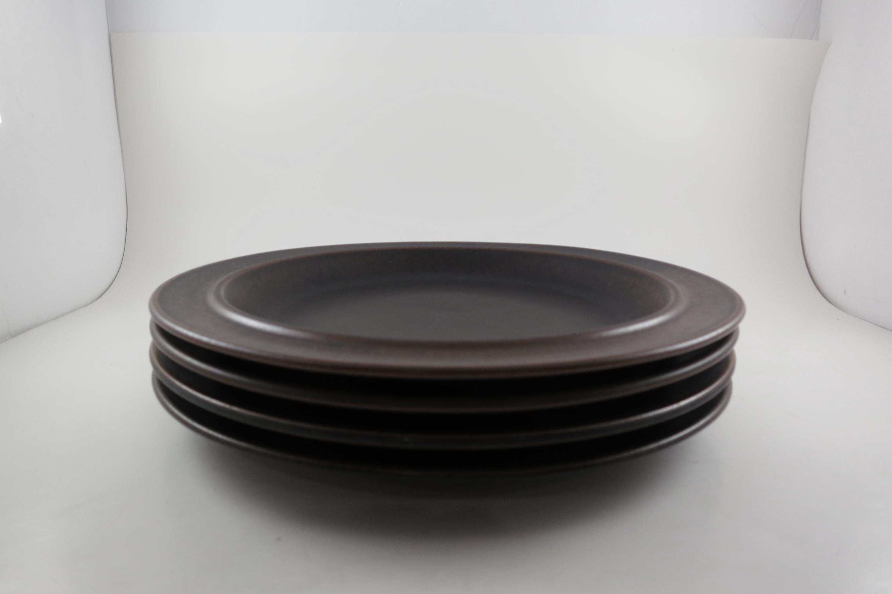 1960's Arabia of Finland Stoneware Ruska Pattern Light and Dark Brown Set of 4 Ten Inch Dinner Plates.