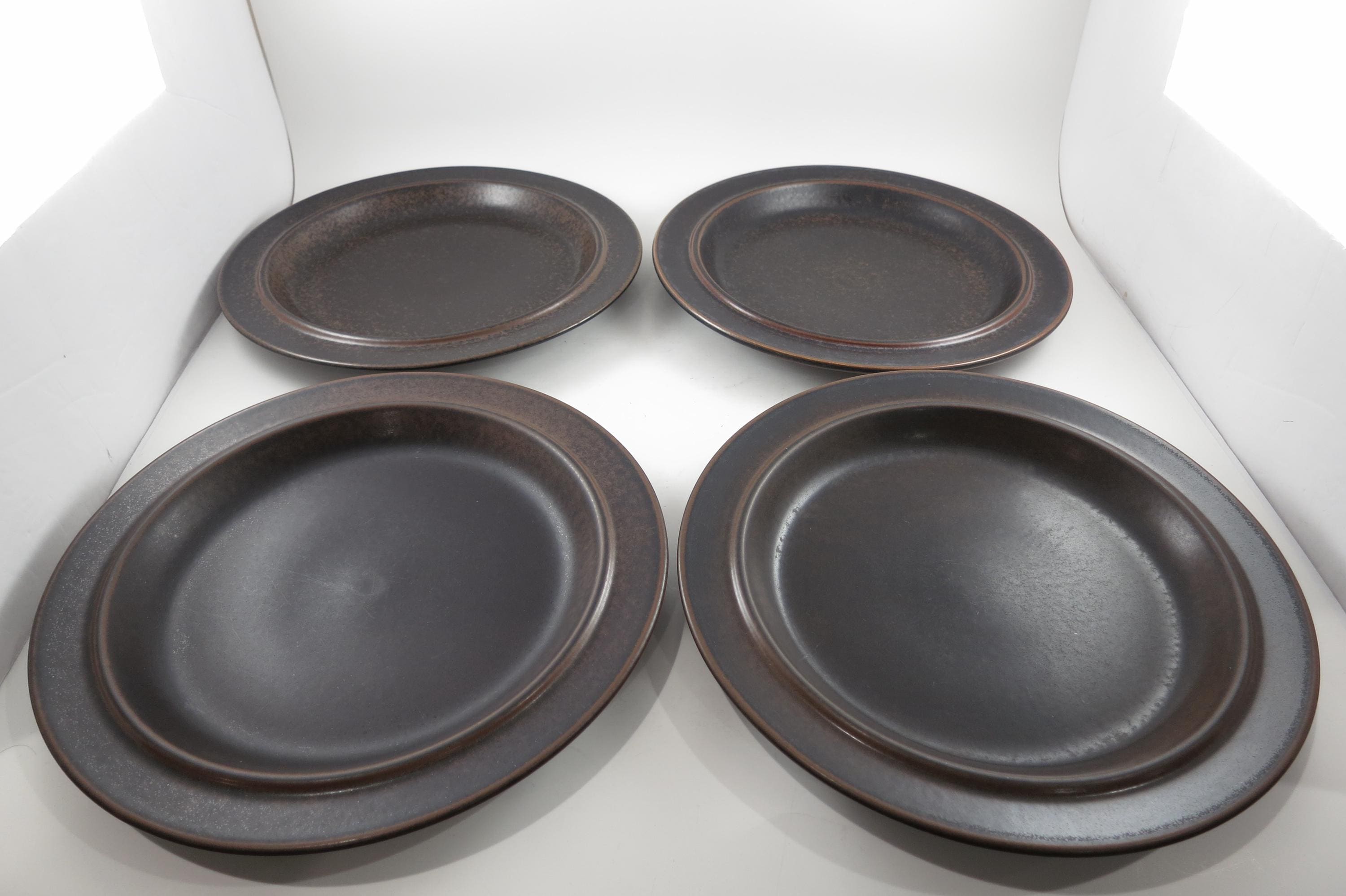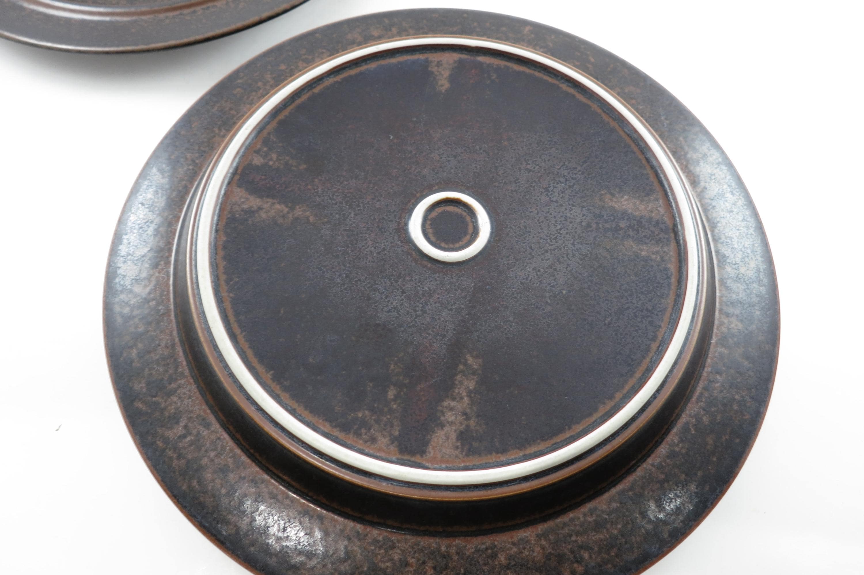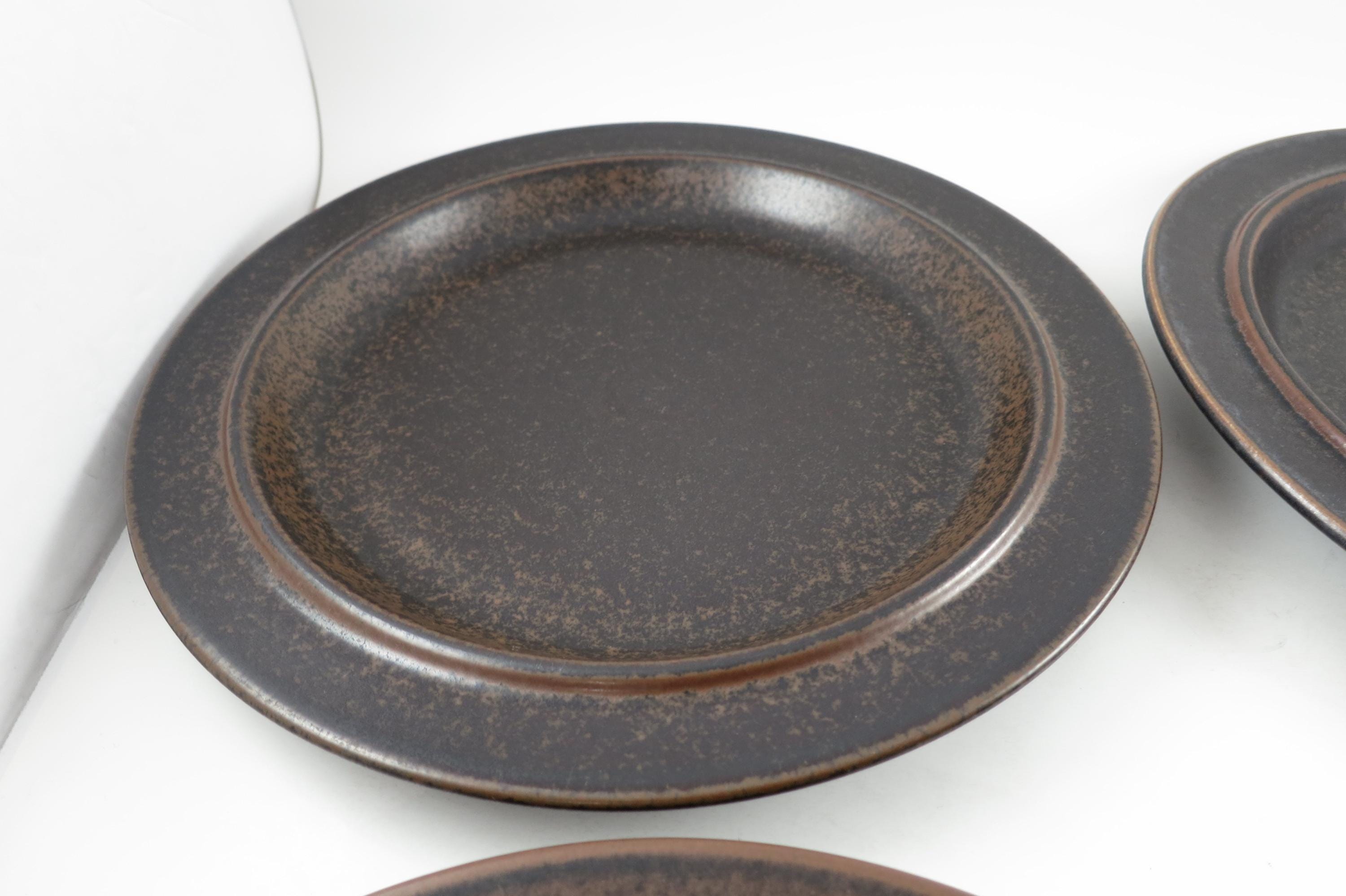 1960's Arabia of Finland Stoneware Ruska Pattern Light and Dark Brown Set of 4 Ten Inch Dinner Plates.