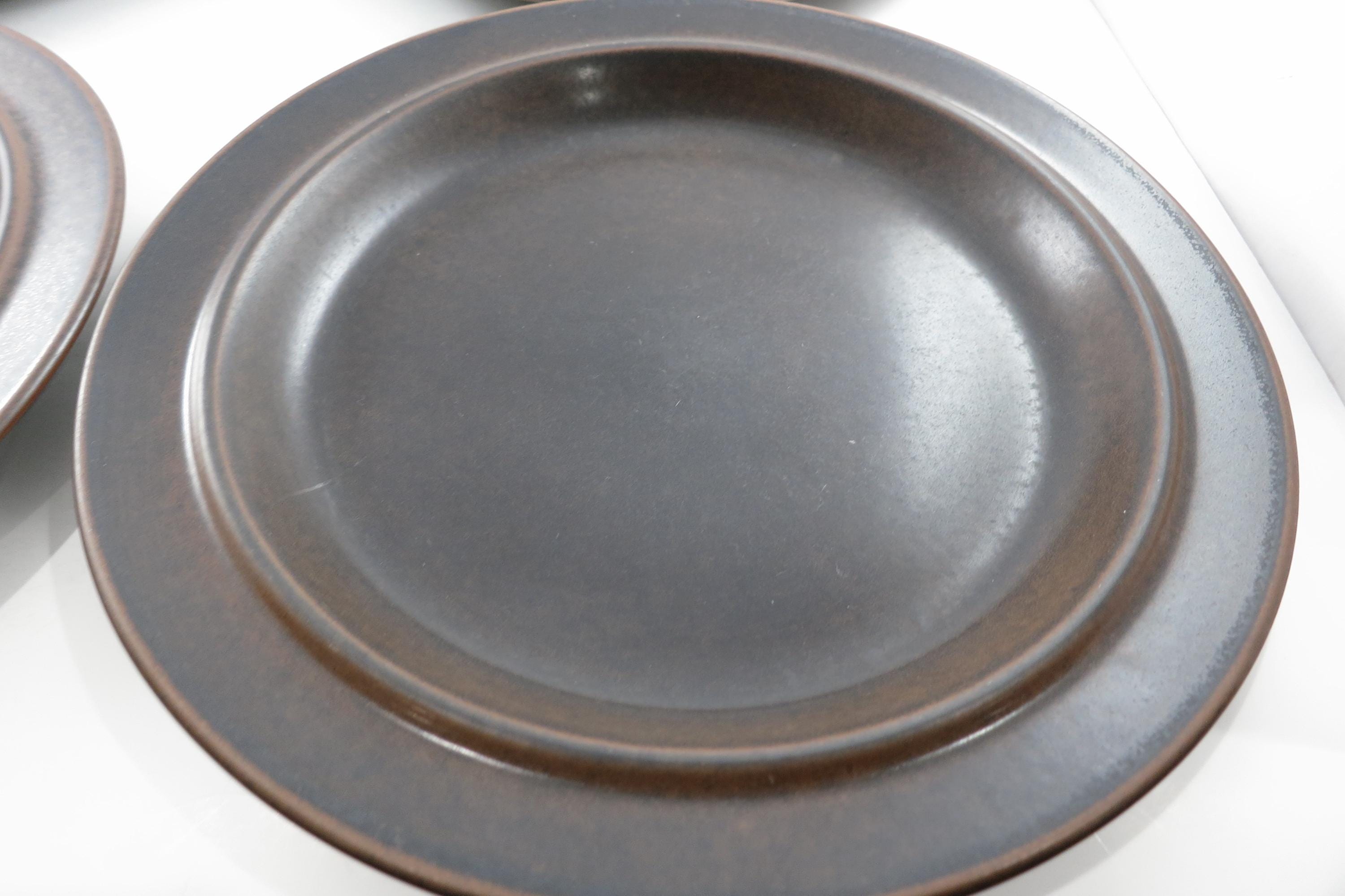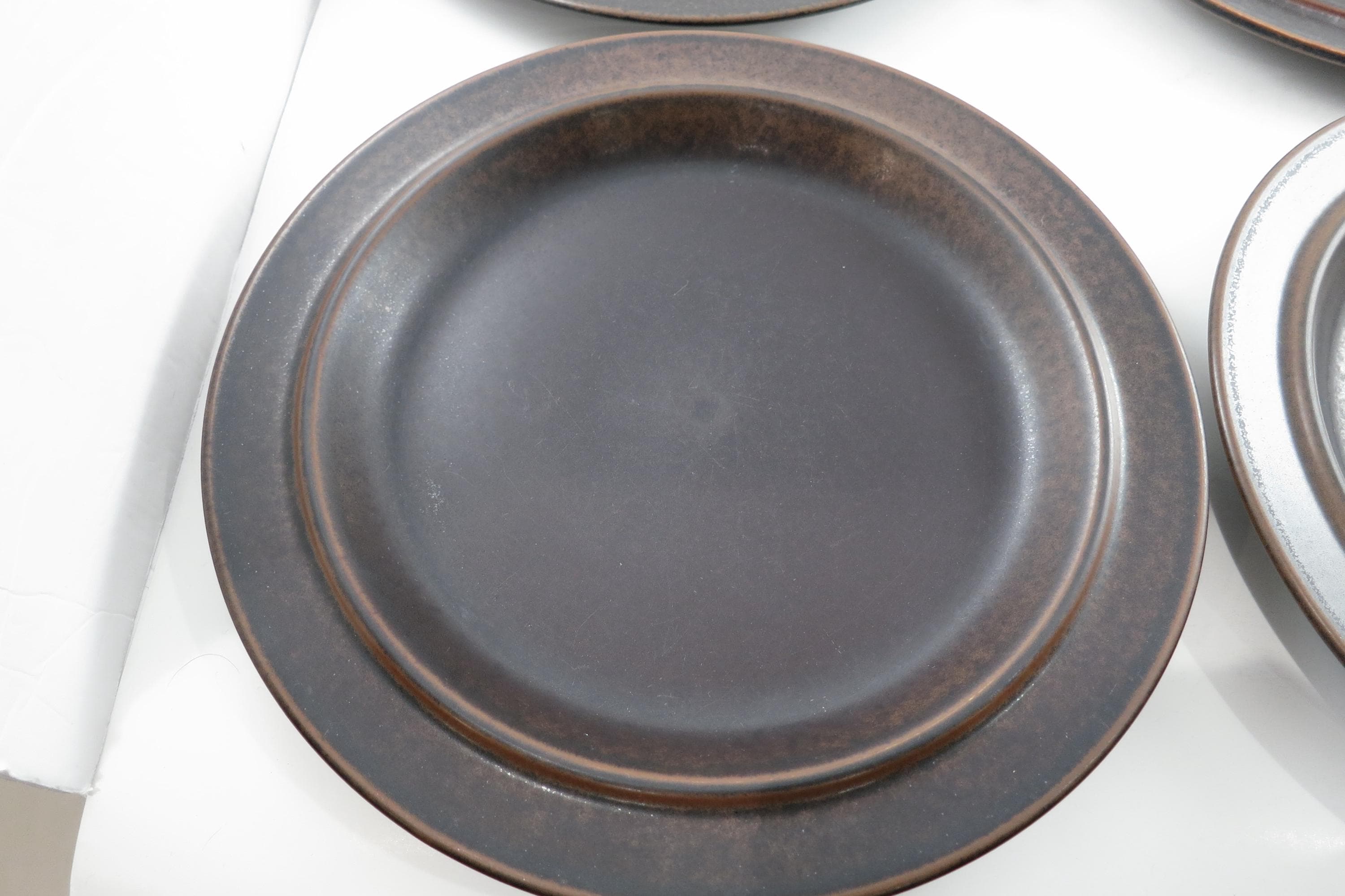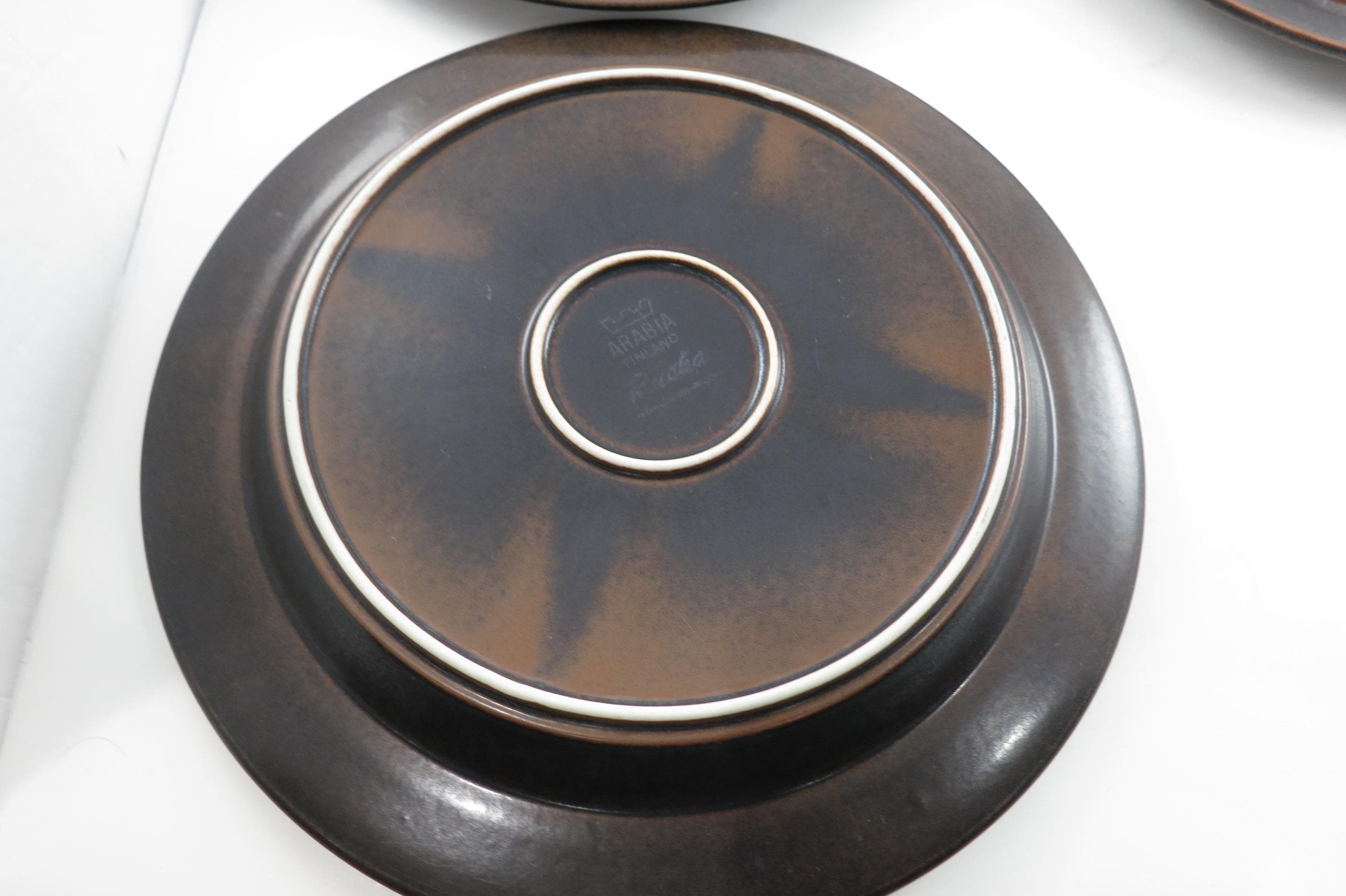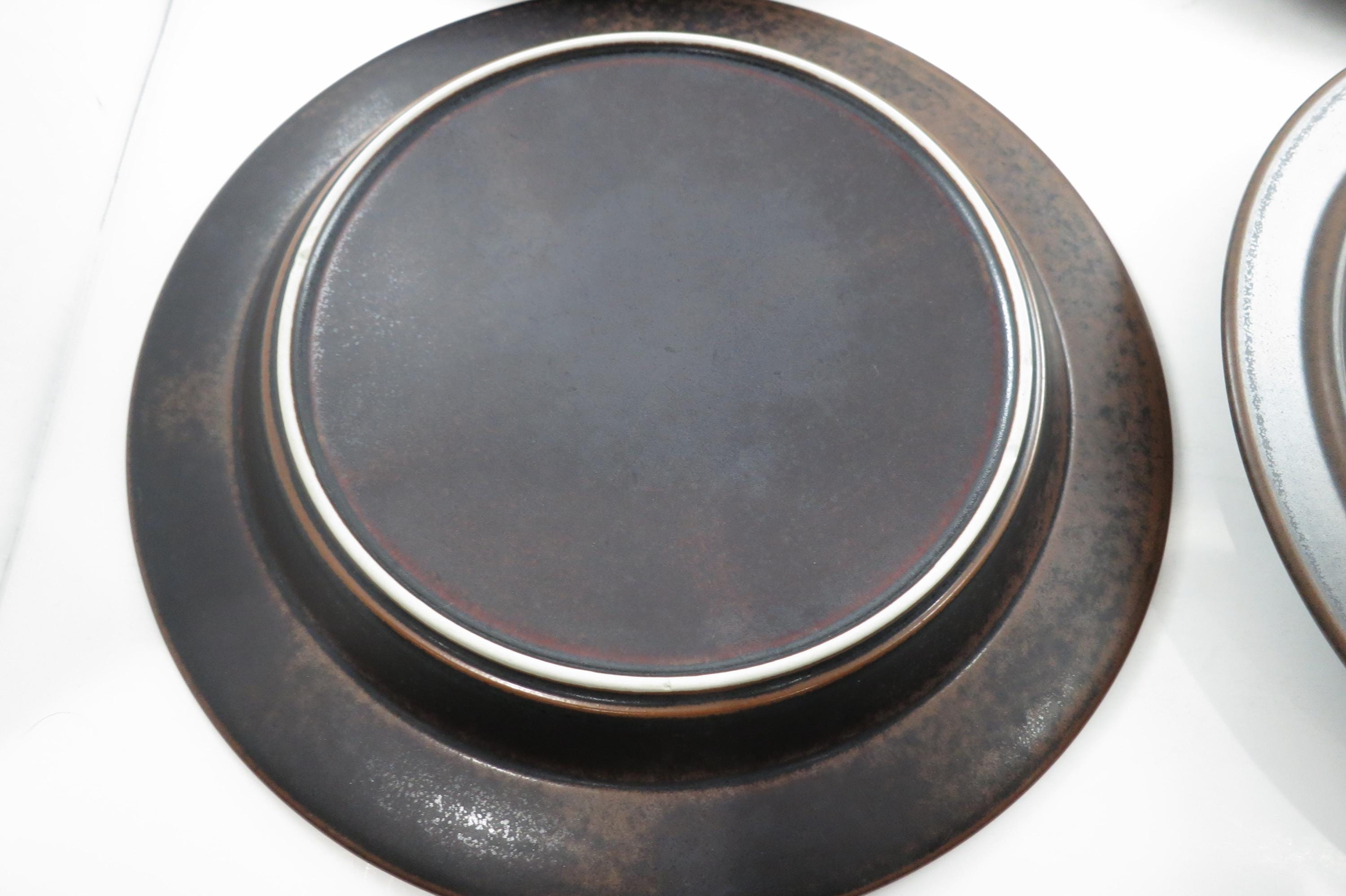 1960's Arabia of Finland Stoneware Ruska Pattern Light and Dark Brown Set of 4 Ten Inch Dinner Plates.