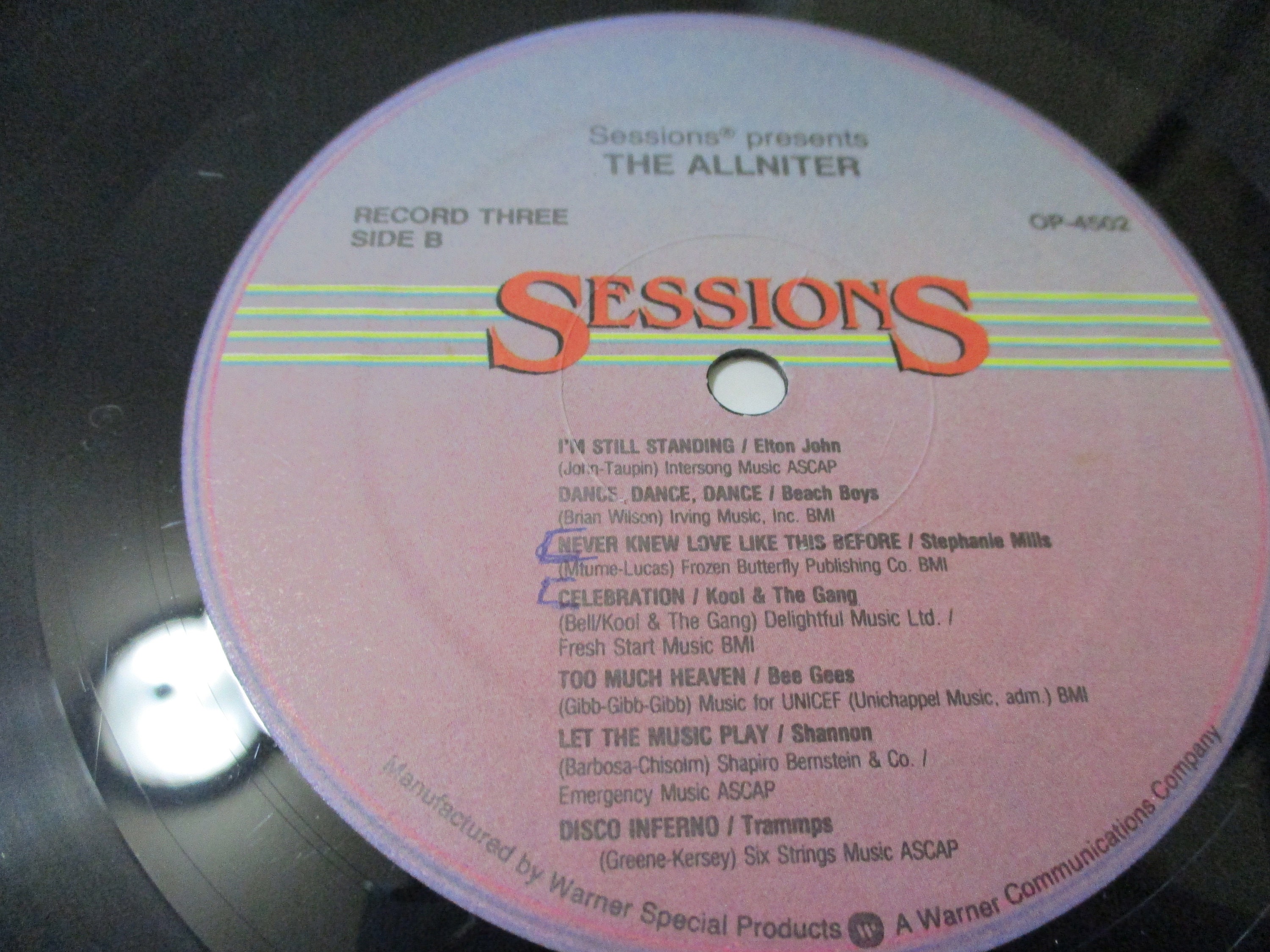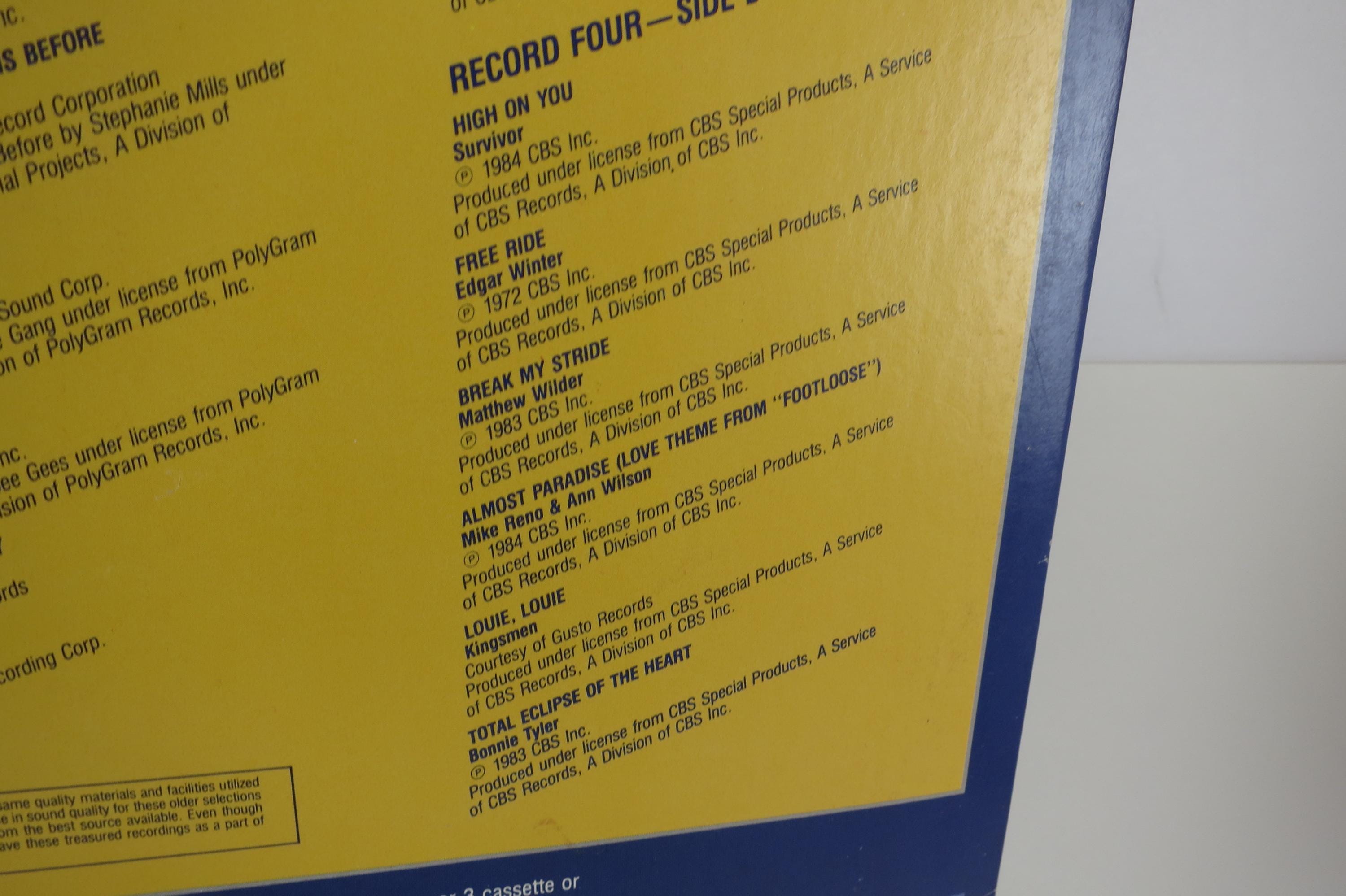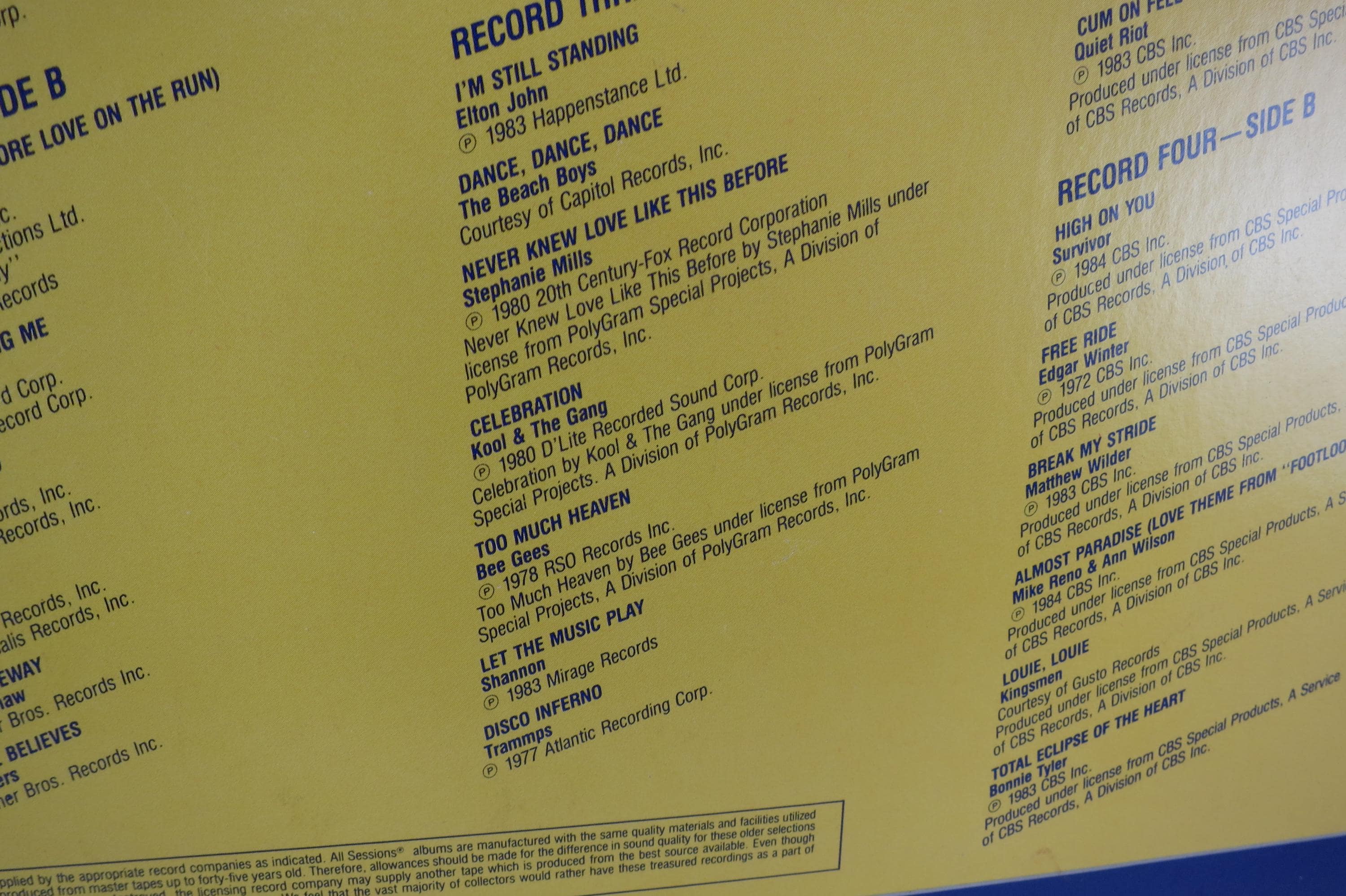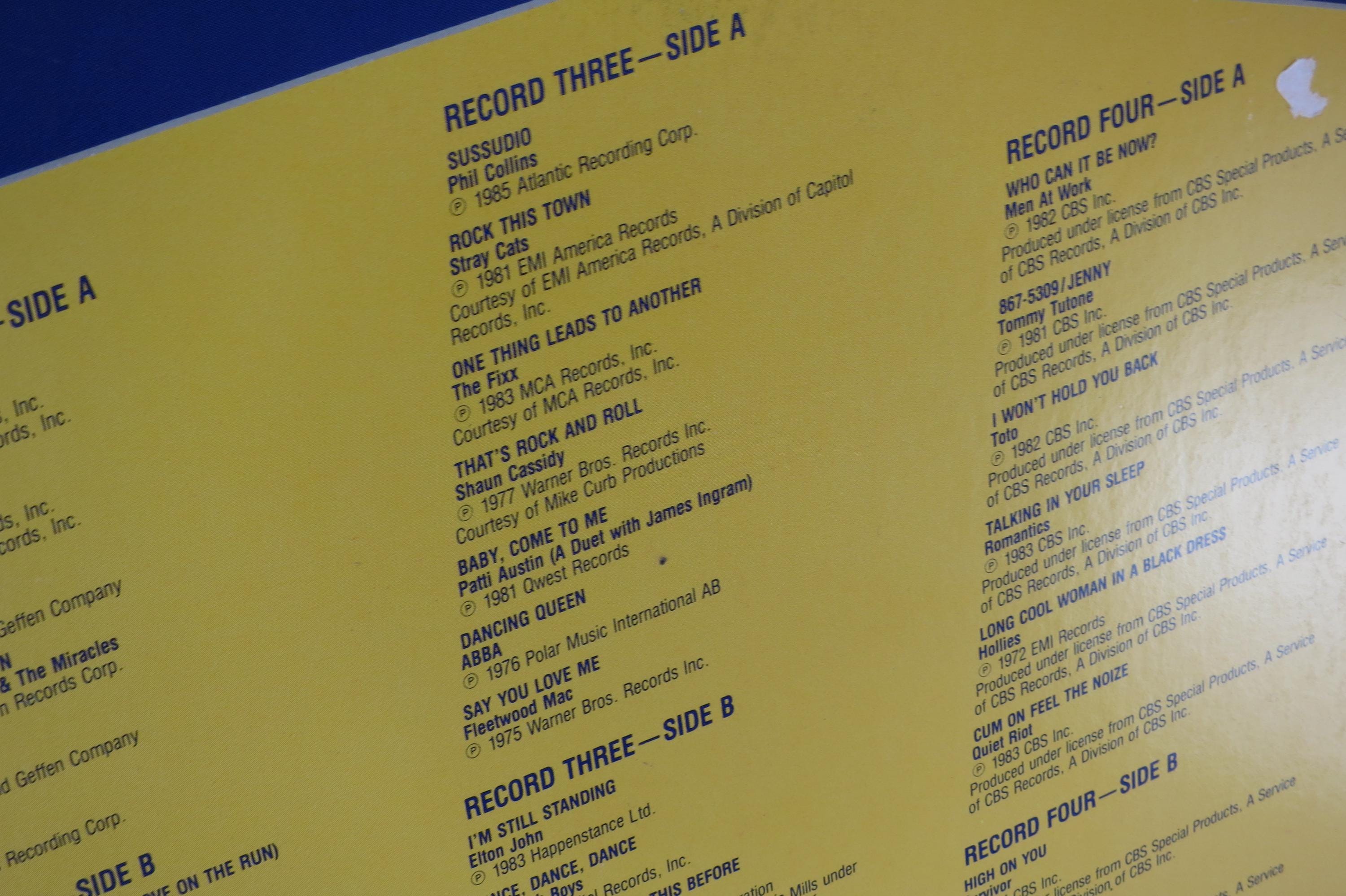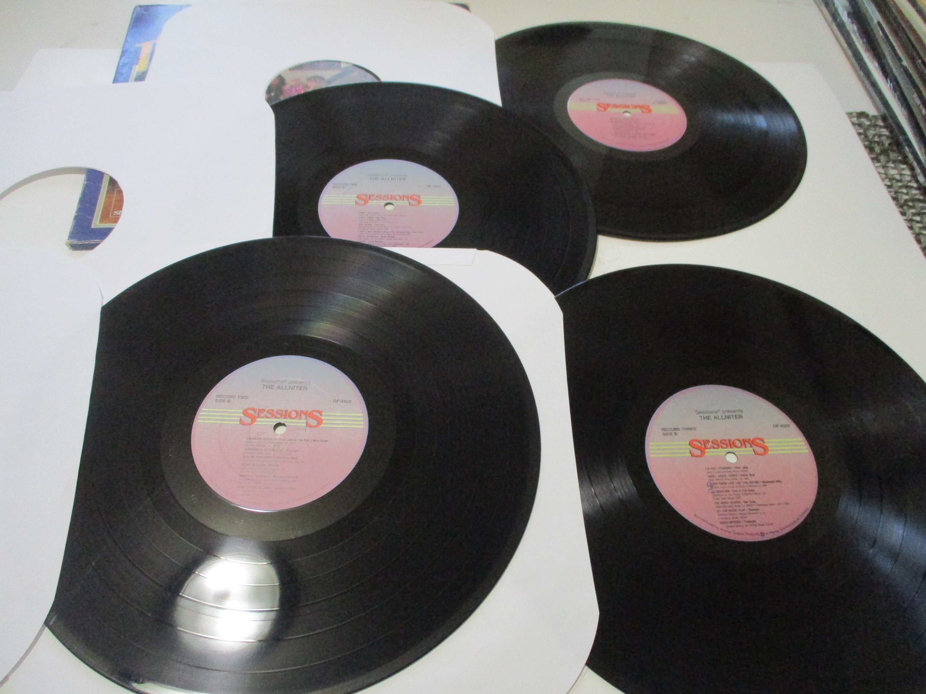 Vintage 1985 Vinyl LP Record Set The Allniter Various Artists Greatest Hits Four Record Set Excellent Condition. Original cover is in excellent condition and includes all four inner paper sleeves. Record 1 is very good with light marks. Record 2 and 3 are excellent. Record 4 is very good plus. Tracks are as follows