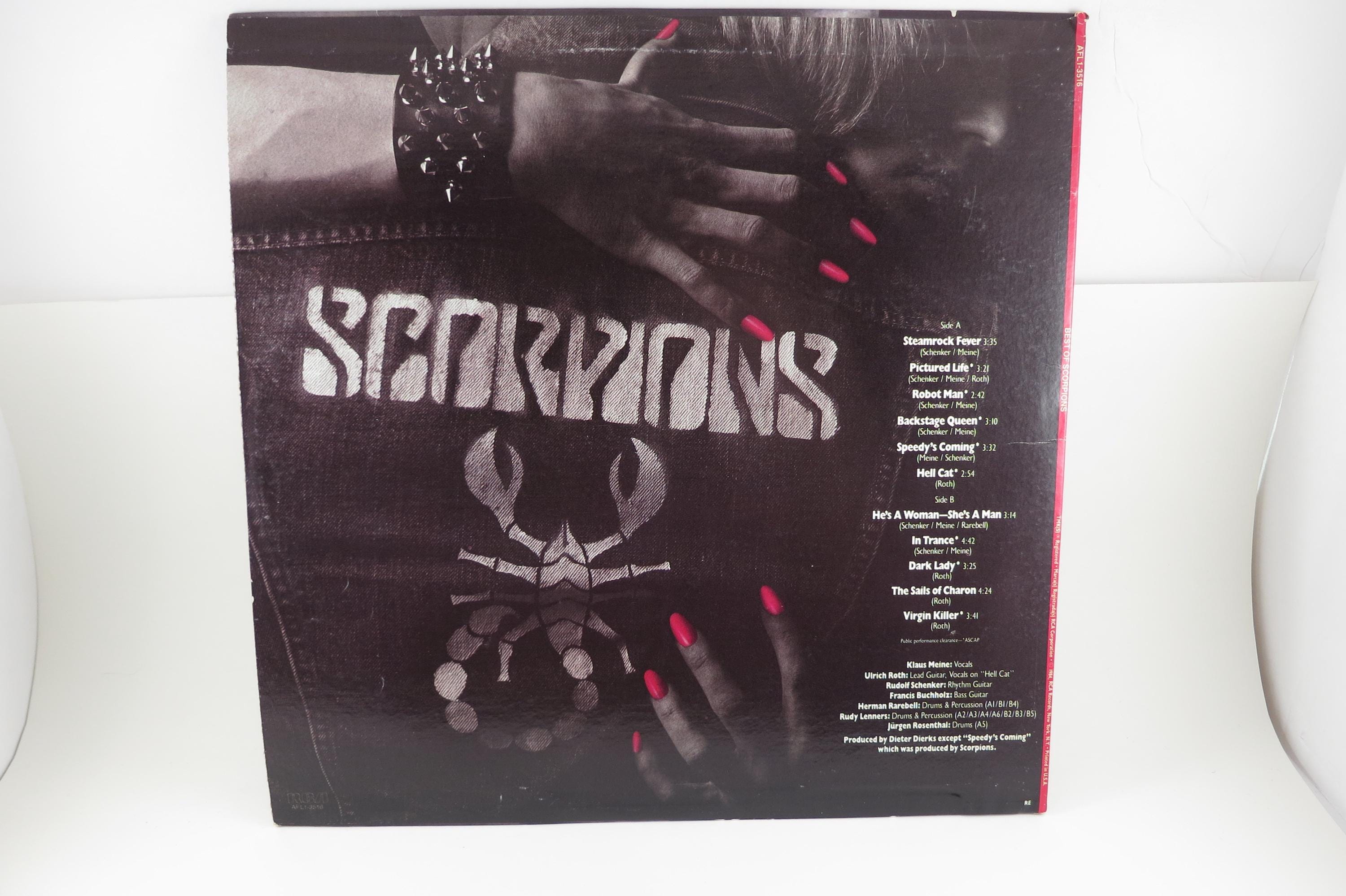 Vintage 1984 Vinyl LP Record Best of the Scorpions Near Mint Alternate Cover. Original cover is in excellent condition and includes the inner paper sleeve. Record is Near Mint. Great Copy! Tracks are as follows