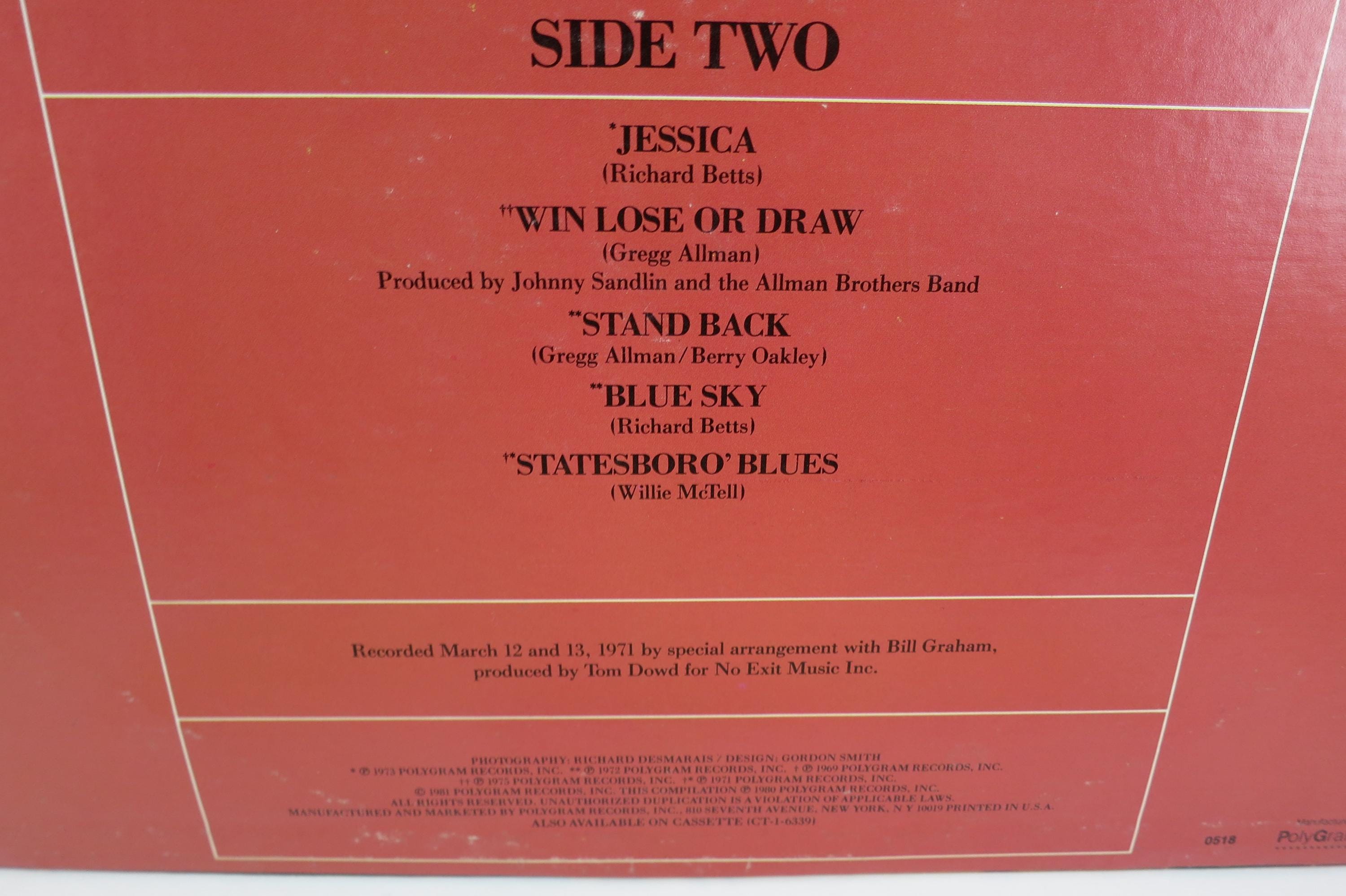 1981 Vinyl LP Record The Best Of The Allman Brothers Near Mint Condition. Original cover is in excellent condition and includes the original inner paper sleeve. Record is Near Mint. Tracks are as follows