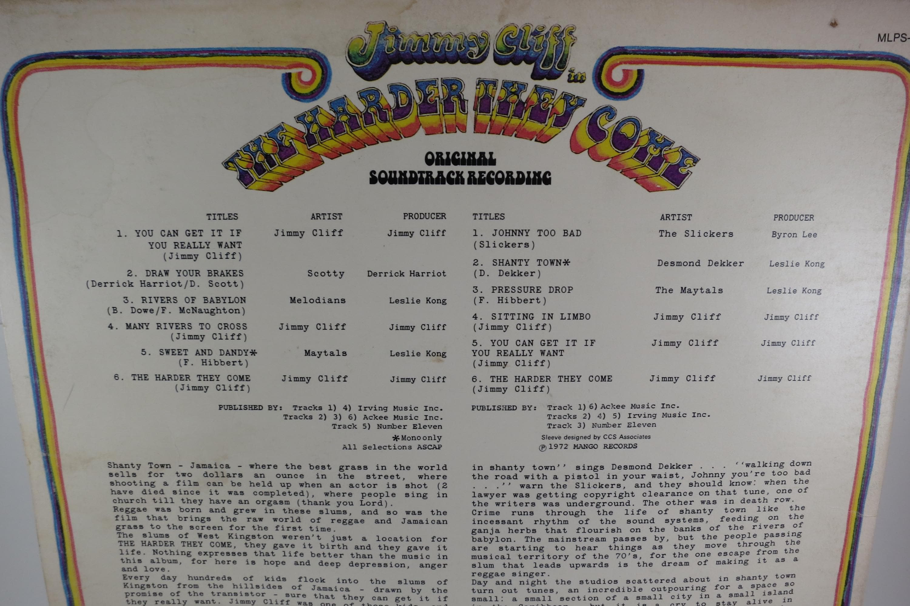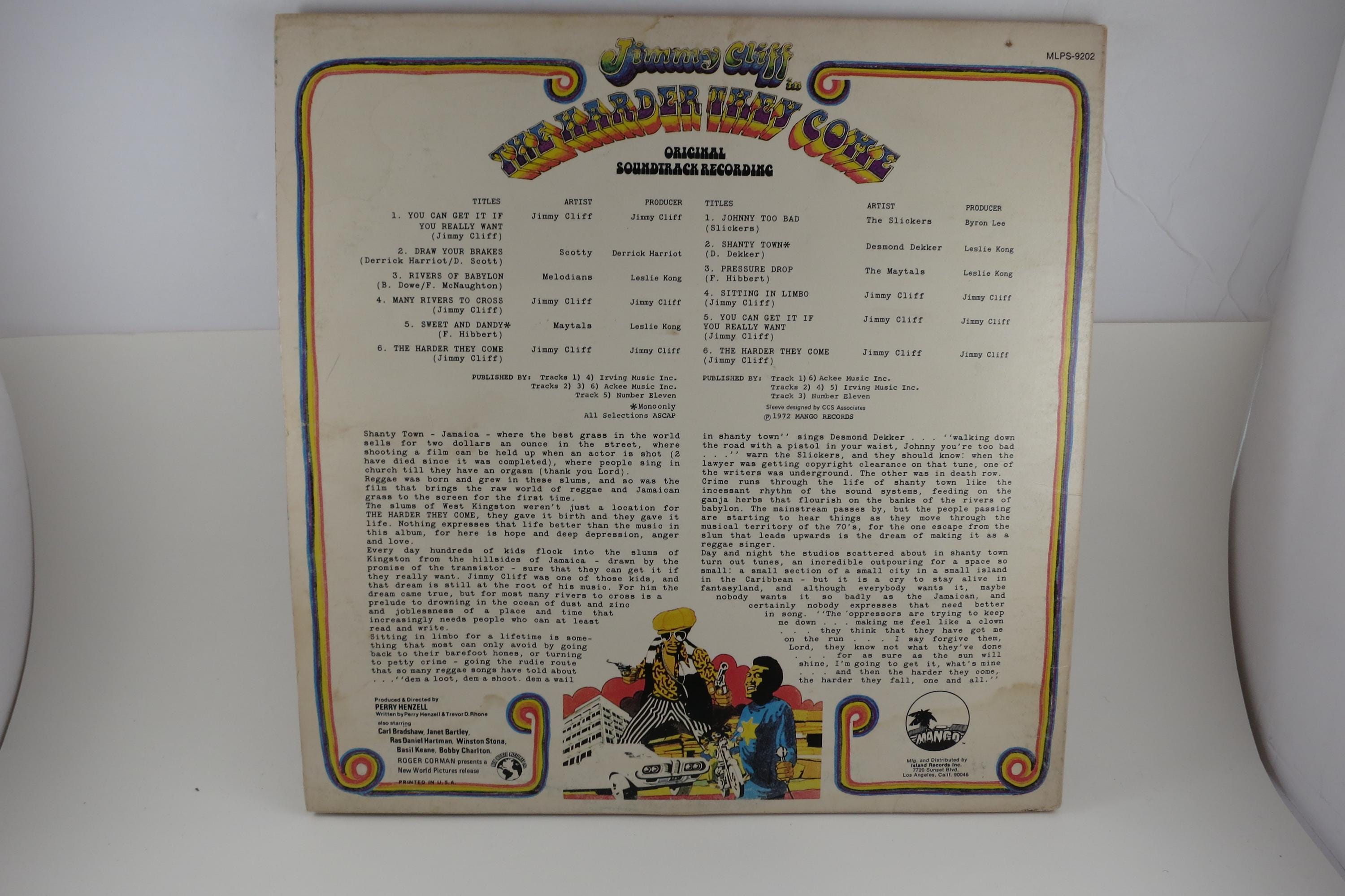 Vintage 1977 Vinyl LP Record The Harder They Come Soundtrack Jimmy Cliff Excellent. Original cover is in good condition and includes the inner paper sleeve. Cover looks decent but has some waves from old water damage years ago. Record is excellent and plays perfectly. Tracks are as follows