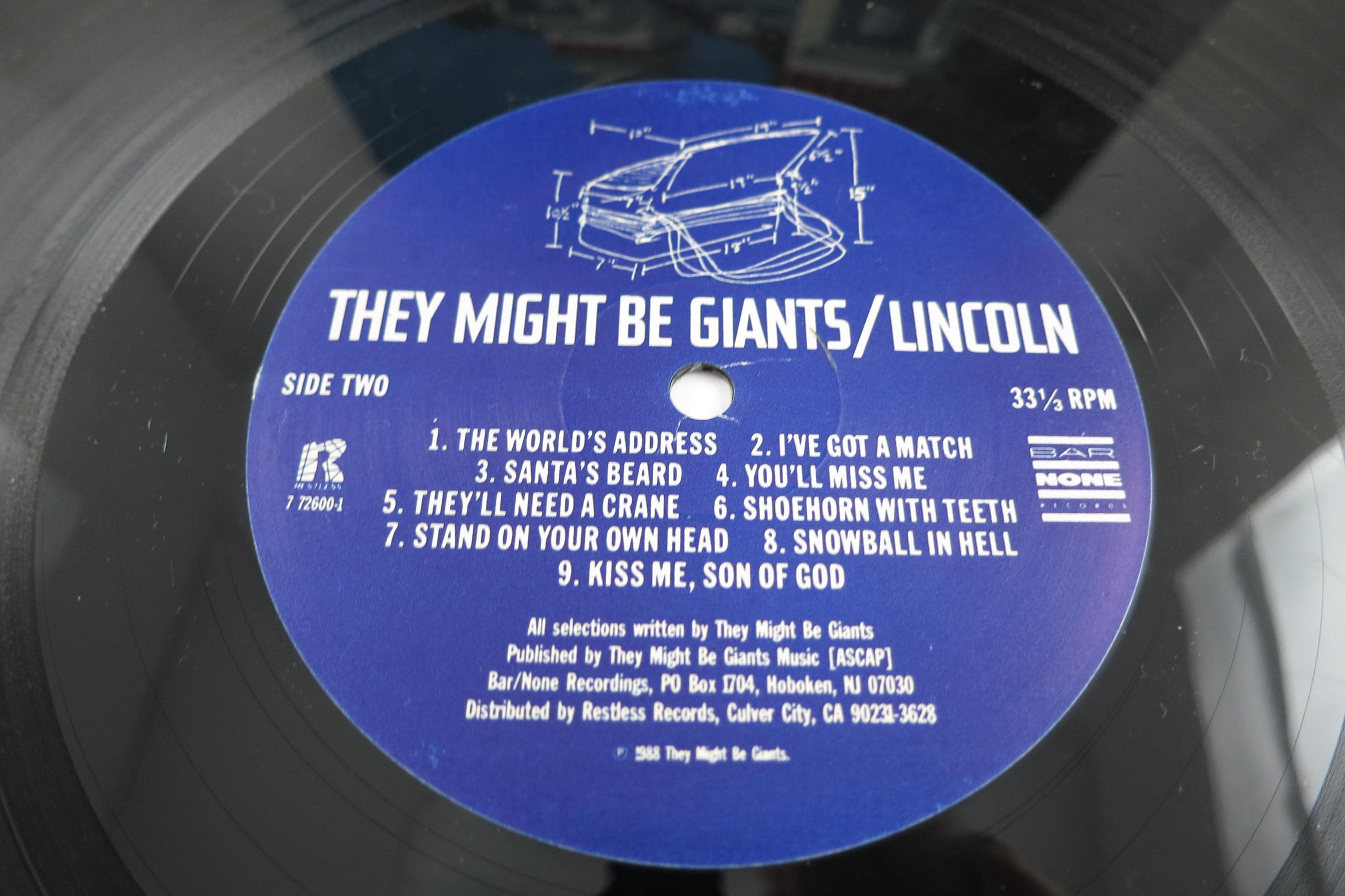 Vintage 1988 Vinyl LP Record They Might Be Giants Lincoln Original US Pressing. Original cover is in excellent pluscondition and includes the inner paper sleeve and the original insert. Record is excellent plus and plays perfect. Hard one to find!! Tracks are as follows