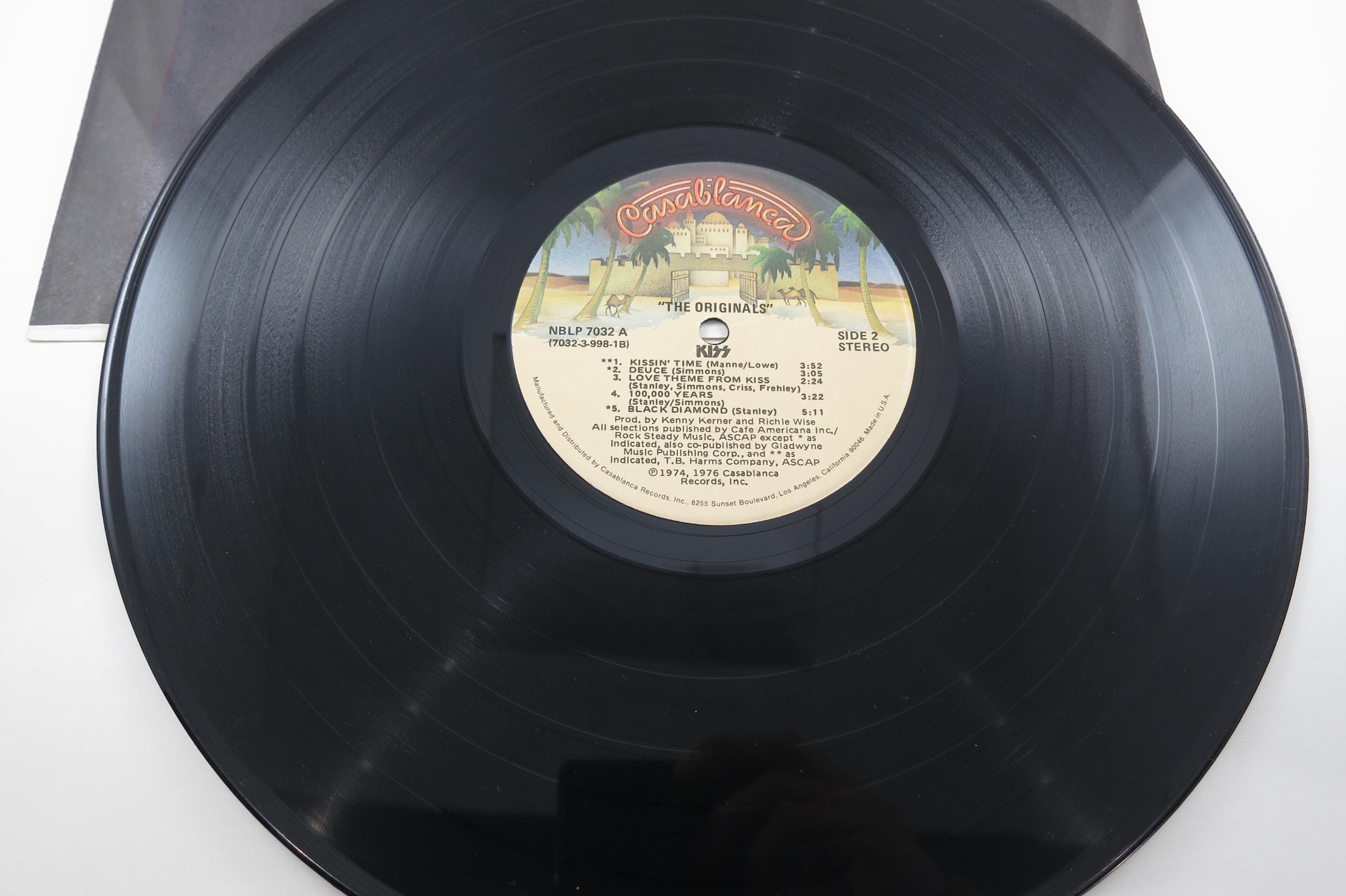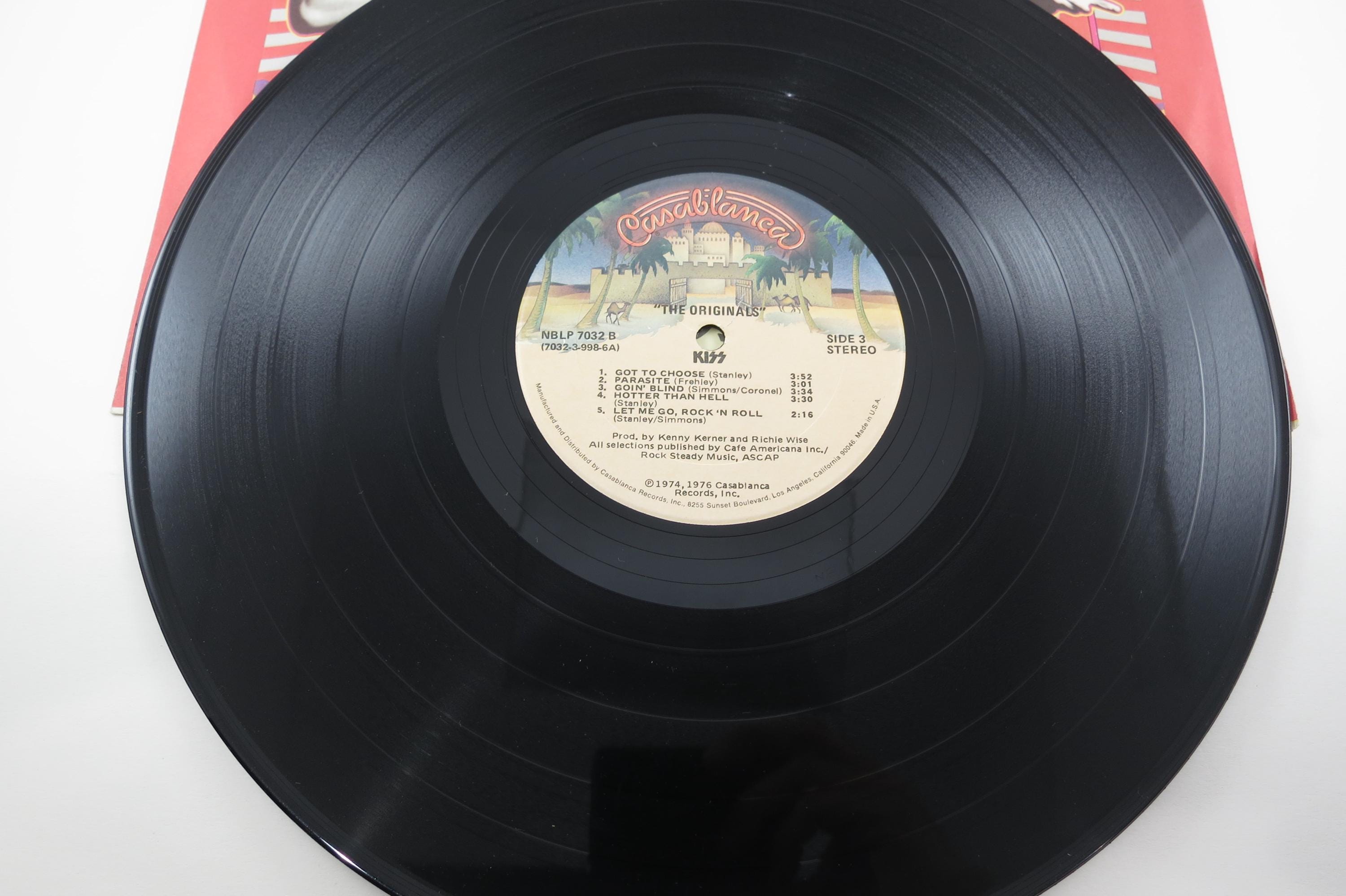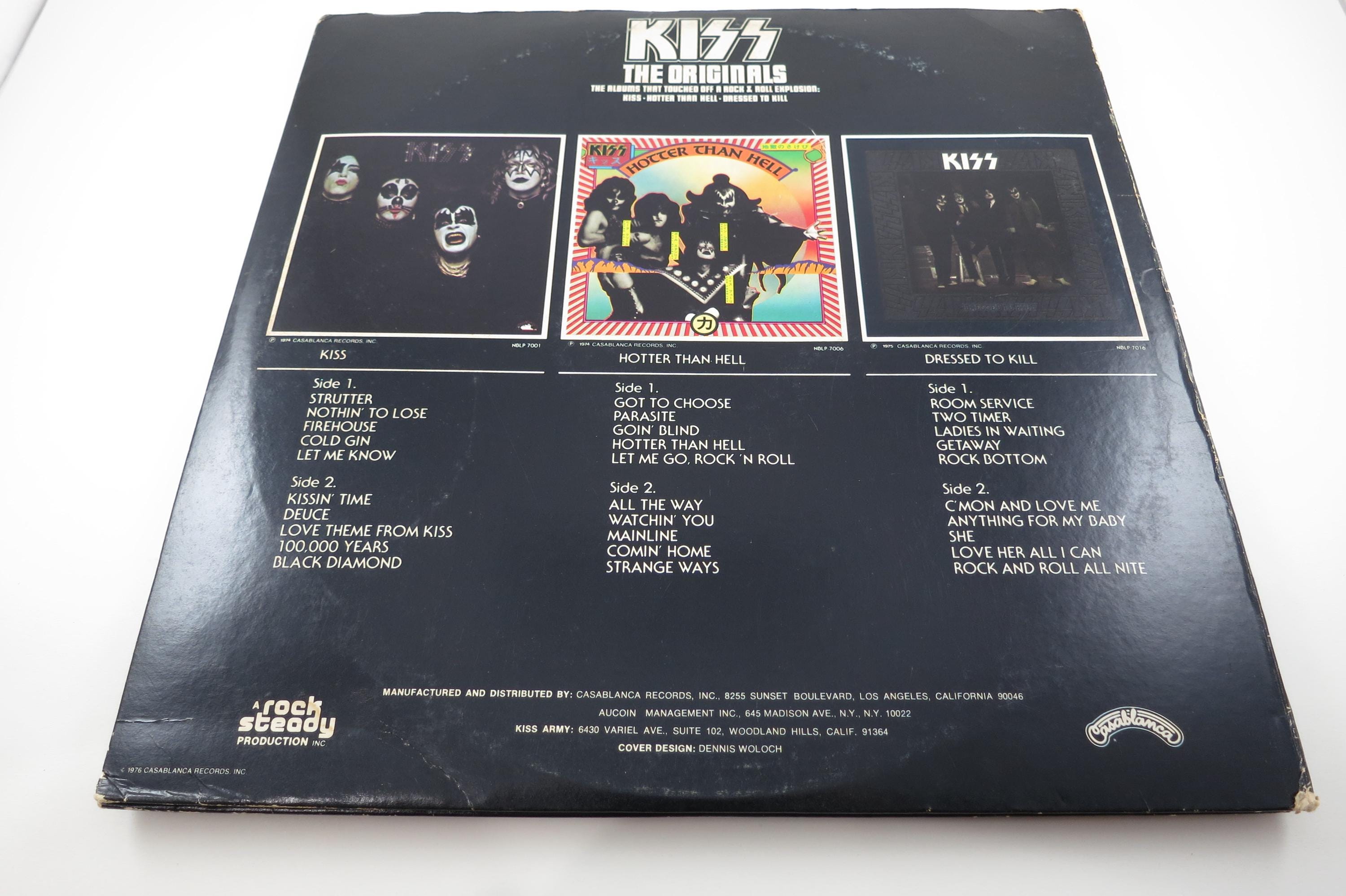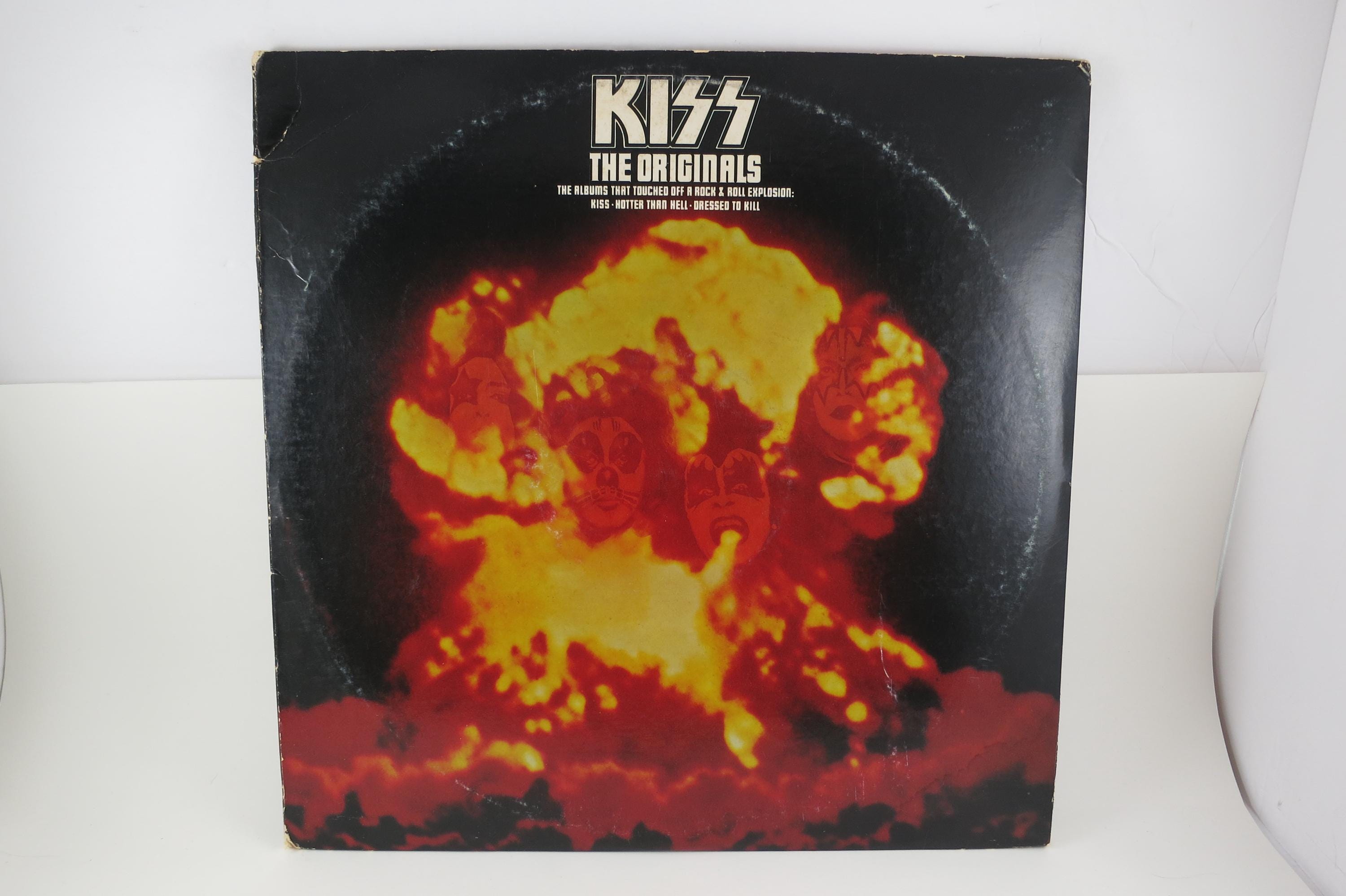 Vintage 1976 Vinyl LP Record Set Kiss The Originals Excellent with All Inner Sleeves and Book. Original cover is in excellent condition. All three records have their original inner sleeves, which is a copy of the front and back of the original albums, and also includes the original Kiss Booklet. All three records are excellent and play perfectly. A great chance to get this at a decent price!! Tracks are as follows