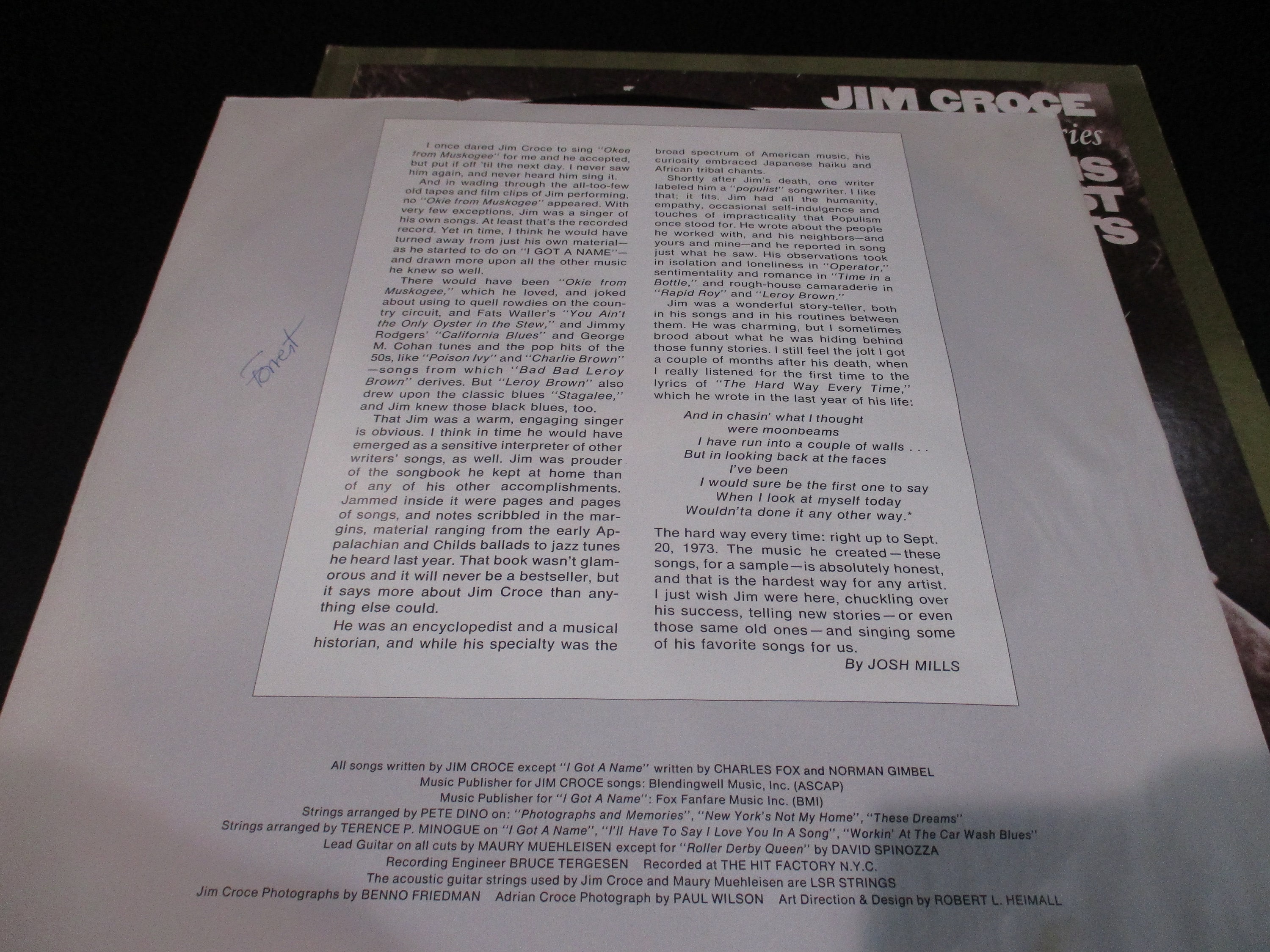 Vintage 1974 Vinyl LP Record Jim Croce Photographs & Memories His Greatest Hits Near Mint