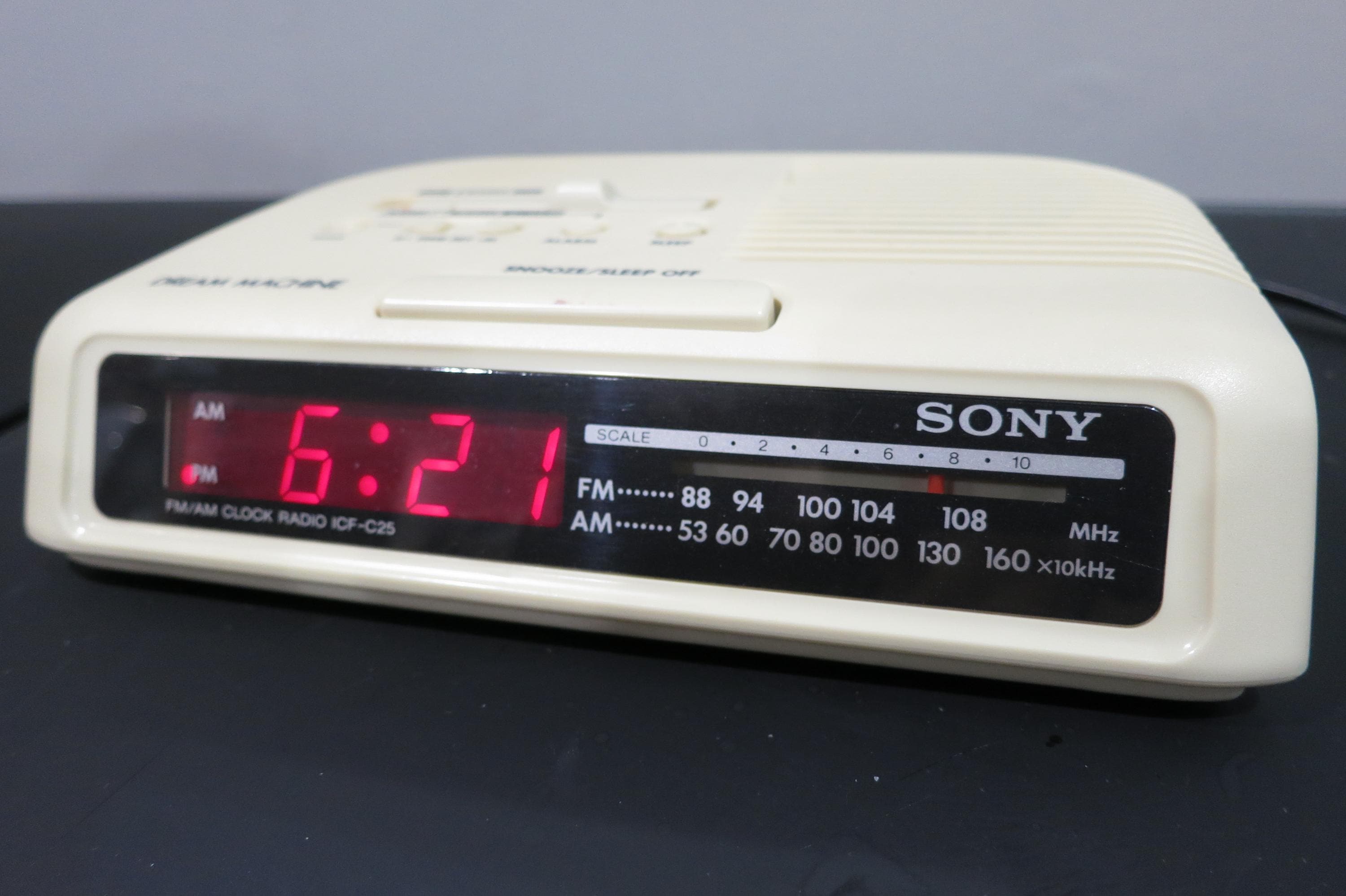 Vintage 1980's Sony Dream Machine FM/AM Digital Clock Radio Alarm Clock Model ICF-C25 Works Perfect.