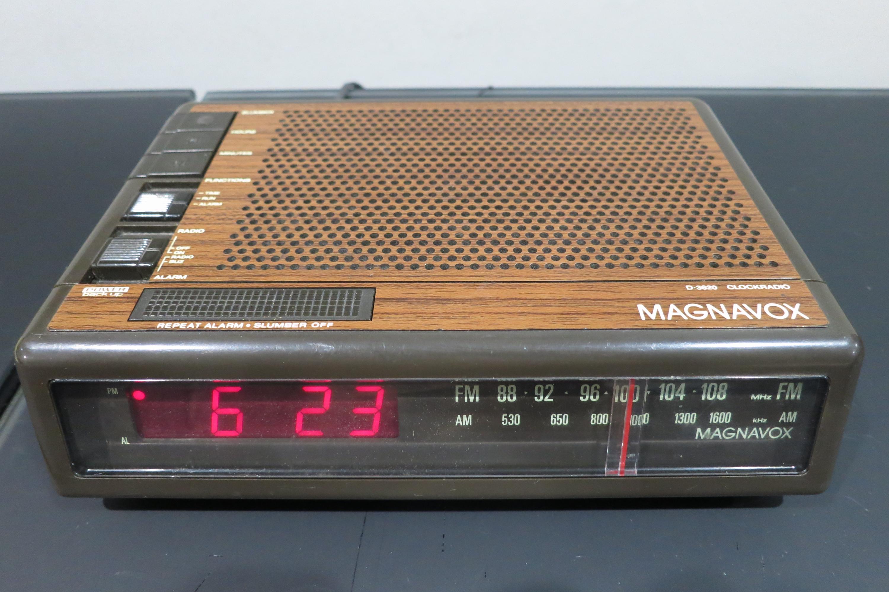 Vintage 1980's Magnavox D-3620 Alarm Clock Faux Wood Case Works Perfect Back to the Future.