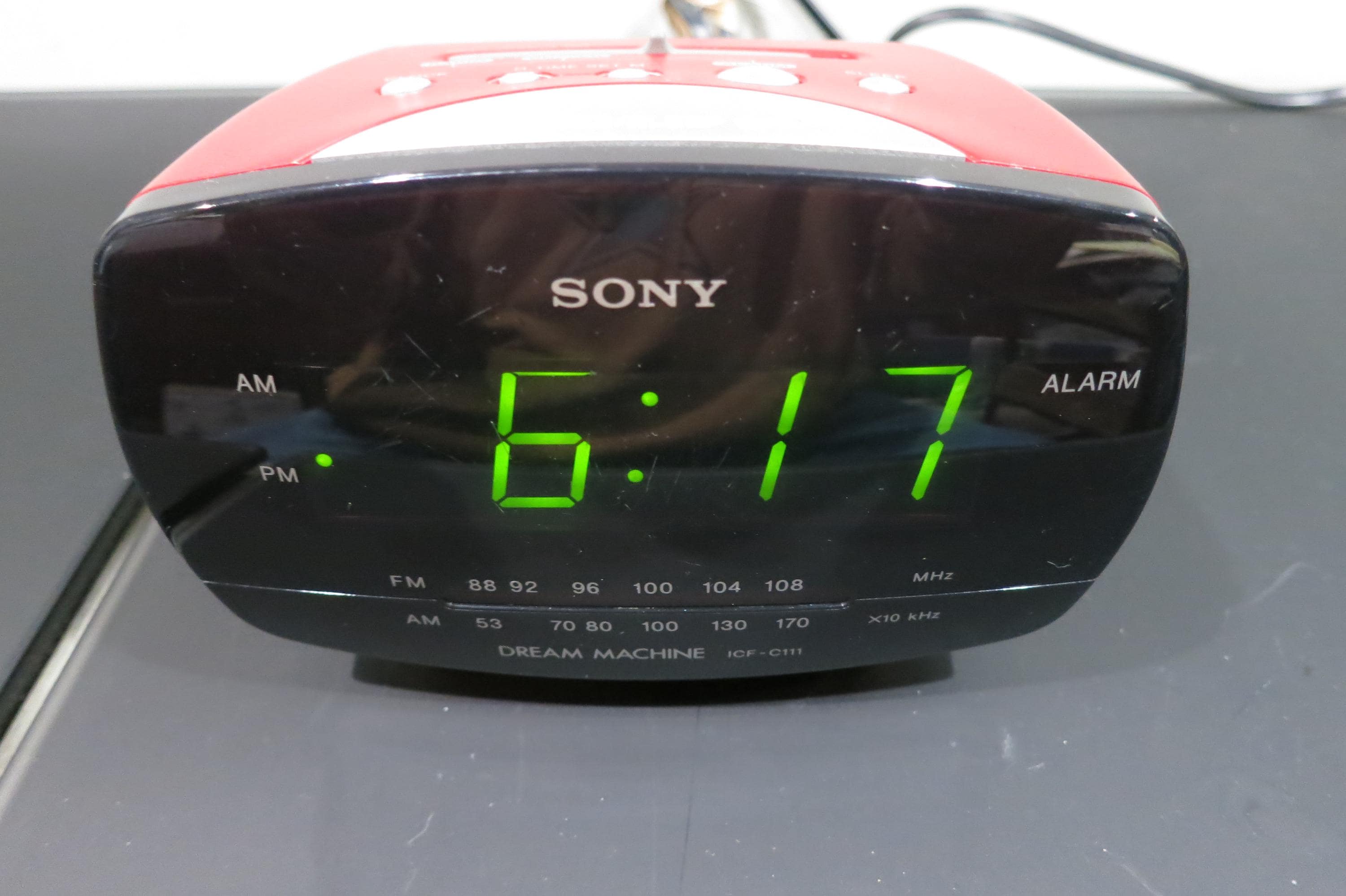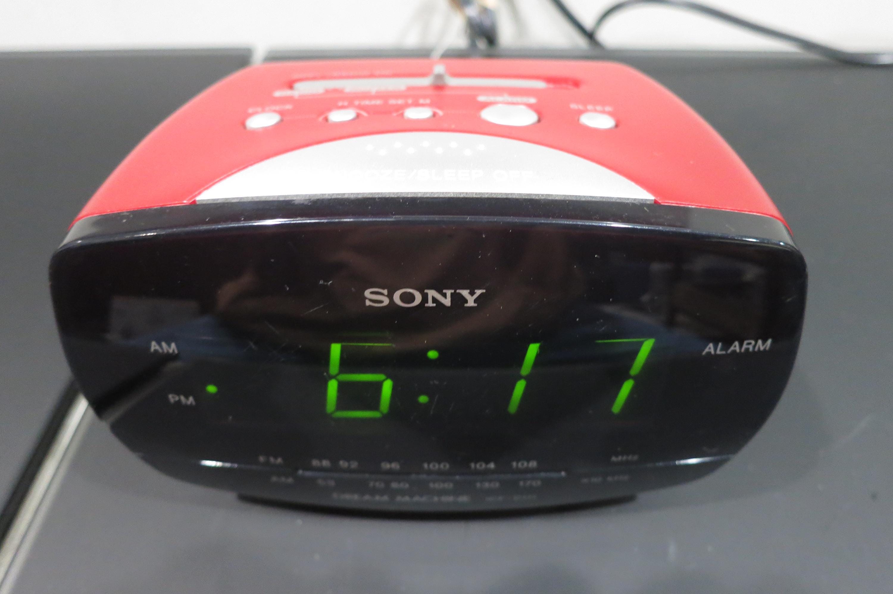 Vintage 1990's Sony Dream Machine FM/AM Digital Clock Radio Alarm Clock Model ICF-C111 Red Works Perfect.