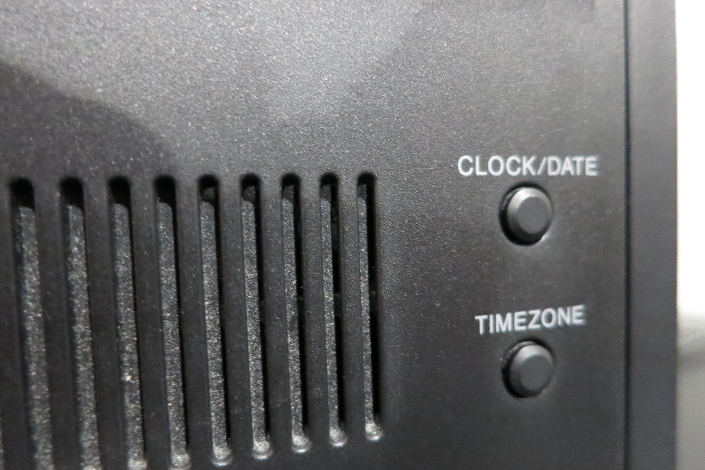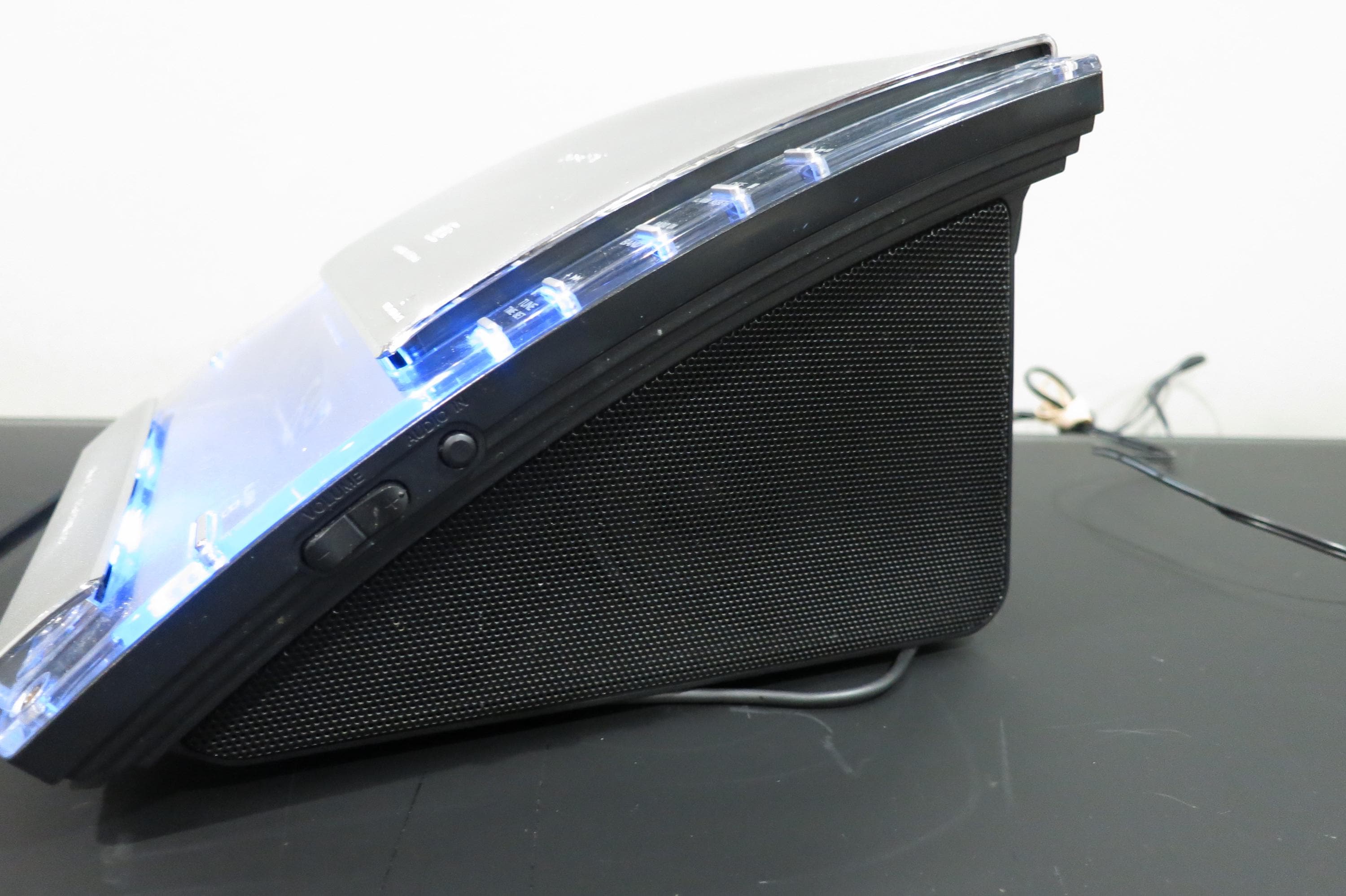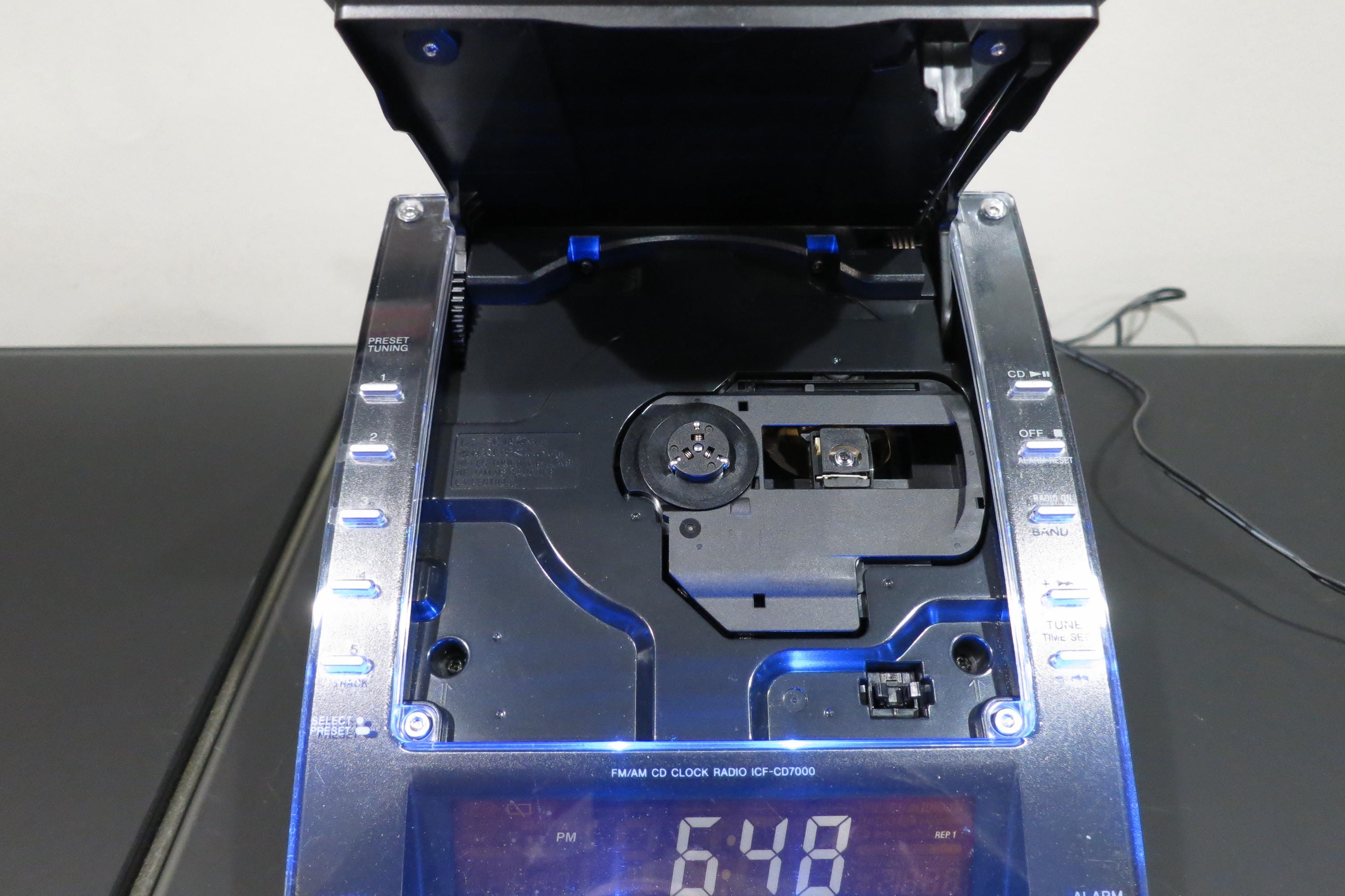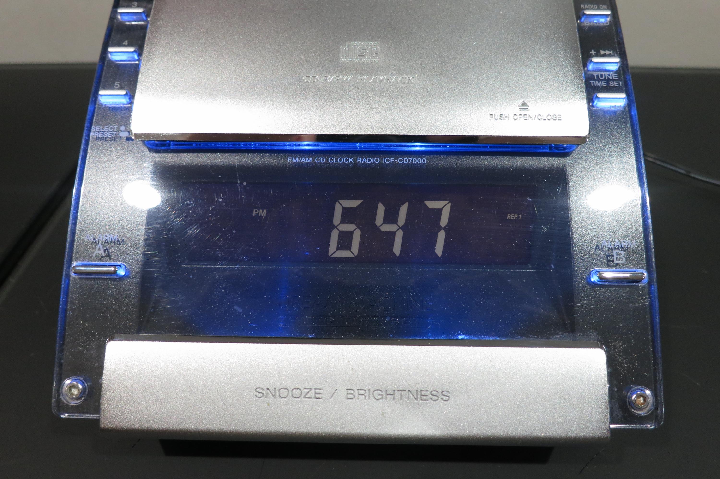Features dual alarms that can be set to buzzer or music, Blue LED Display, Snooze/Nap Feature, and a working CD player. Alarms have been tested and all the features of this unit work great! Has three shades of blue light selection.