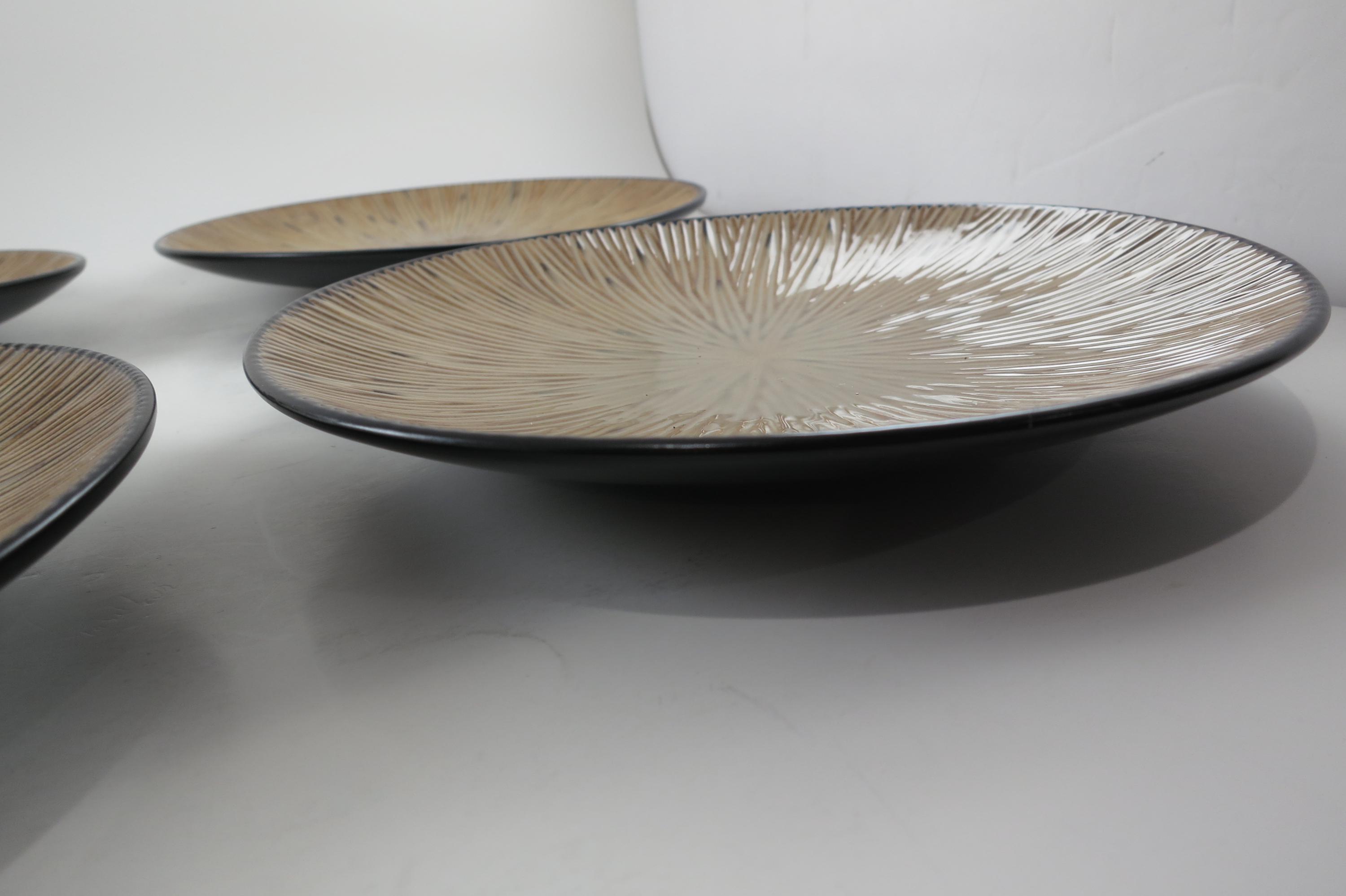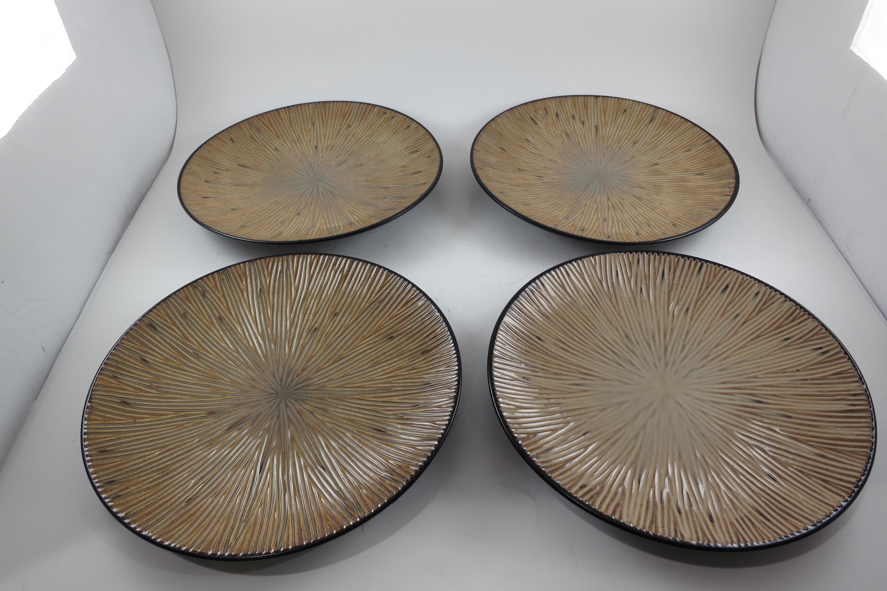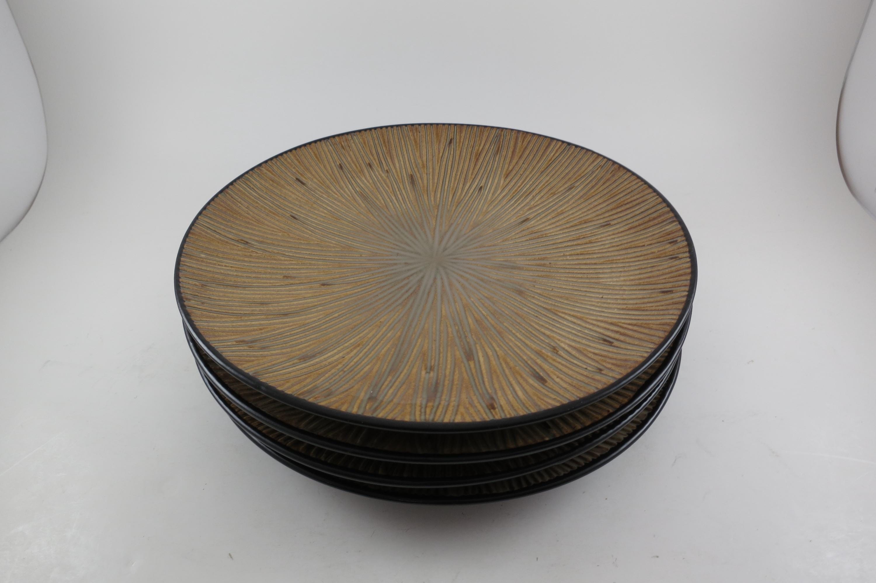 Vintage Joseph Abboud Light Dark Brown Stoneware Set of Four 8 1/2 Inch Lunch Plates.