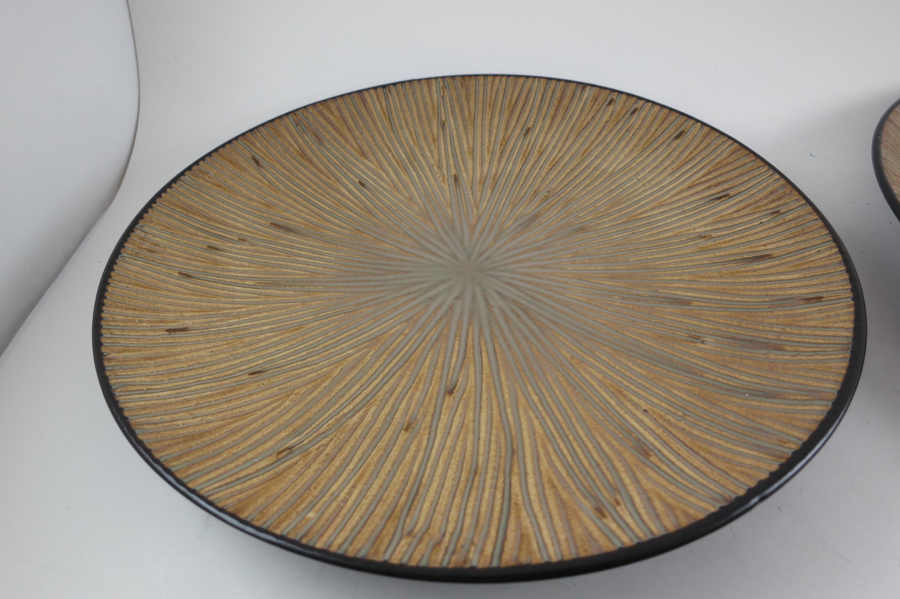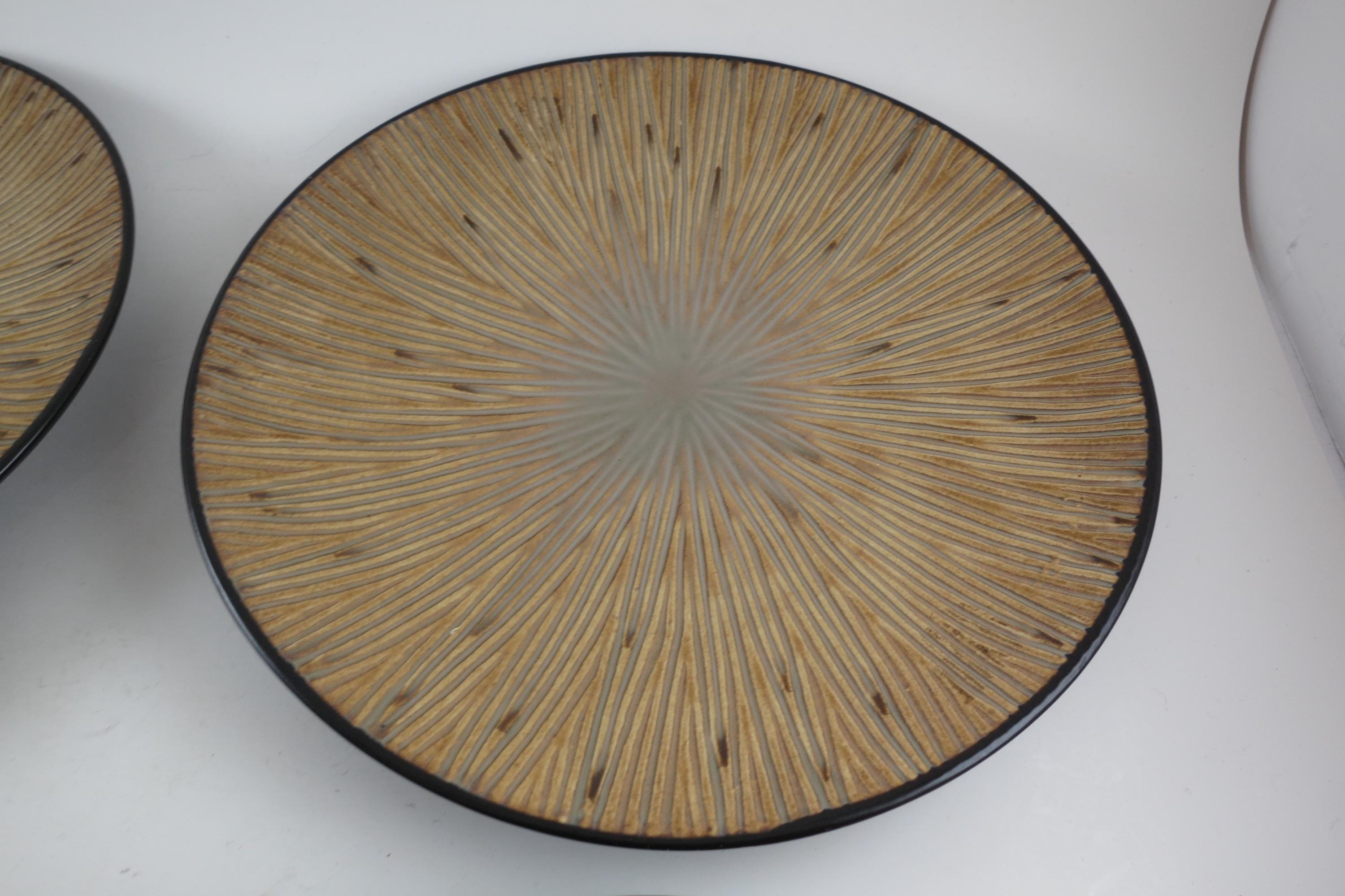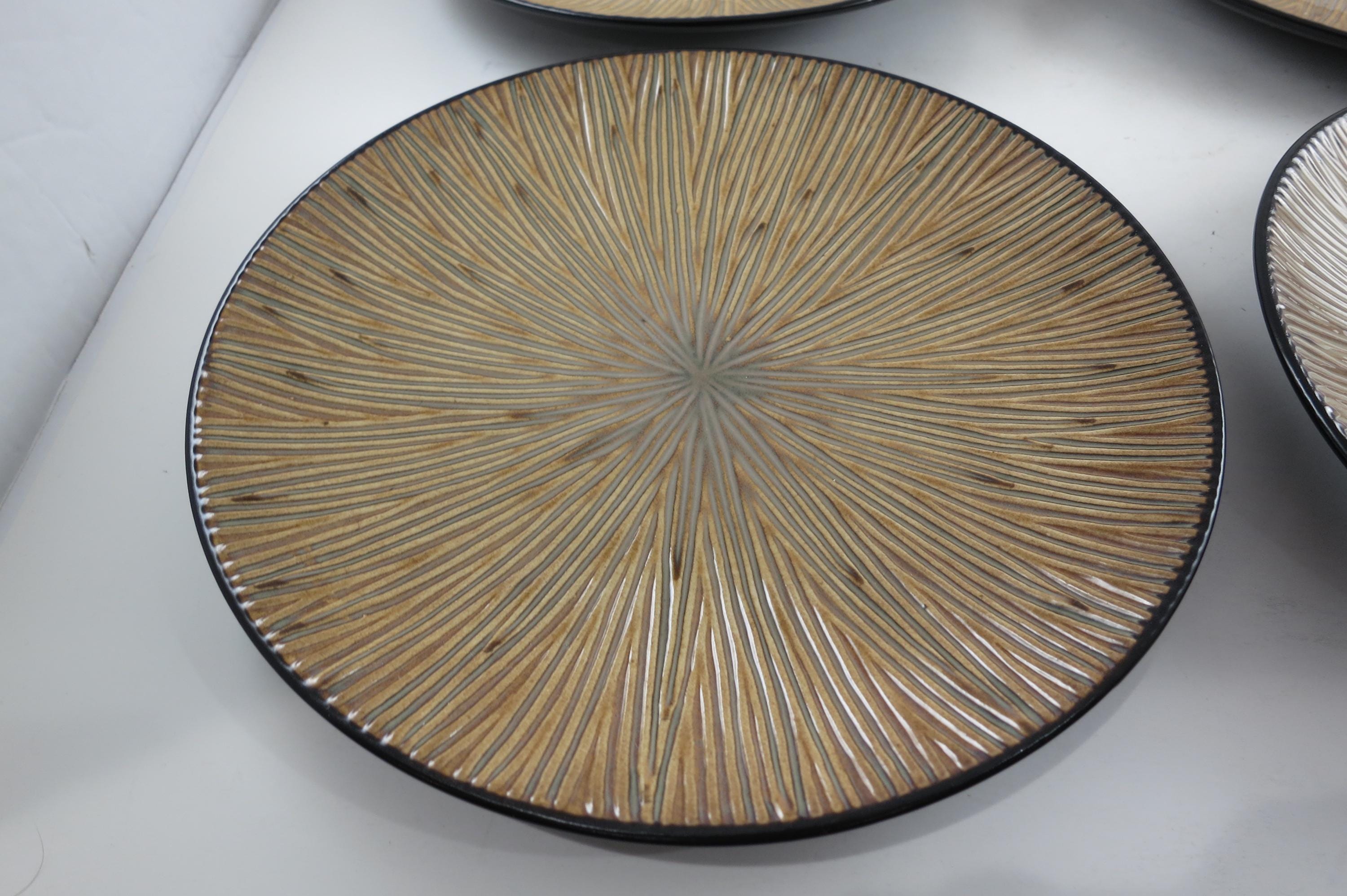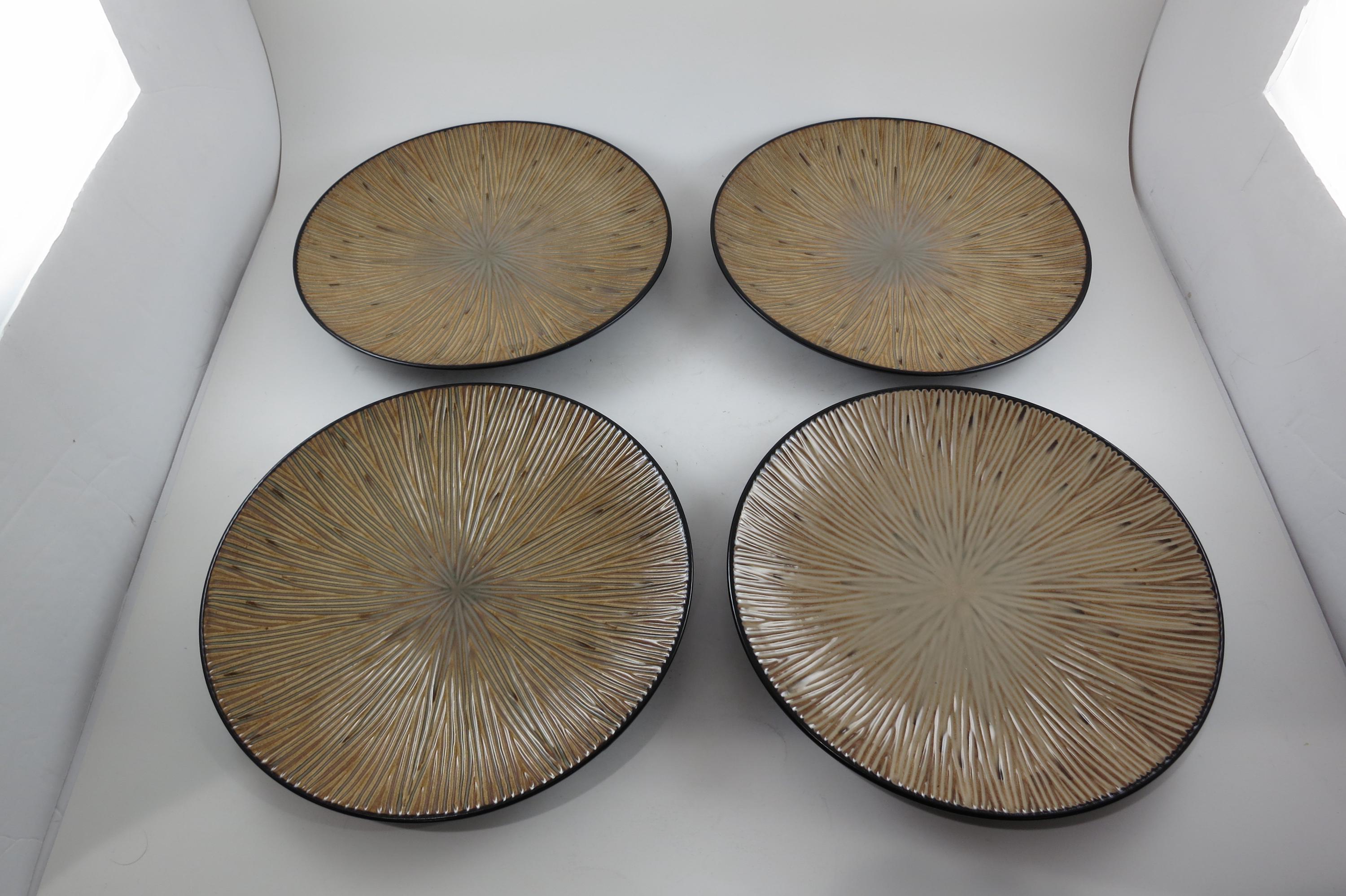 Vintage Joseph Abboud Light Dark Brown Stoneware Set of Four 8 1/2 Inch Lunch Plates.