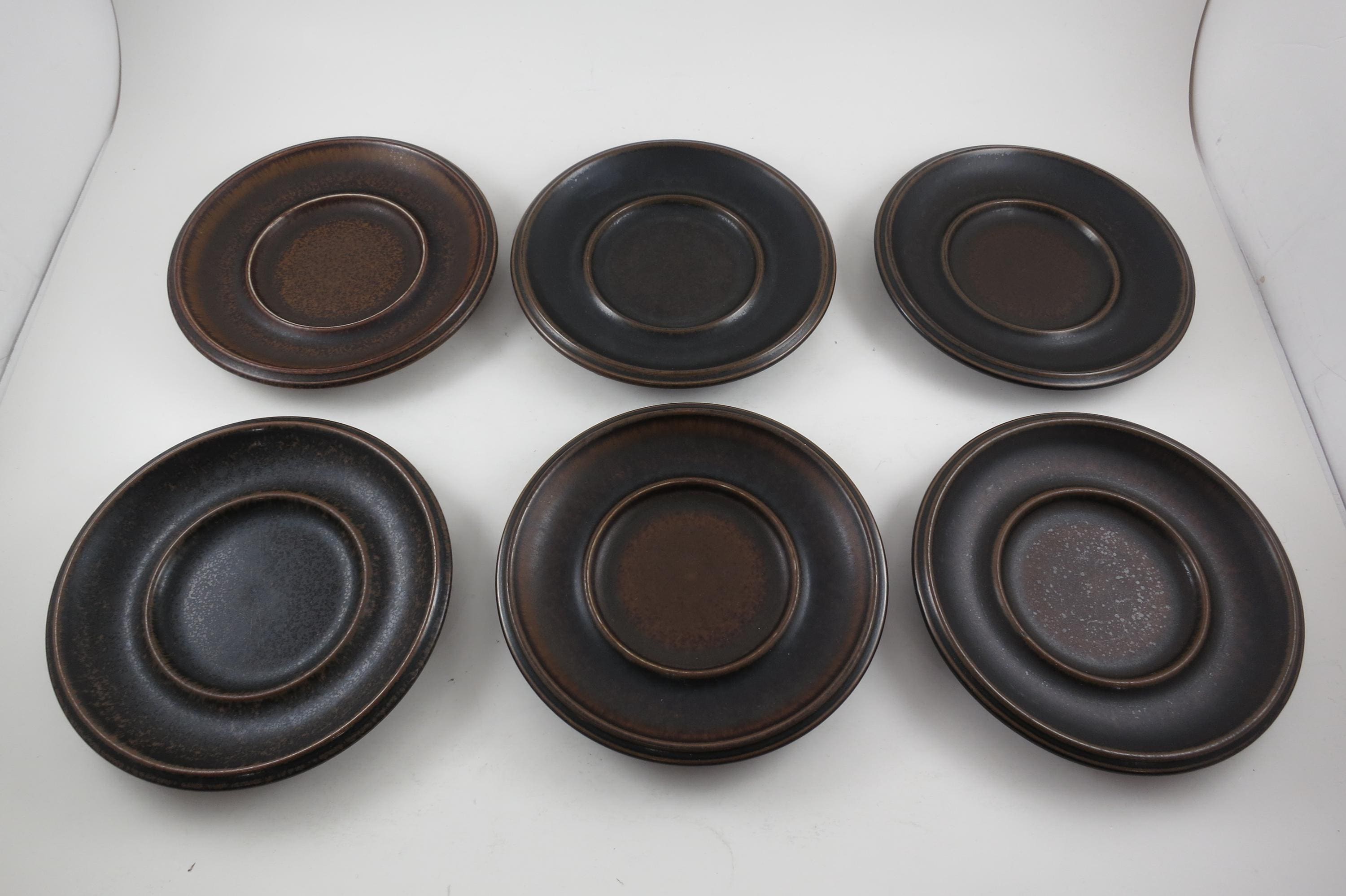 1960s Arabia Finland Ruska Stoneware Saucers, Set of Six.