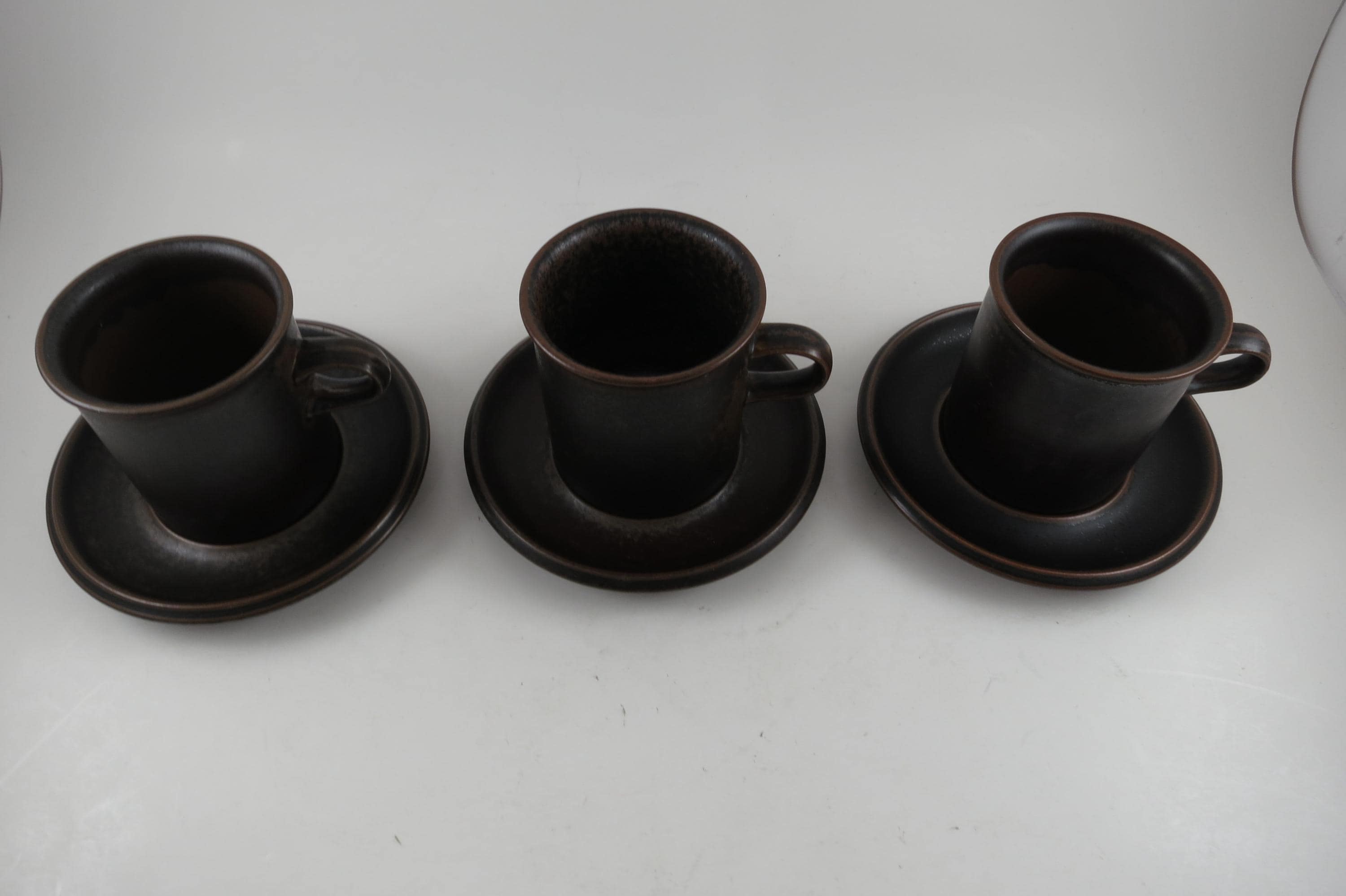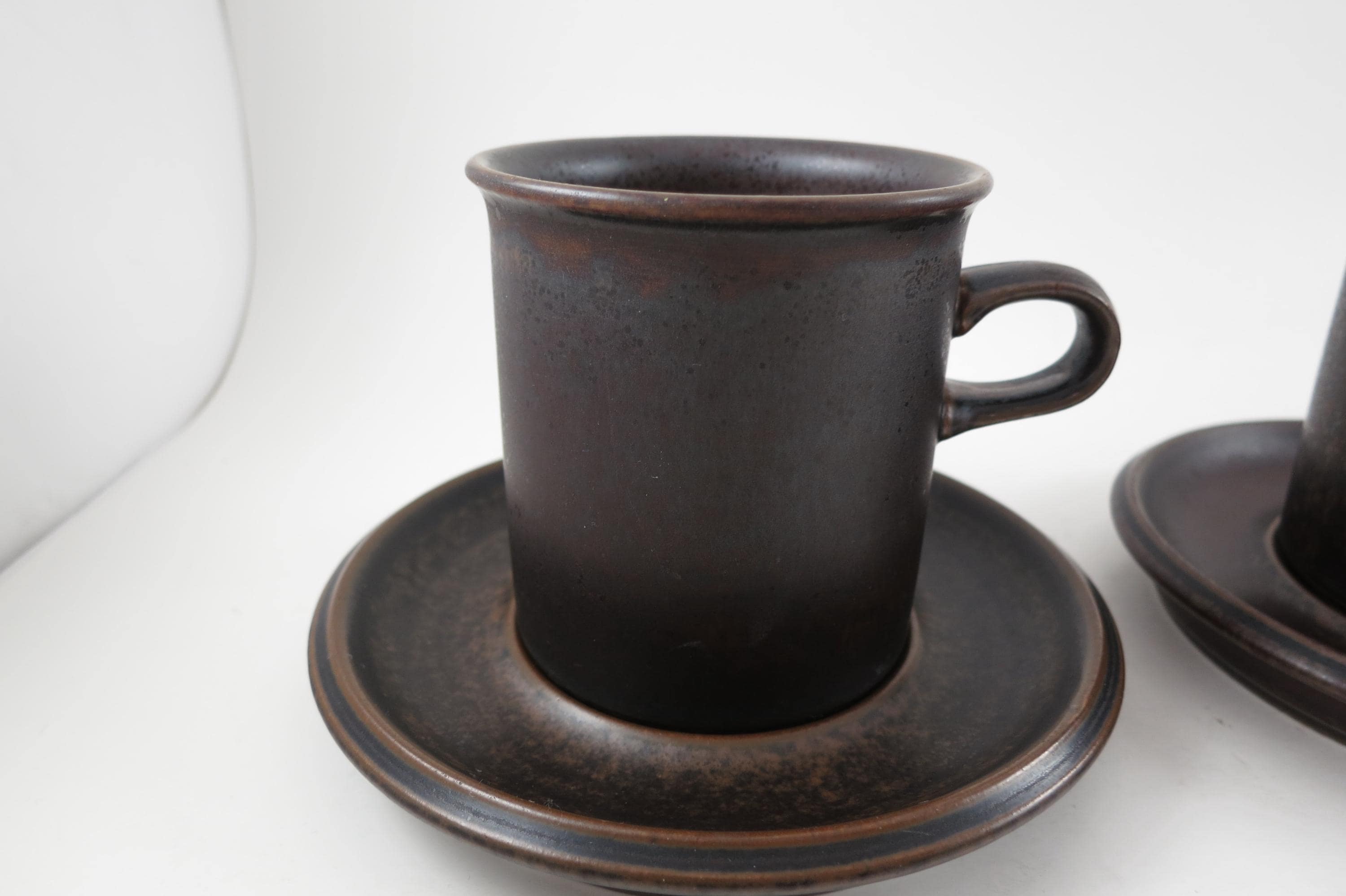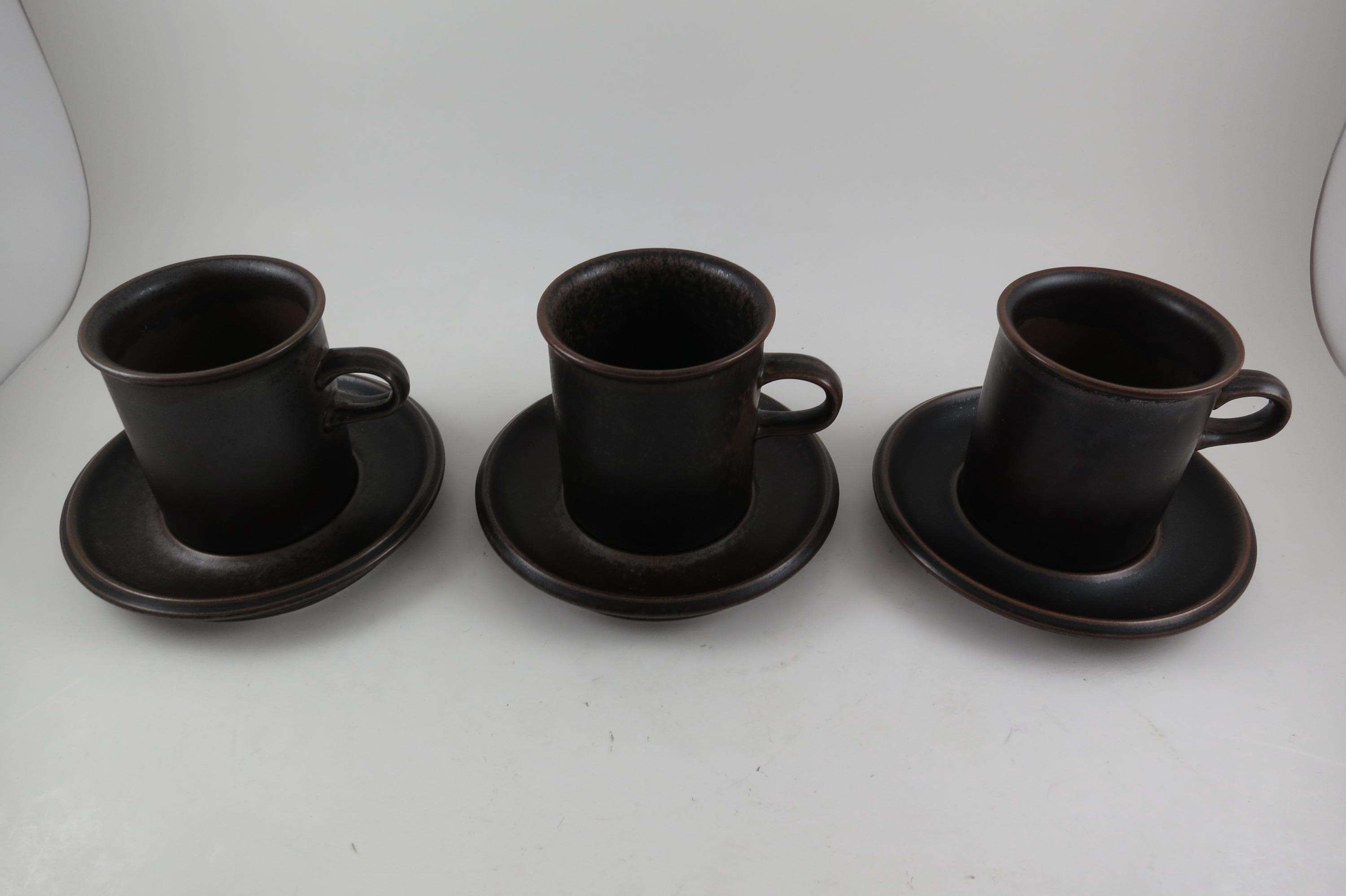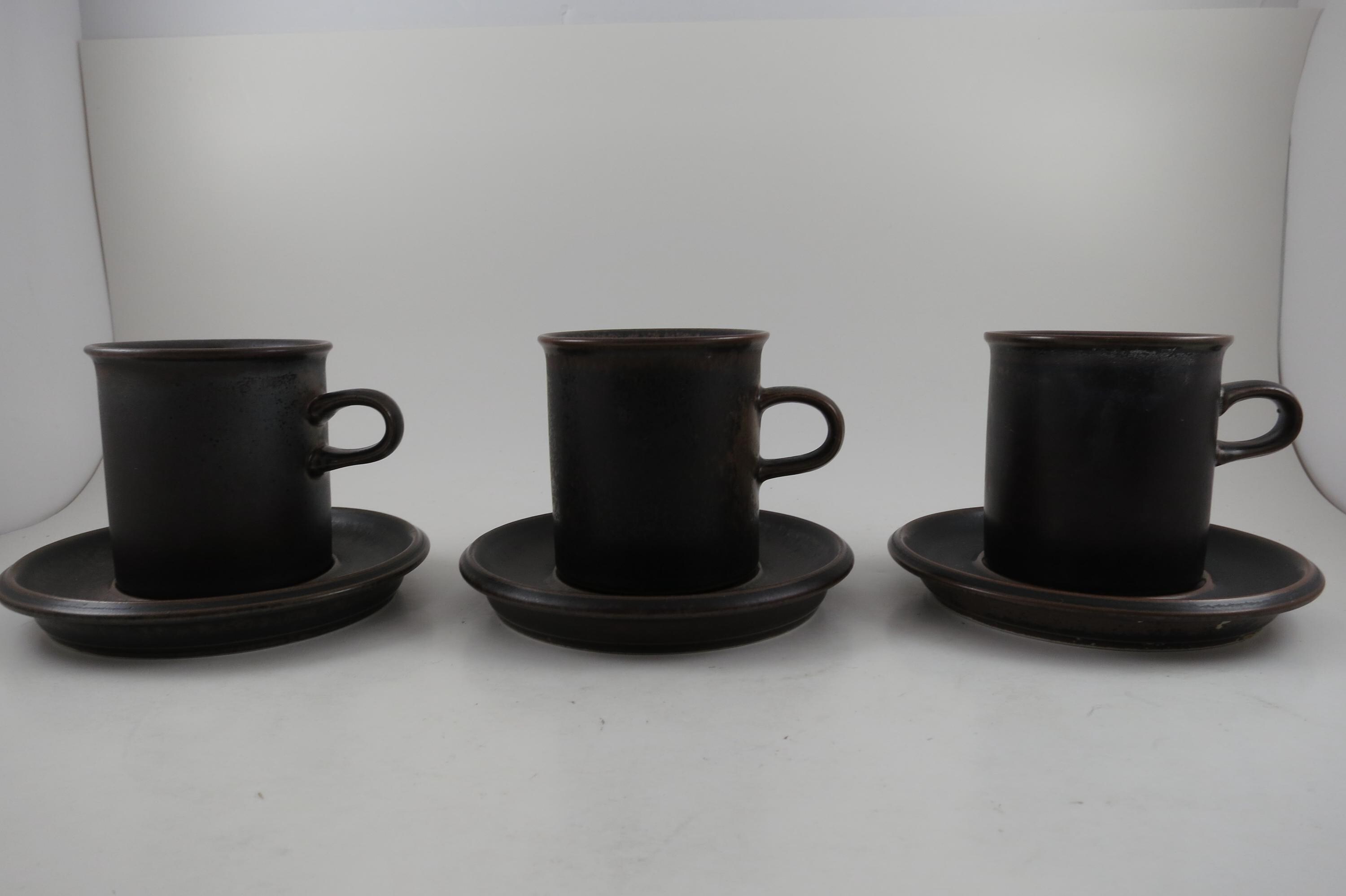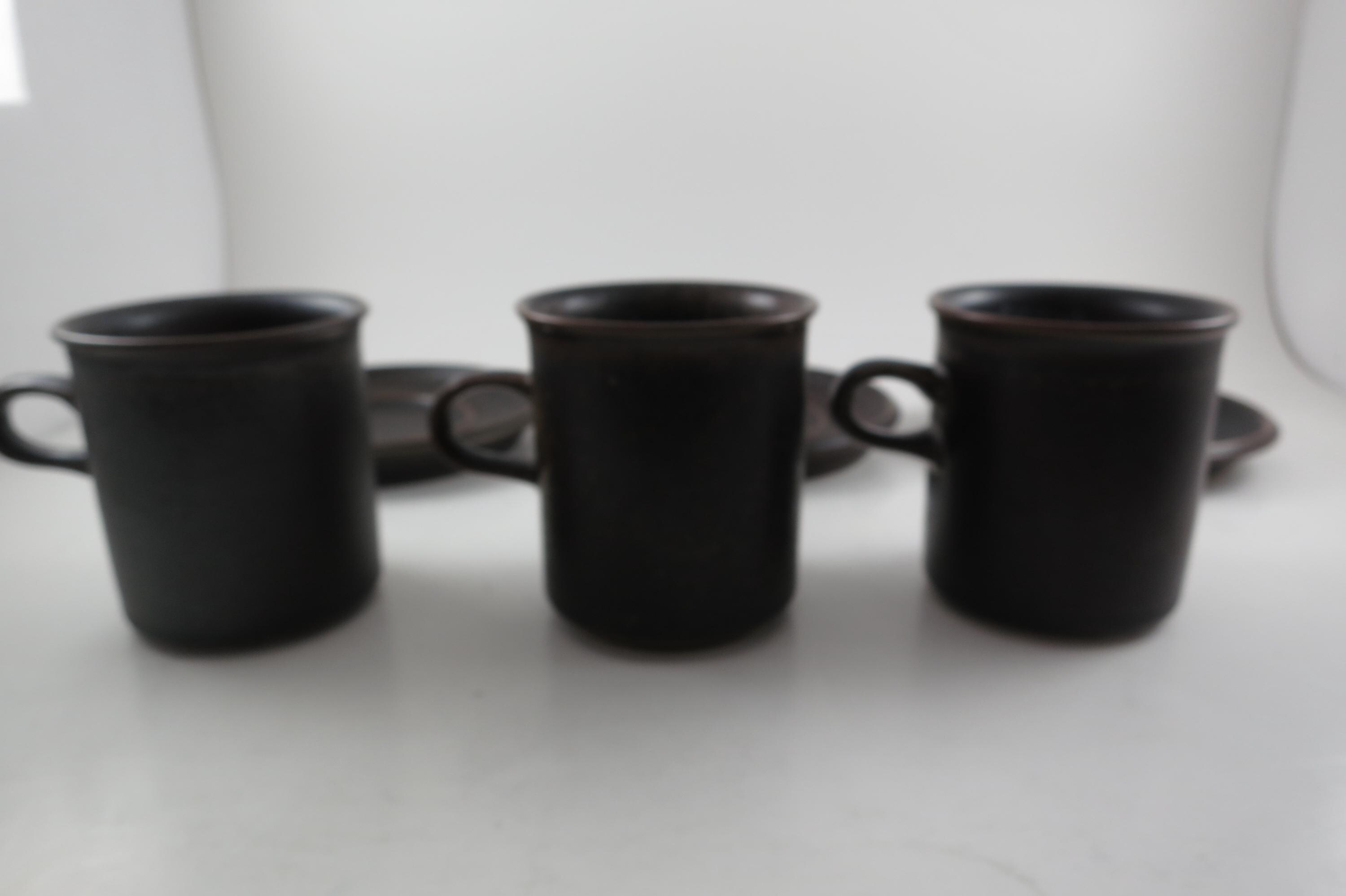 1960's Arabia of Finland Stoneware Ruska Pattern Light and Dark Brown Set of 3 Demitasse Cups and Saucers