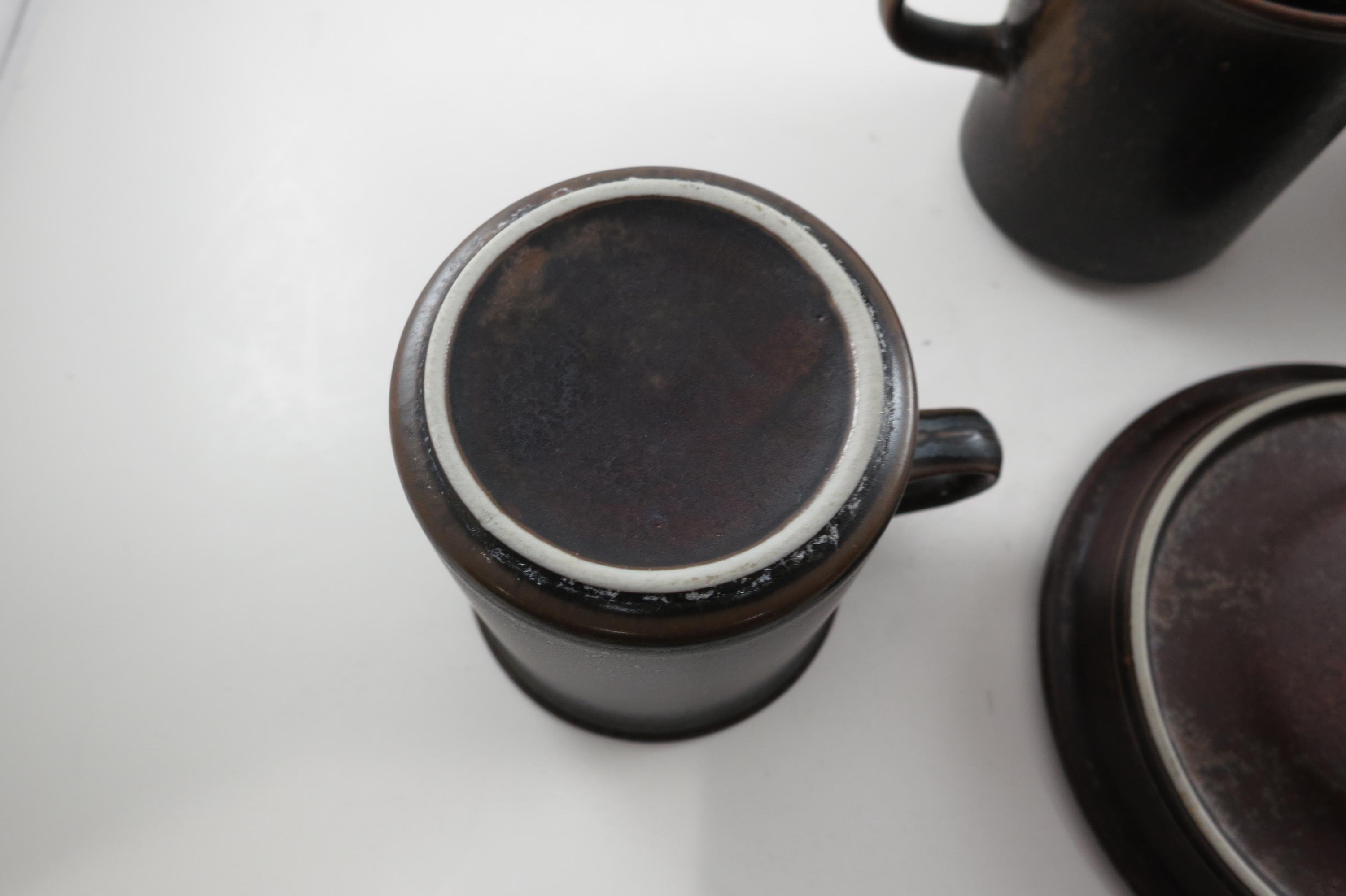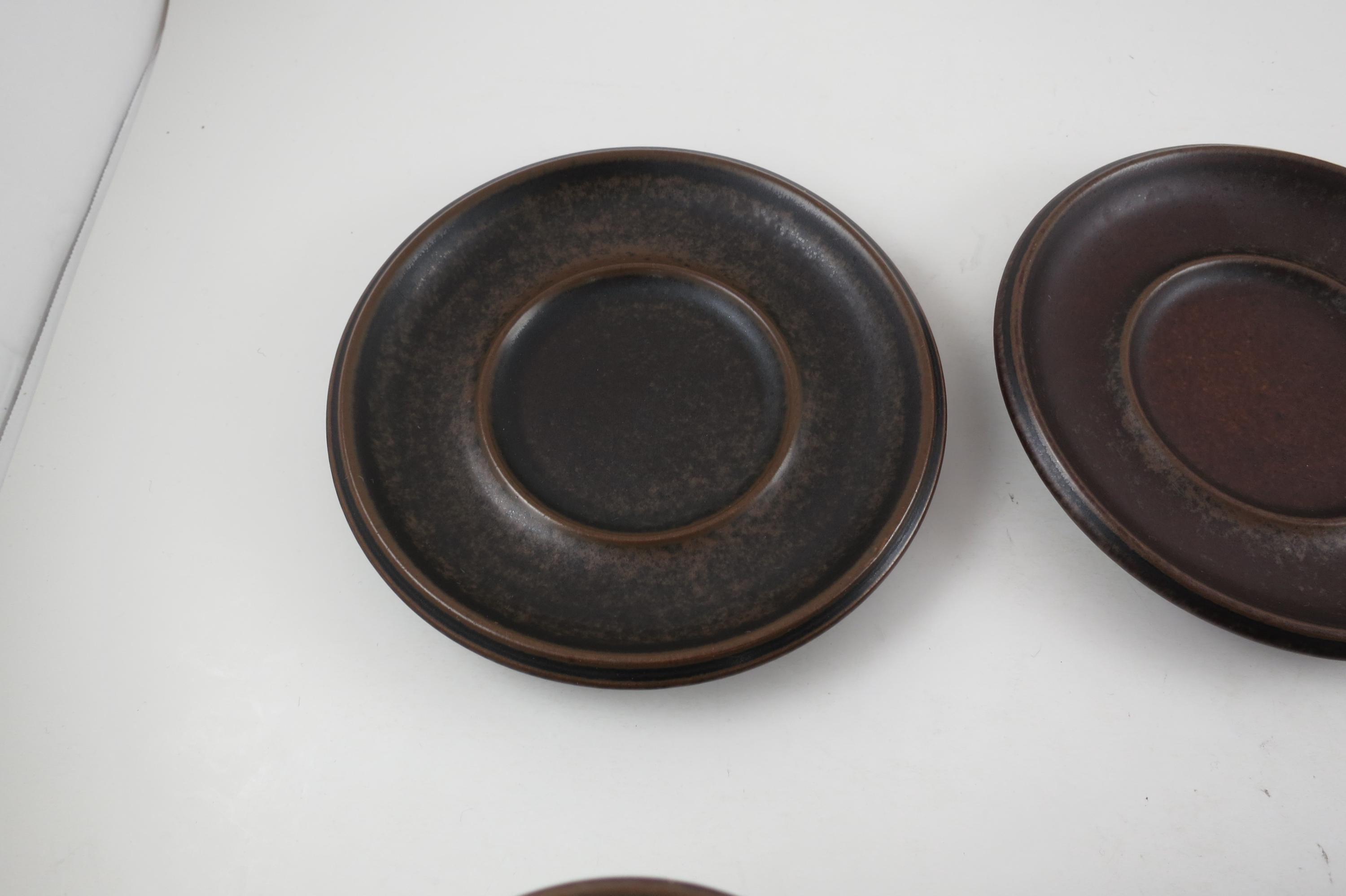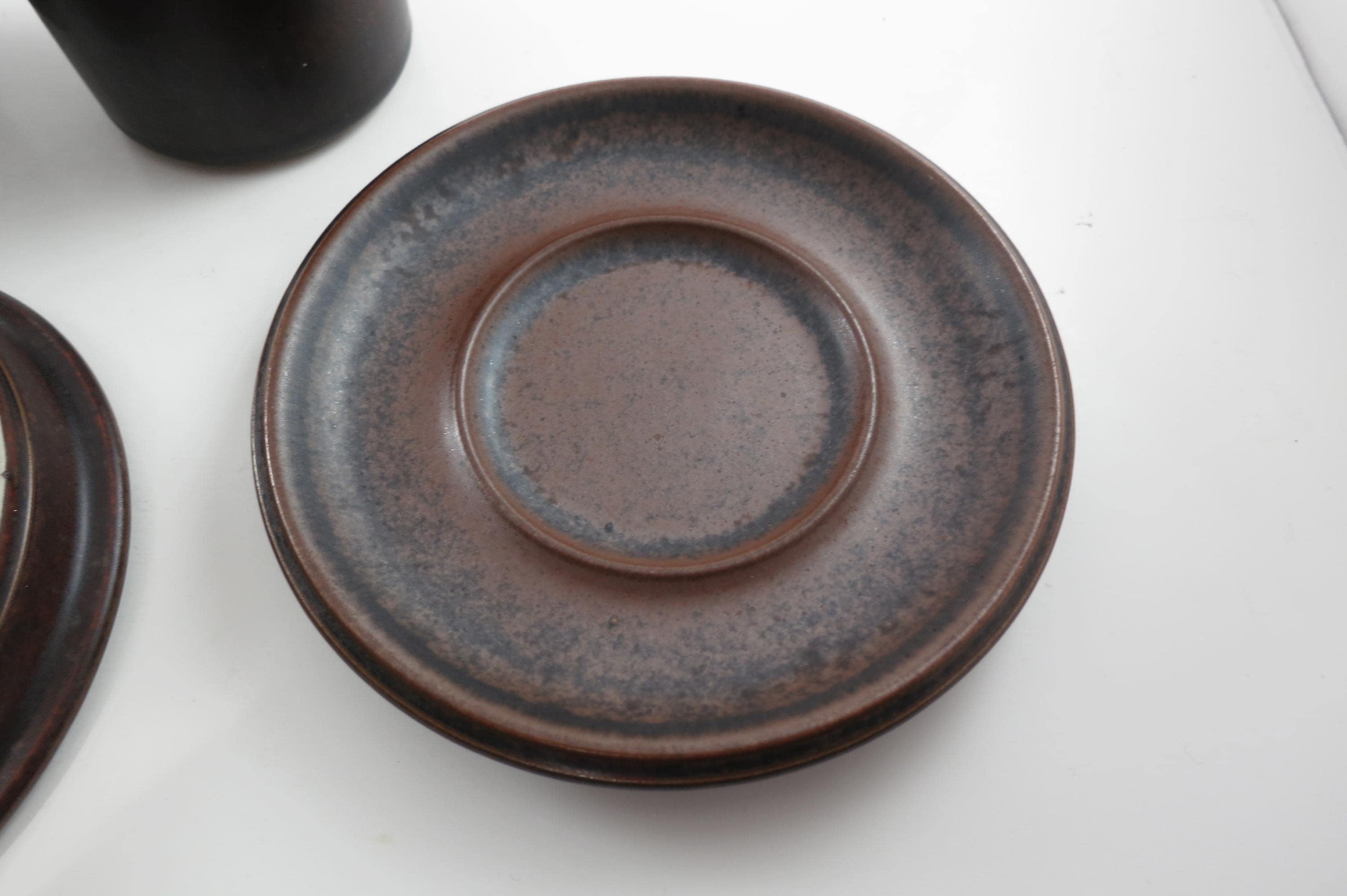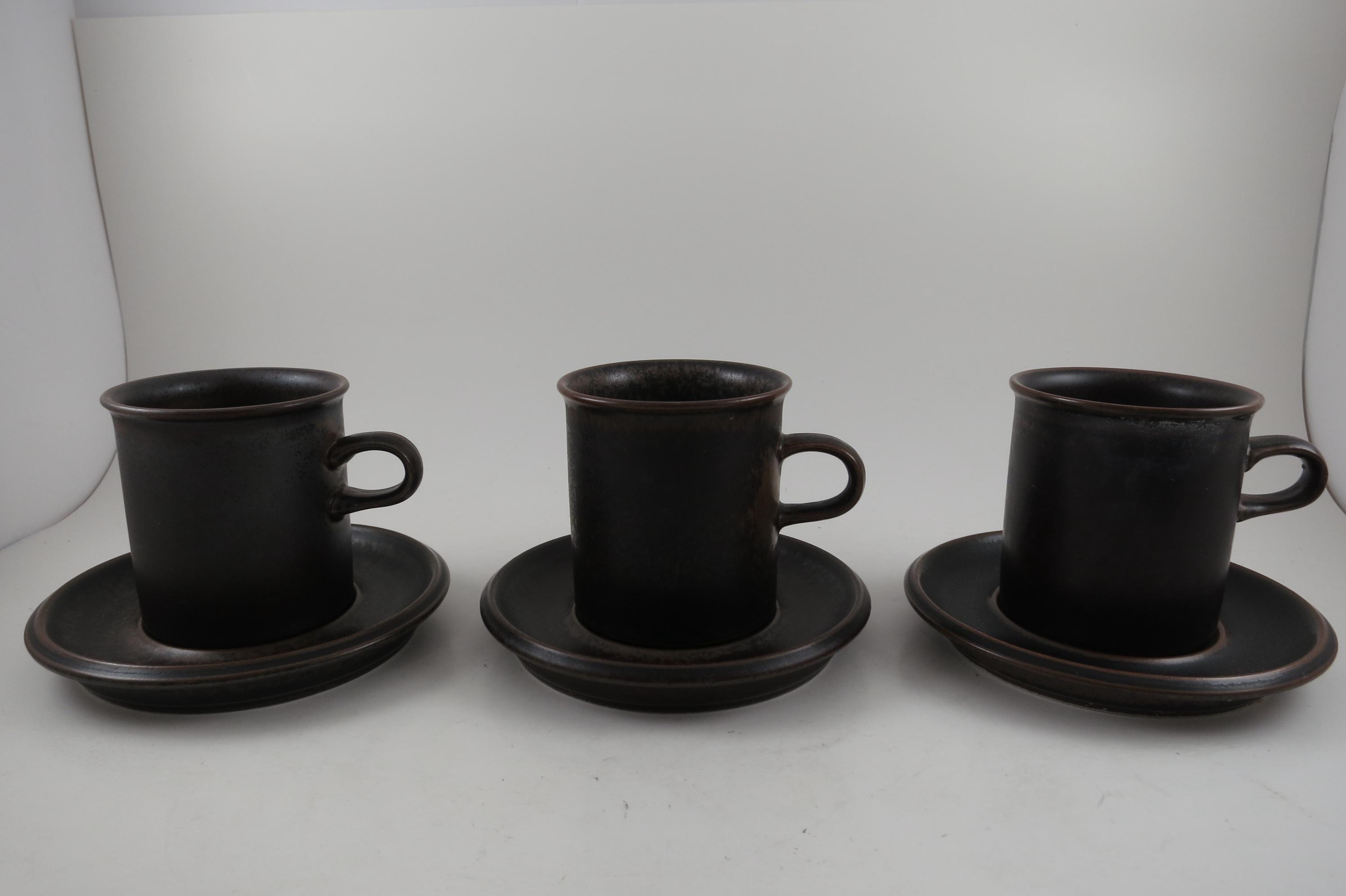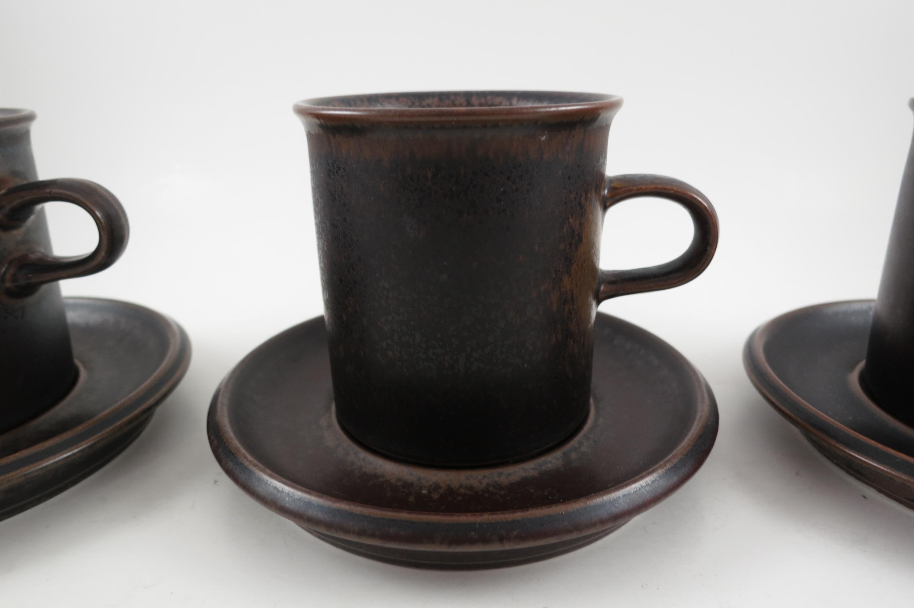 1960's Arabia of Finland Stoneware Ruska Pattern Light and Dark Brown Set of 3 Demitasse Cups and Saucers