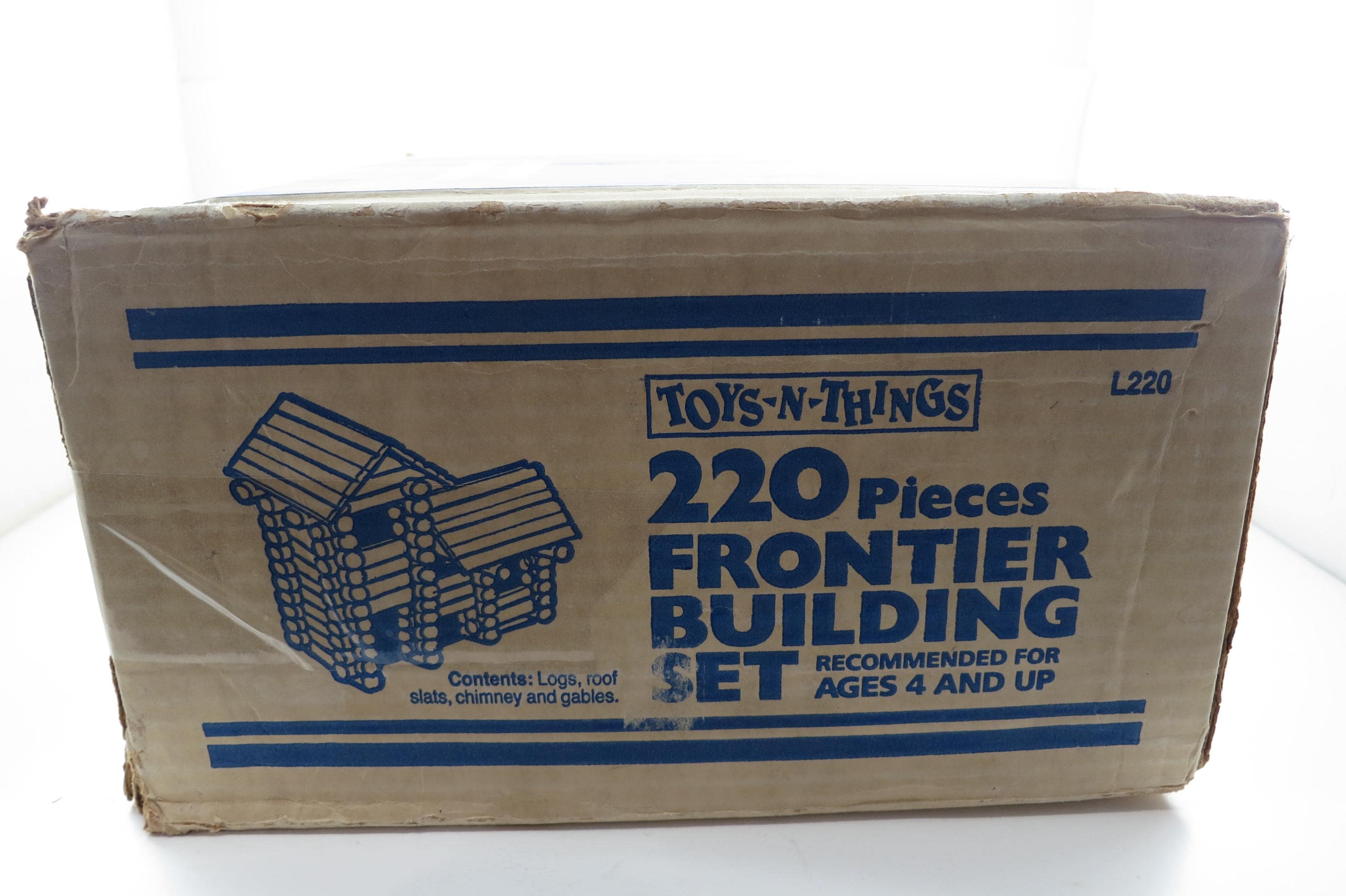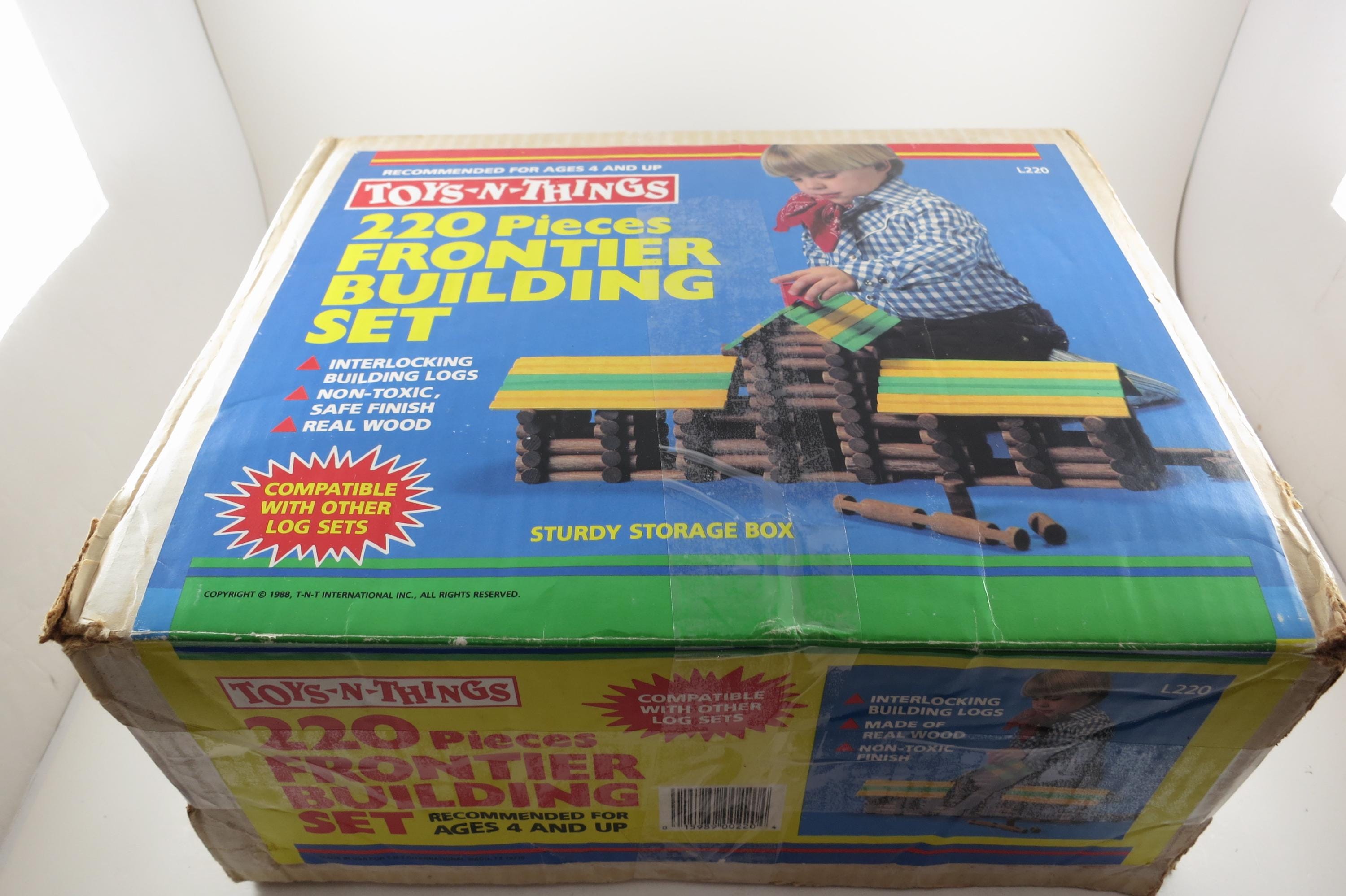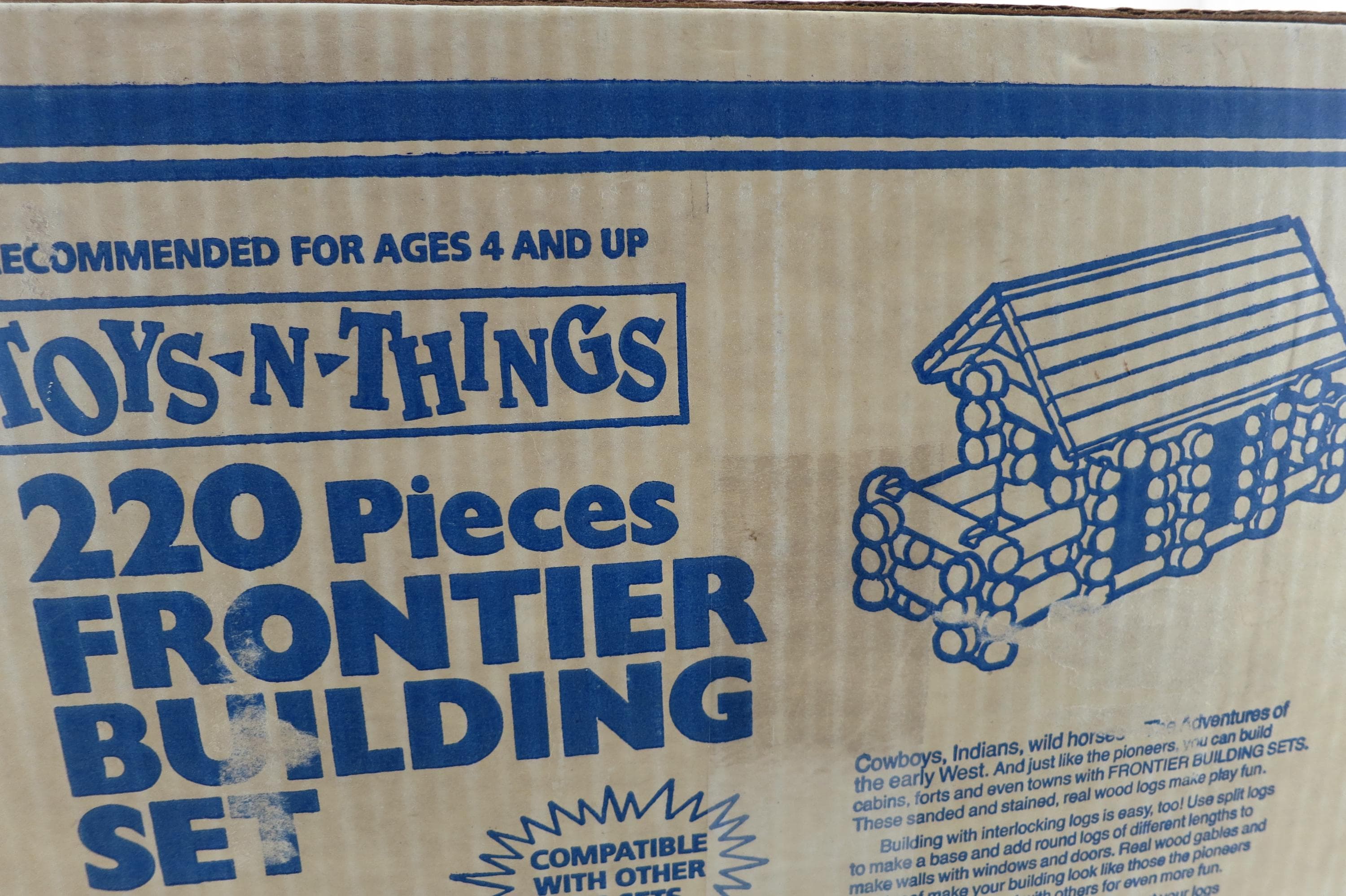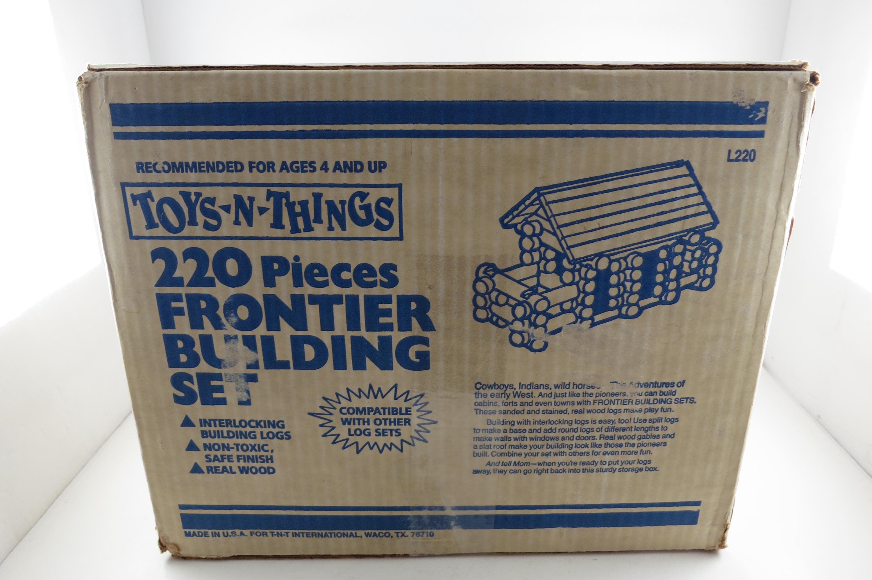 Vintage 1988 Toys N Things 220 Piece Frontier Building Set Logs In Original Box. Box says will integrate with most other brands, such as Lincoln Logs.