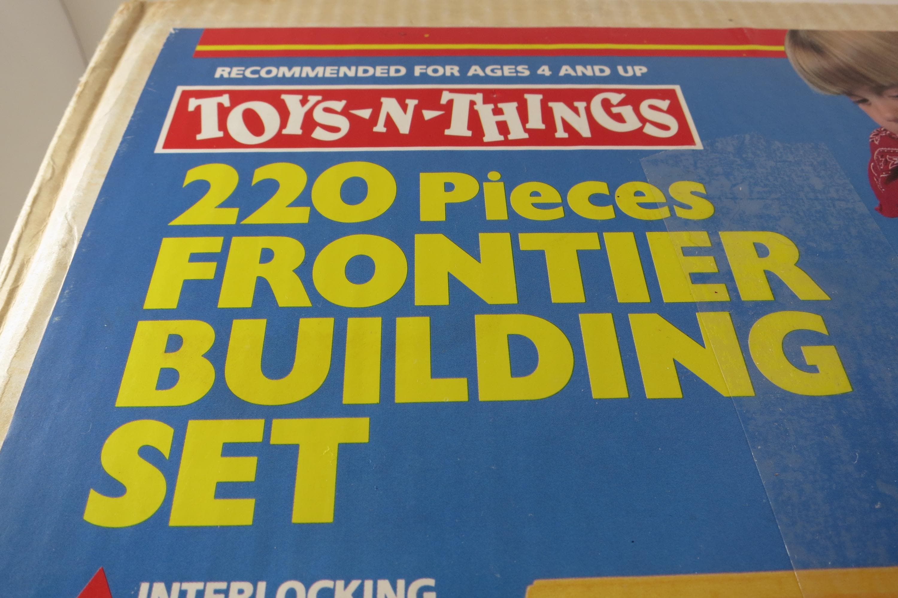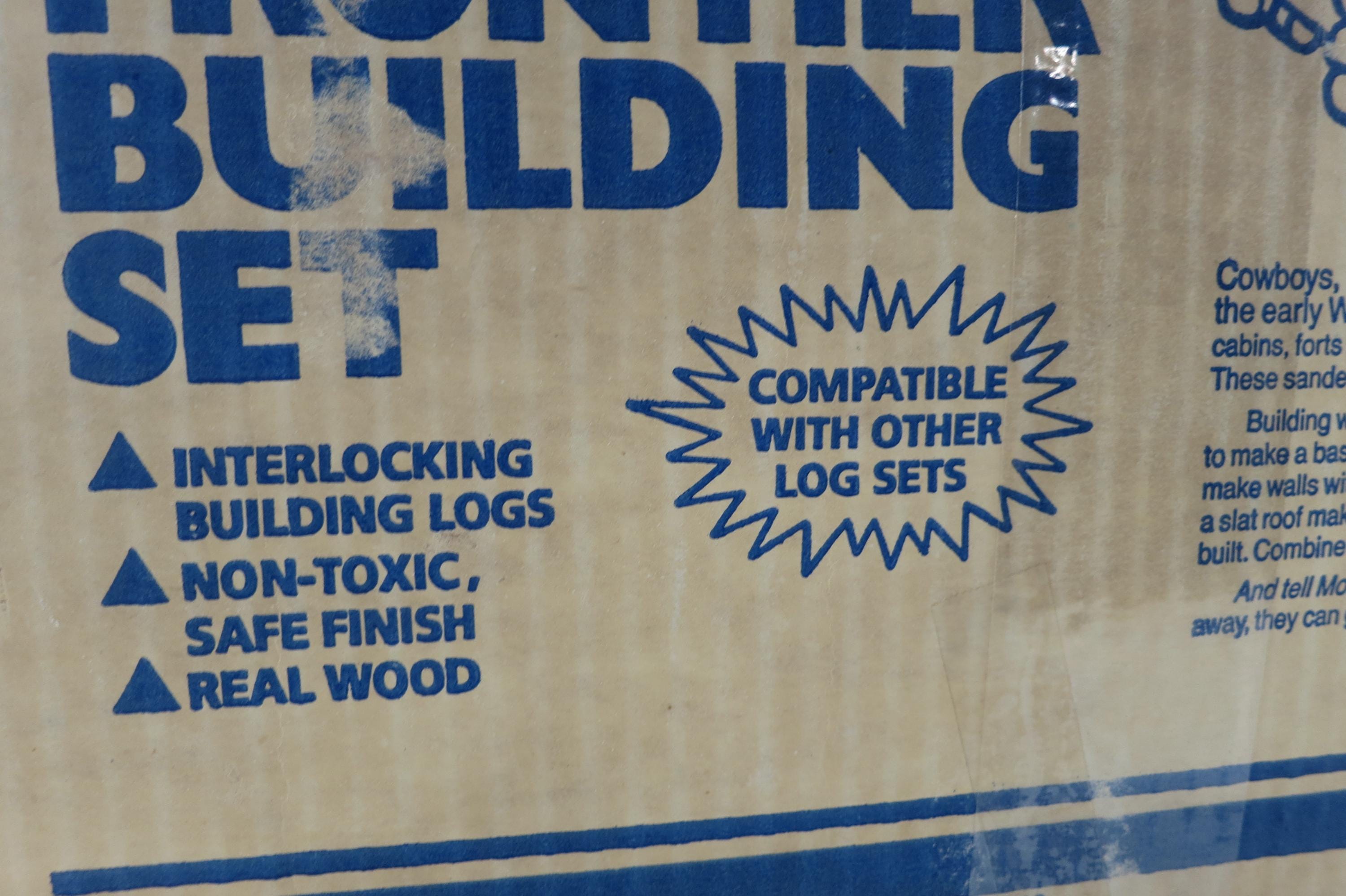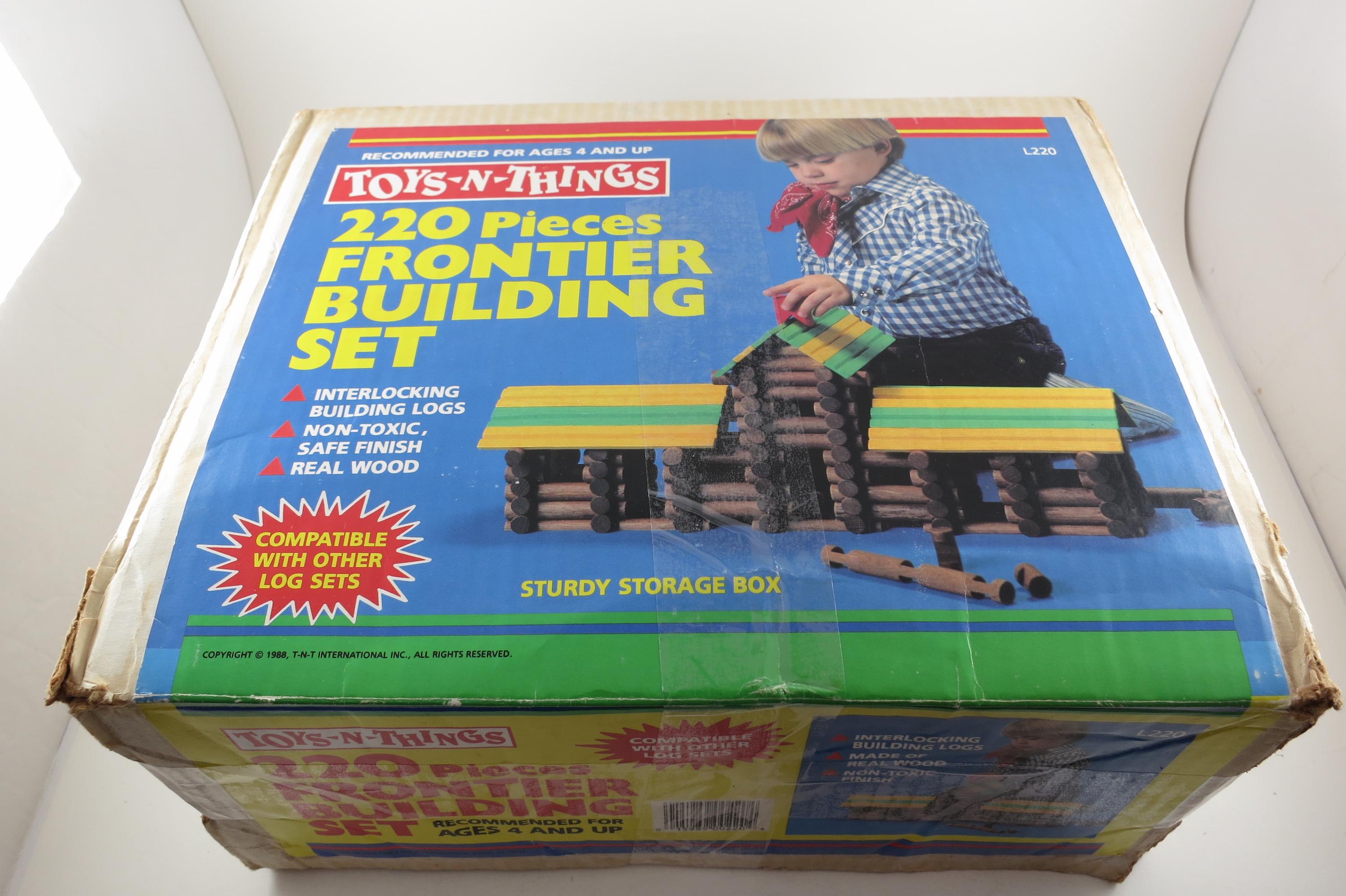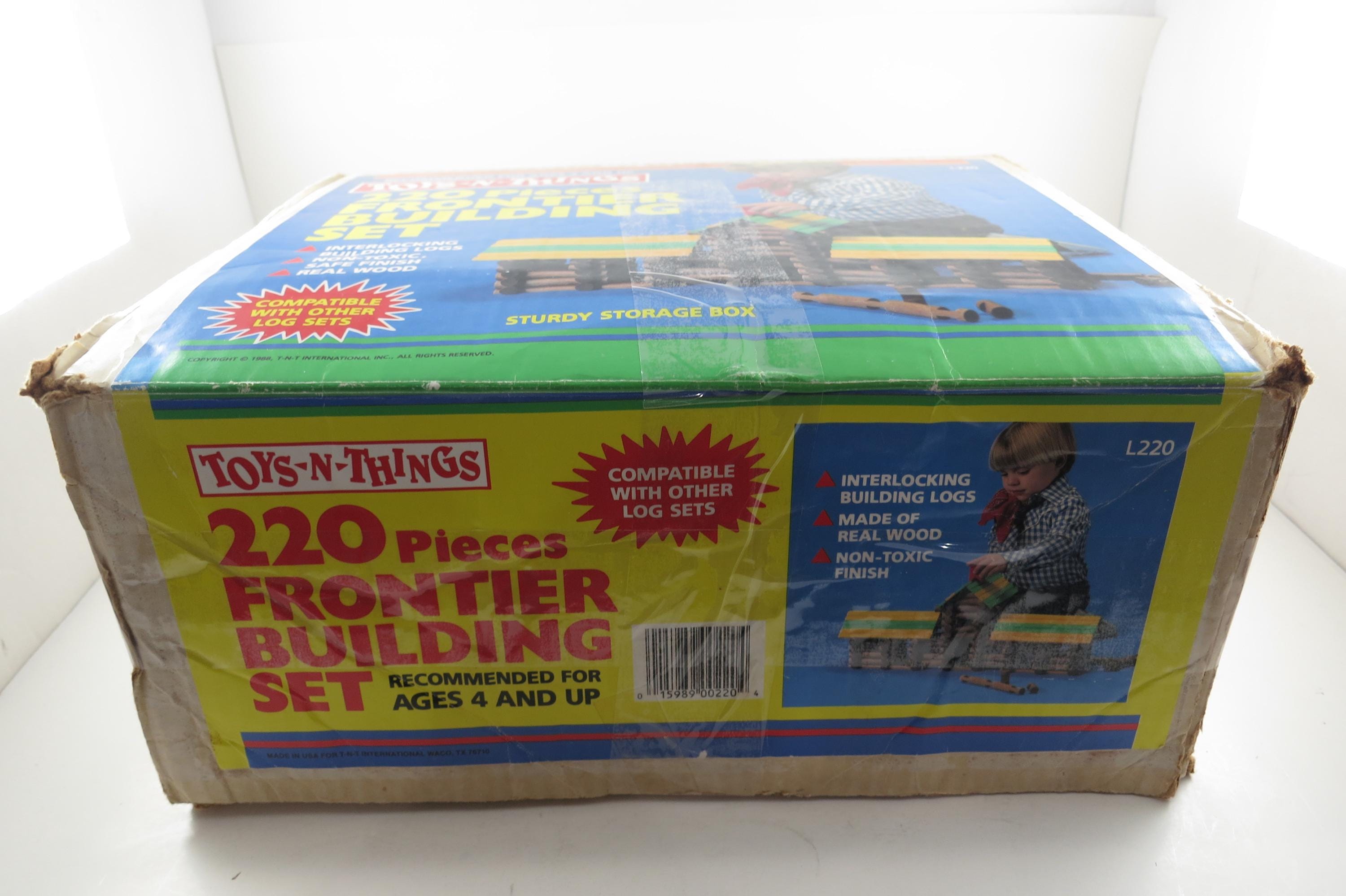 Vintage 1988 Toys N Things 220 Piece Frontier Building Set Logs In Original Box. Box says will integrate with most other brands, such as Lincoln Logs.