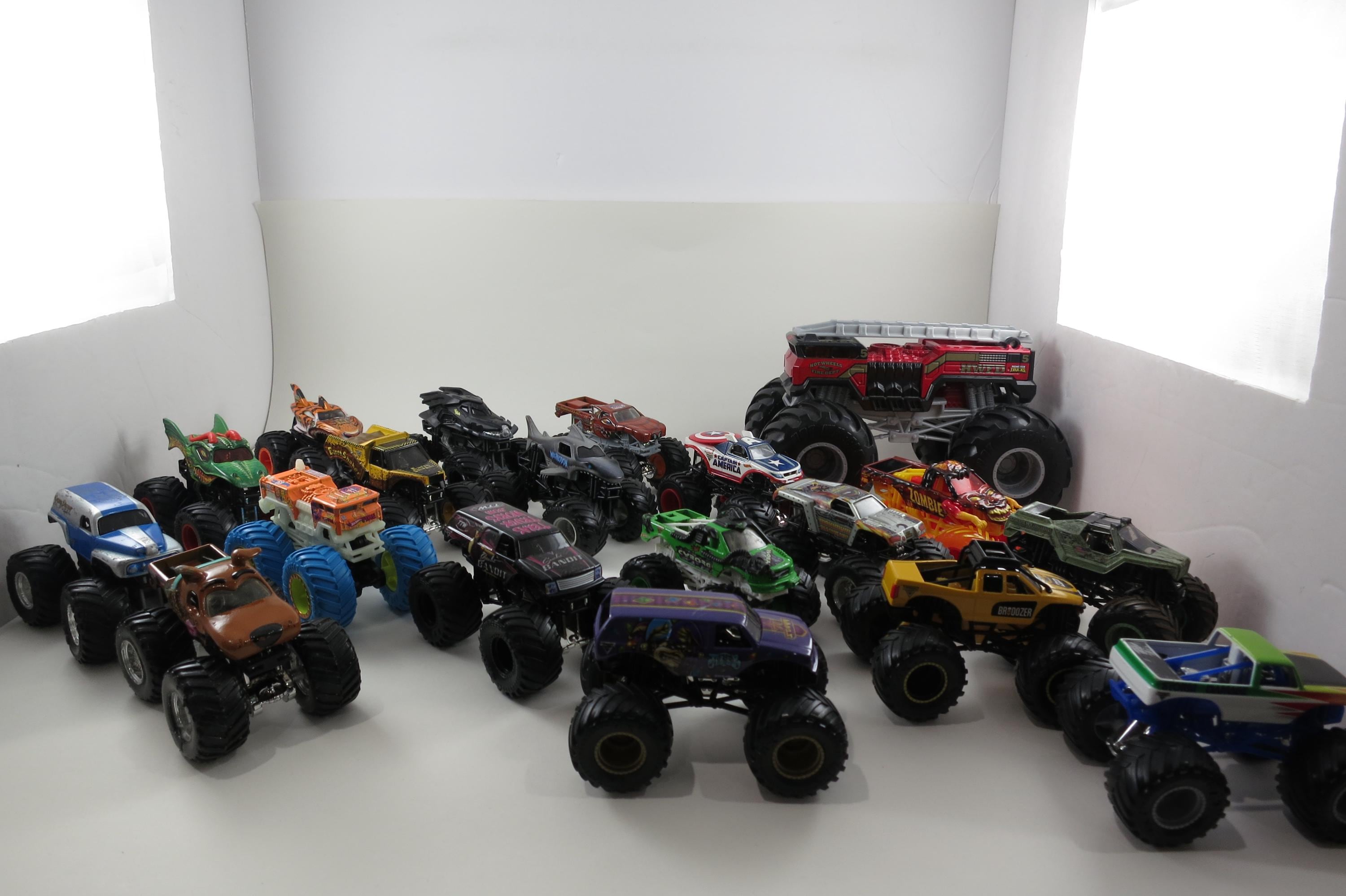 These will make a wonderful Christmas gift or just look good sitting on display!! These have moving 4x4 wheels, great paint jobs, and basically look just like the real Monster trucks!! There are 19 total trucks. all are different. Trucks are as follows