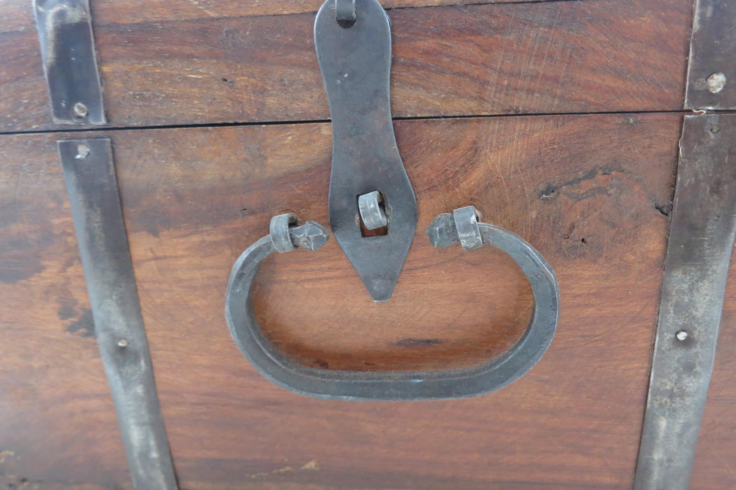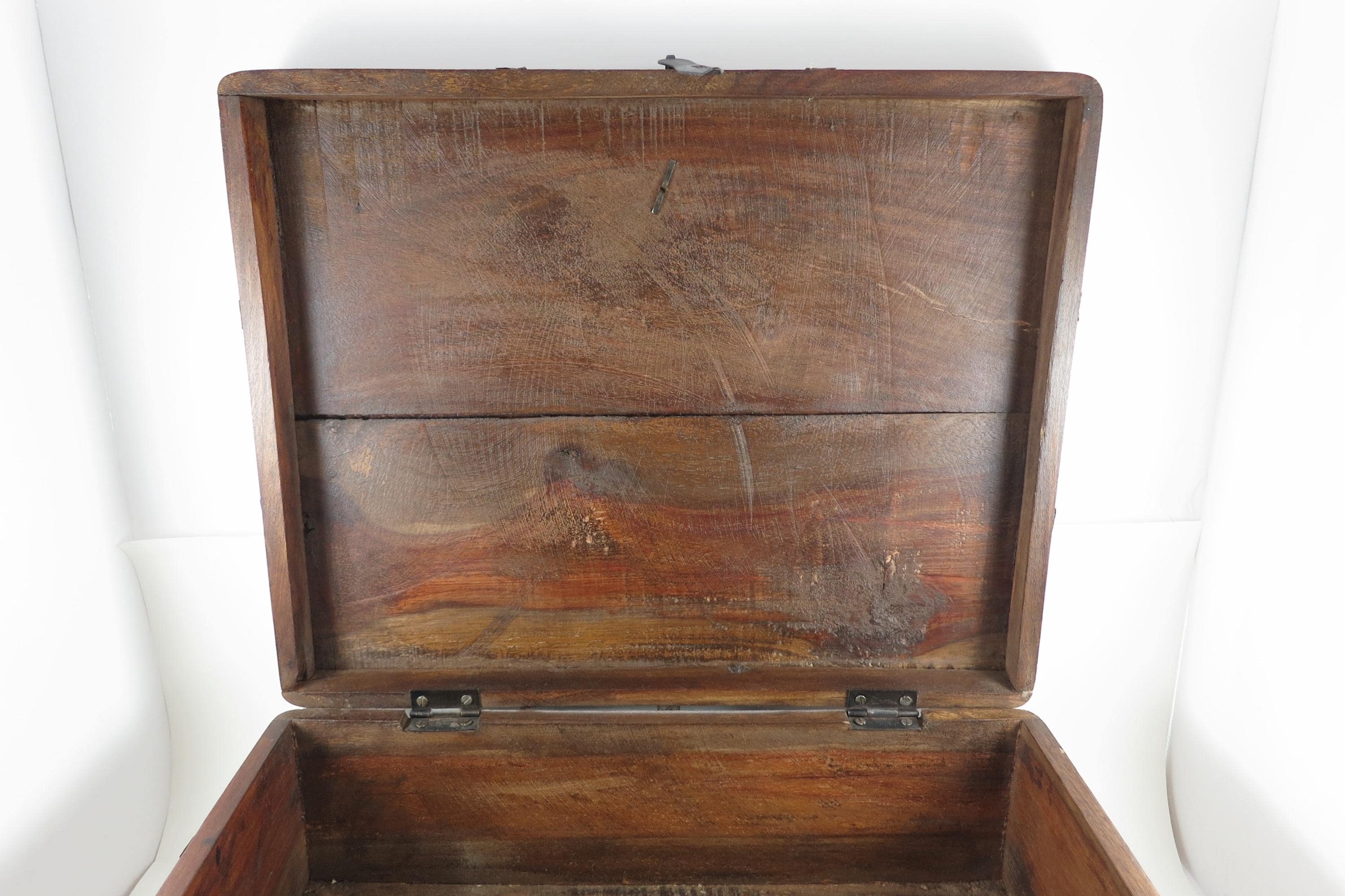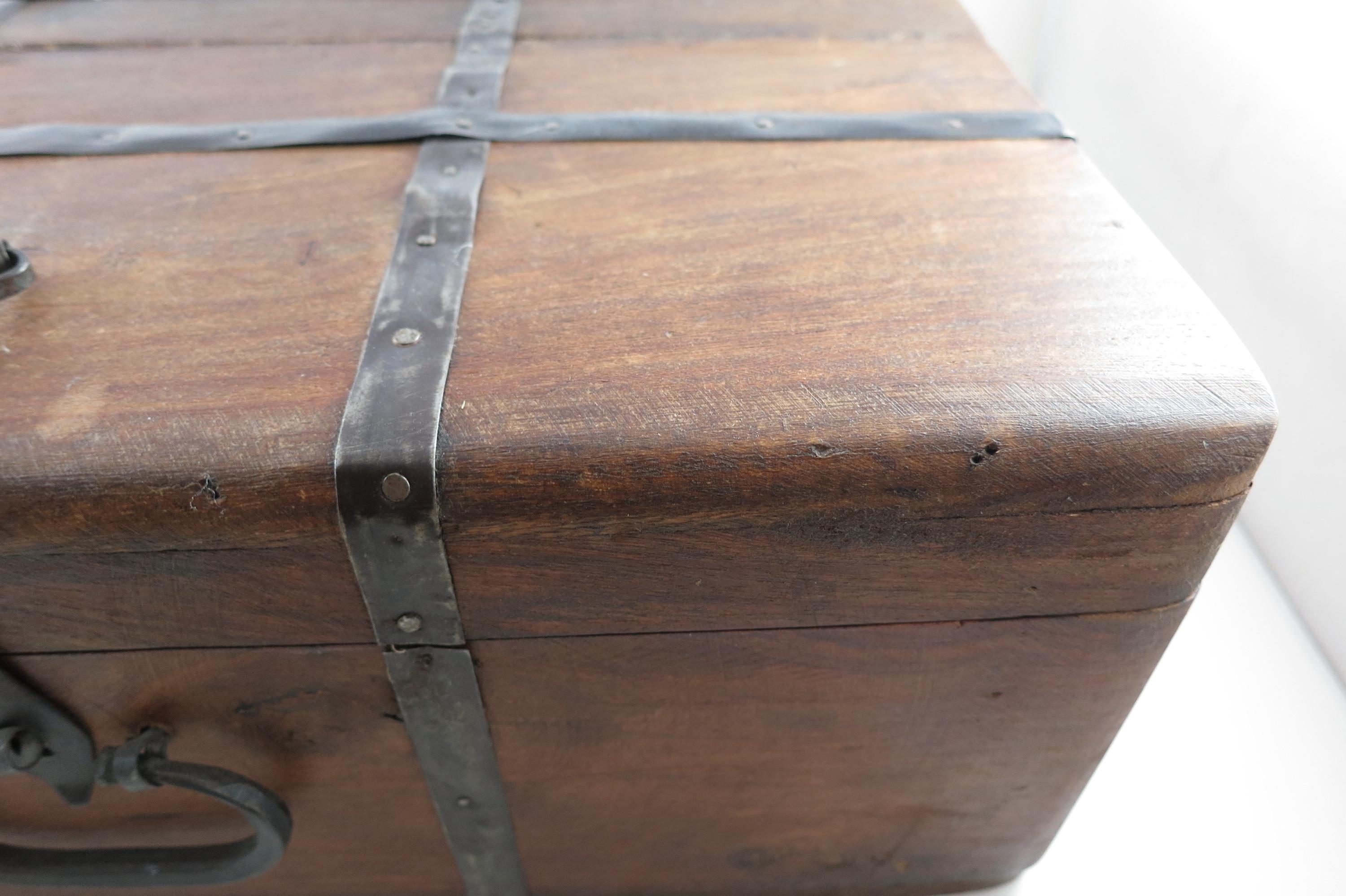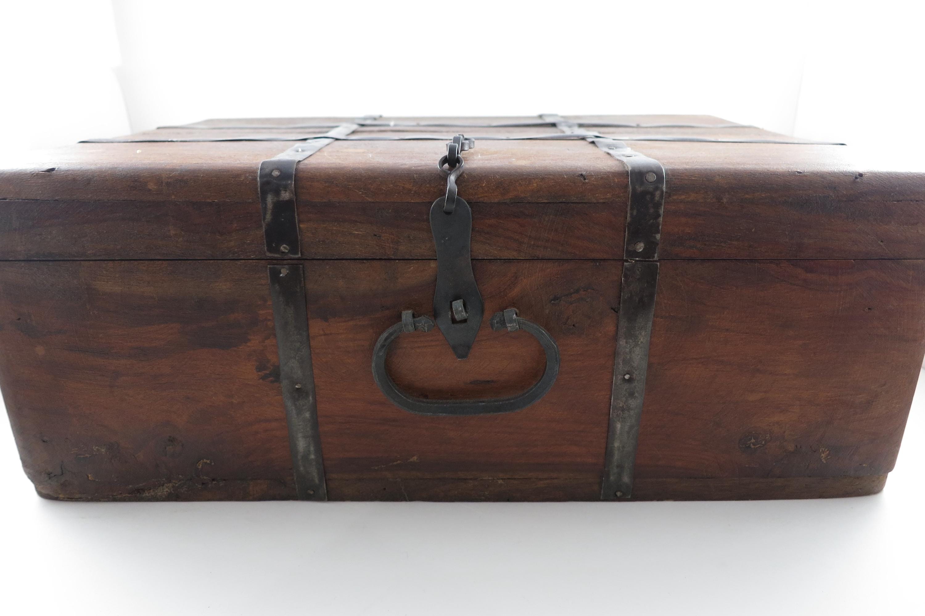 Antique Wooden Treasure Keepsake Storage Box with Metal Bands and Latch