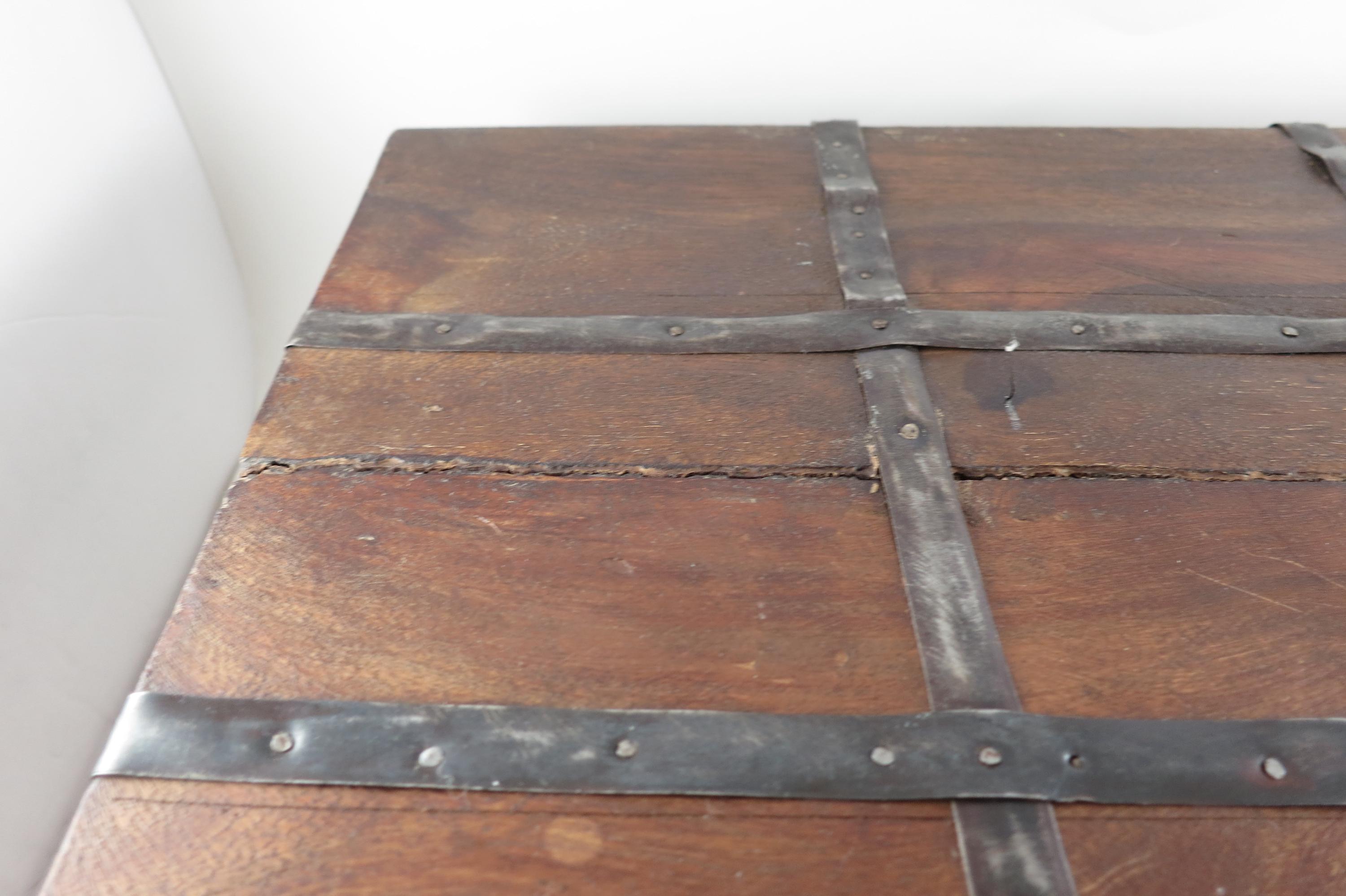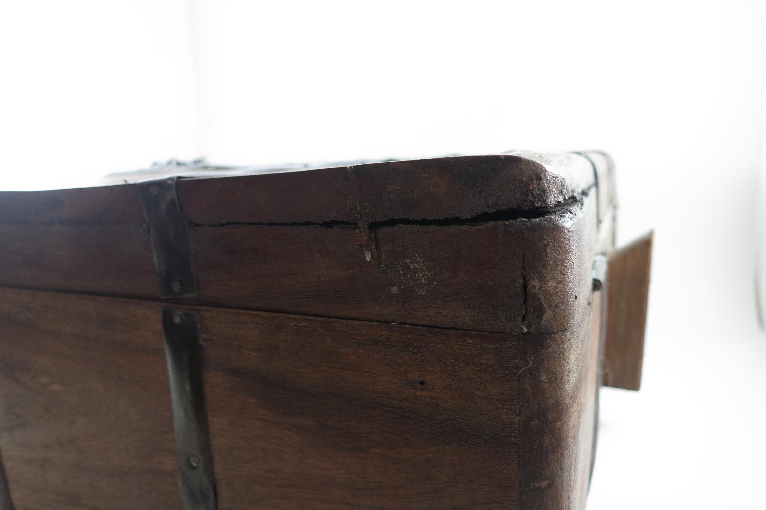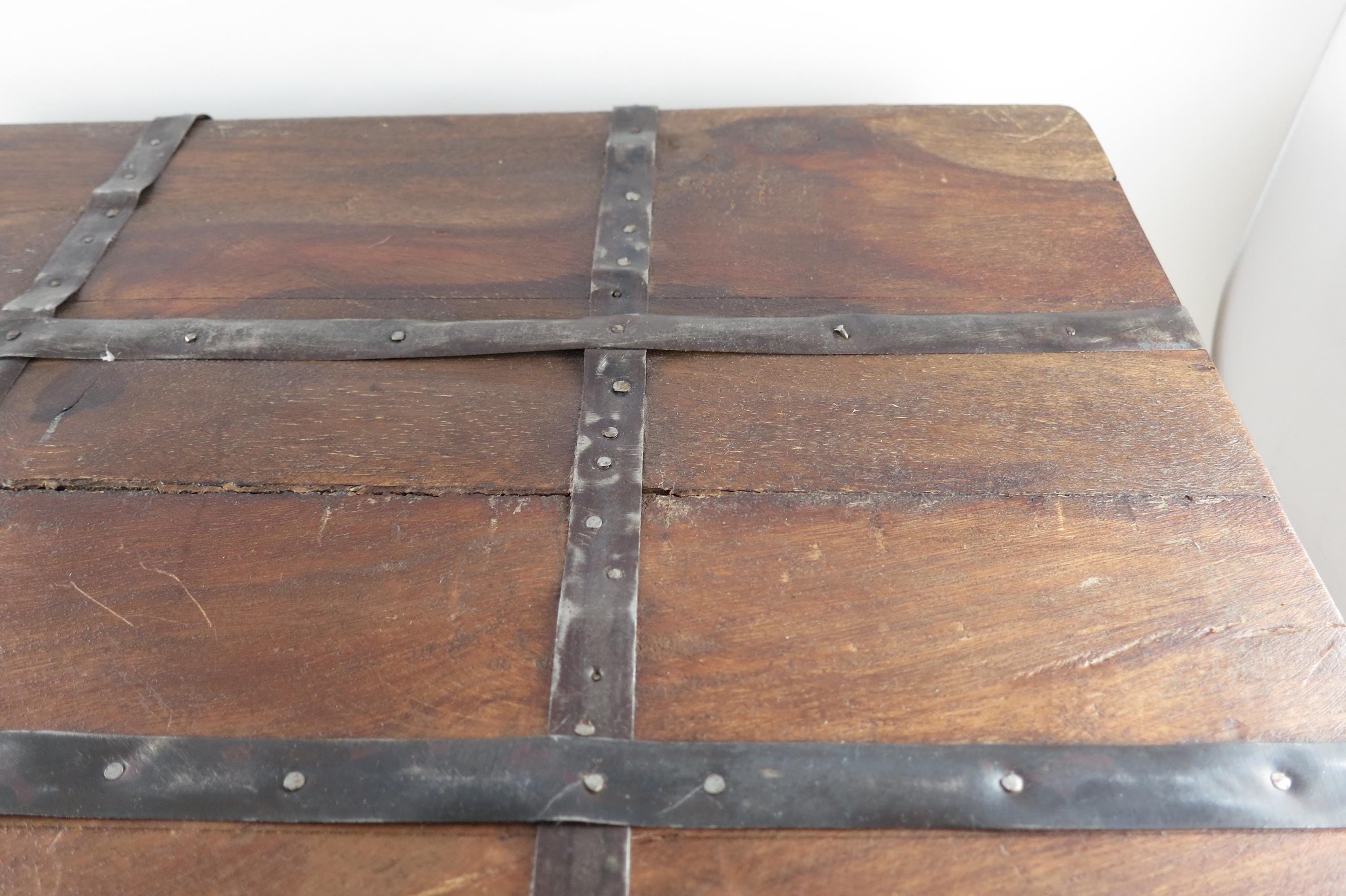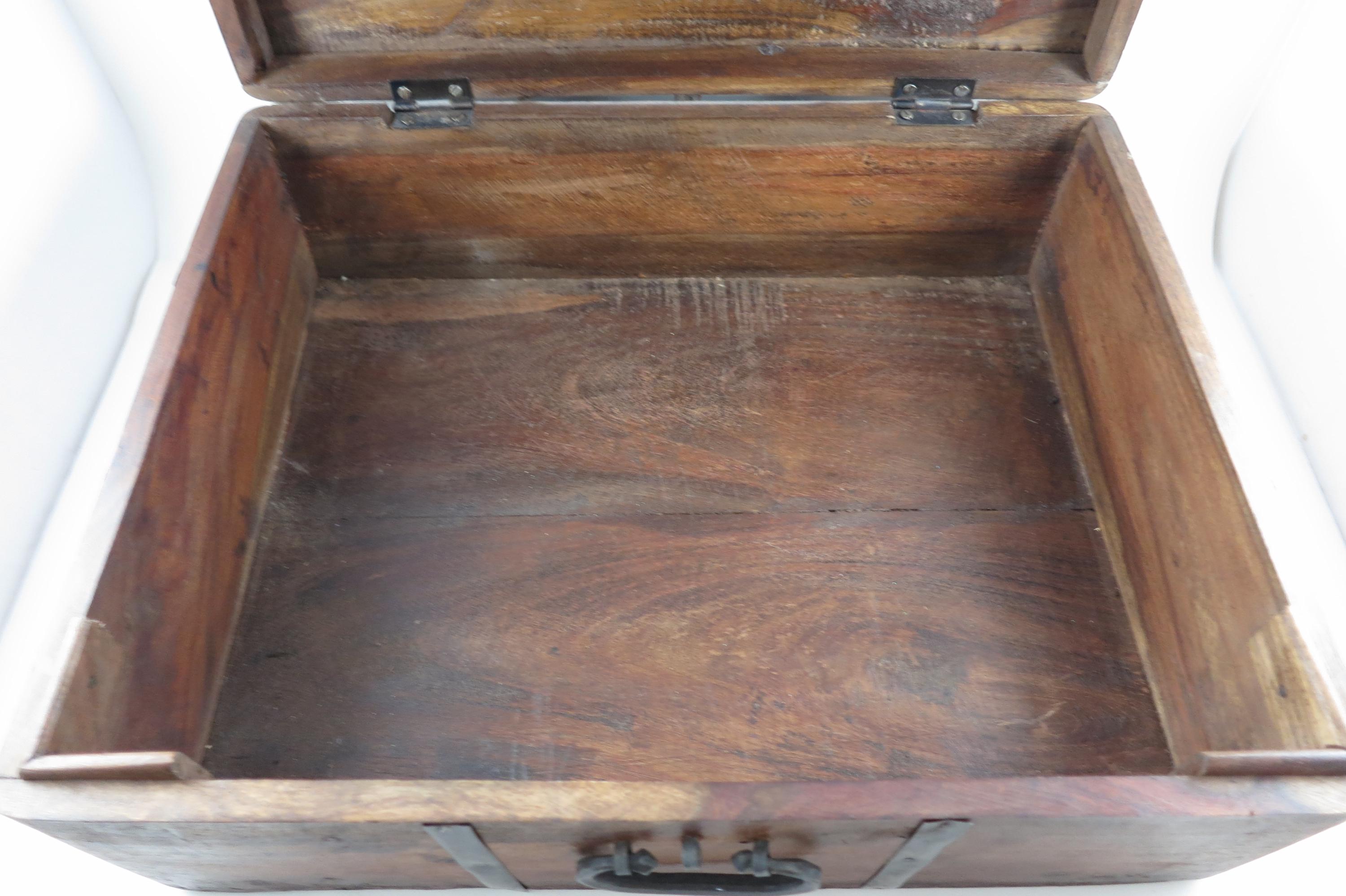 Antique Wooden Treasure Keepsake Storage Box with Metal Bands and Latch