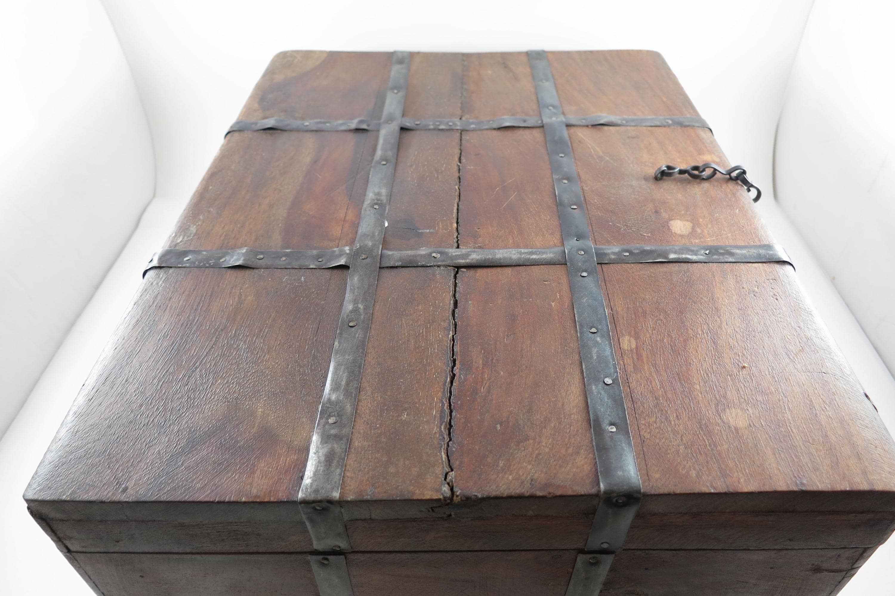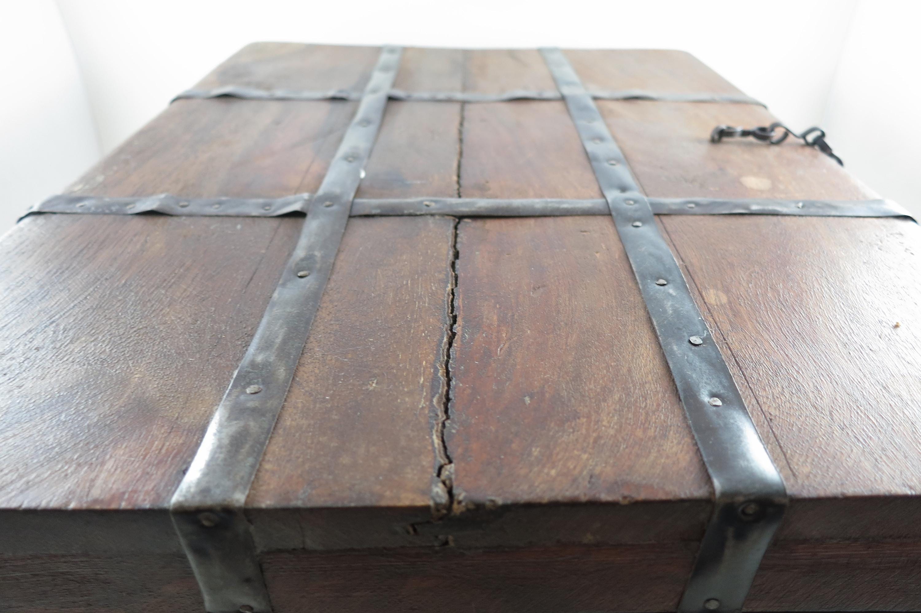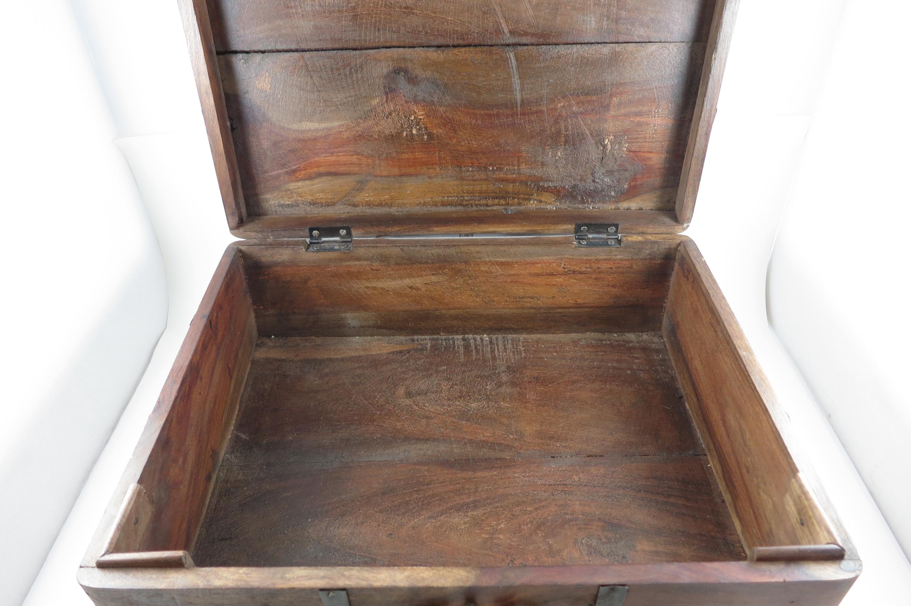 Antique Wooden Treasure Keepsake Storage Box with Metal Bands and Latch. Beautiful Box with tons of character. Not quite sure of the exact age but looks very old. Excellent condition.