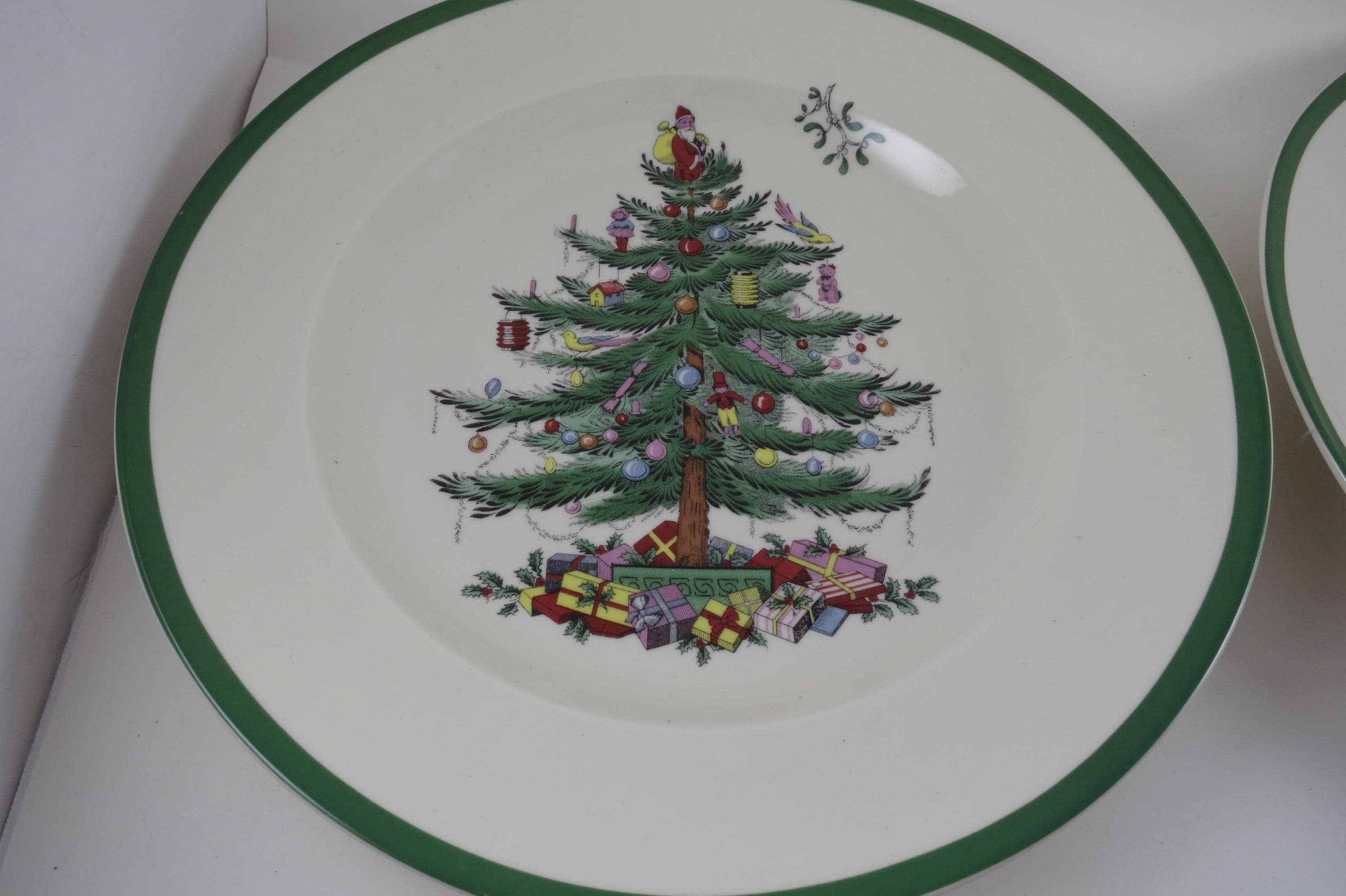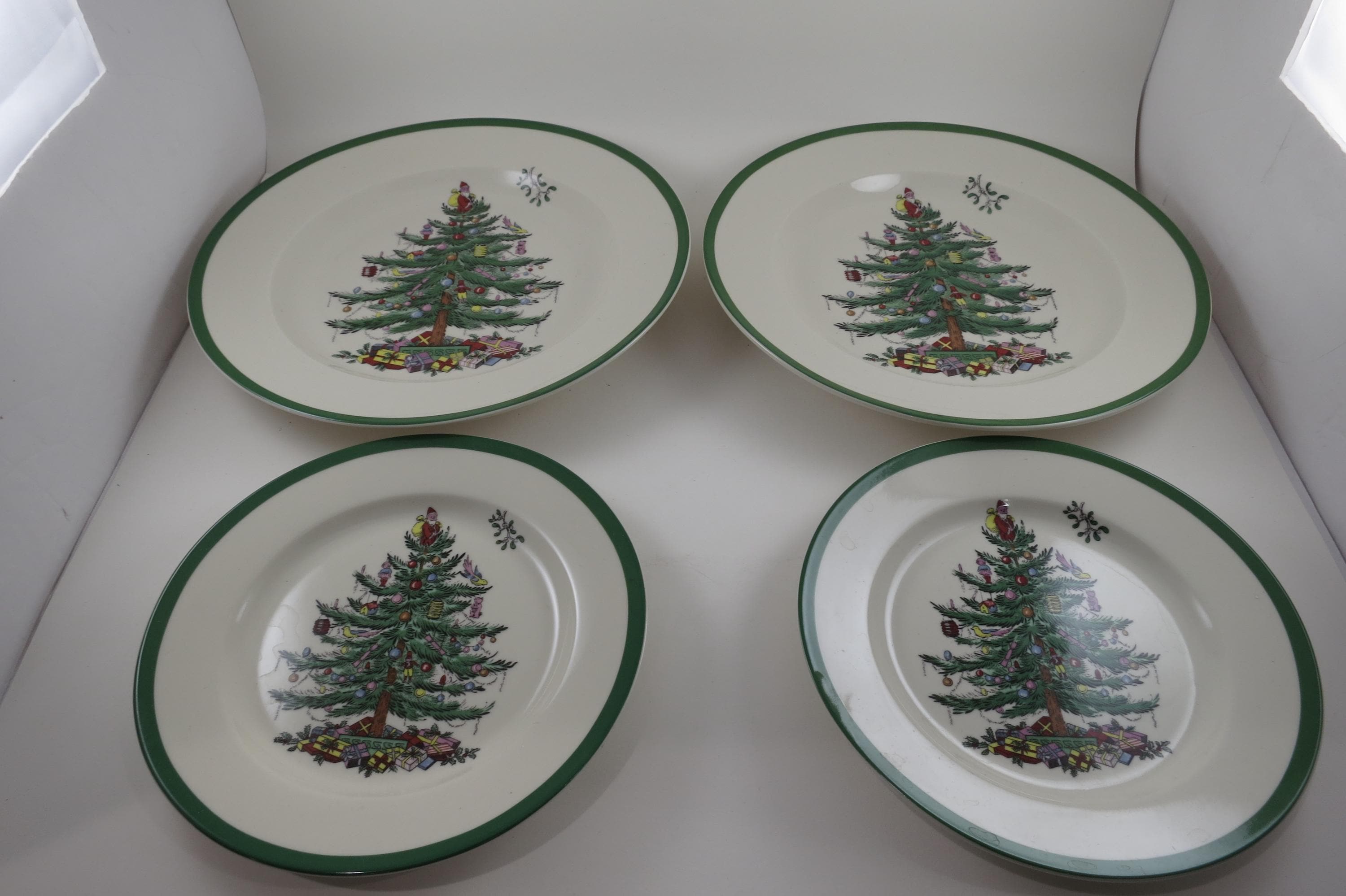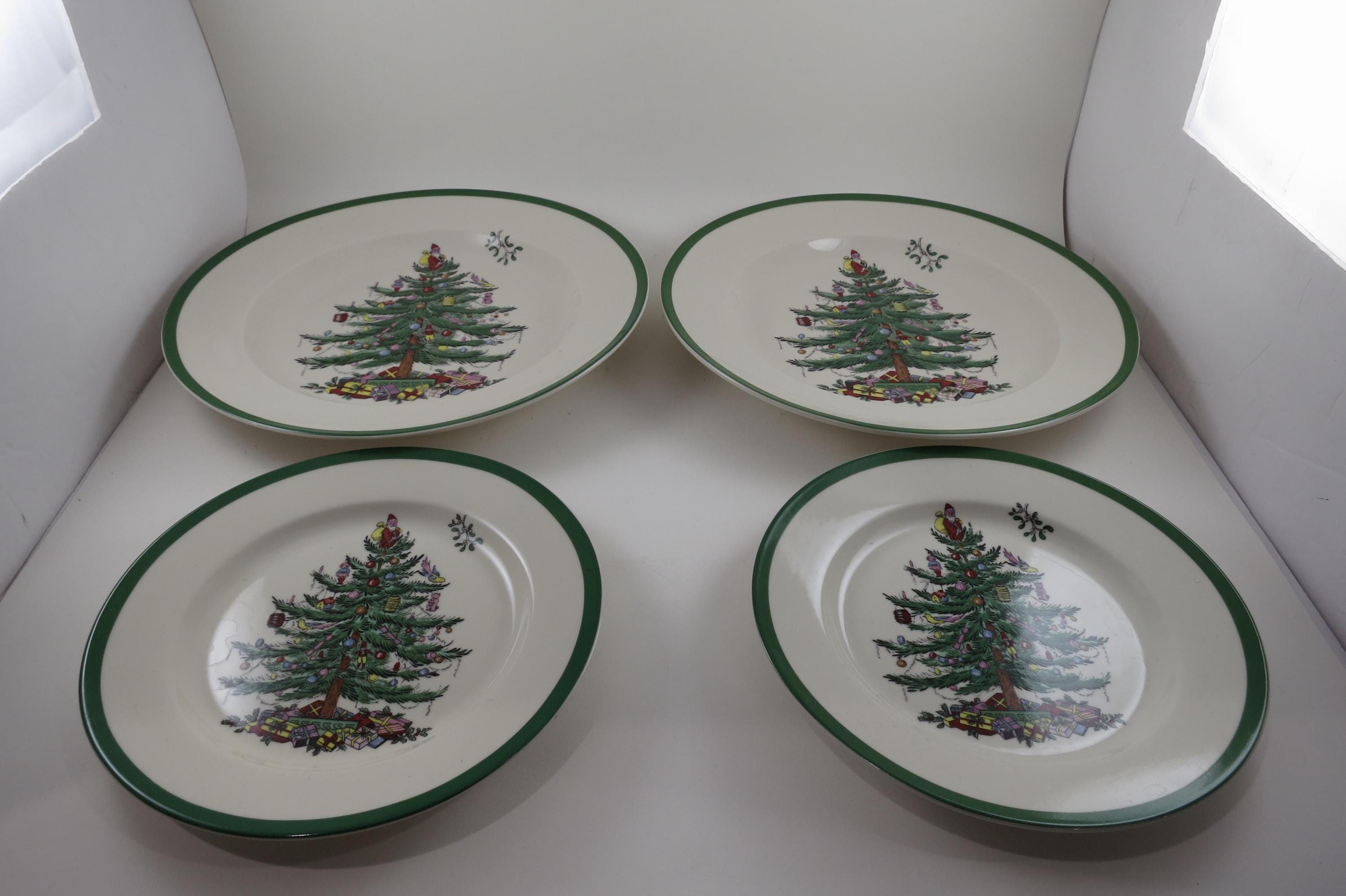 Set of Four Vintage Spode Christmas Tree Plates 2 Dinner 2 Salad.